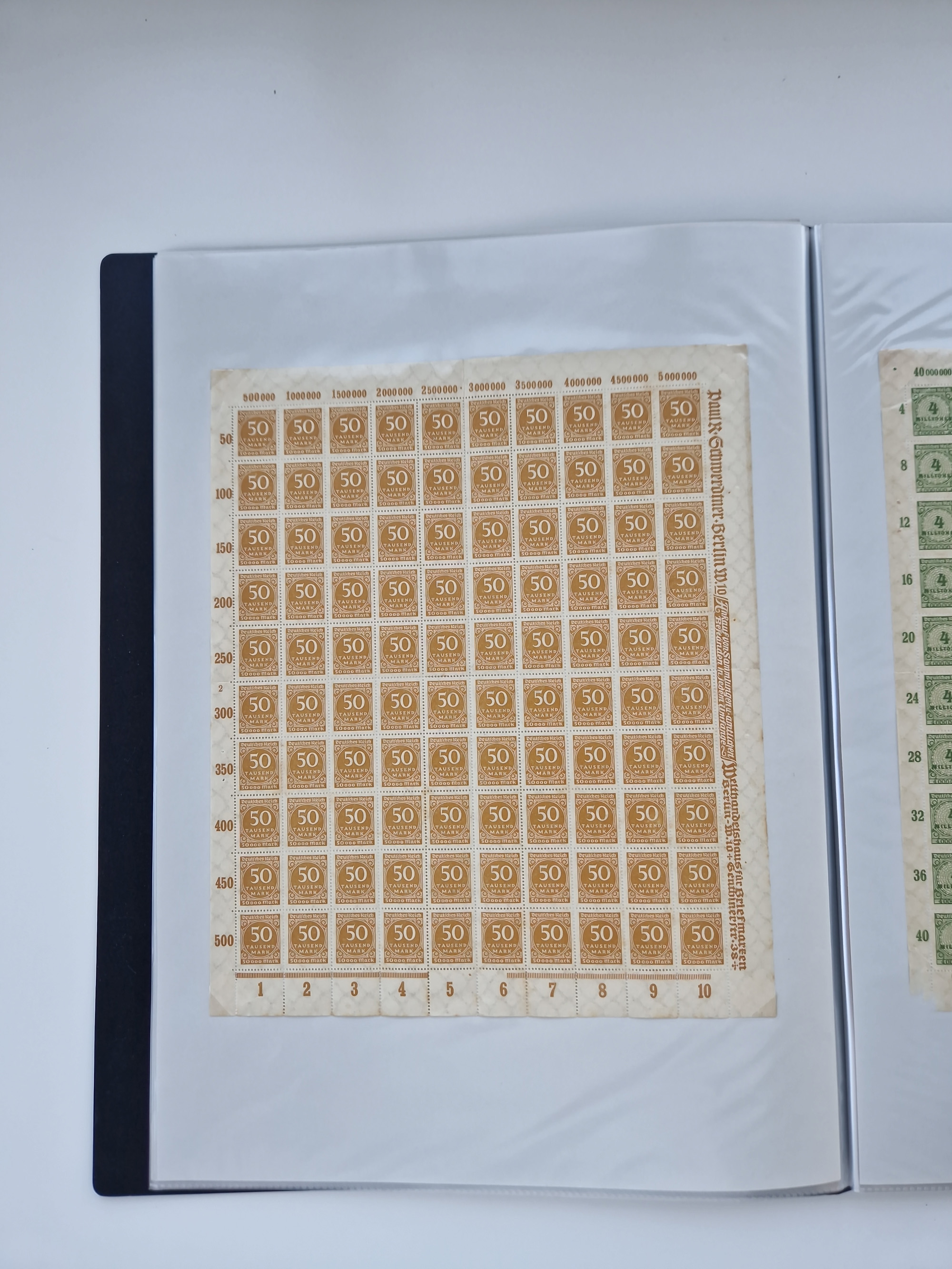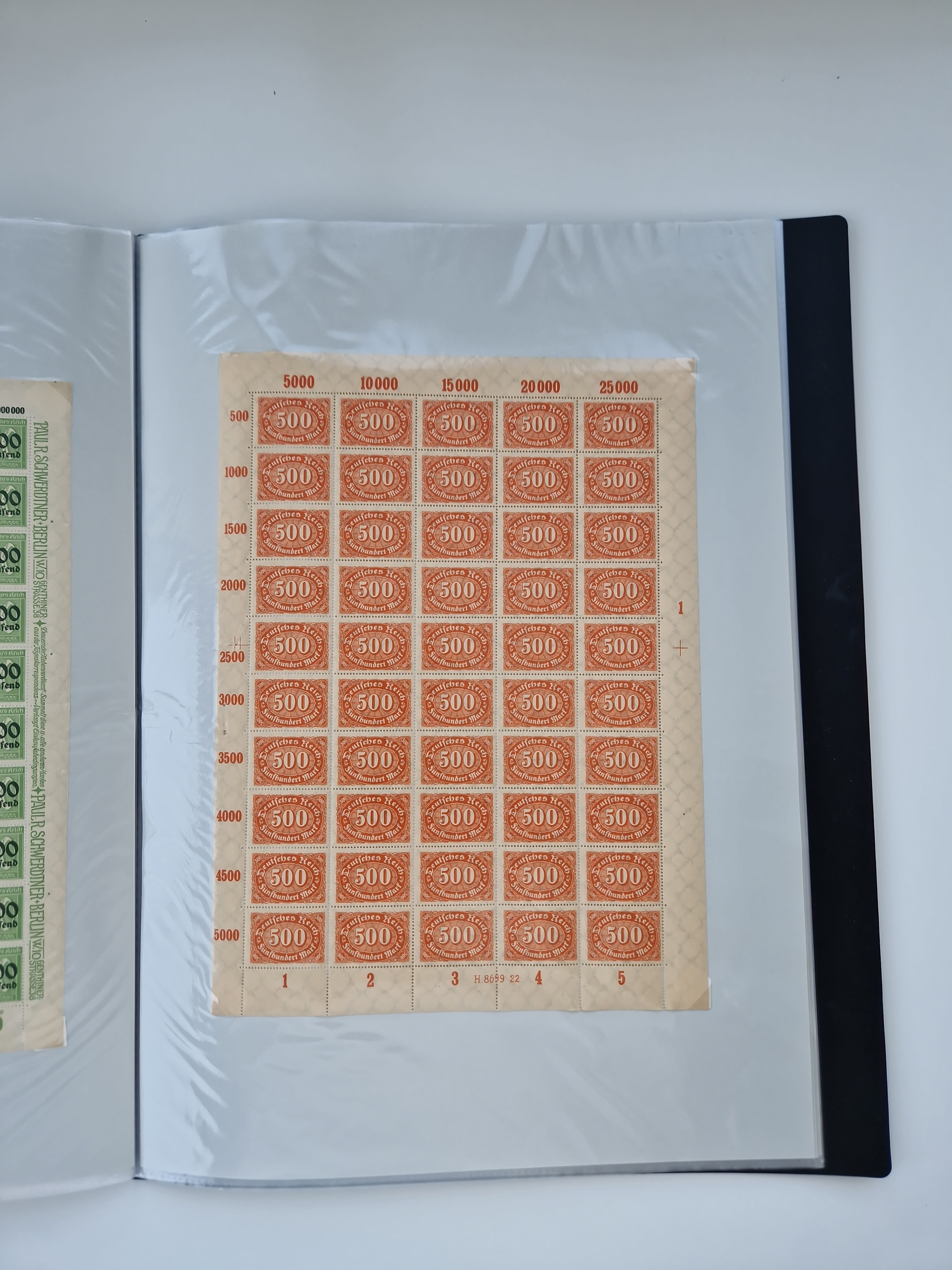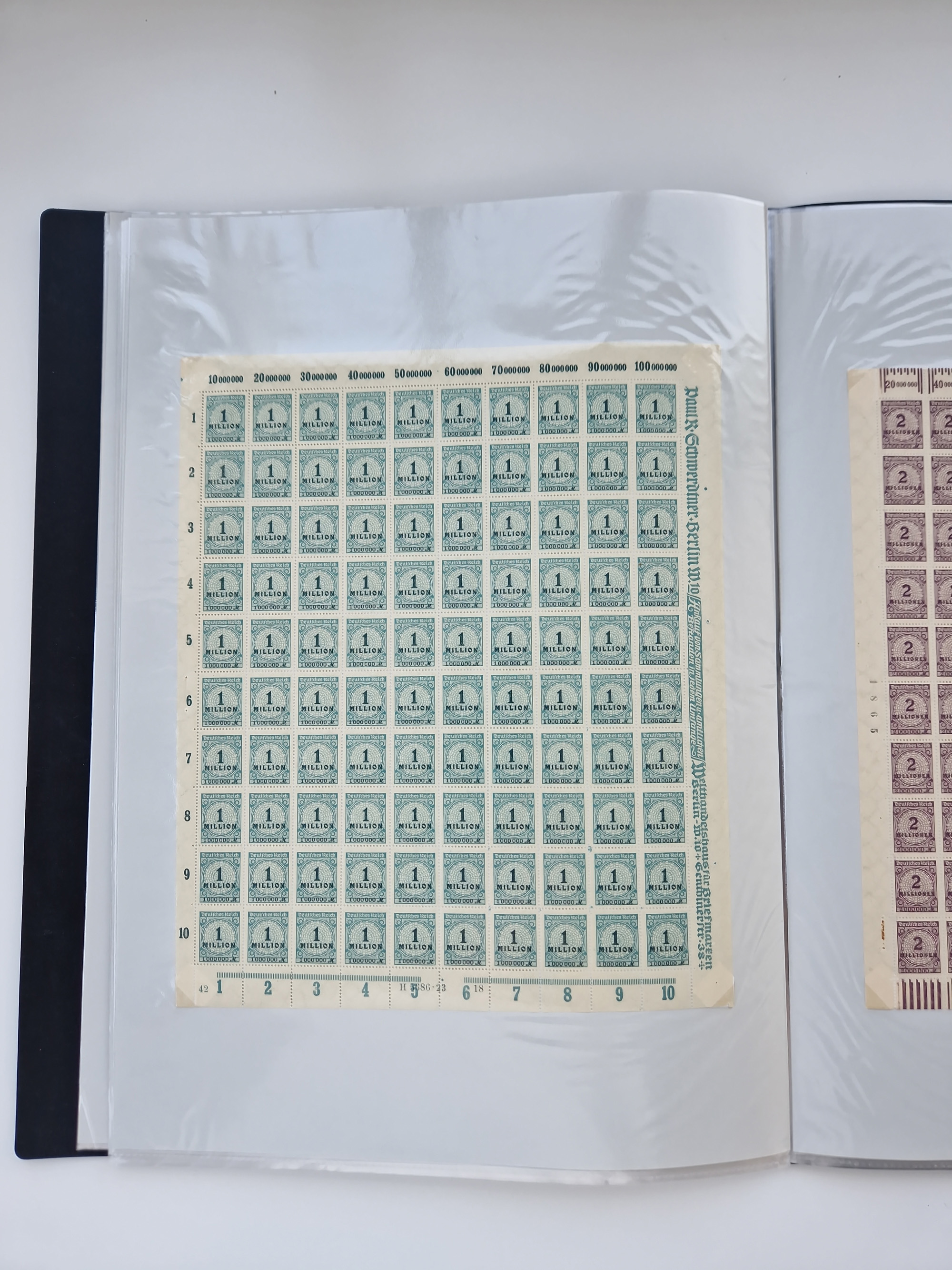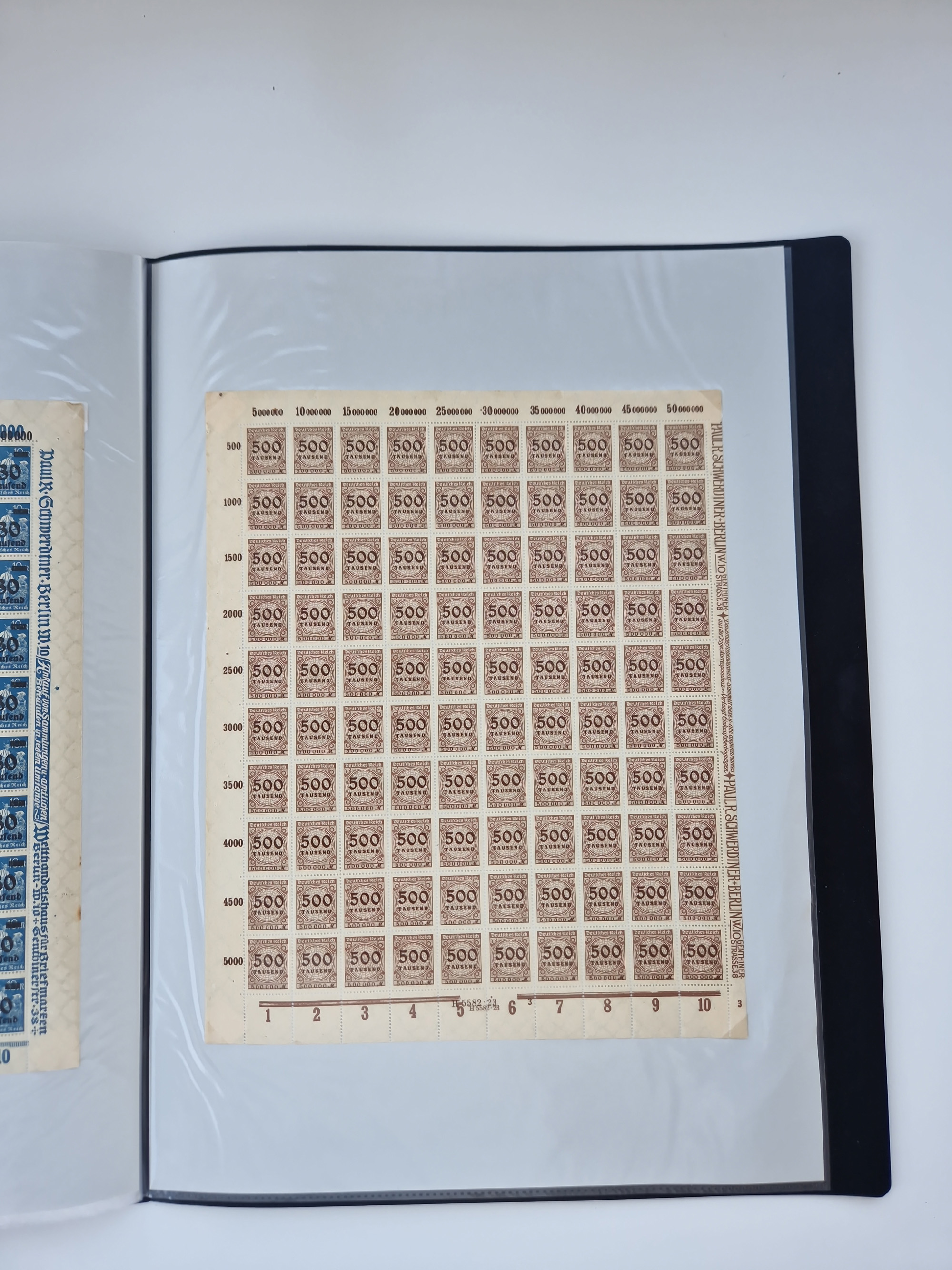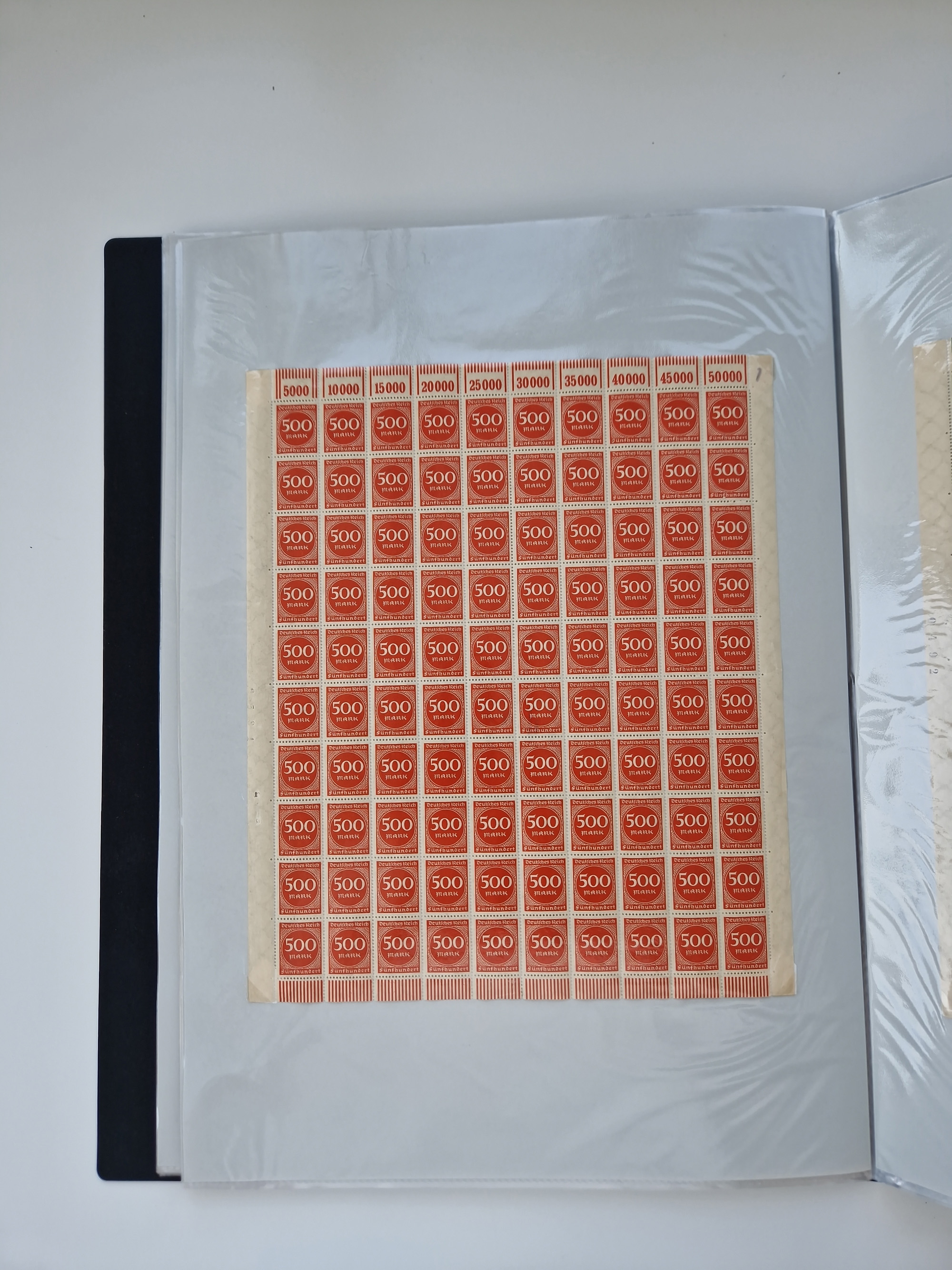 1921/22, postfrischer und ungebrauchter Bestand mit etwas über 200 Bogen und Bogenteilen, dabei Walzen- und Plattenbogen, HAN, Druckereizeichen, Pl.-Nr., auch Wz. Waffeln und Bogentaschen, teils sign. INFLA Berlin, etwas unterschiedliche Erhaltung, in zwei Ordnern
