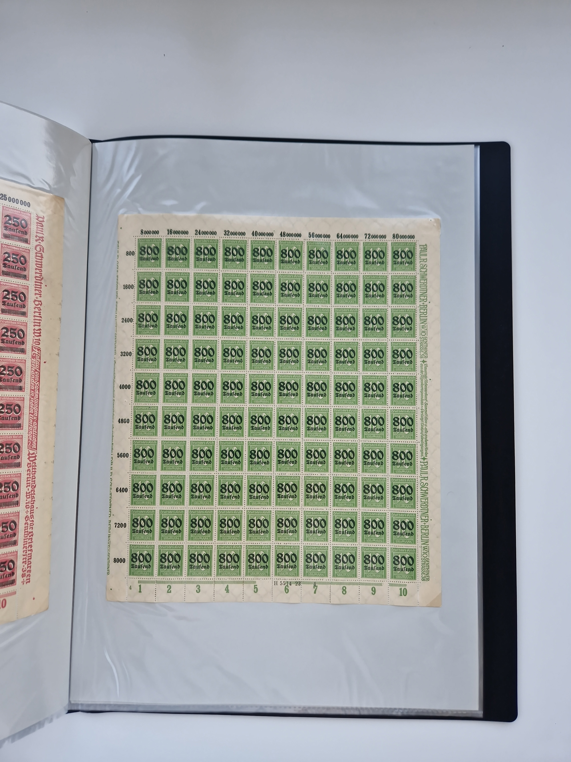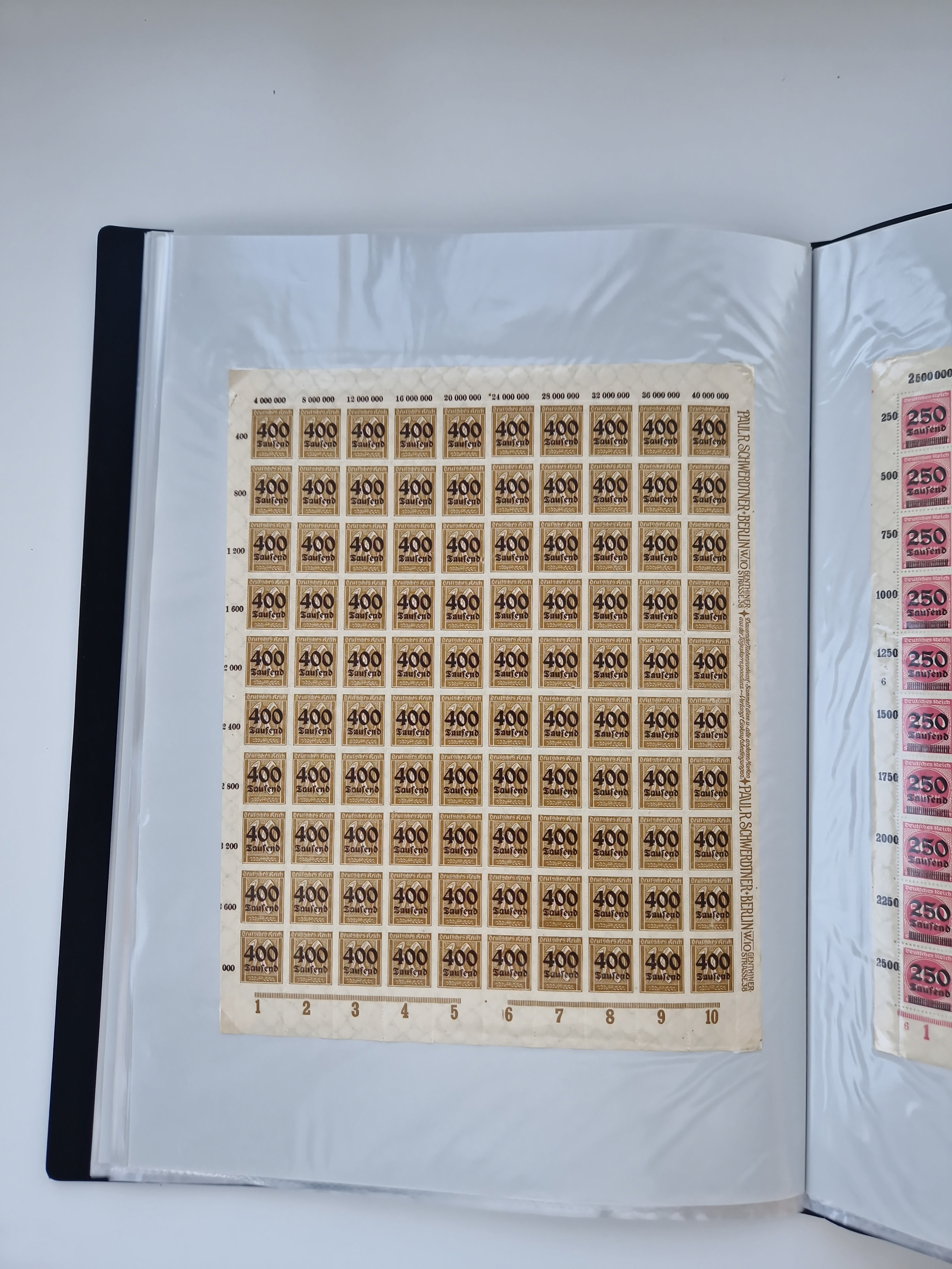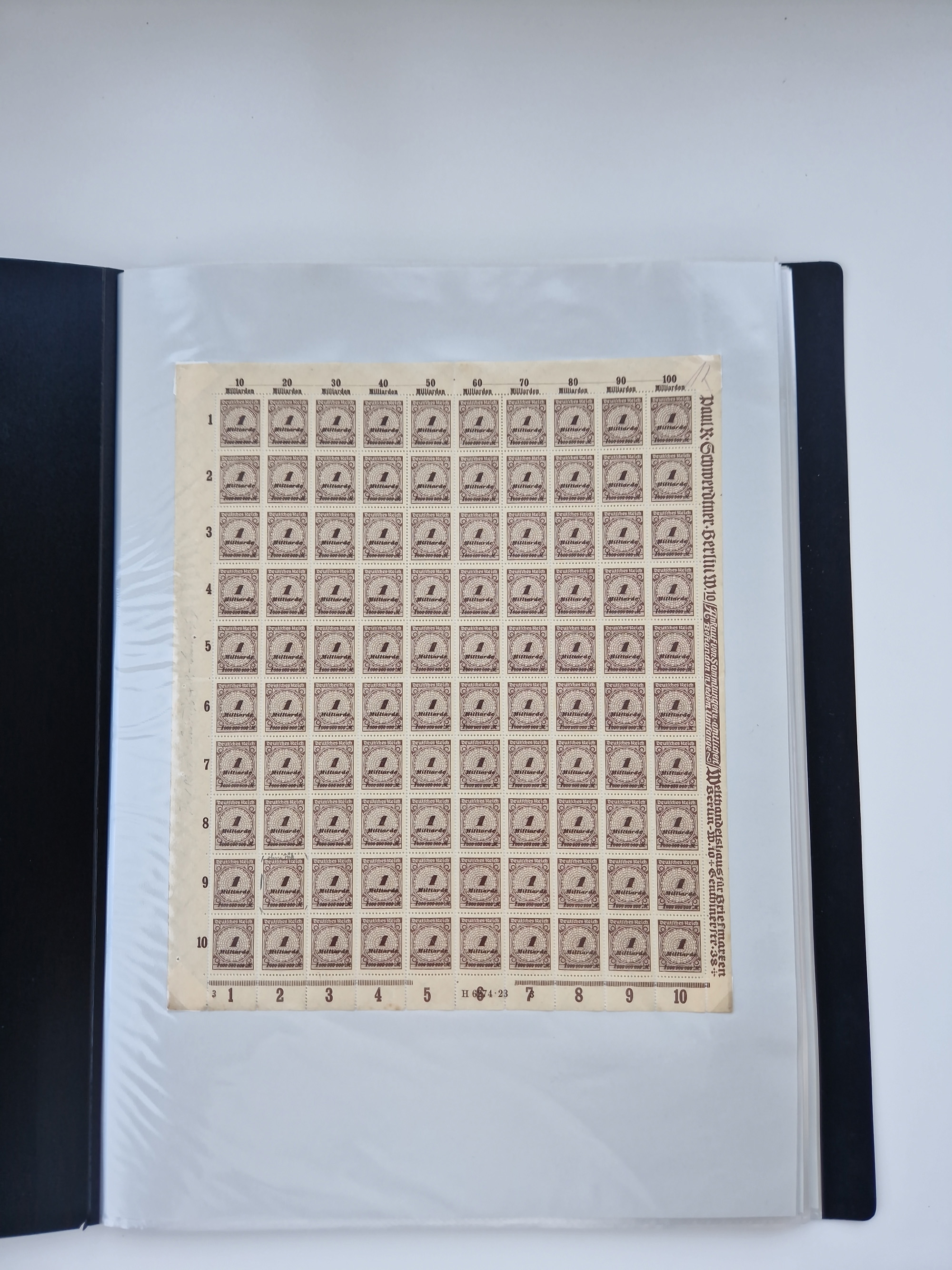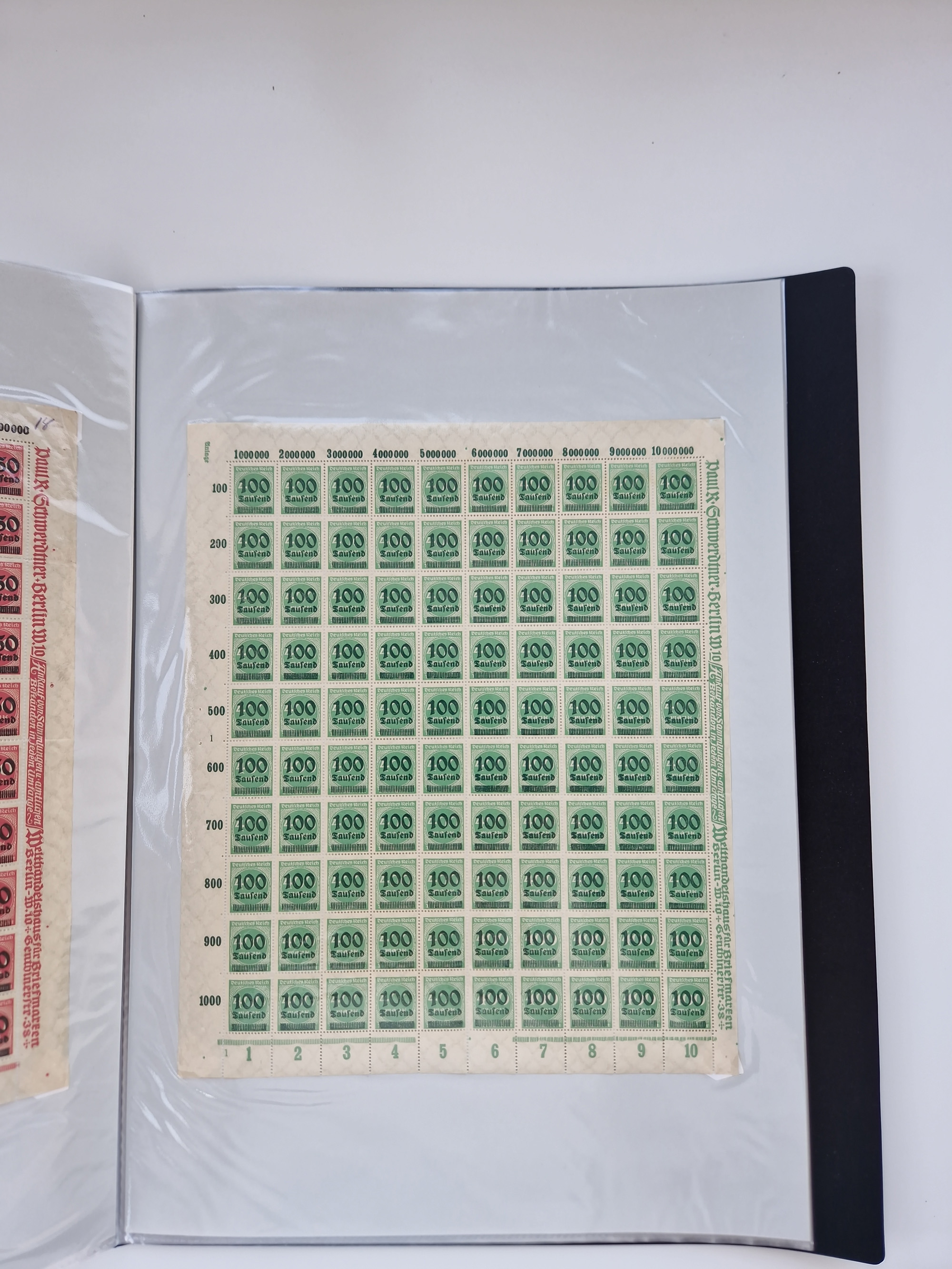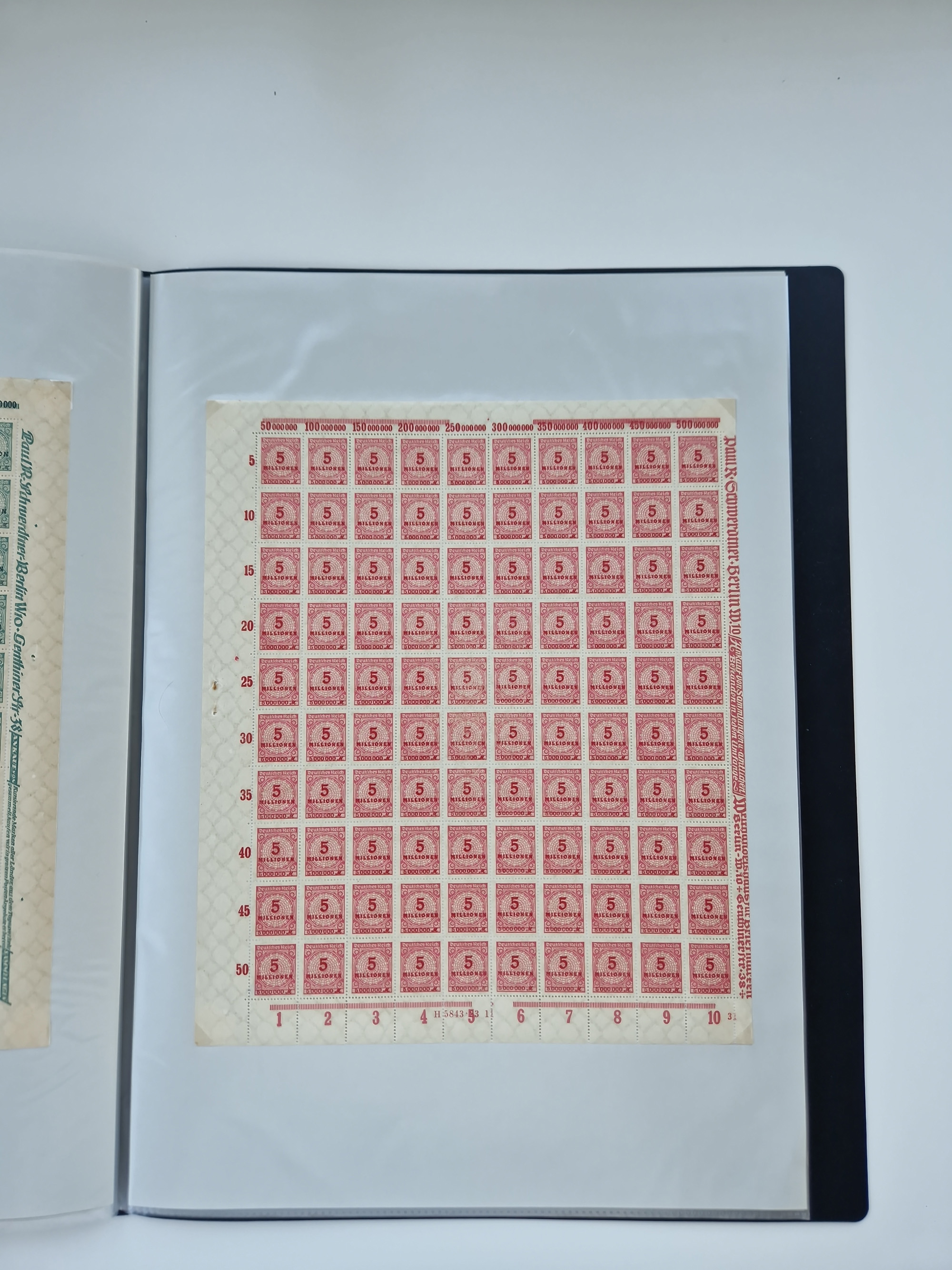1921/22, postfrischer und ungebrauchter Bestand mit etwas über 200 Bogen und Bogenteilen, dabei Walzen- und Plattenbogen, HAN, Druckereizeichen, Pl.-Nr., auch Wz. Waffeln und Bogentaschen, teils sign. INFLA Berlin, etwas unterschiedliche Erhaltung, in zwei Ordnern