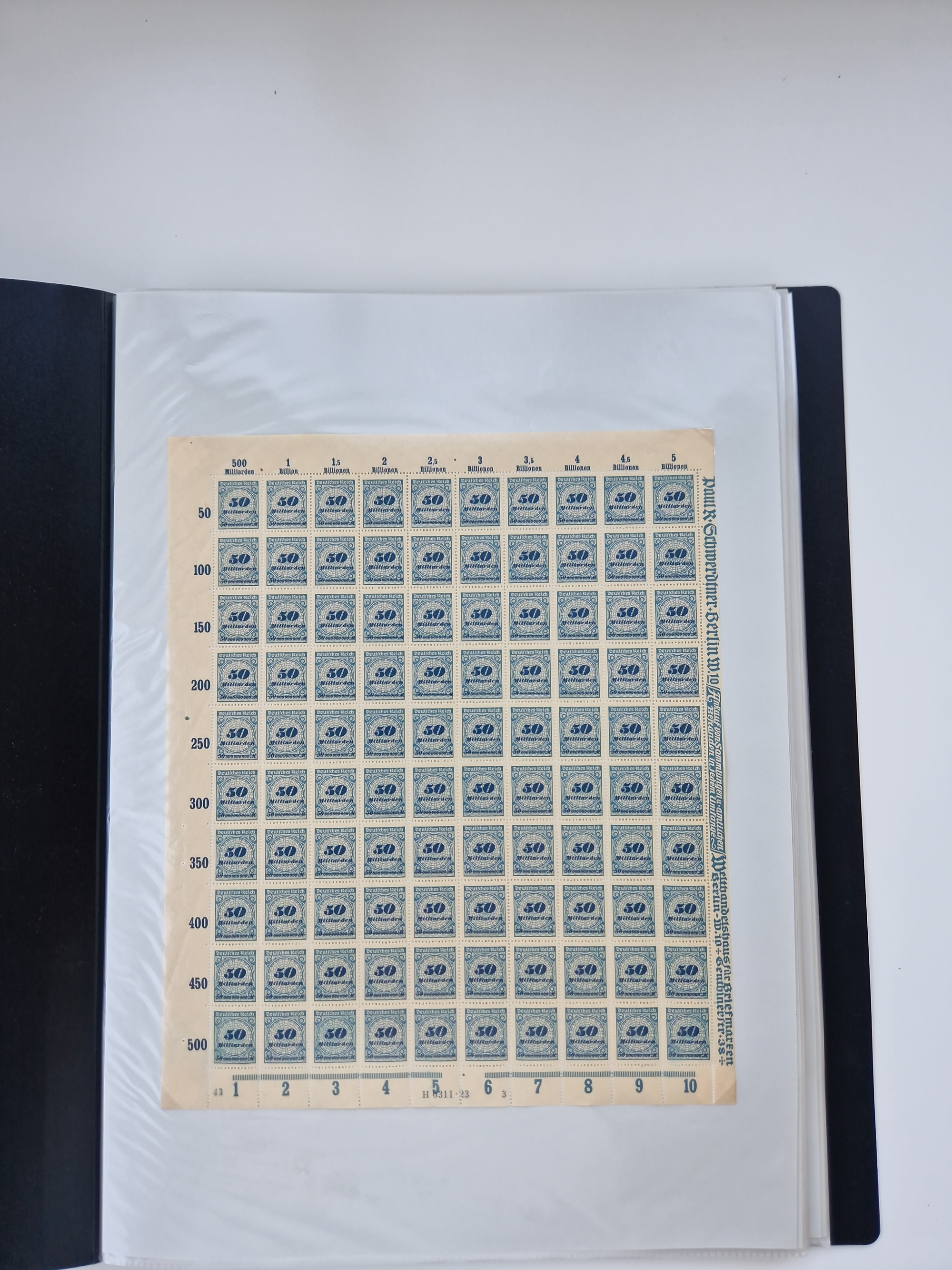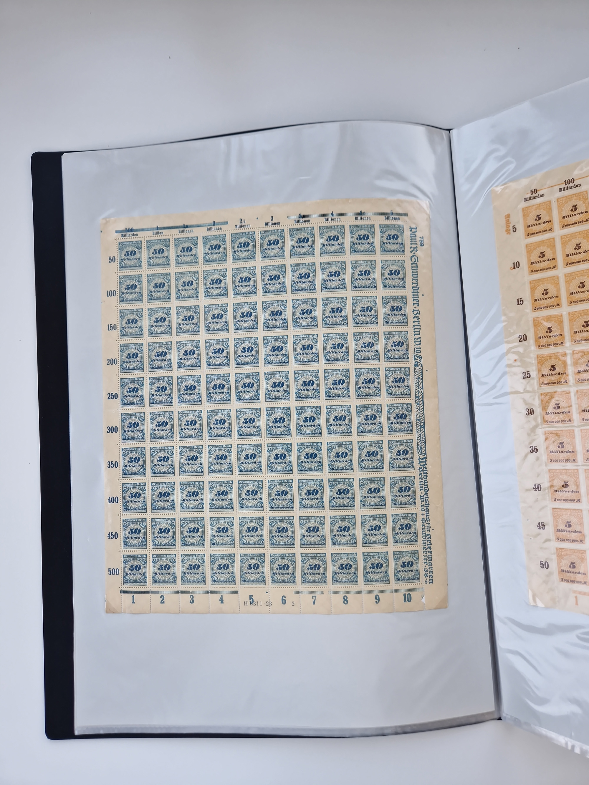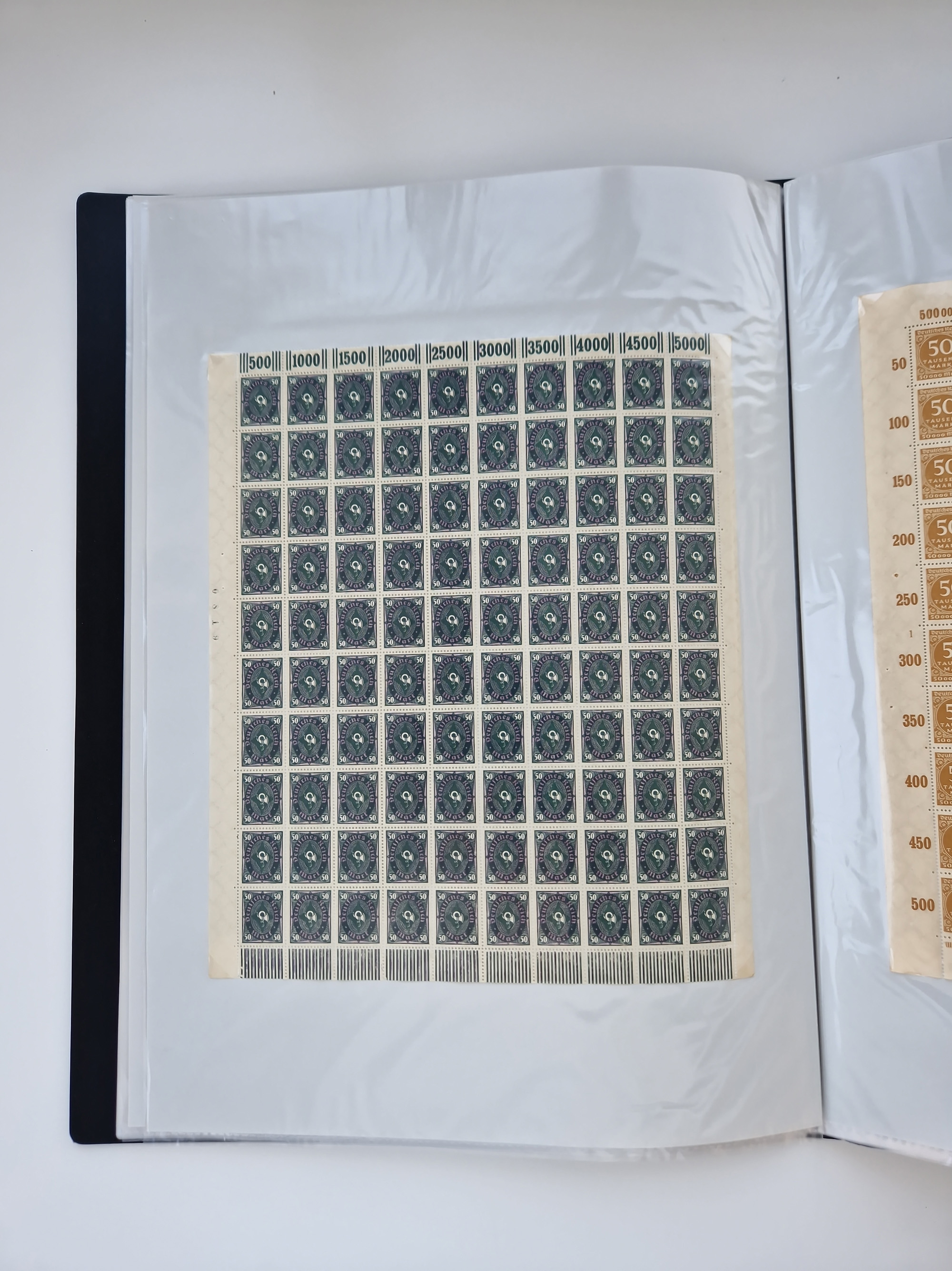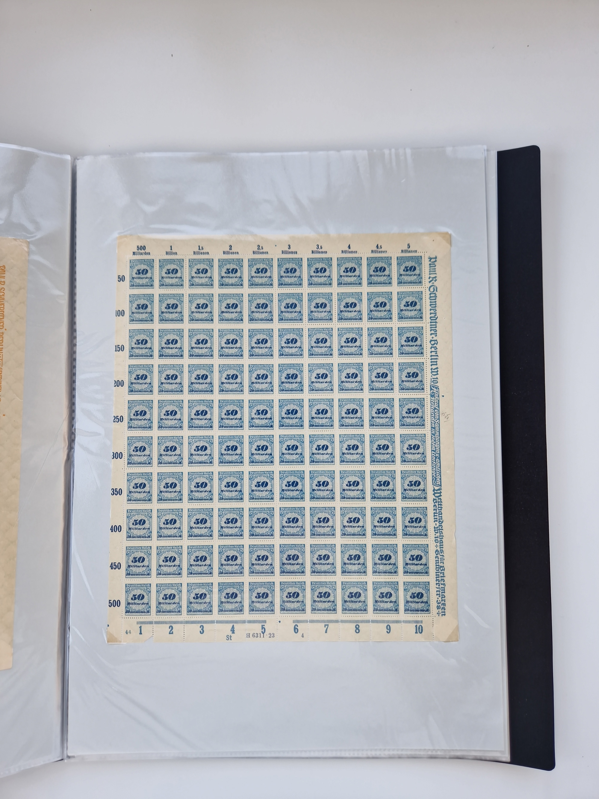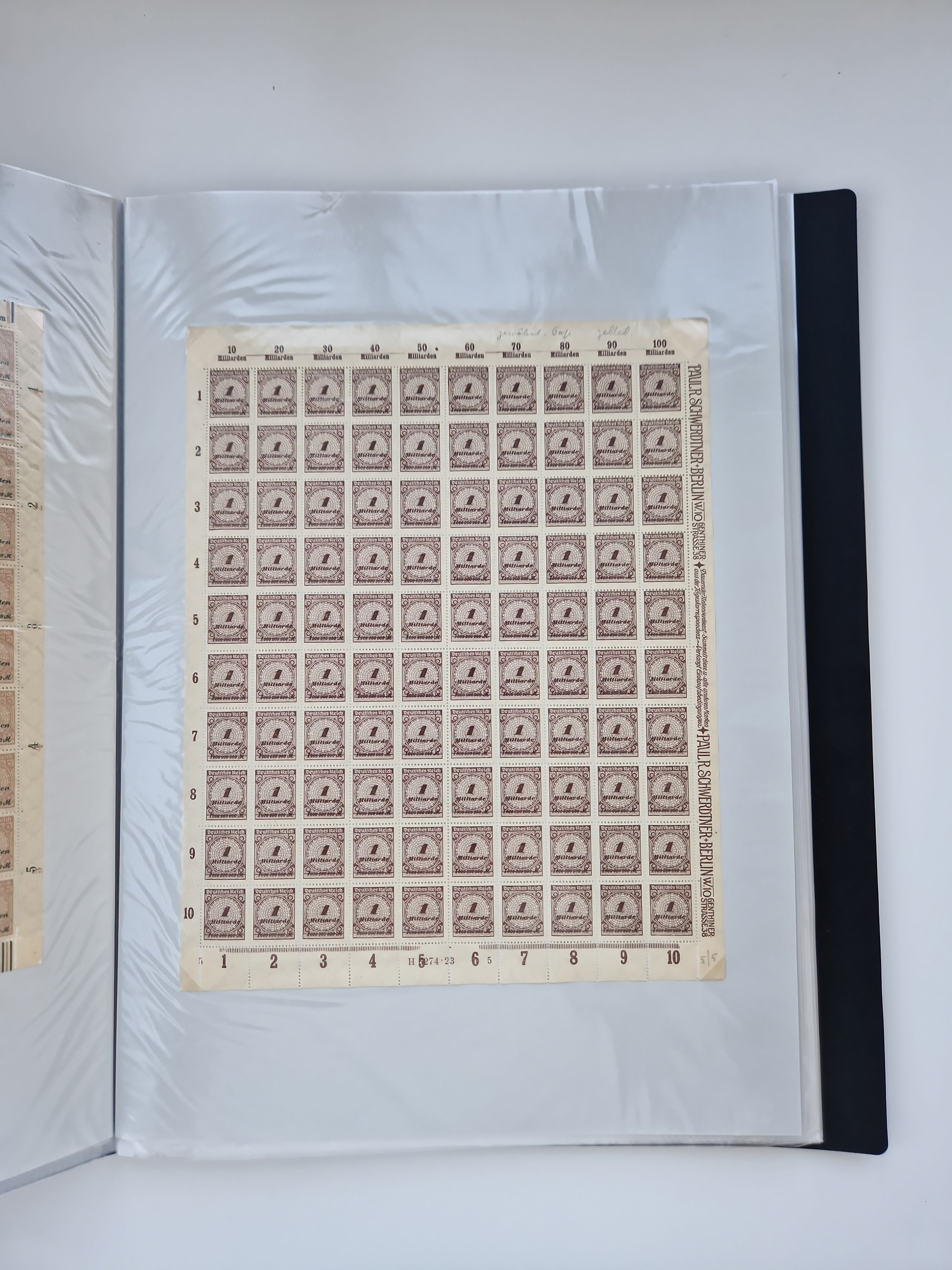 1921/22, postfrischer und ungebrauchter Bestand mit etwas über 200 Bogen und Bogenteilen, dabei Walzen- und Plattenbogen, HAN, Druckereizeichen, Pl.-Nr., auch Wz. Waffeln und Bogentaschen, teils sign. INFLA Berlin, etwas unterschiedliche Erhaltung, in zwei Ordnern