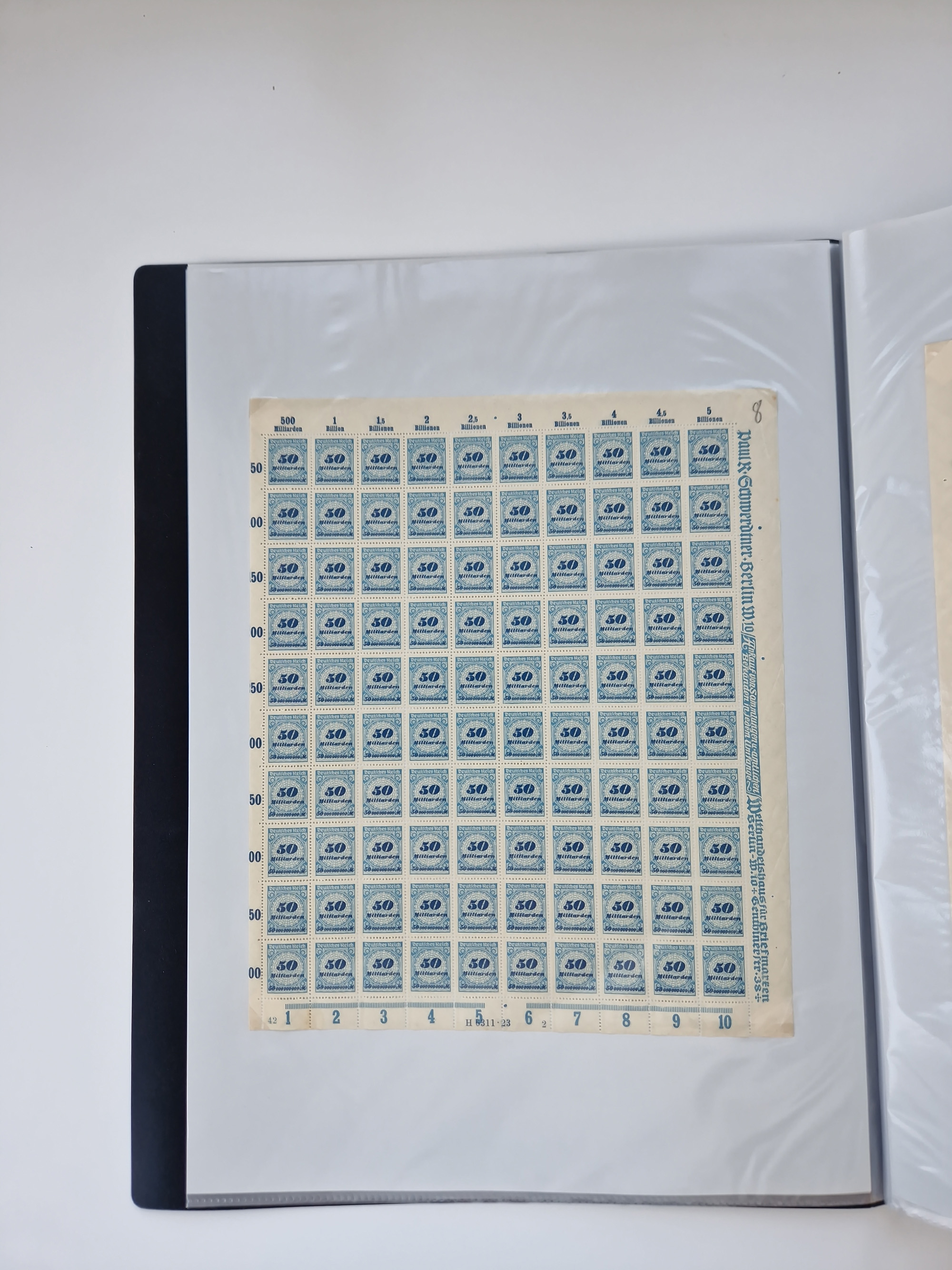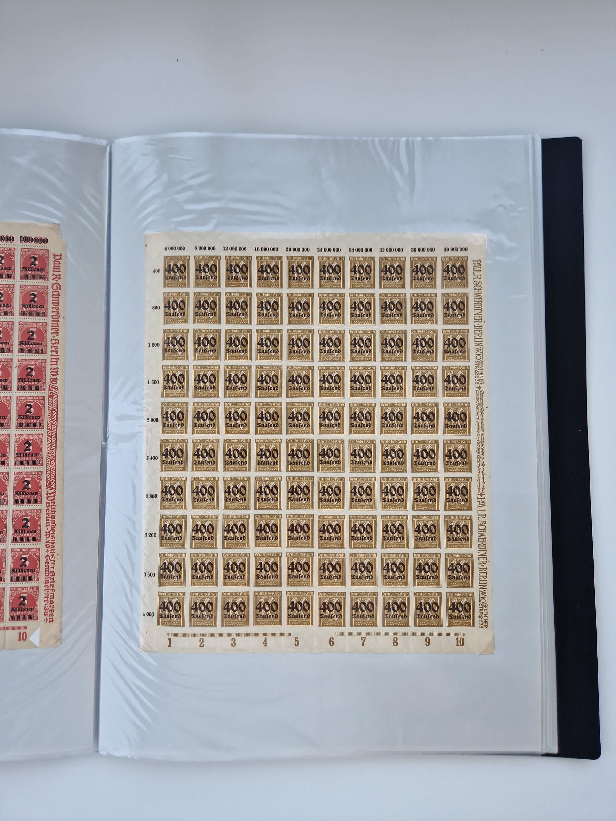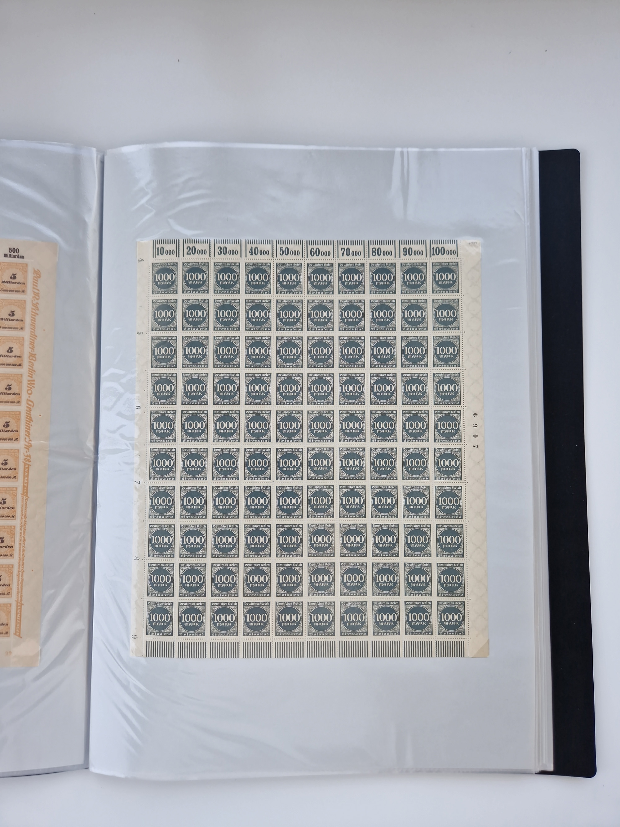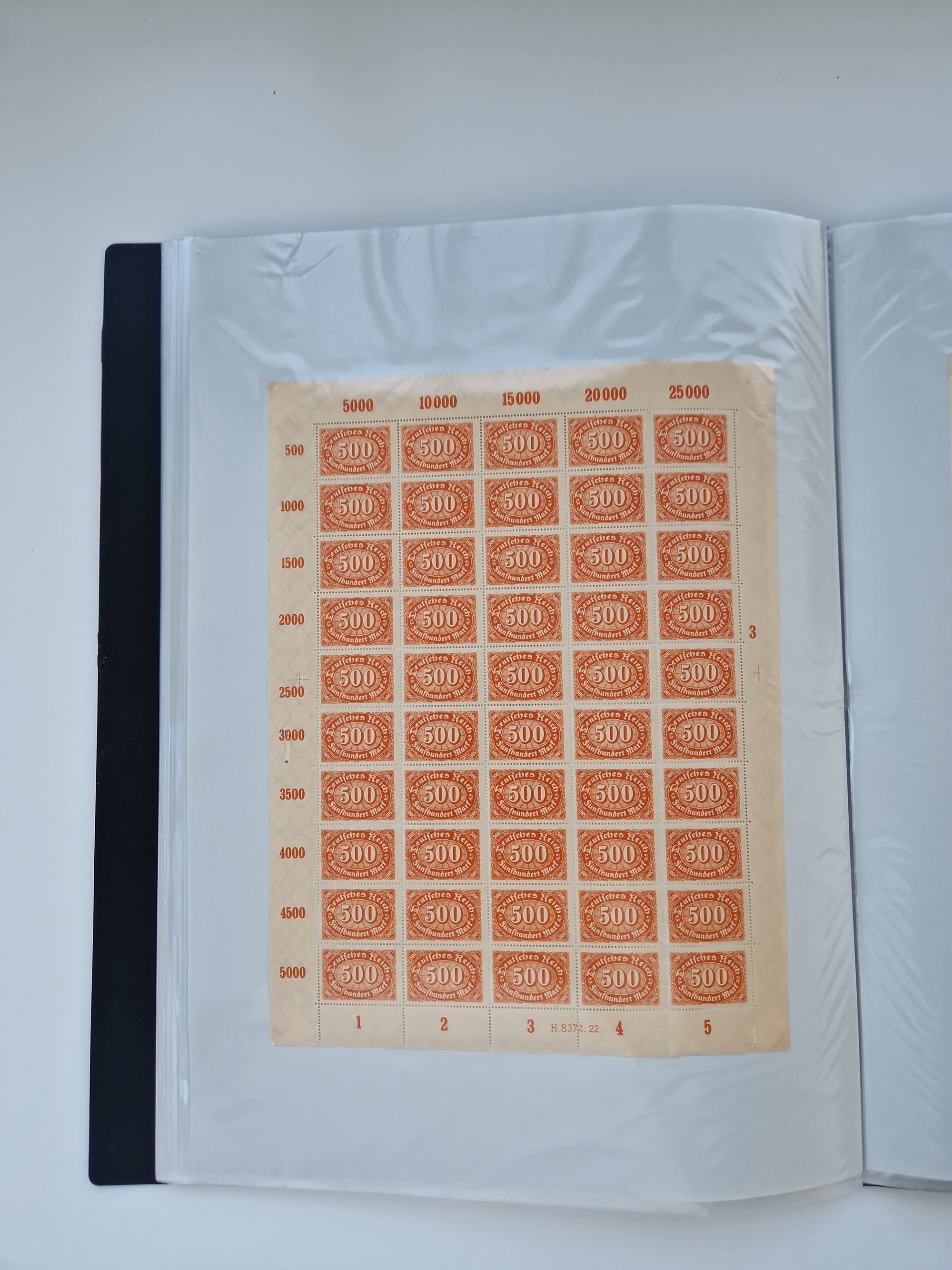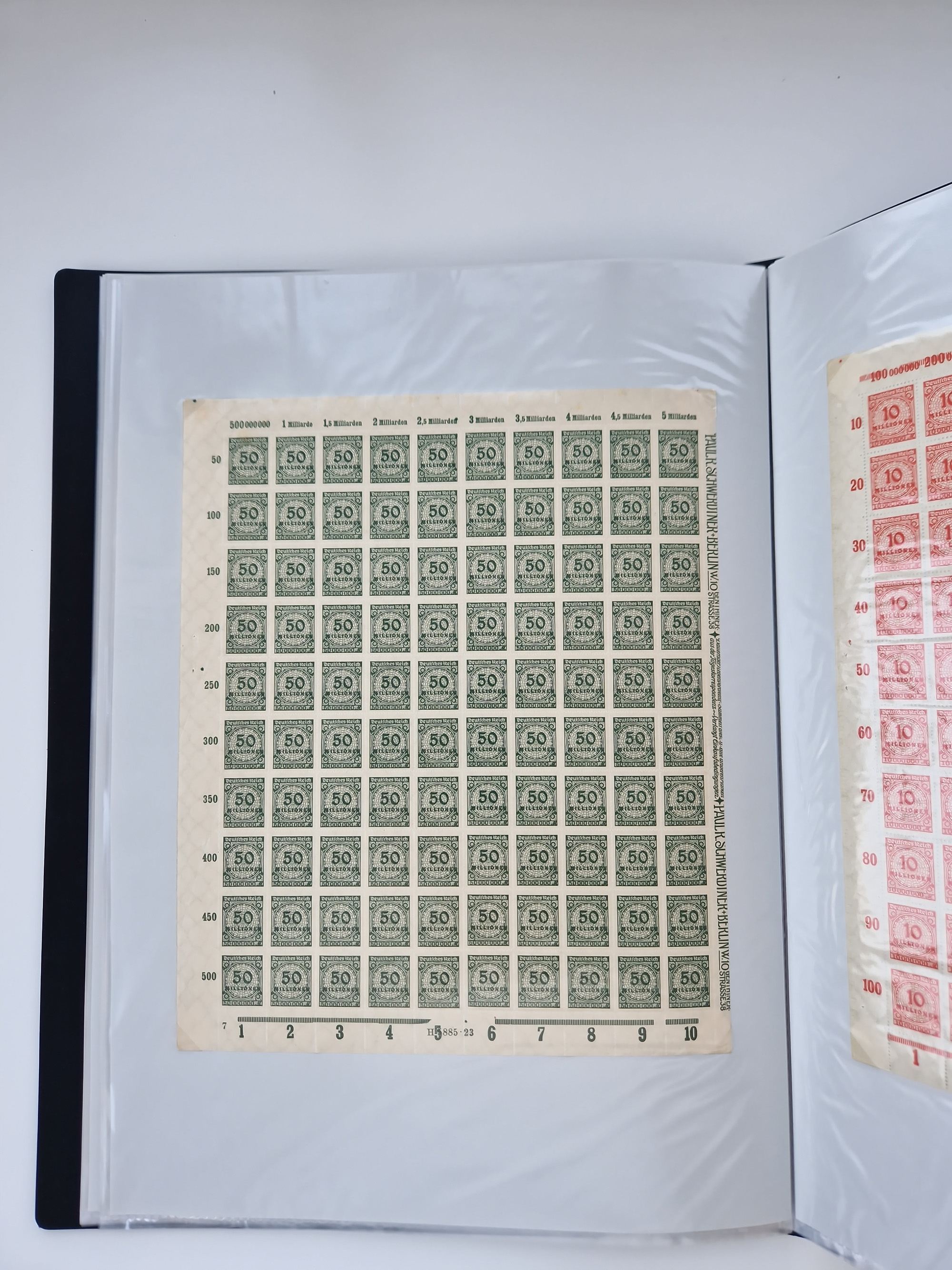 1921/22, postfrischer und ungebrauchter Bestand mit etwas über 200 Bogen und Bogenteilen, dabei Walzen- und Plattenbogen, HAN, Druckereizeichen, Pl.-Nr., auch Wz. Waffeln und Bogentaschen, teils sign. INFLA Berlin, etwas unterschiedliche Erhaltung, in zwei Ordnern