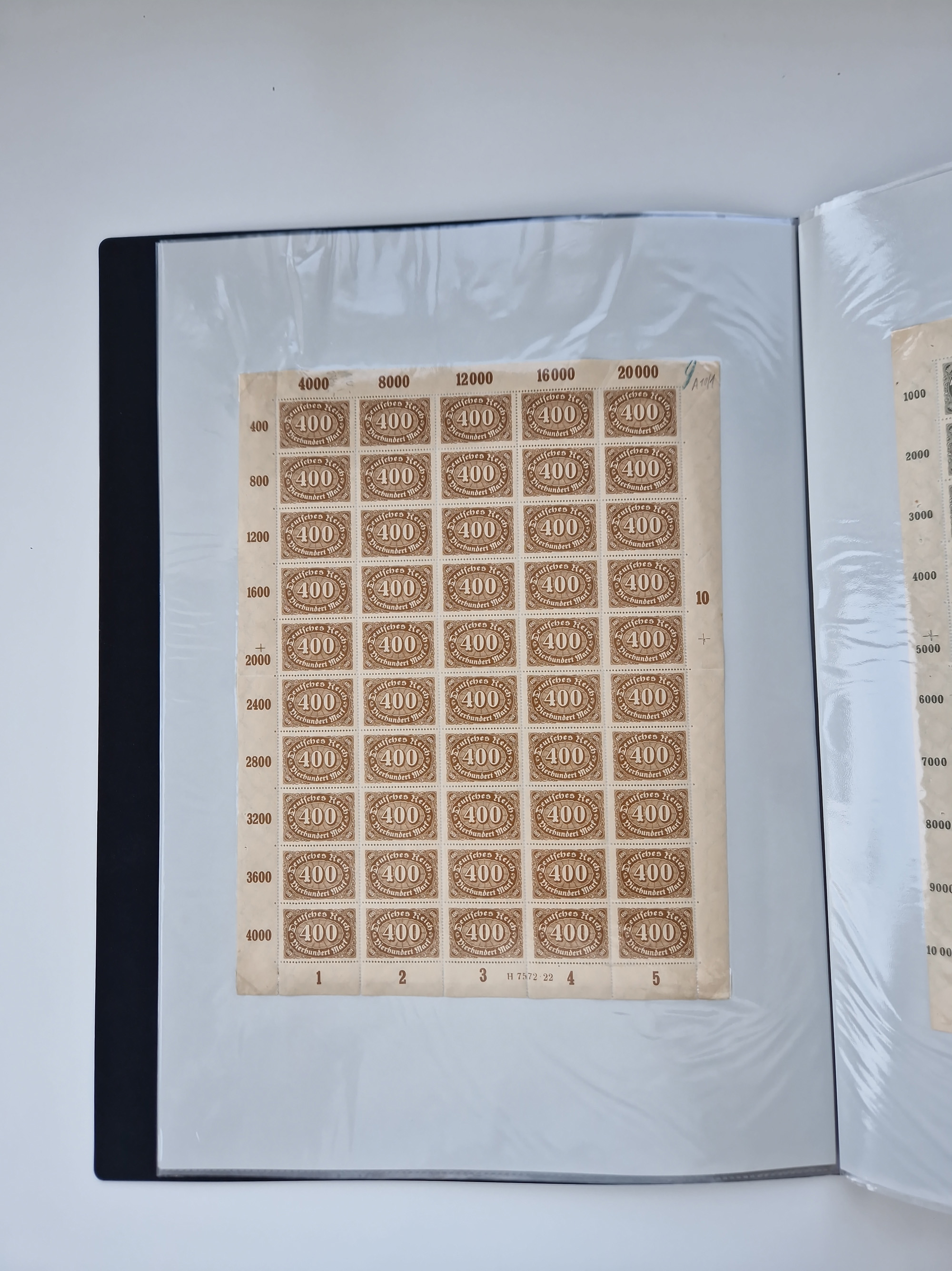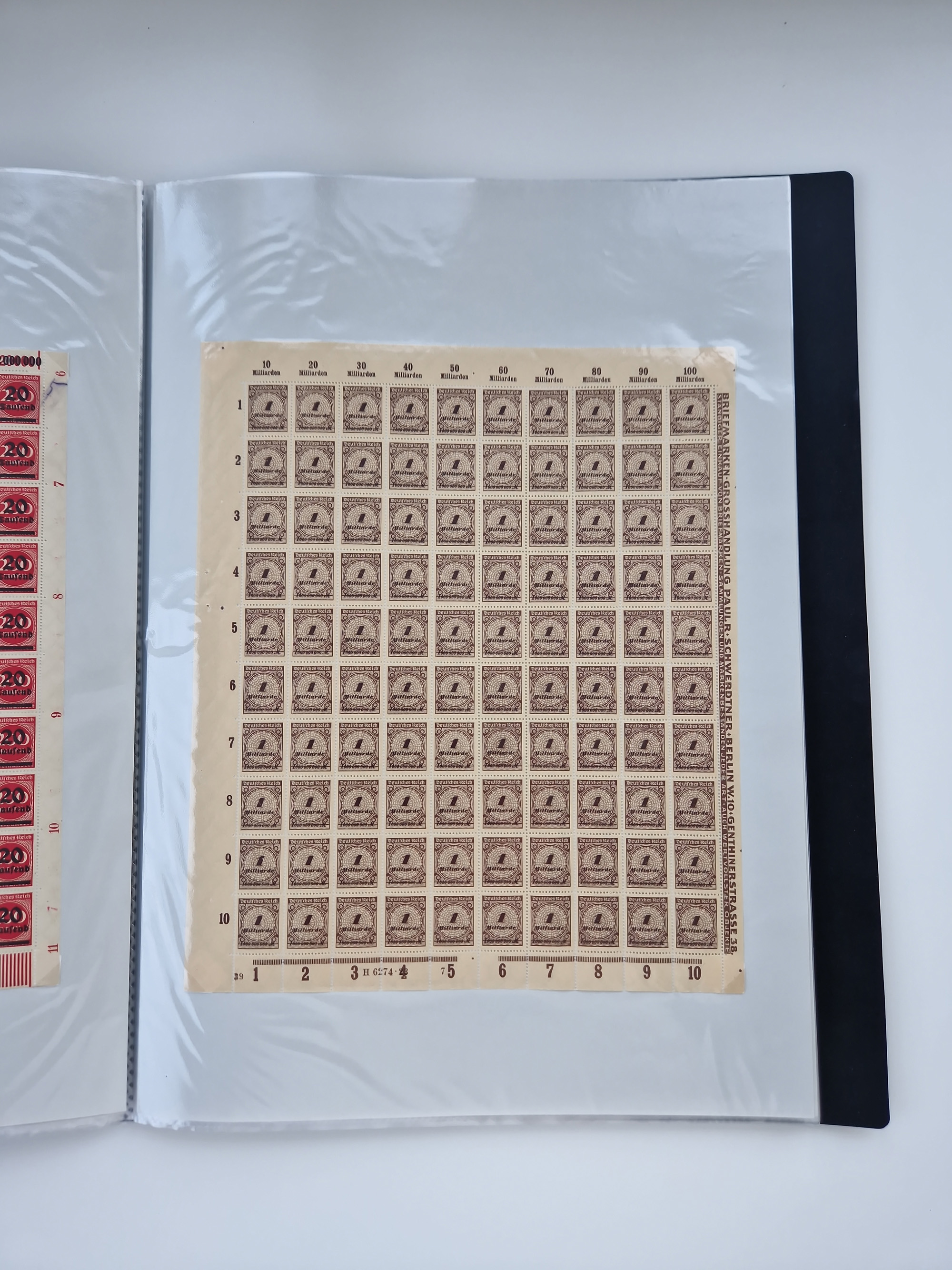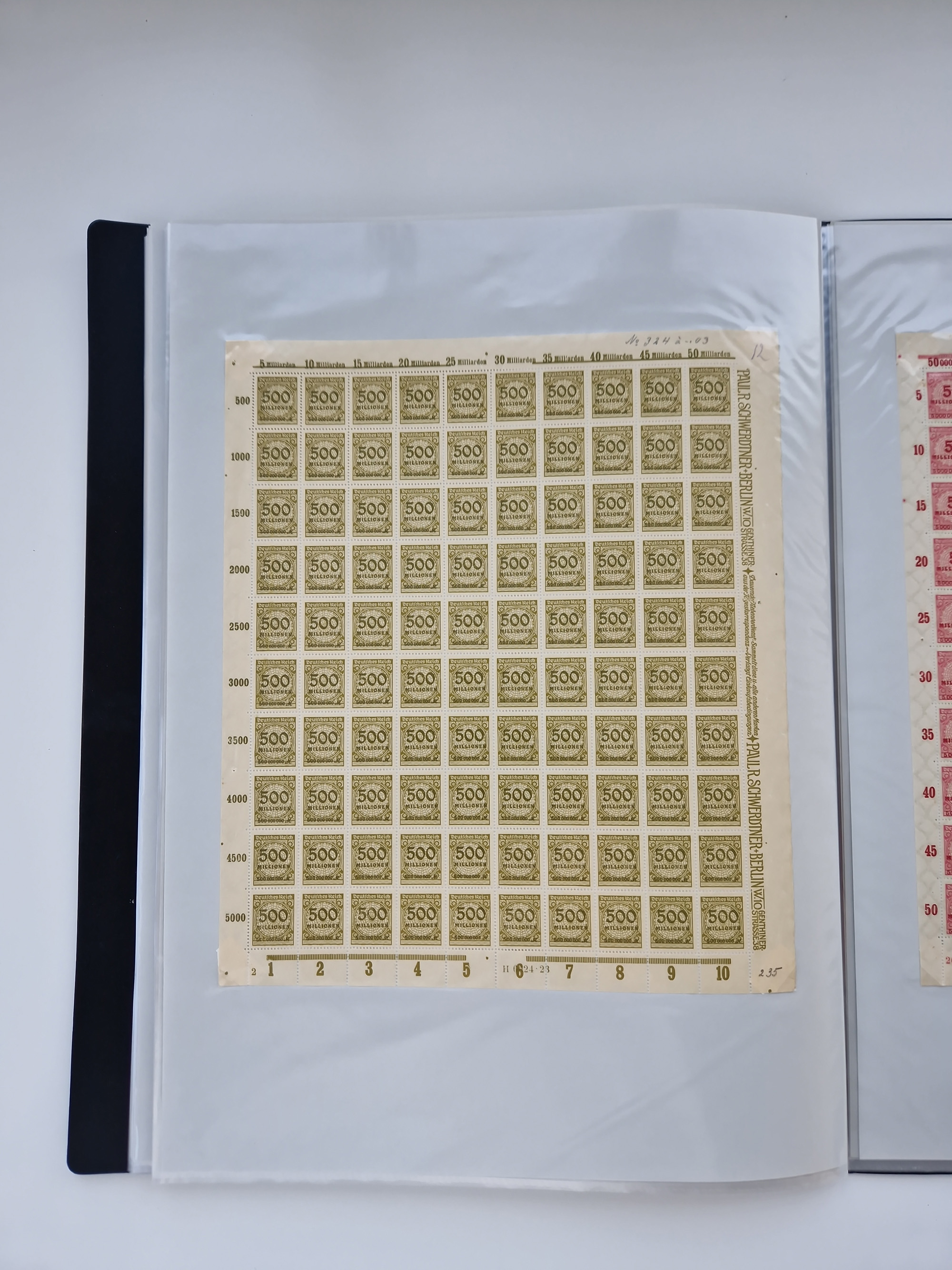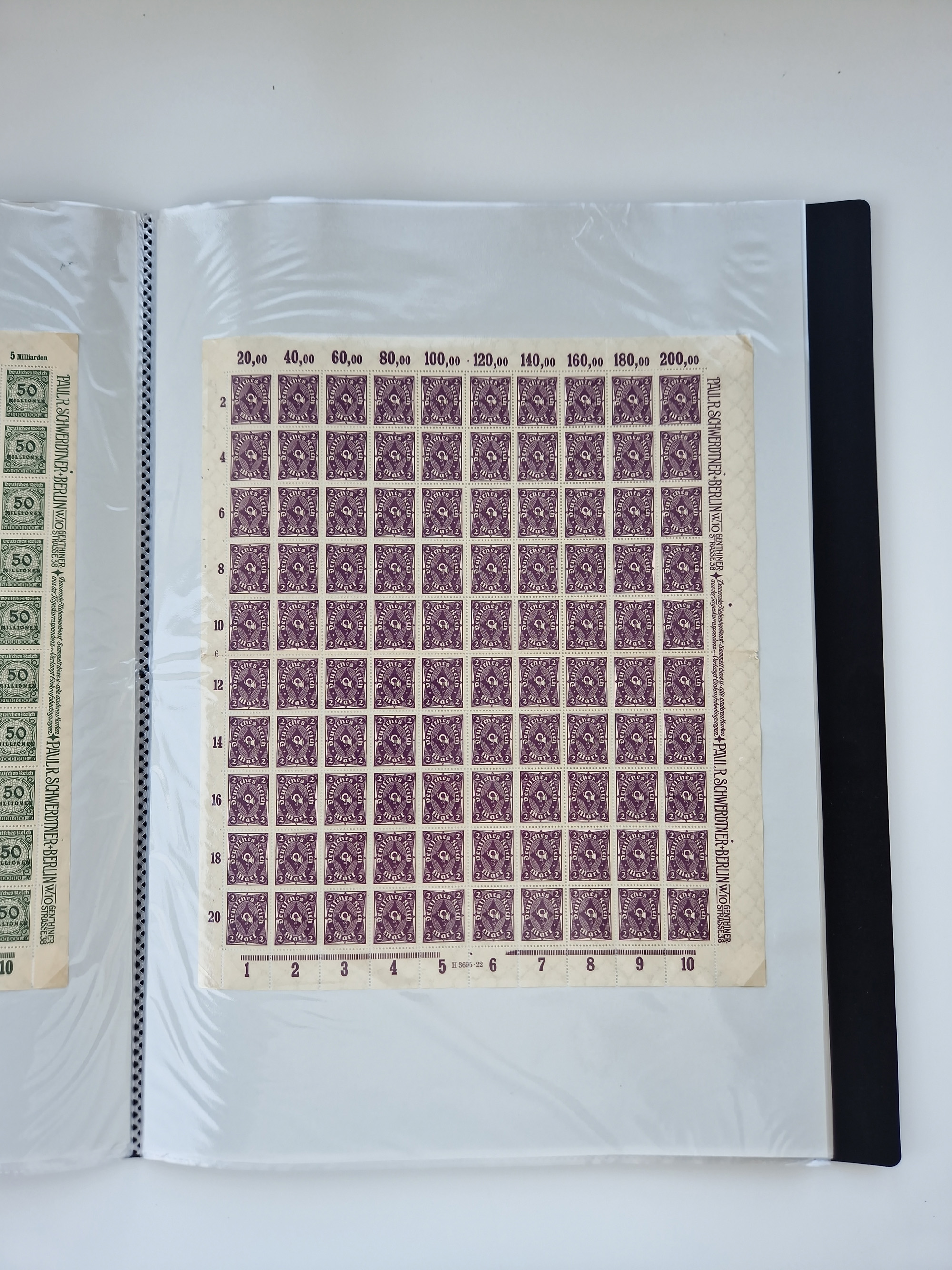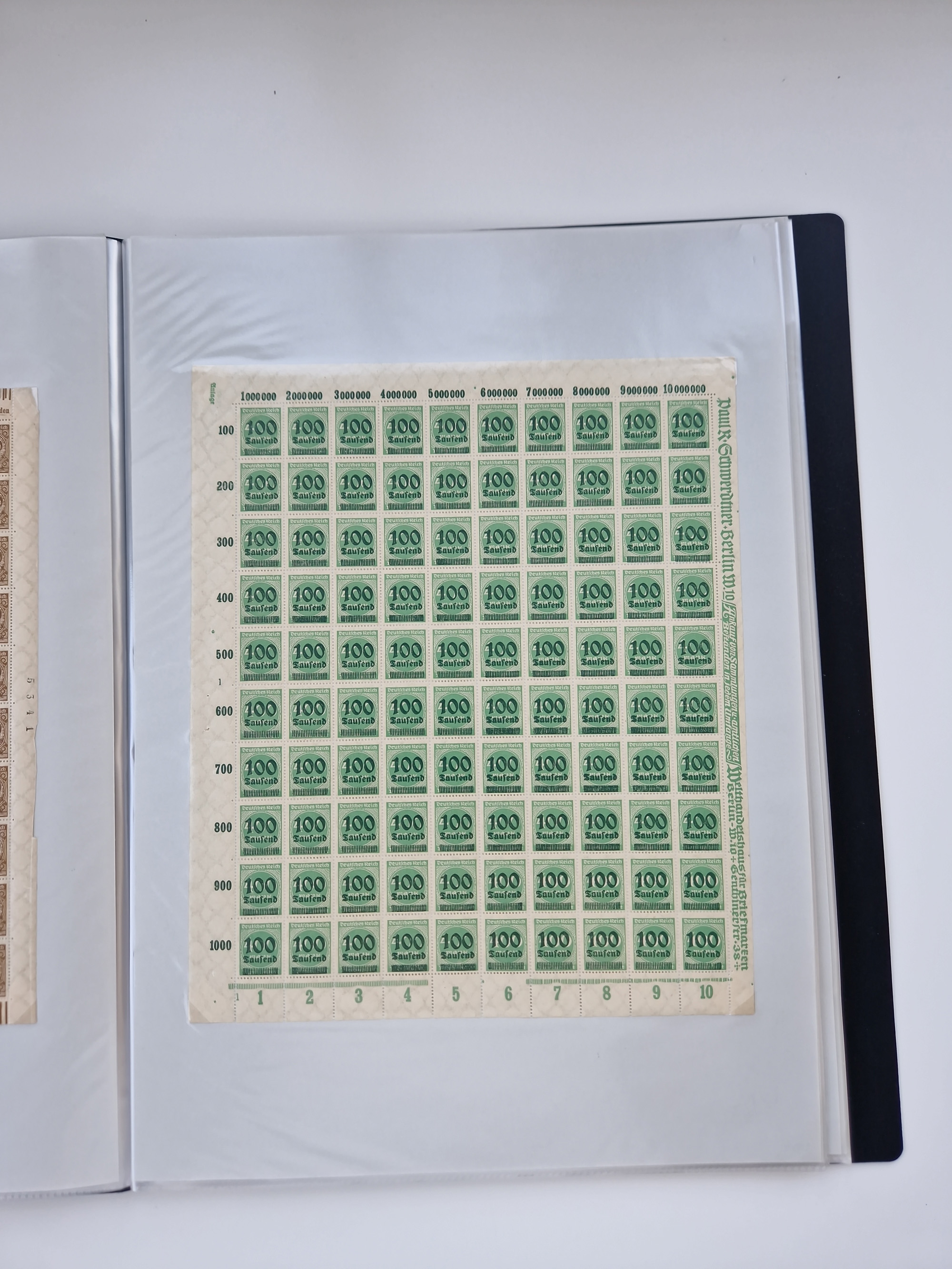 1921/22, postfrischer und ungebrauchter Bestand mit etwas über 200 Bogen und Bogenteilen, dabei Walzen- und Plattenbogen, HAN, Druckereizeichen, Pl.-Nr., auch Wz. Waffeln und Bogentaschen, teils sign. INFLA Berlin, etwas unterschiedliche Erhaltung, in zwei Ordnern