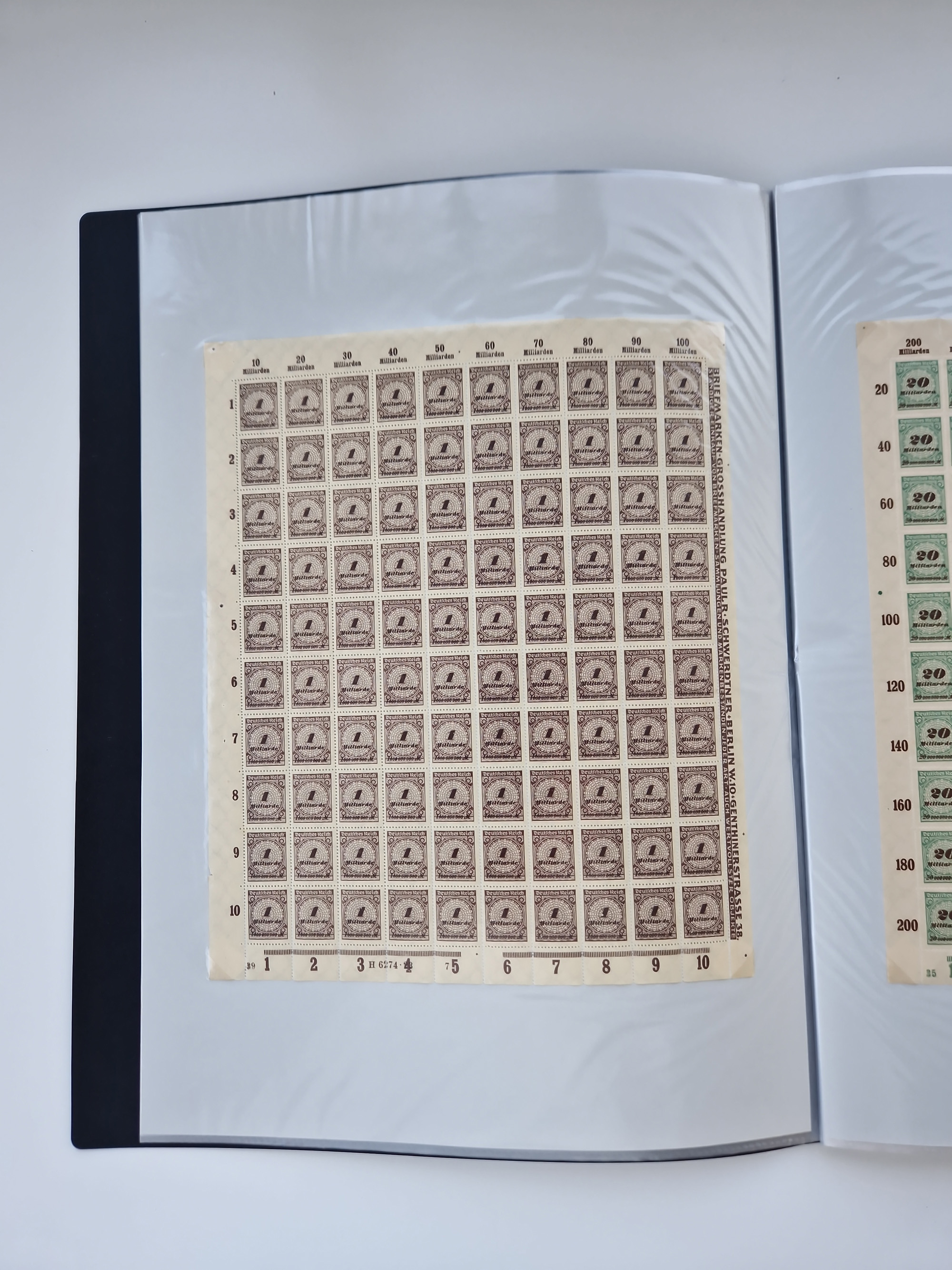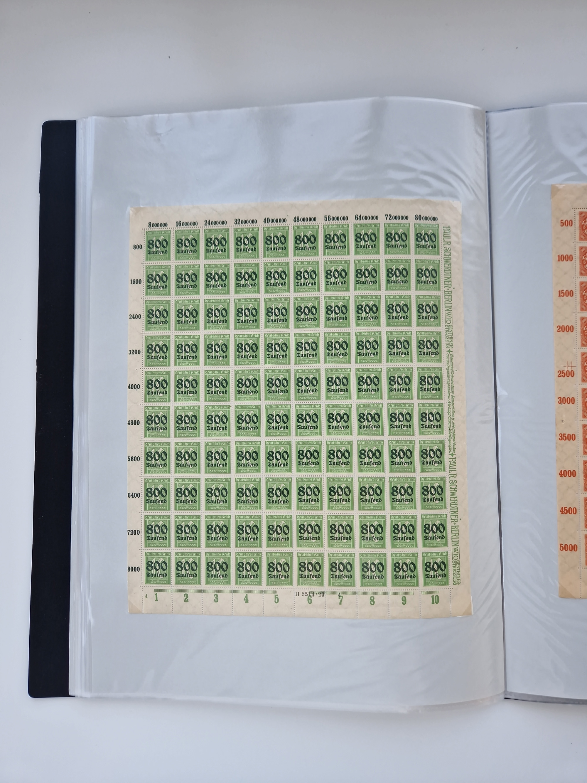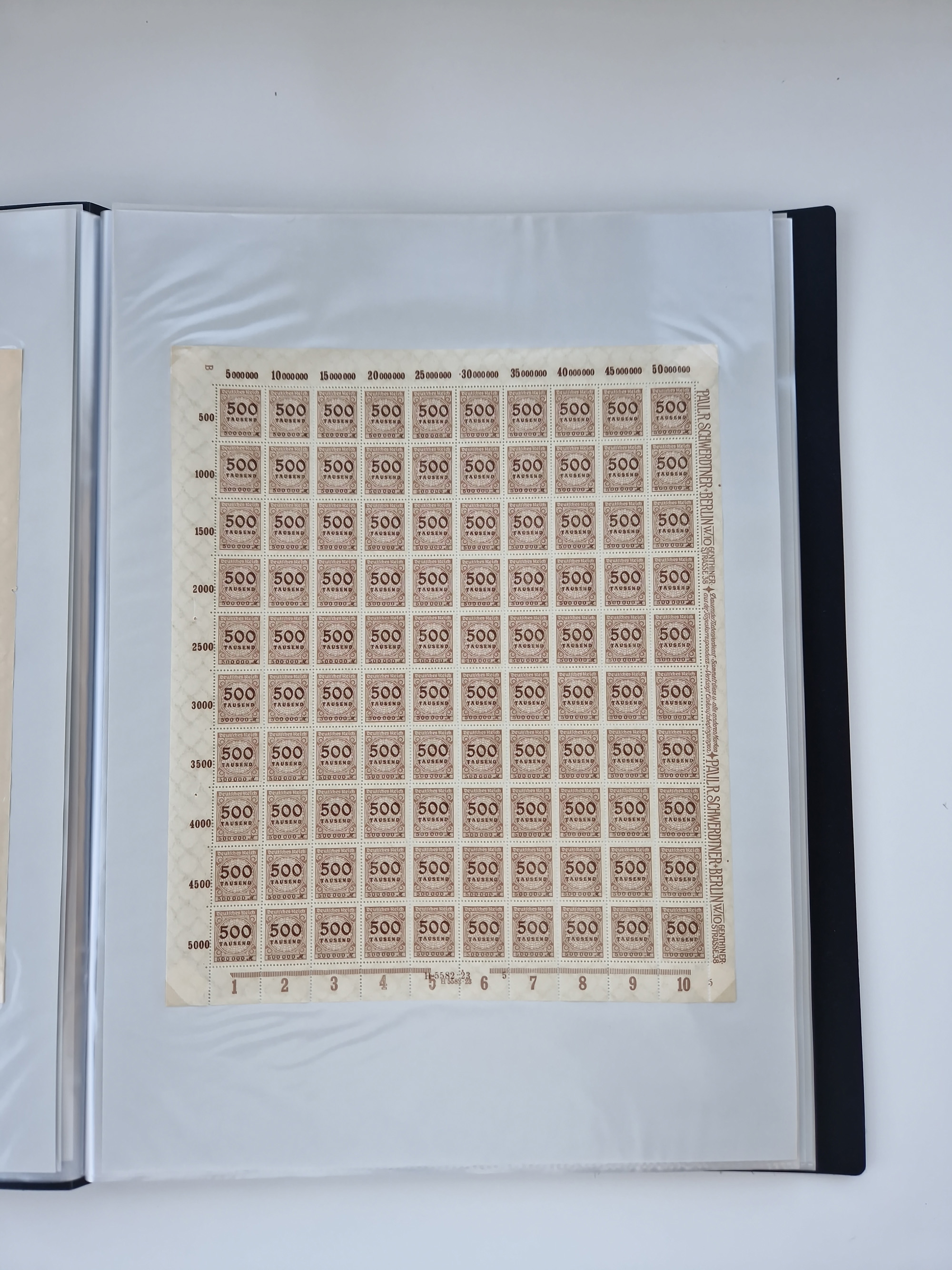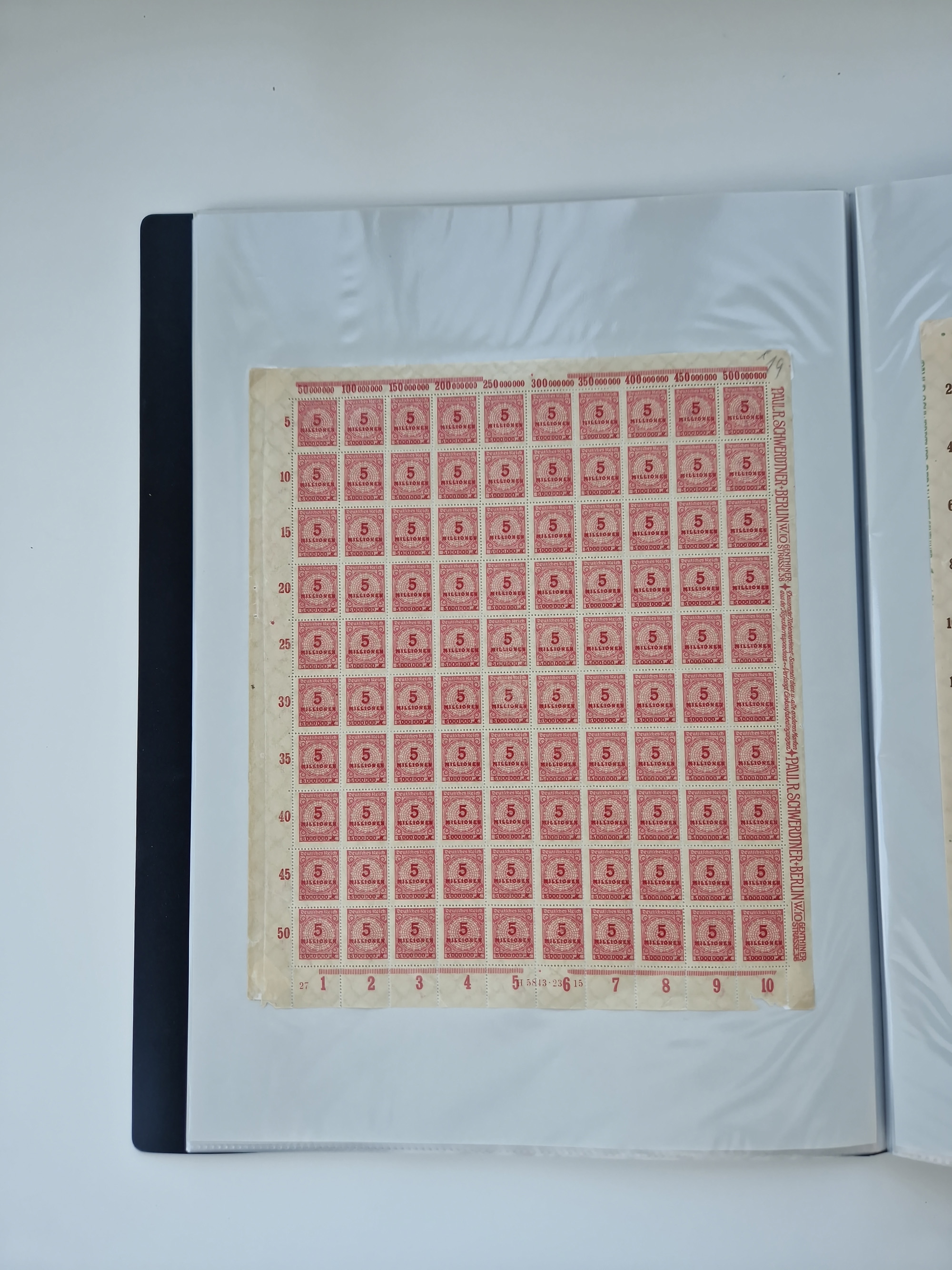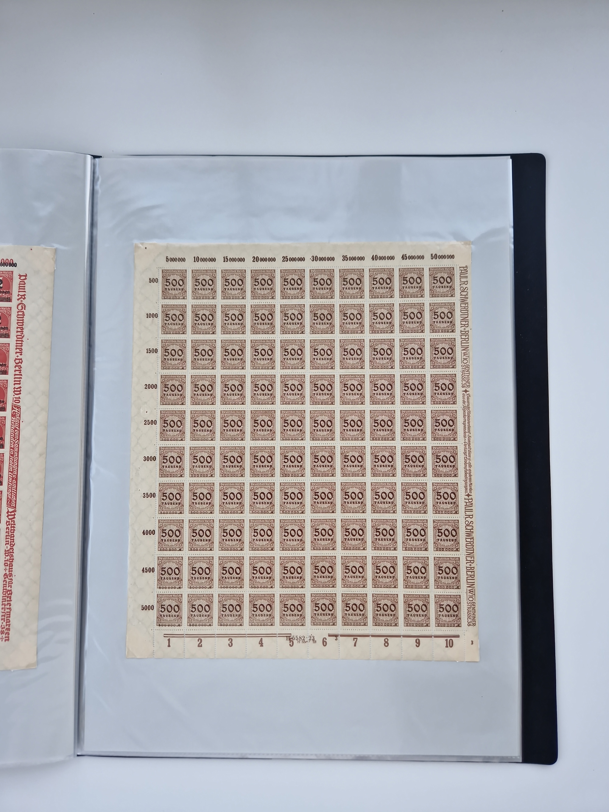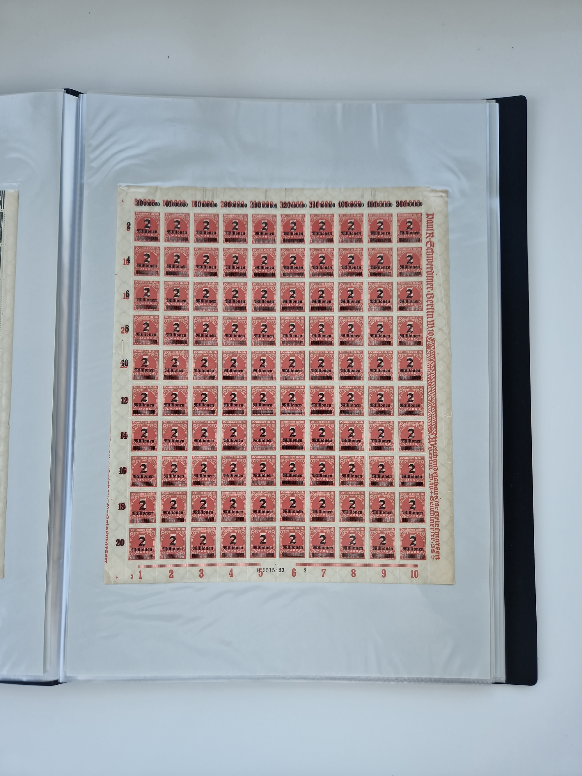 1921/22, postfrischer und ungebrauchter Bestand mit etwas über 200 Bogen und Bogenteilen, dabei Walzen- und Plattenbogen, HAN, Druckereizeichen, Pl.-Nr., auch Wz. Waffeln und Bogentaschen, teils sign. INFLA Berlin, etwas unterschiedliche Erhaltung, in zwei Ordnern