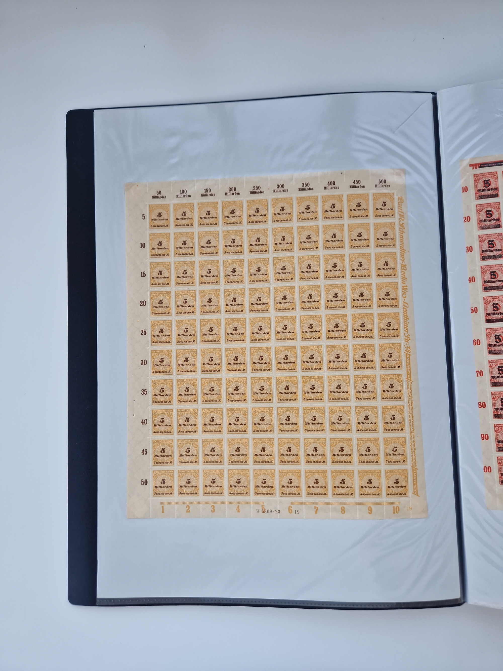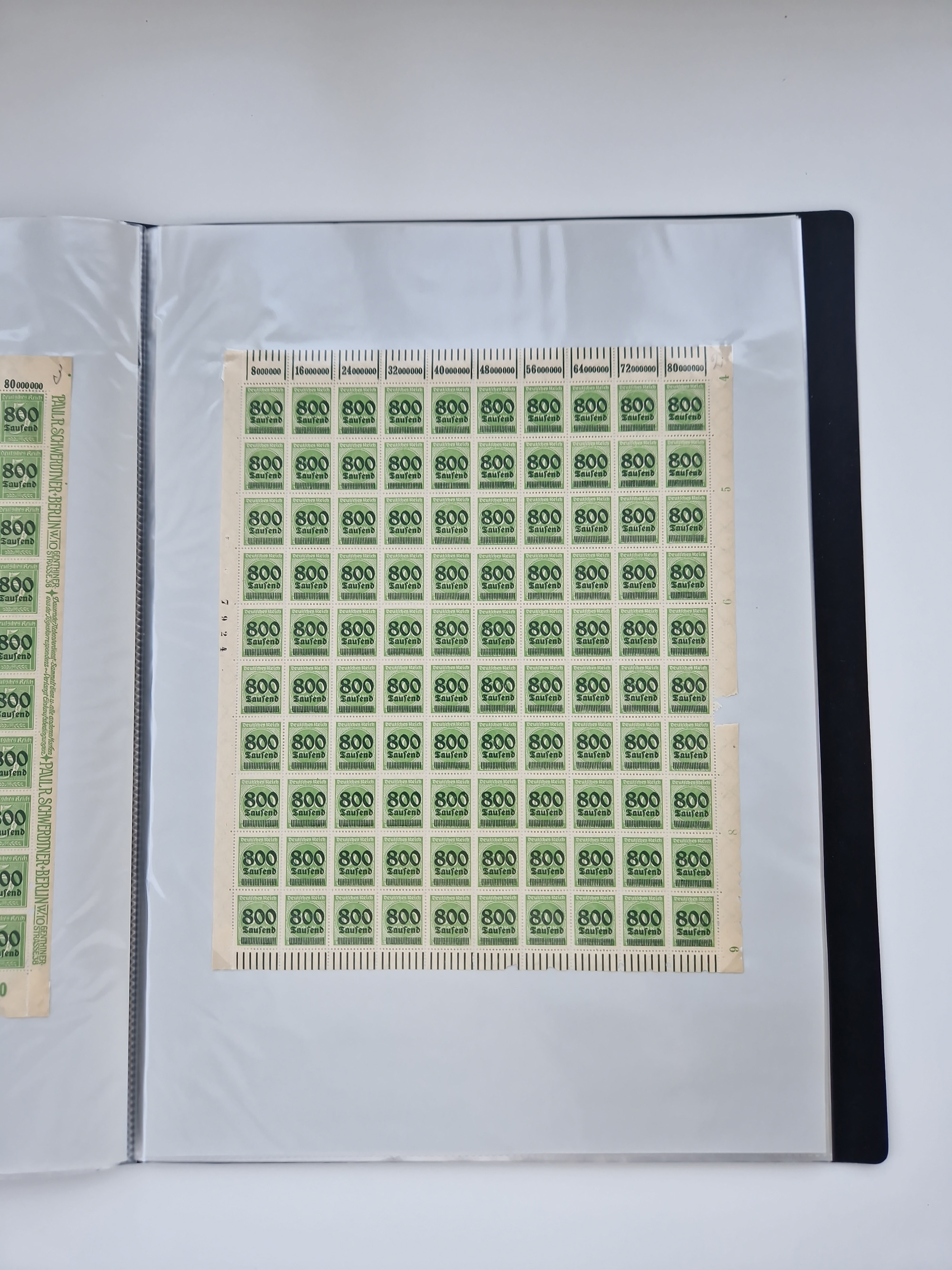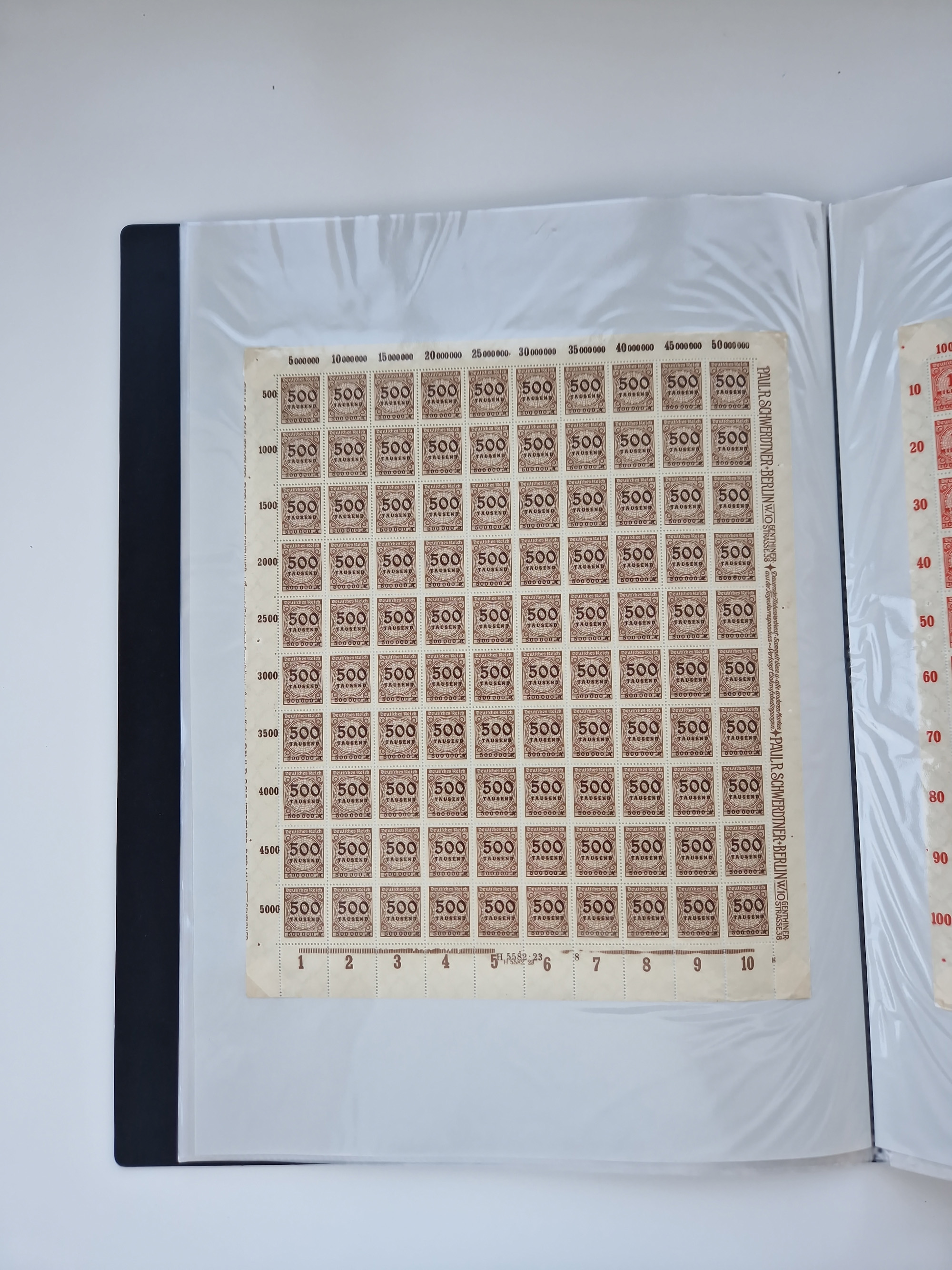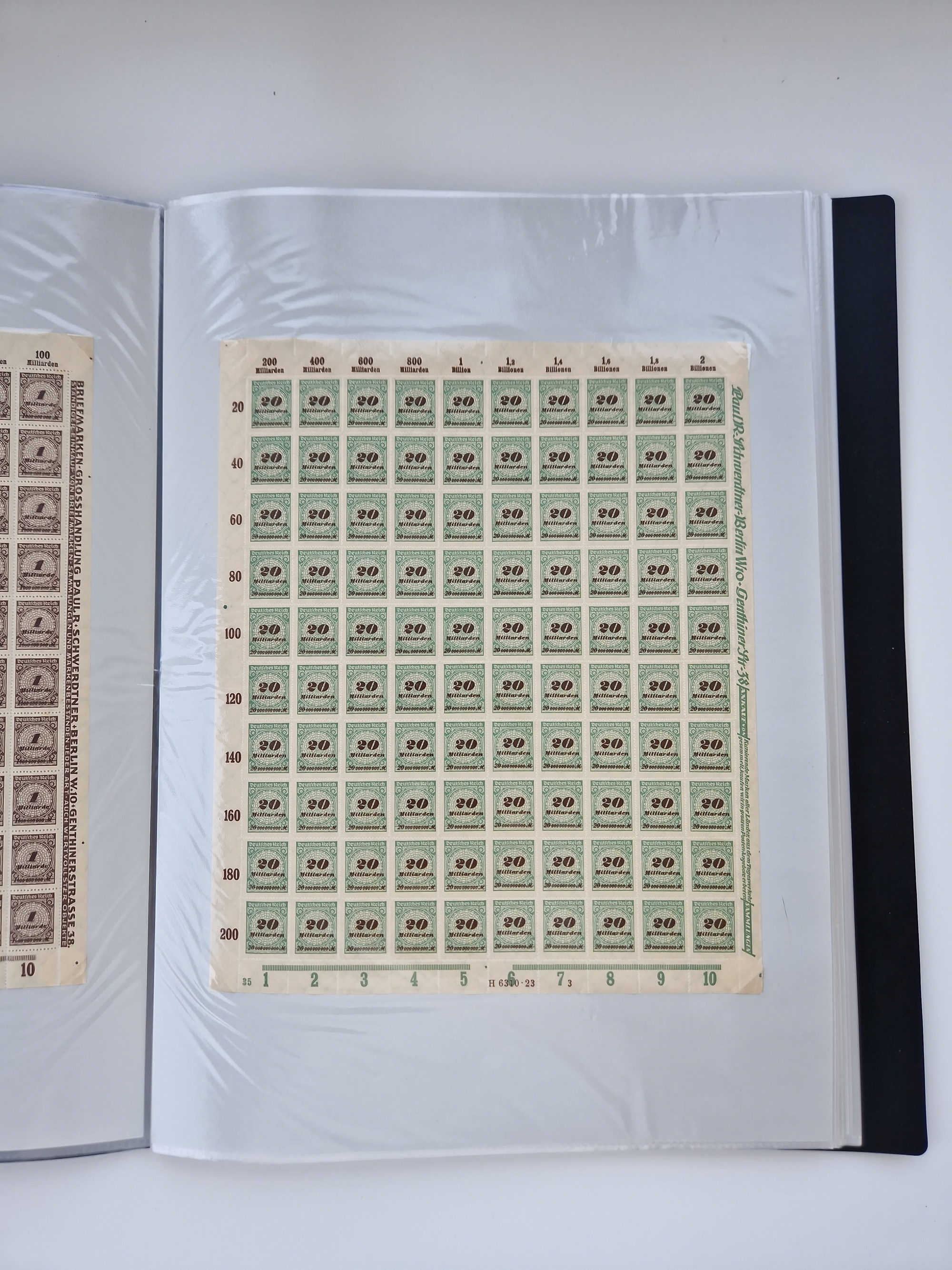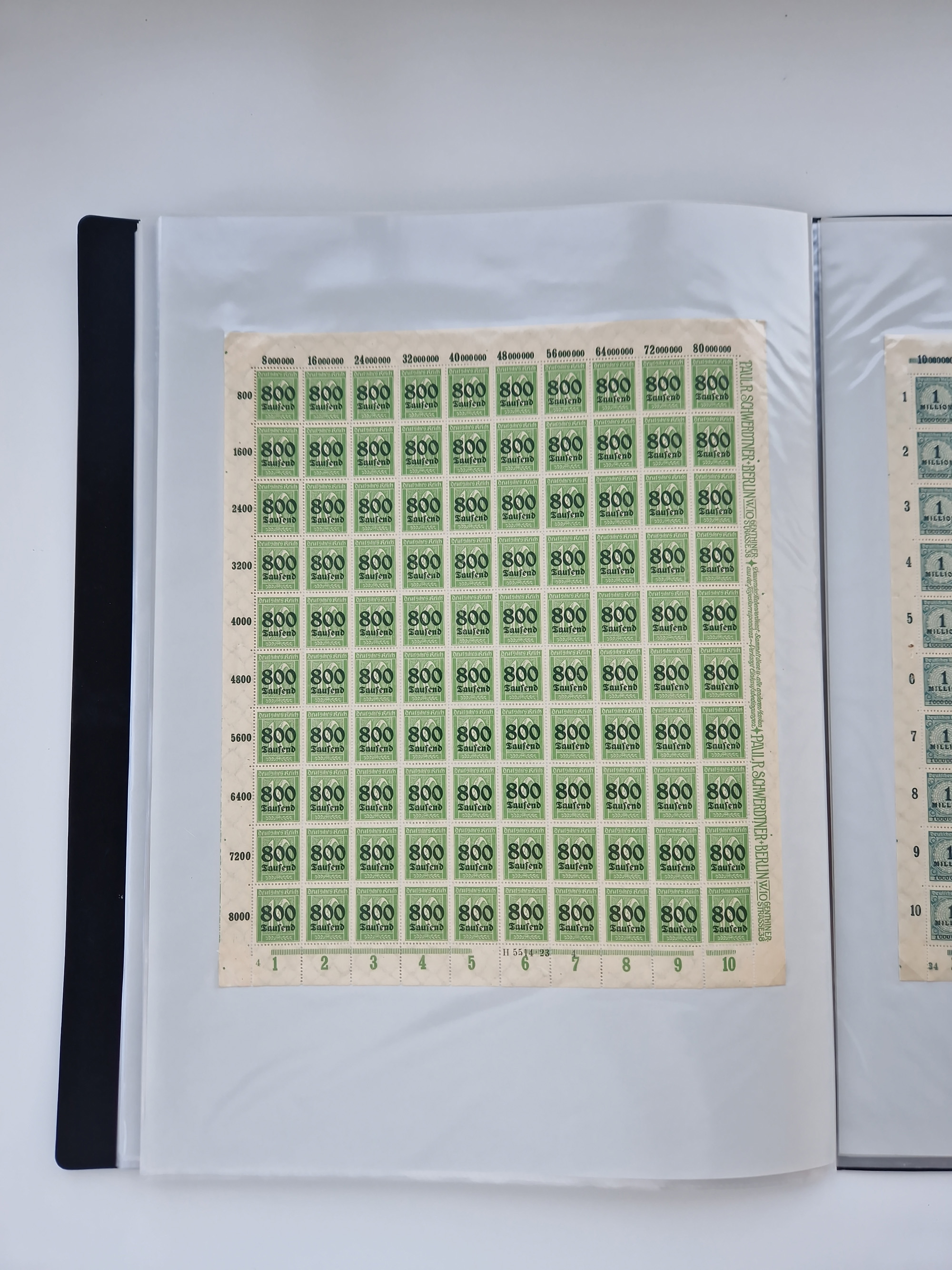 1921/22, postfrischer und ungebrauchter Bestand mit etwas über 200 Bogen und Bogenteilen, dabei Walzen- und Plattenbogen, HAN, Druckereizeichen, Pl.-Nr., auch Wz. Waffeln und Bogentaschen, teils sign. INFLA Berlin, etwas unterschiedliche Erhaltung, in zwei Ordnern