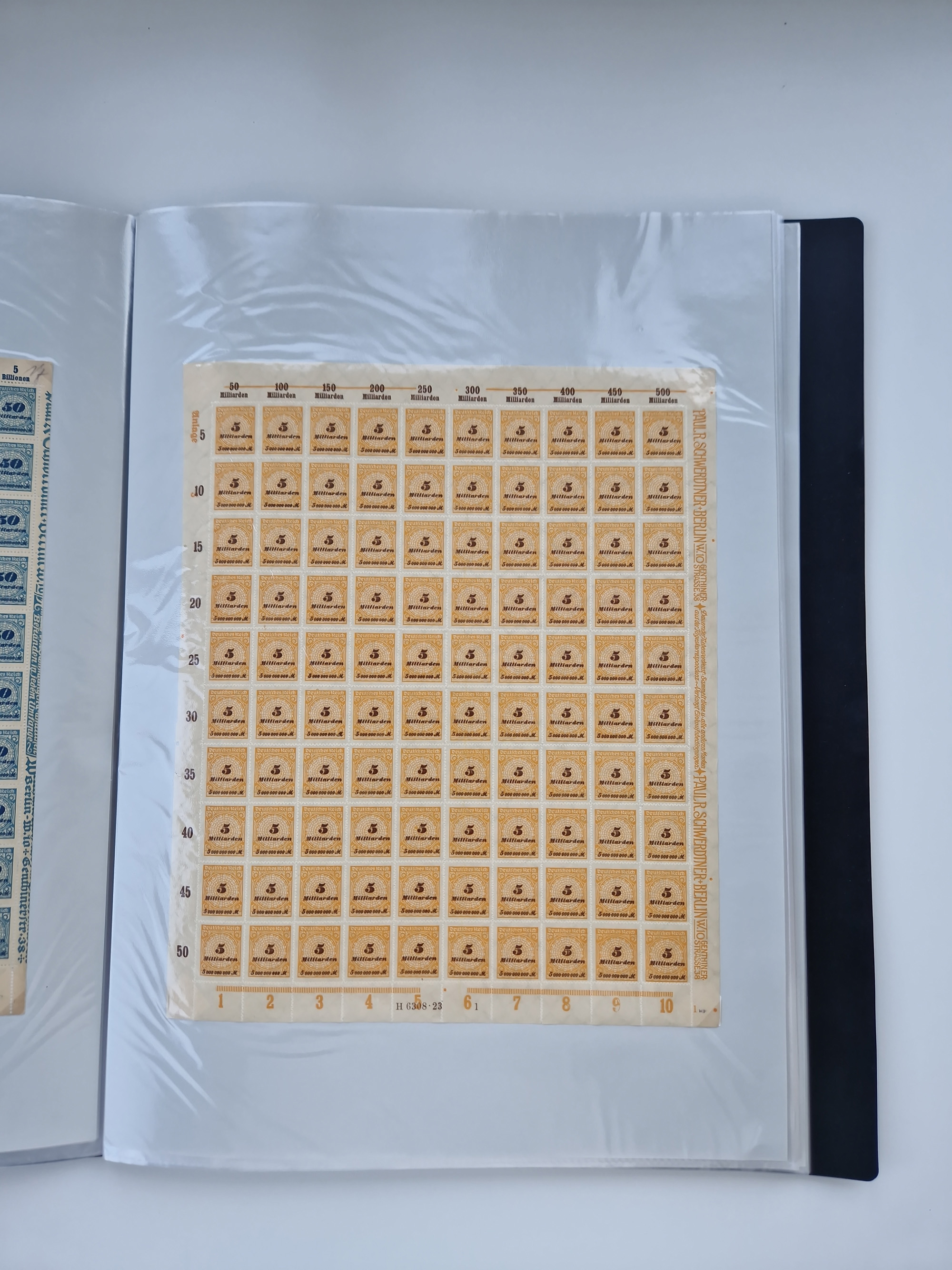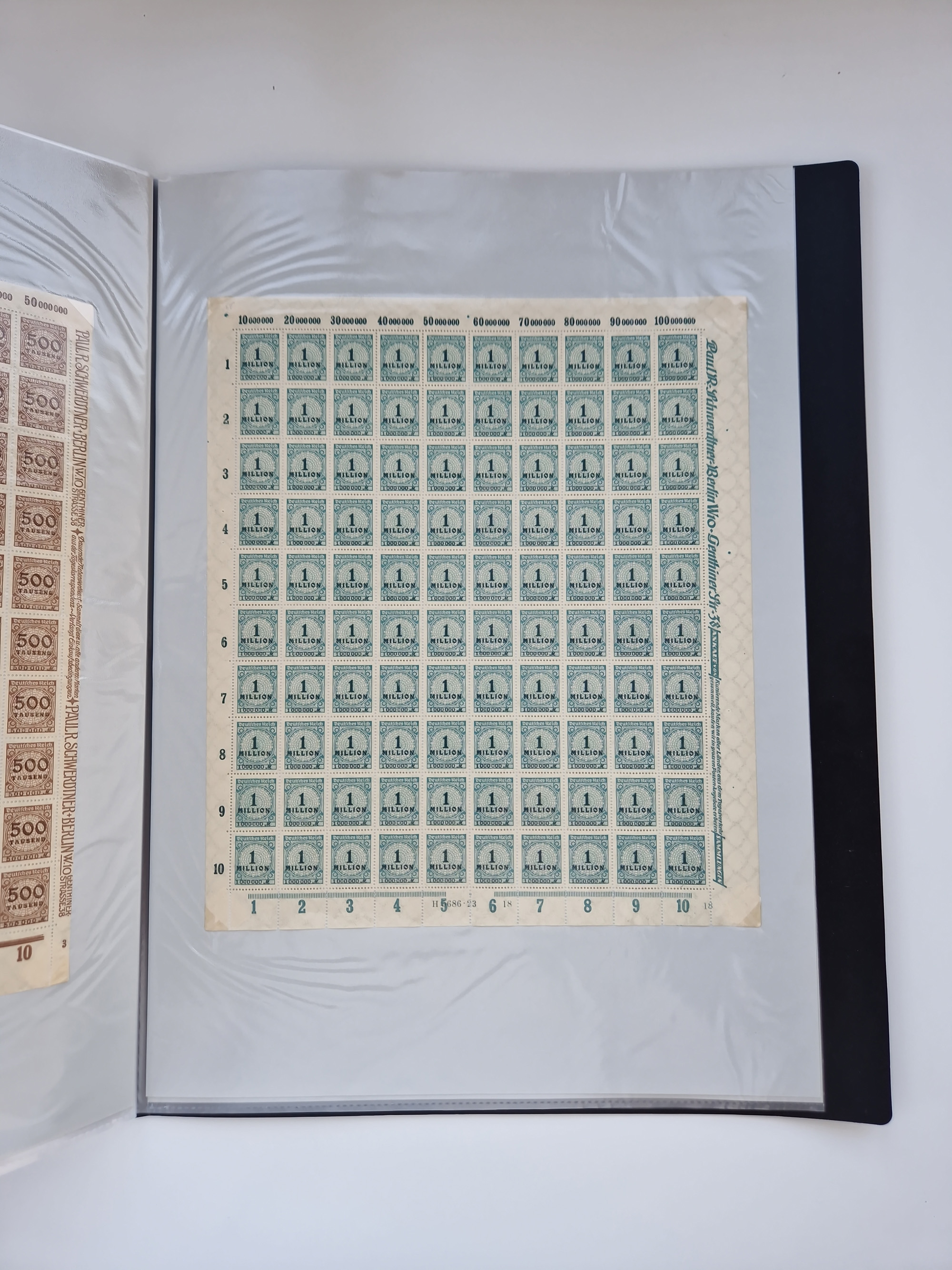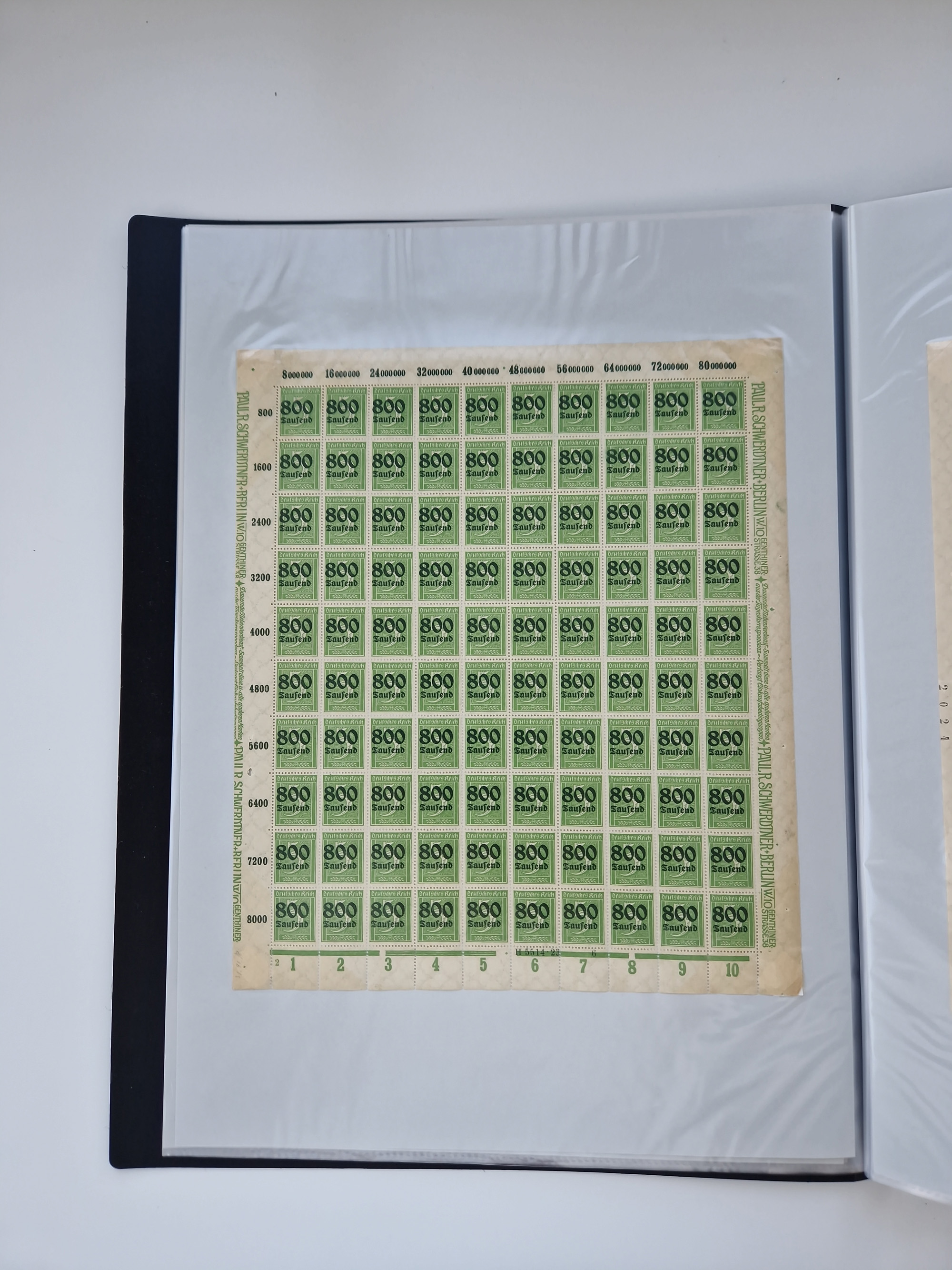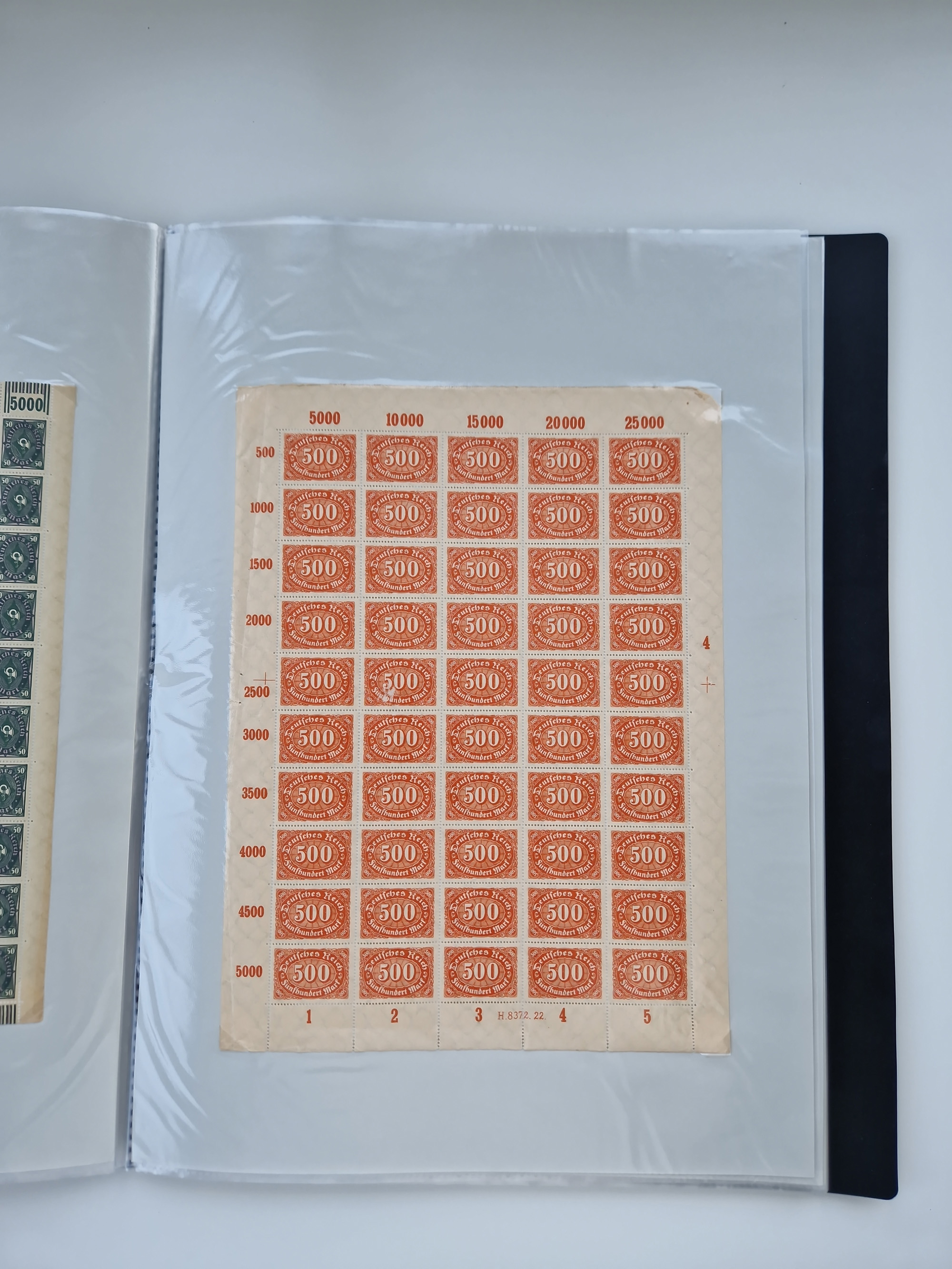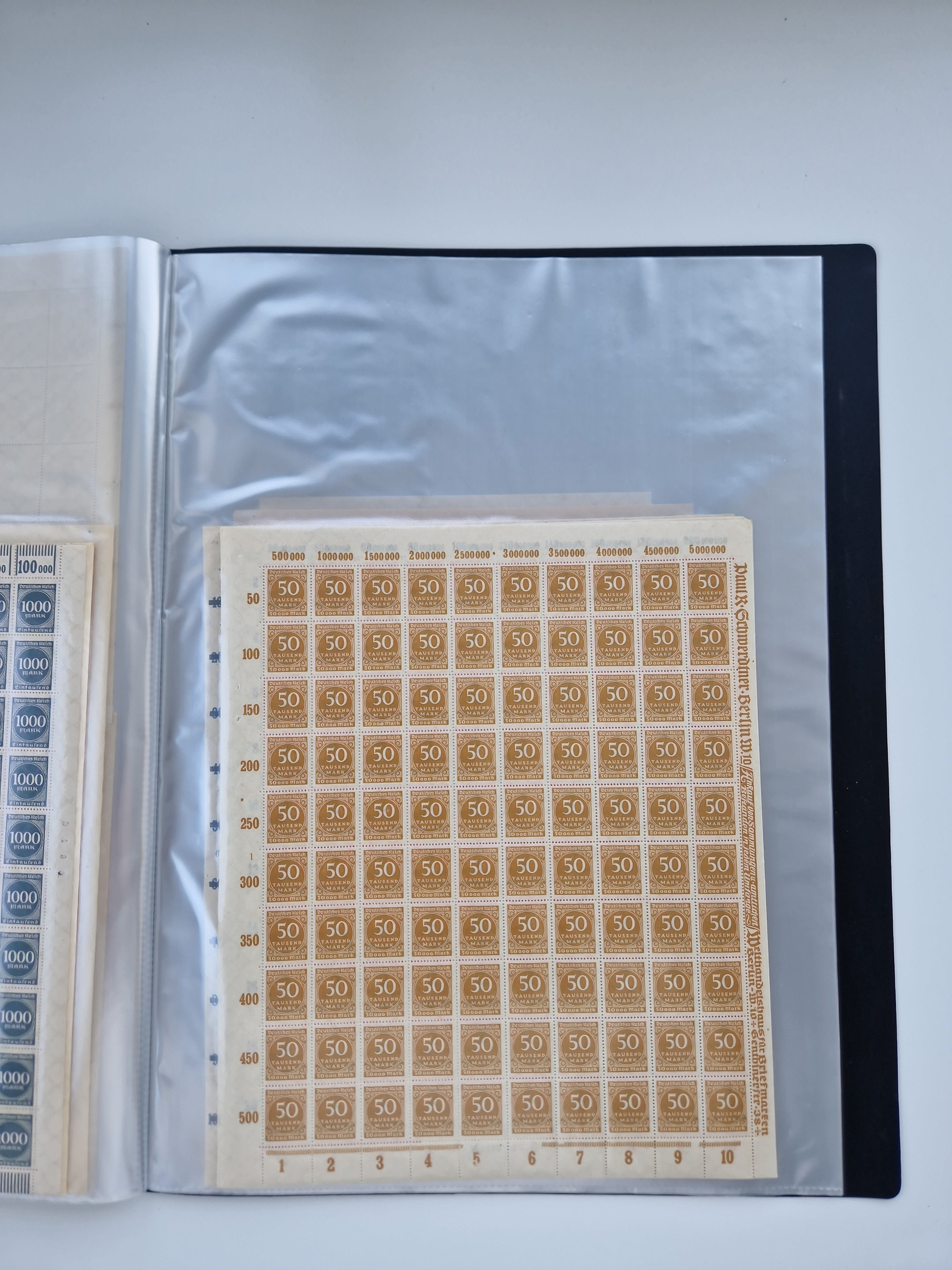 1921/22, postfrischer und ungebrauchter Bestand mit etwas über 200 Bogen und Bogenteilen, dabei Walzen- und Plattenbogen, HAN, Druckereizeichen, Pl.-Nr., auch Wz. Waffeln und Bogentaschen, teils sign. INFLA Berlin, etwas unterschiedliche Erhaltung, in zwei Ordnern