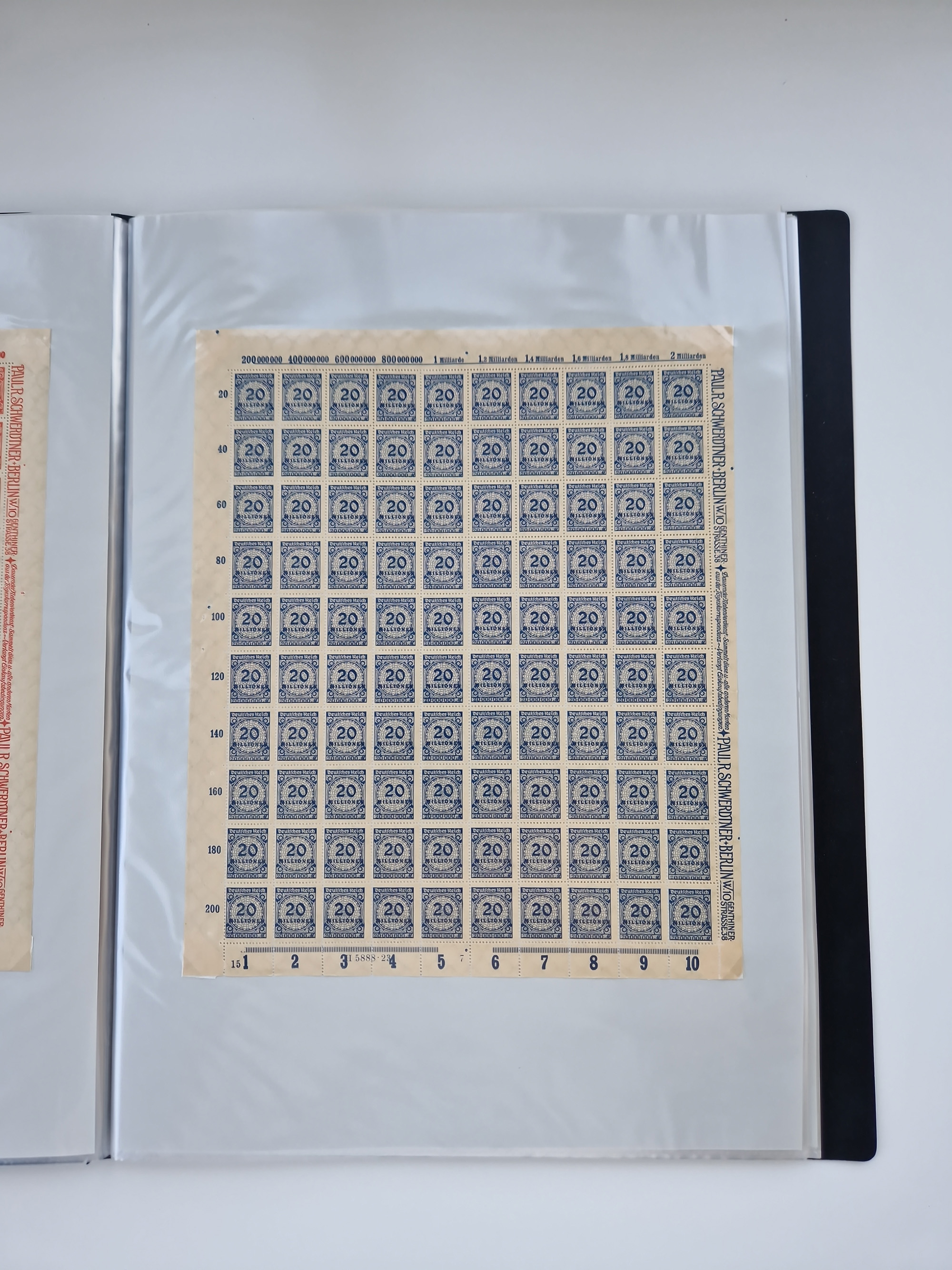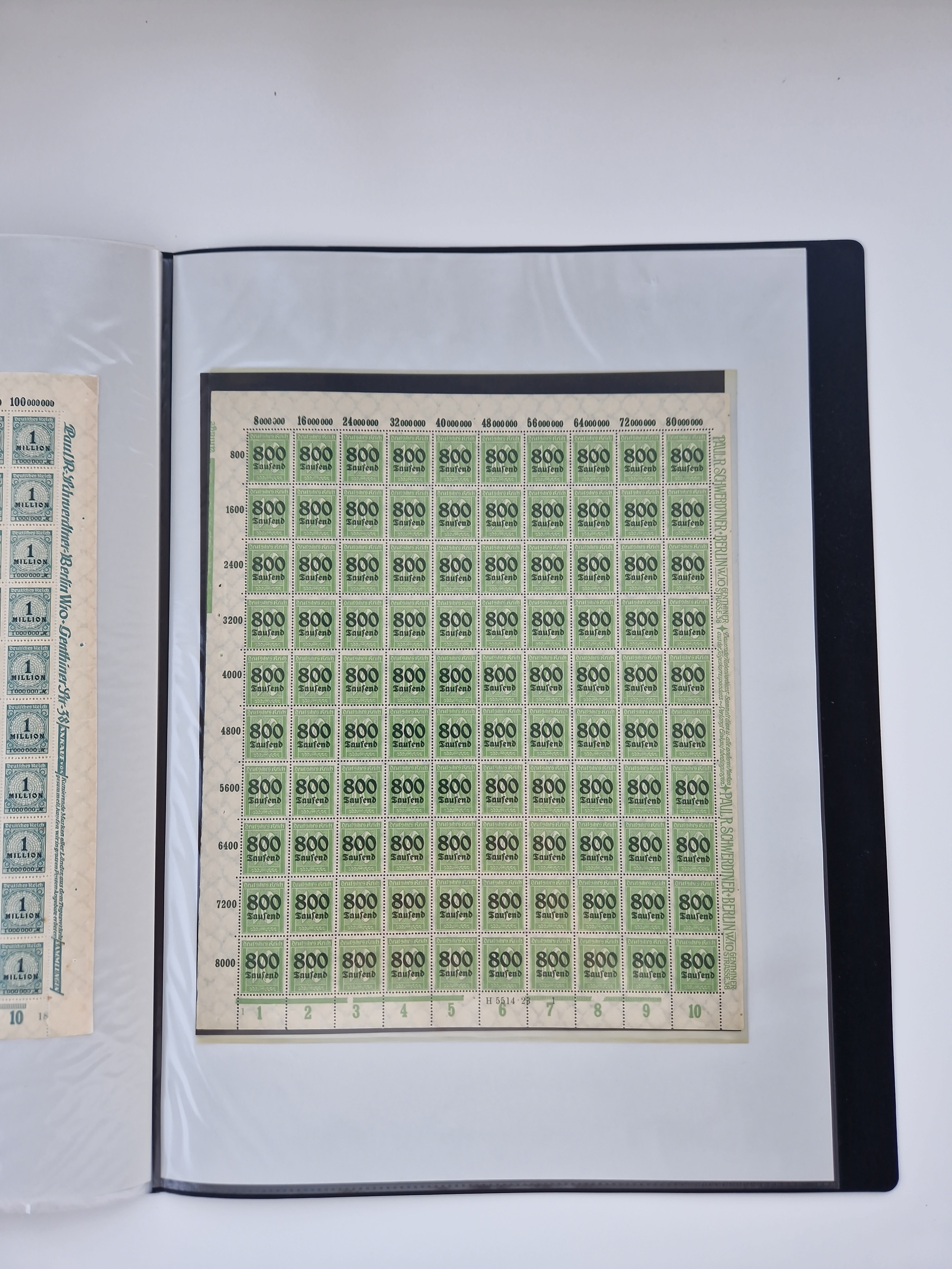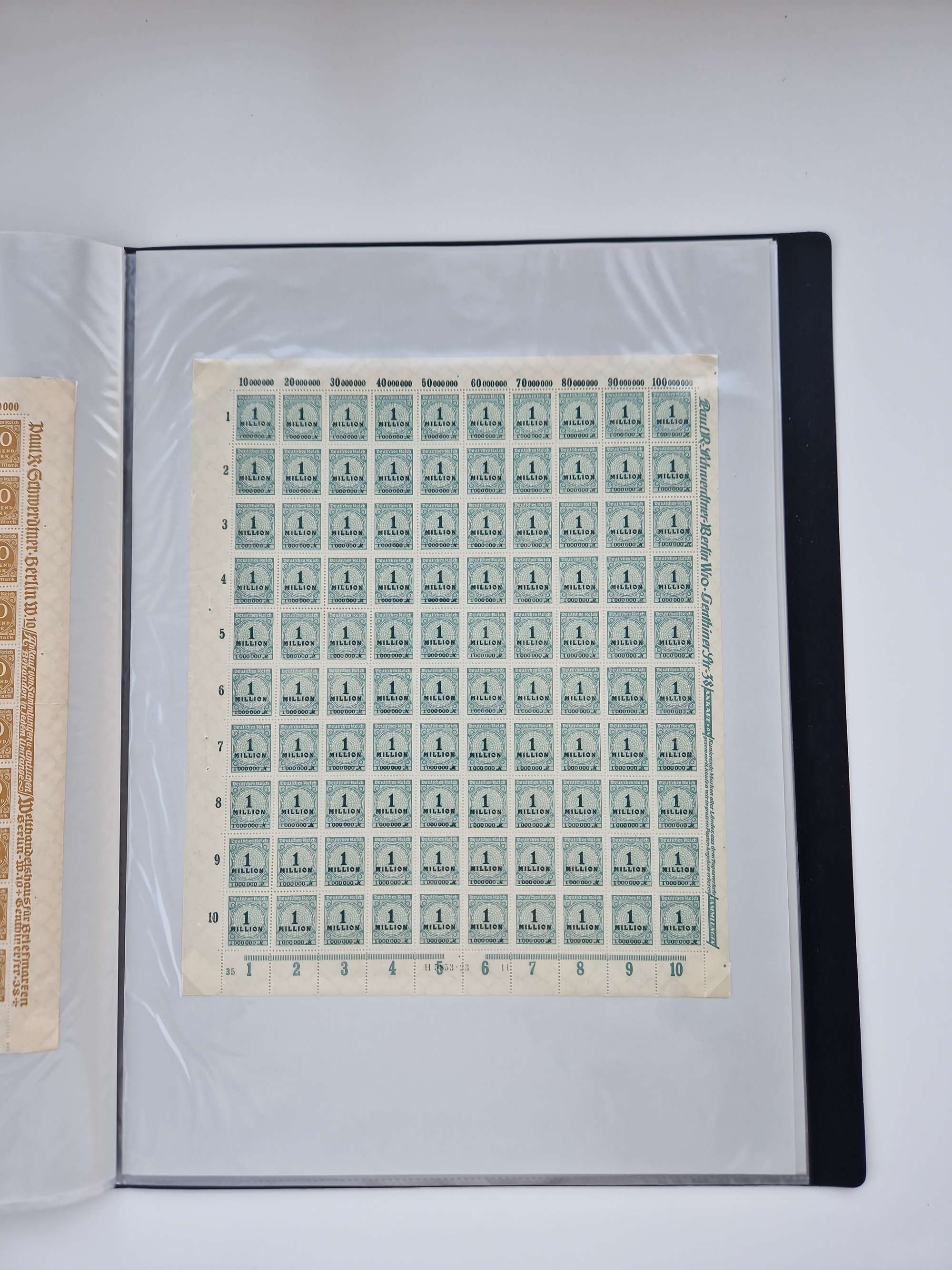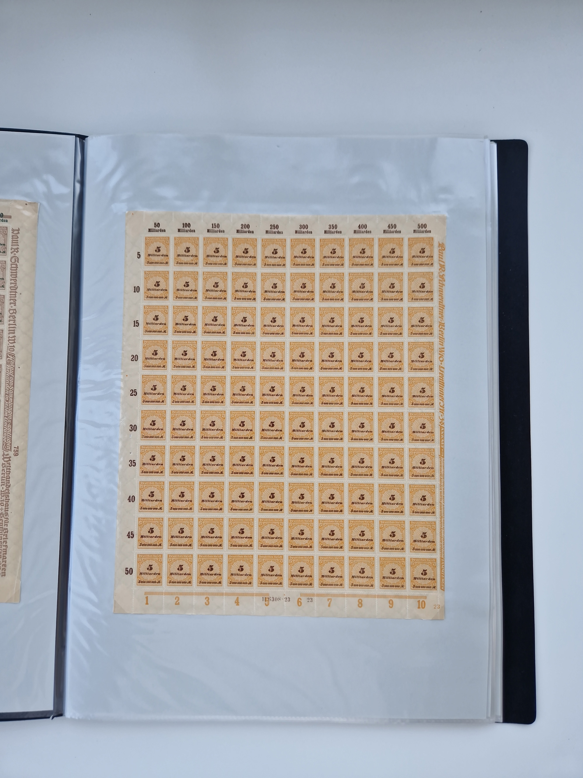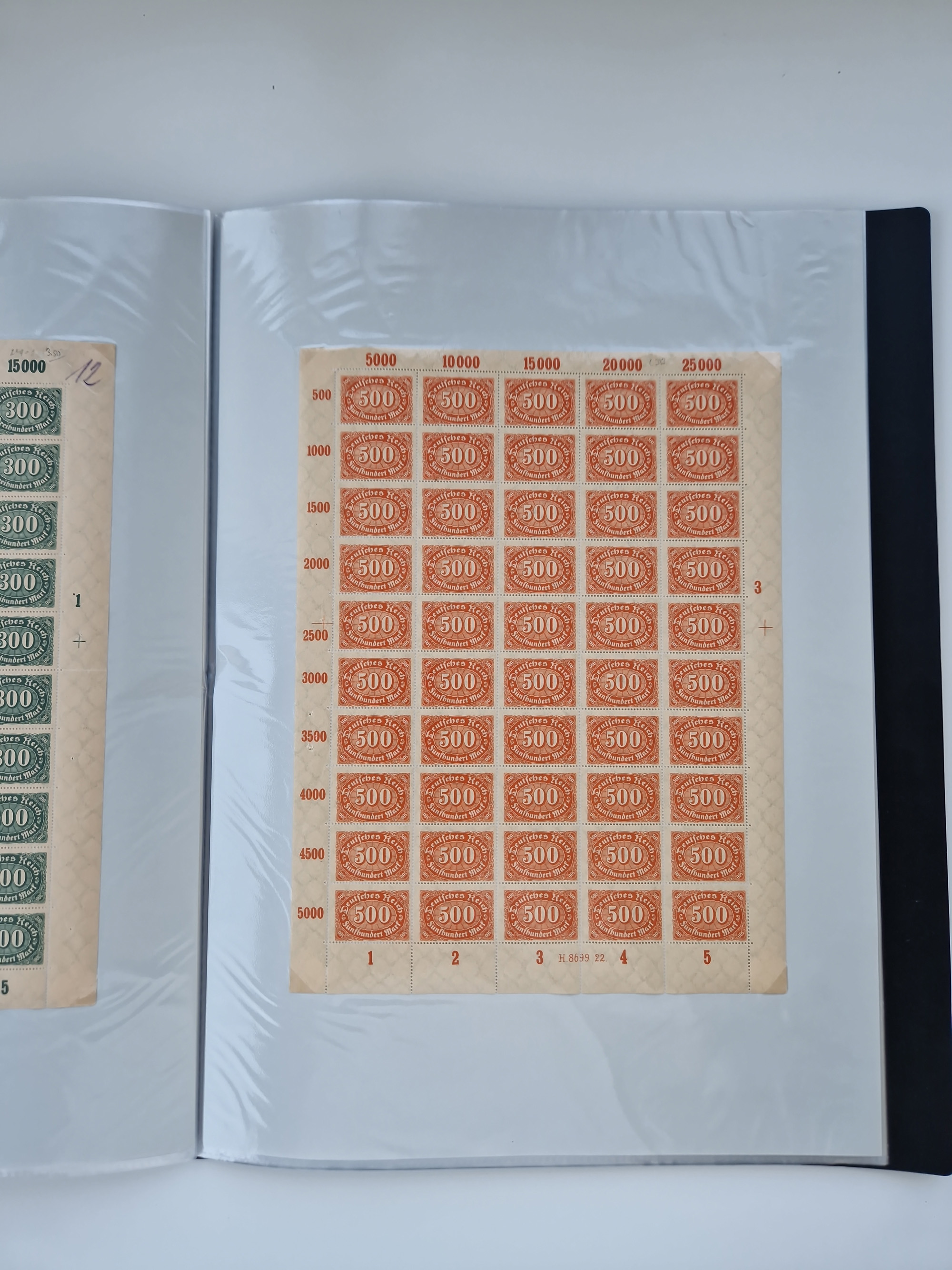 1921/22, postfrischer und ungebrauchter Bestand mit etwas über 200 Bogen und Bogenteilen, dabei Walzen- und Plattenbogen, HAN, Druckereizeichen, Pl.-Nr., auch Wz. Waffeln und Bogentaschen, teils sign. INFLA Berlin, etwas unterschiedliche Erhaltung, in zwei Ordnern