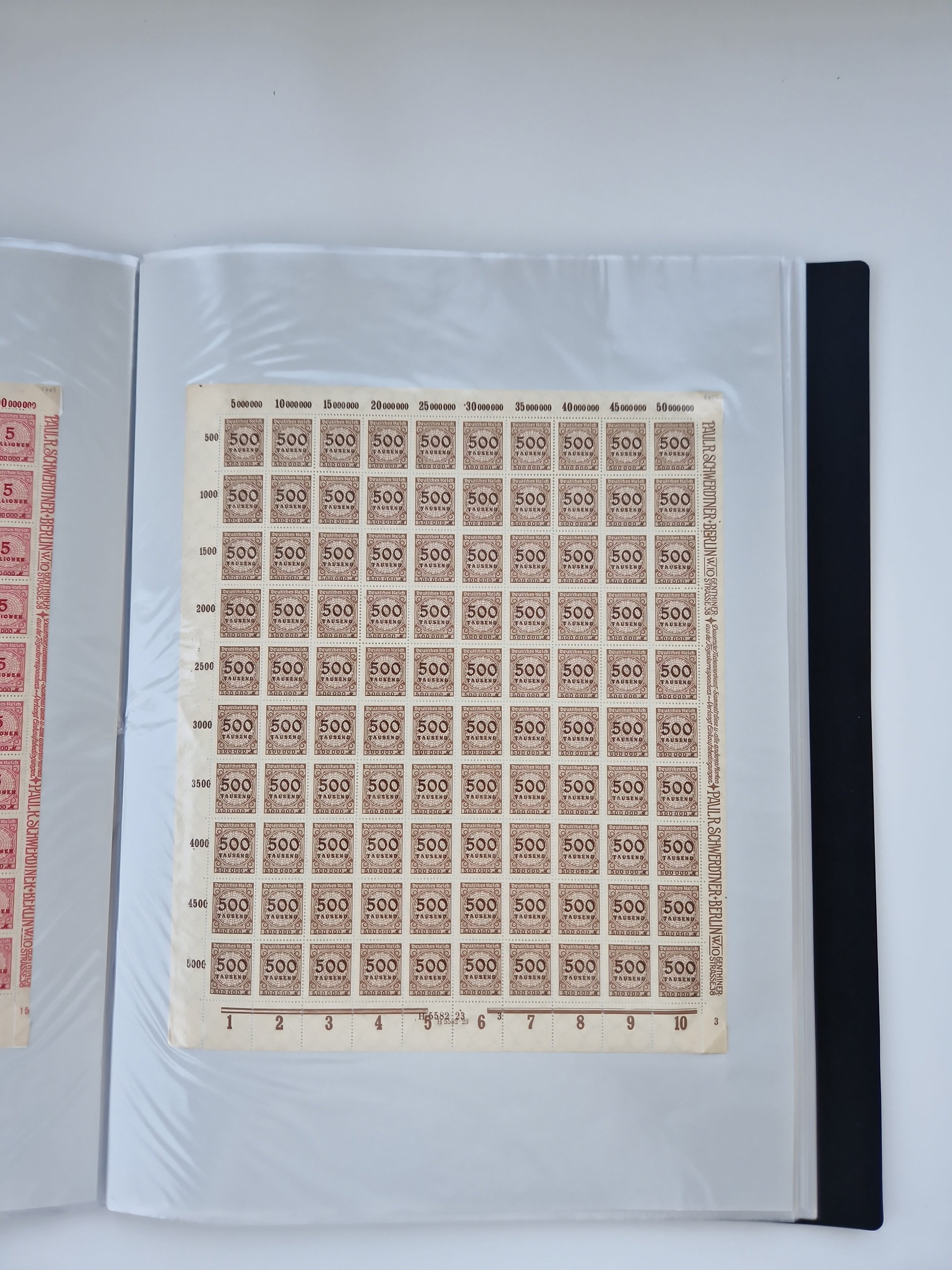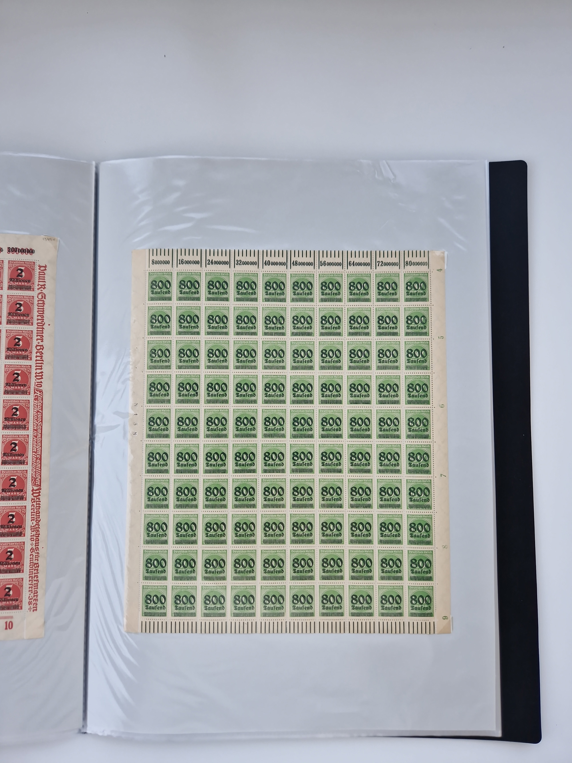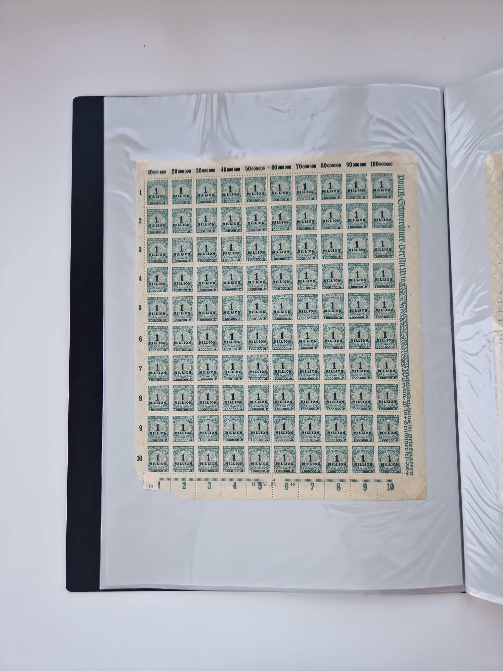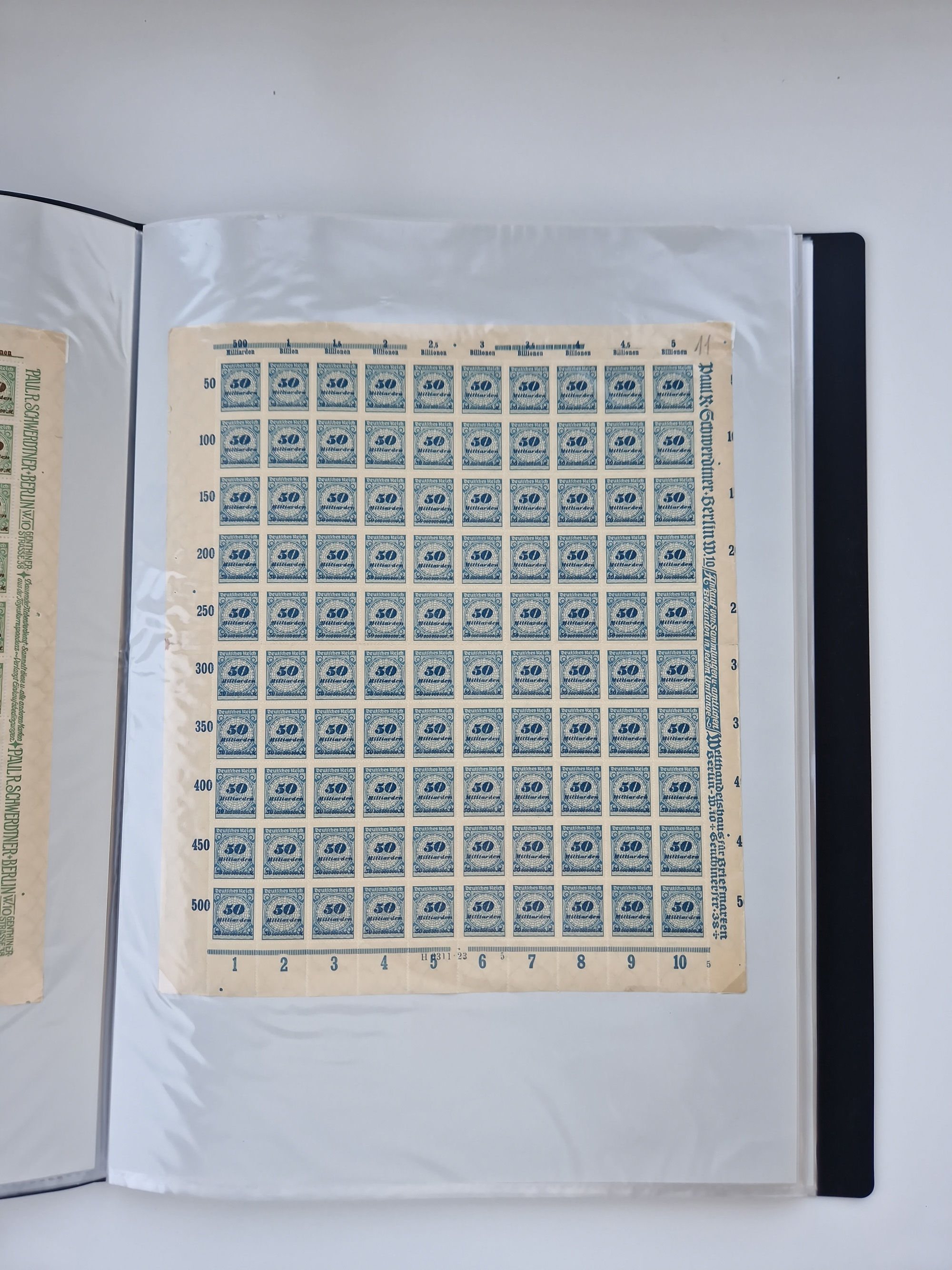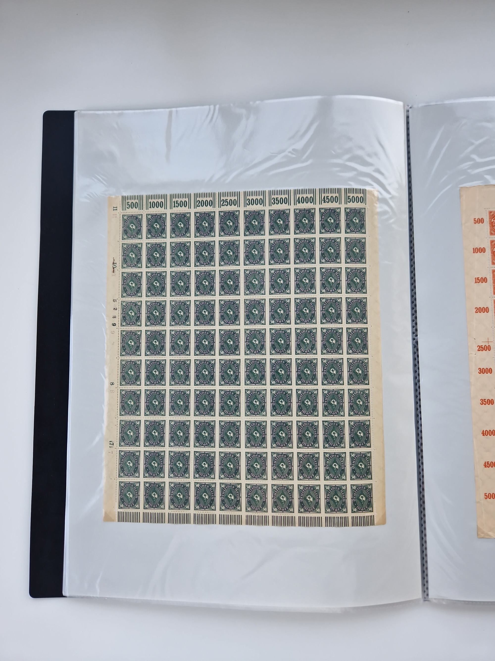 1921/22, postfrischer und ungebrauchter Bestand mit etwas über 200 Bogen und Bogenteilen, dabei Walzen- und Plattenbogen, HAN, Druckereizeichen, Pl.-Nr., auch Wz. Waffeln und Bogentaschen, teils sign. INFLA Berlin, etwas unterschiedliche Erhaltung, in zwei Ordnern