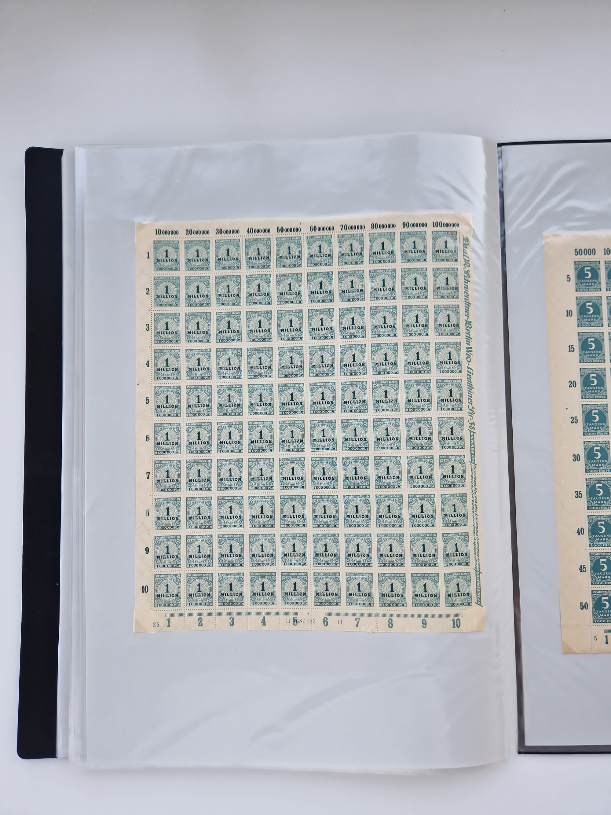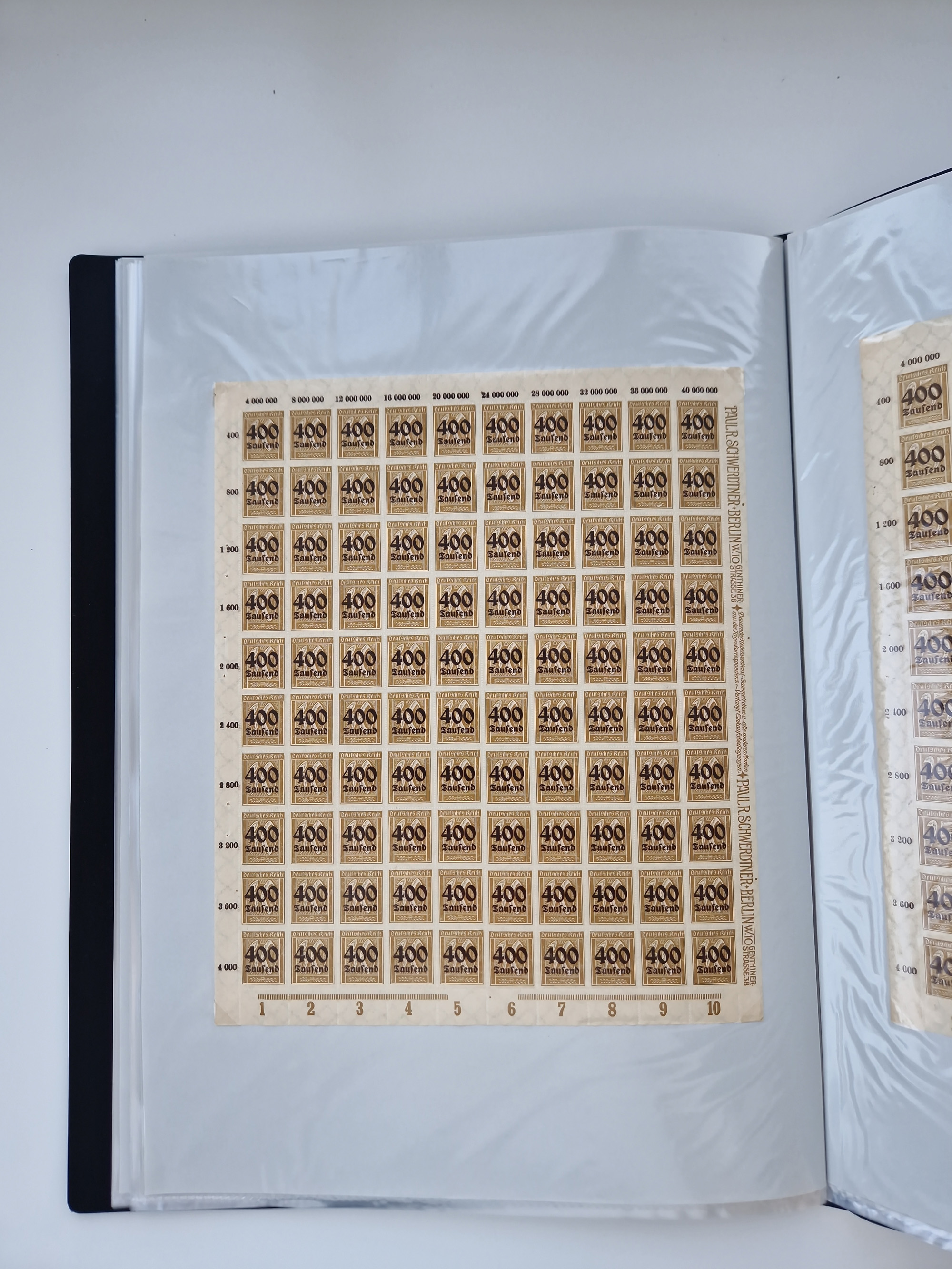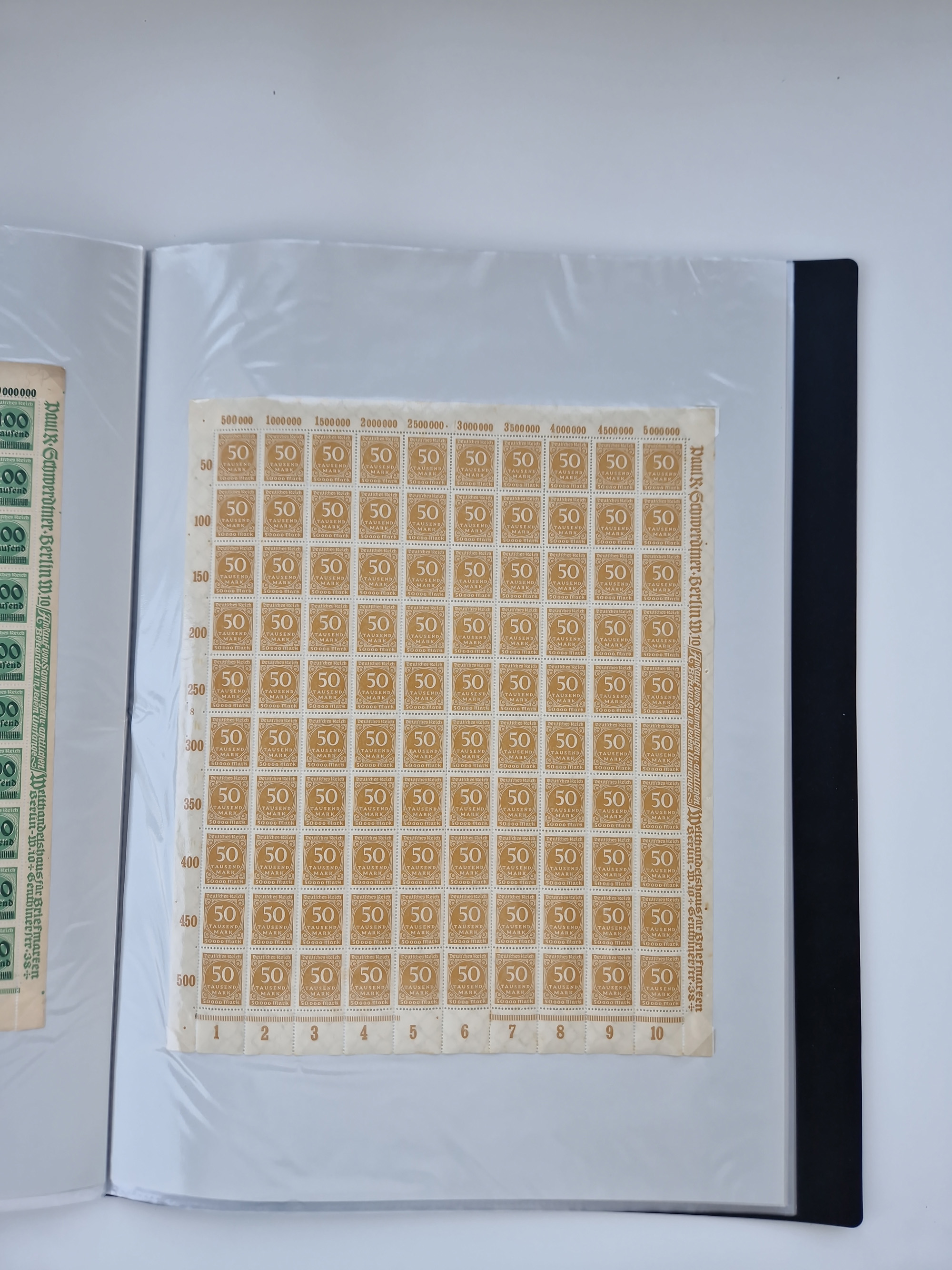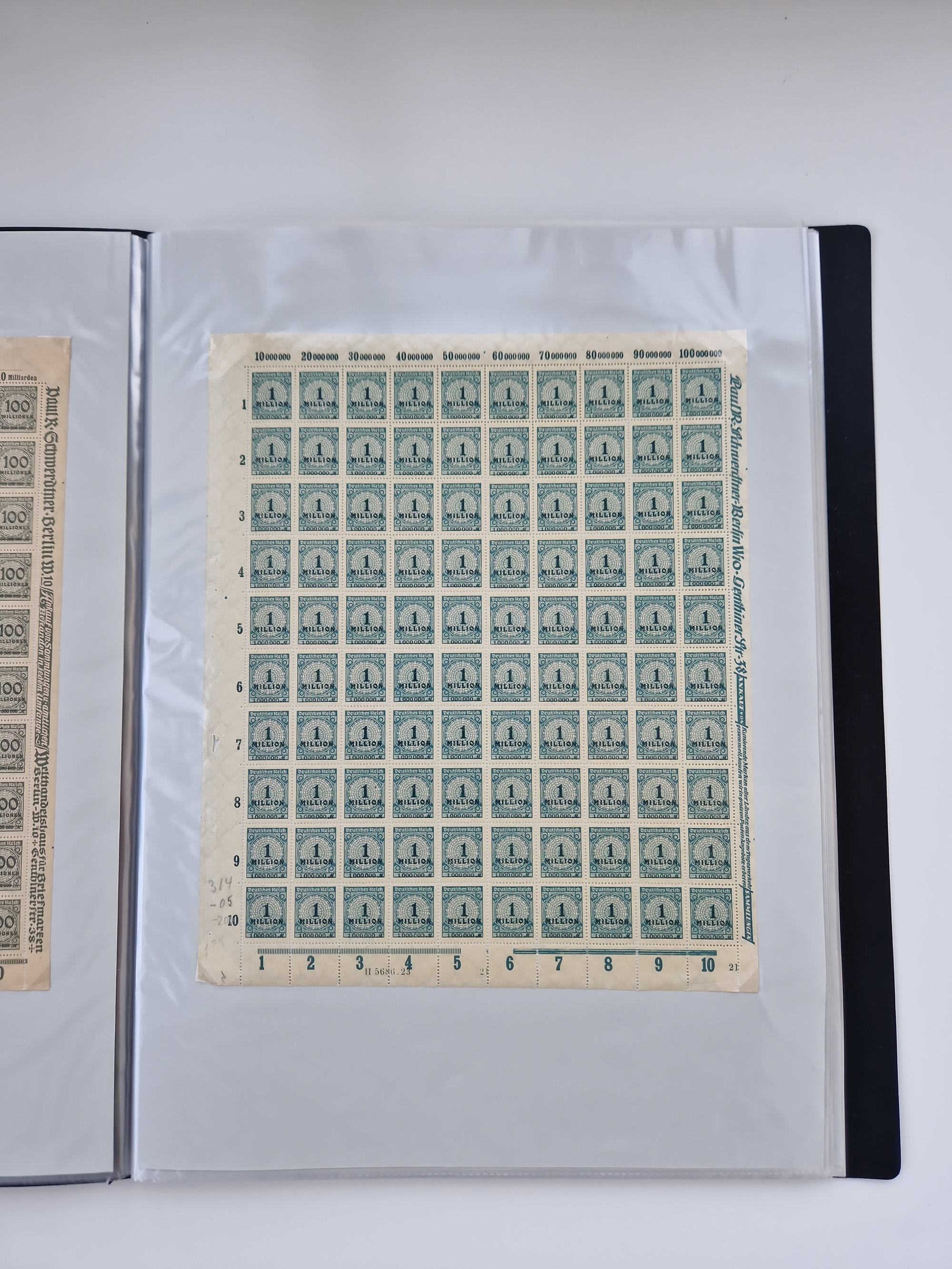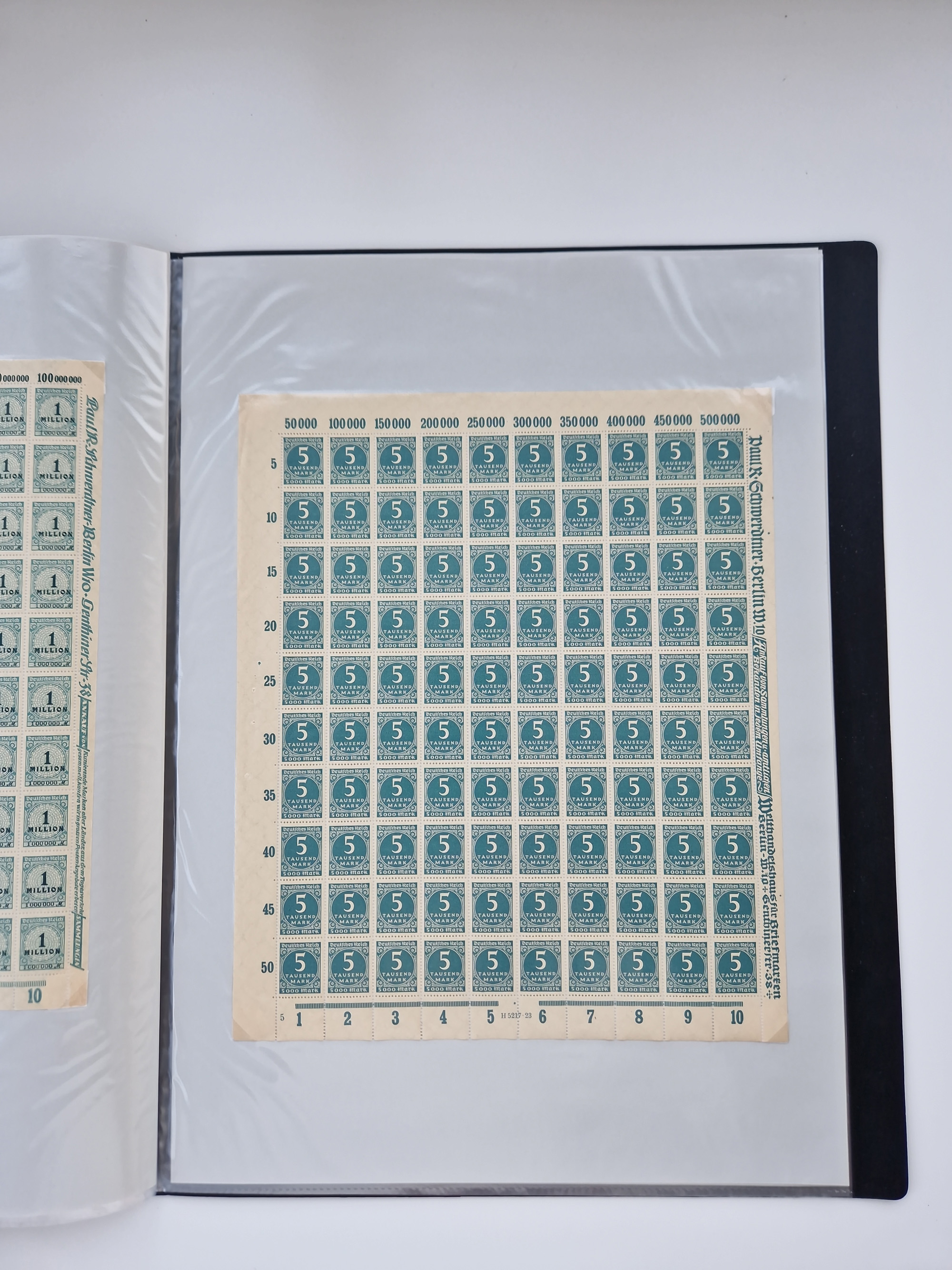 1921/22, postfrischer und ungebrauchter Bestand mit etwas über 200 Bogen und Bogenteilen, dabei Walzen- und Plattenbogen, HAN, Druckereizeichen, Pl.-Nr., auch Wz. Waffeln und Bogentaschen, teils sign. INFLA Berlin, etwas unterschiedliche Erhaltung, in zwei Ordnern