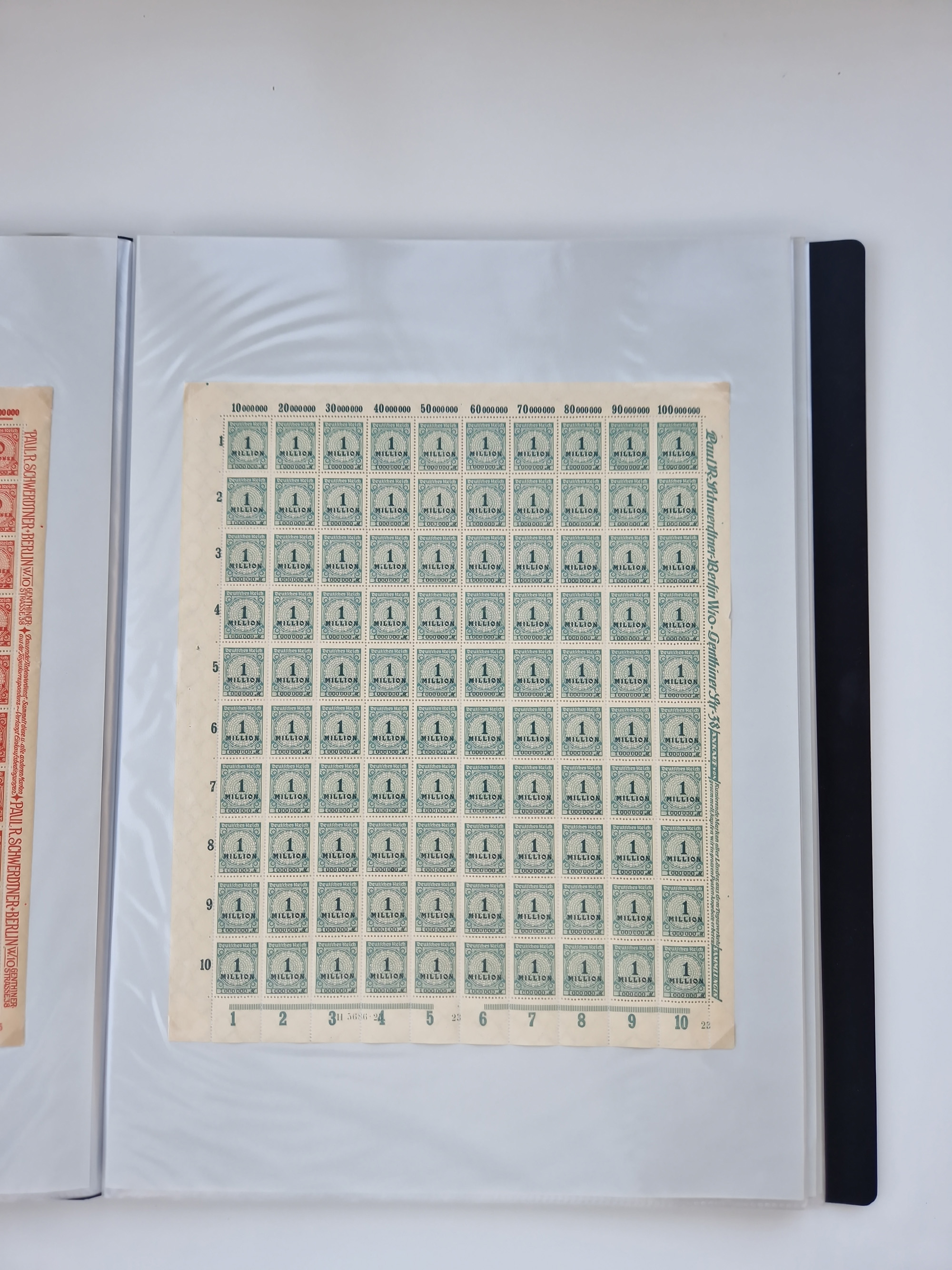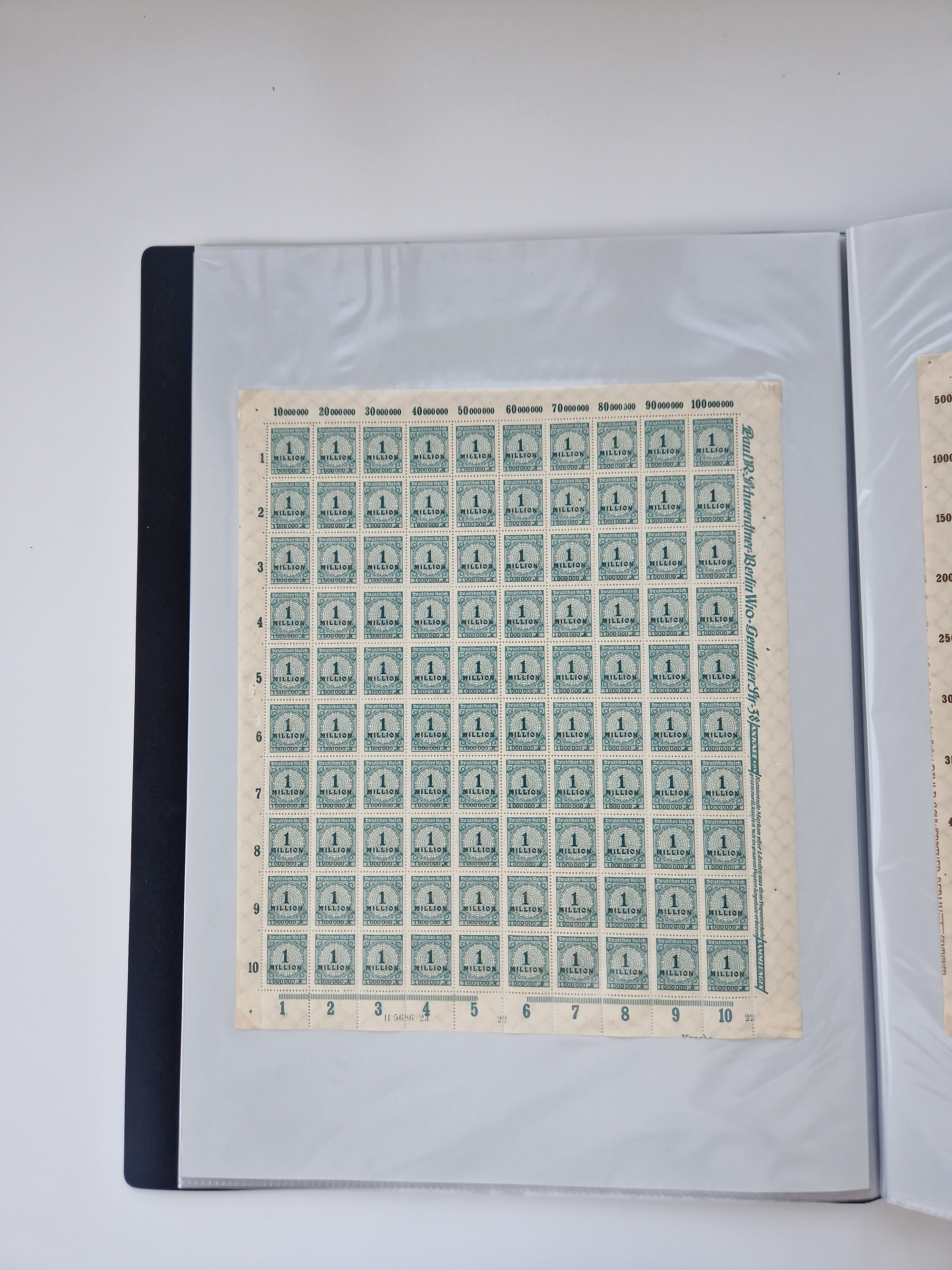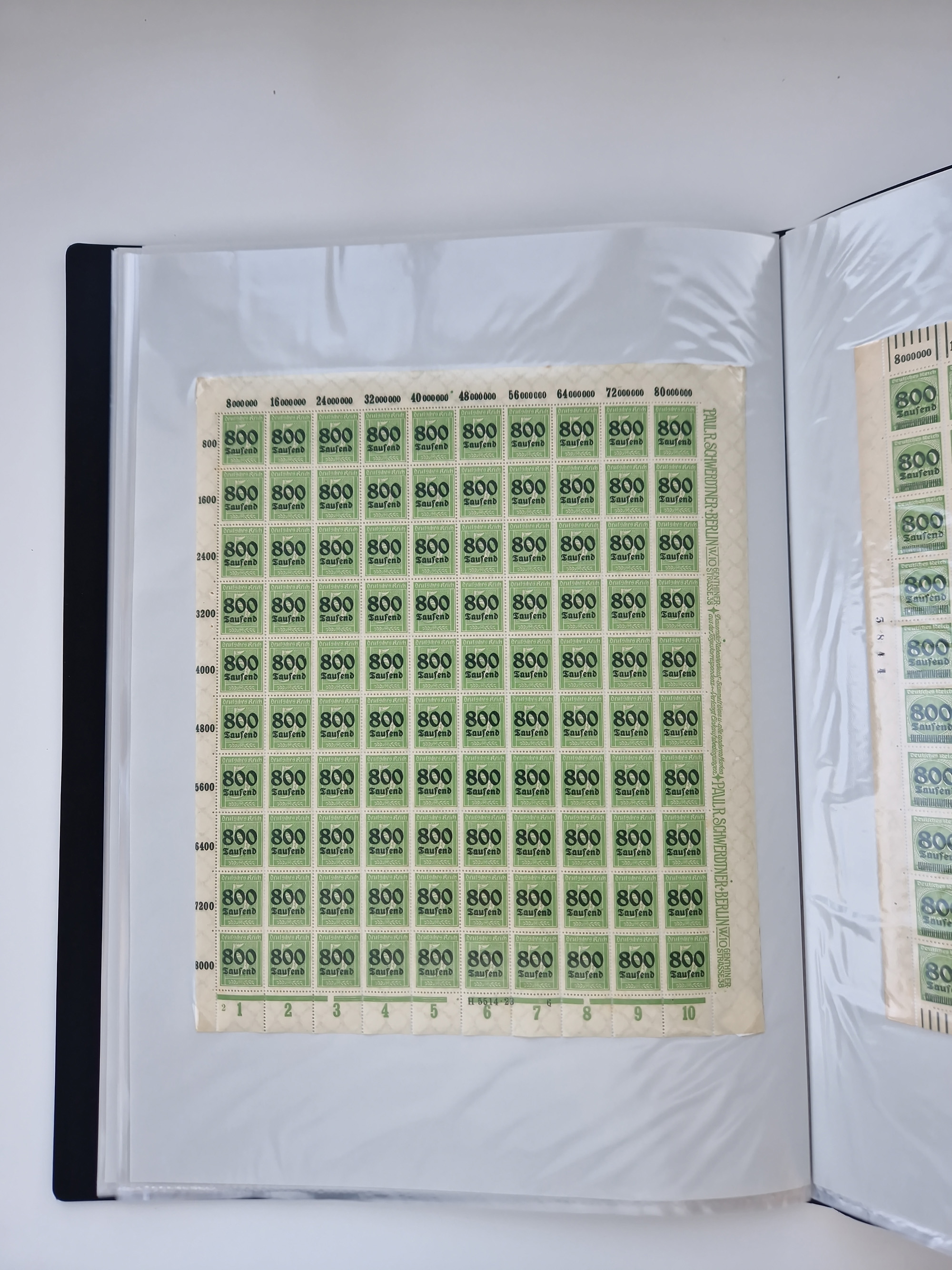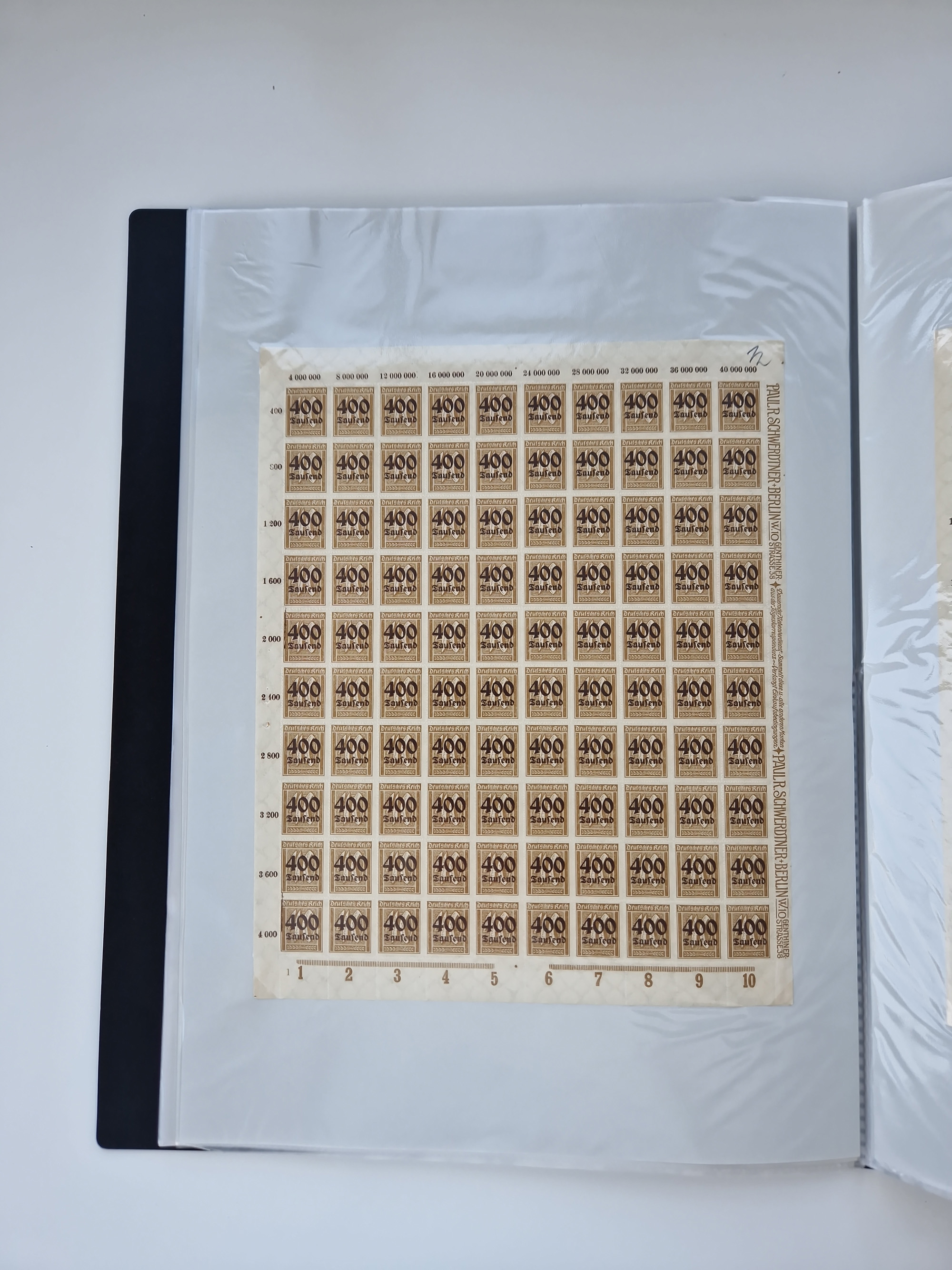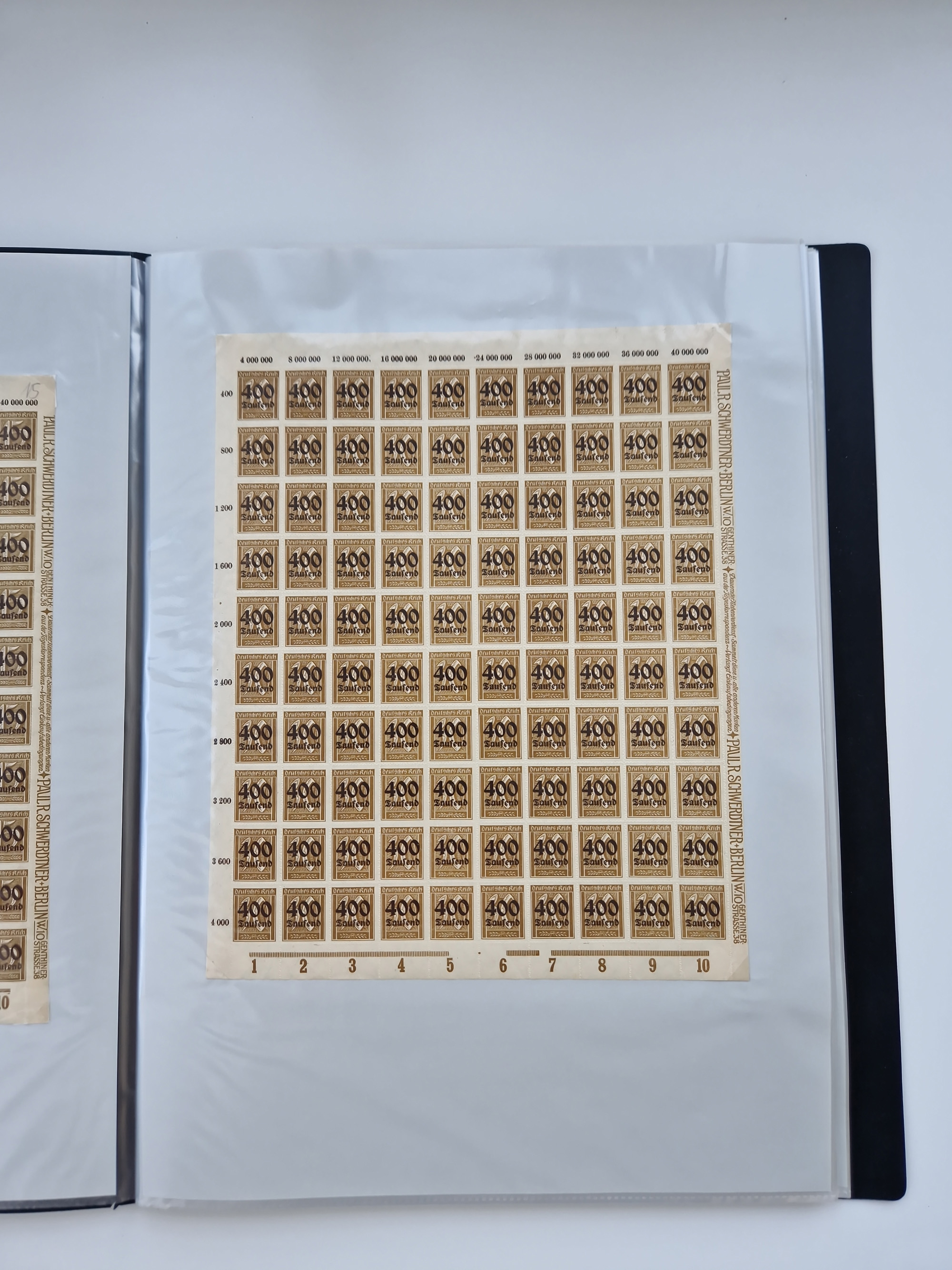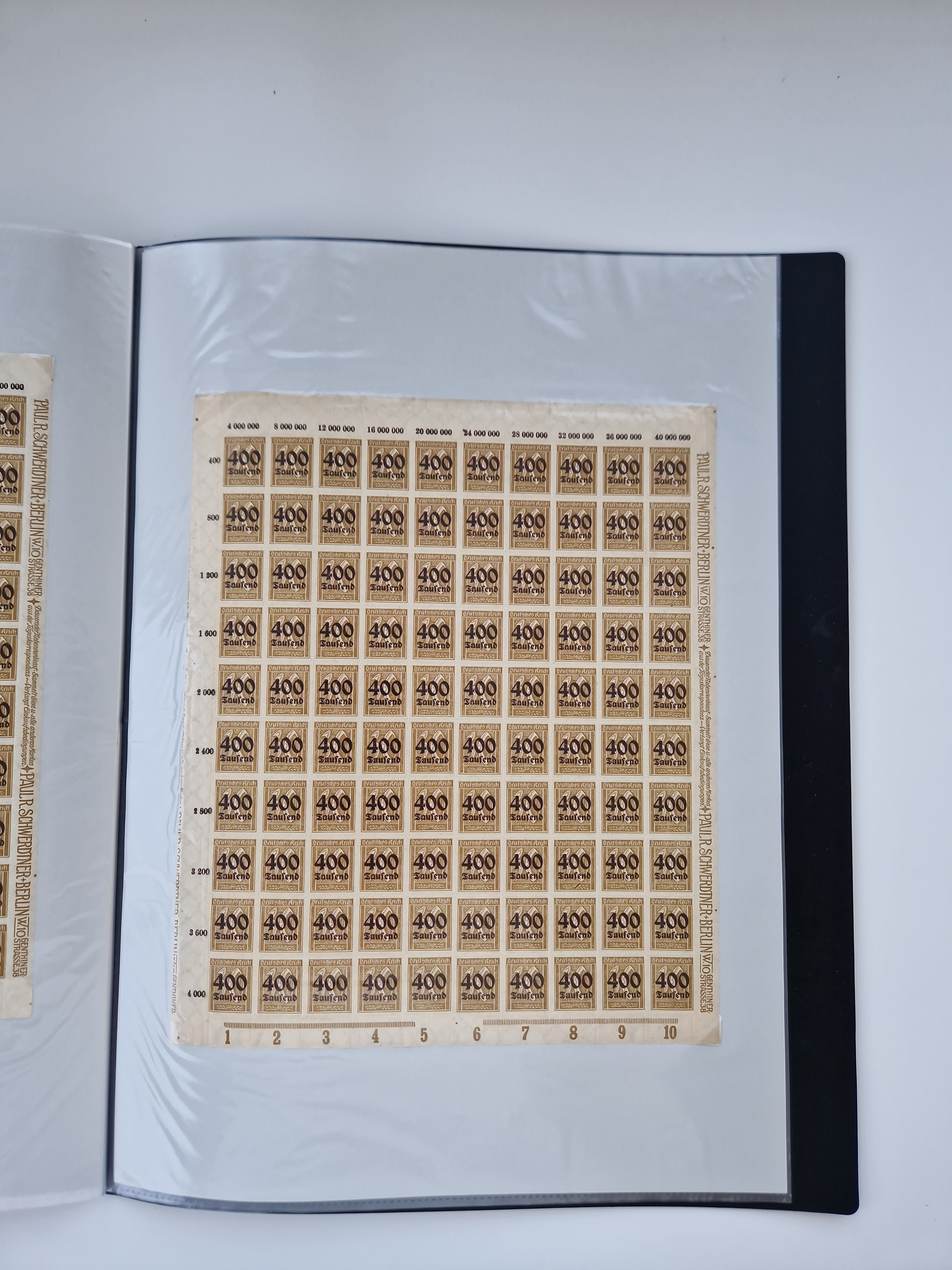 1921/22, postfrischer und ungebrauchter Bestand mit etwas über 200 Bogen und Bogenteilen, dabei Walzen- und Plattenbogen, HAN, Druckereizeichen, Pl.-Nr., auch Wz. Waffeln und Bogentaschen, teils sign. INFLA Berlin, etwas unterschiedliche Erhaltung, in zwei Ordnern