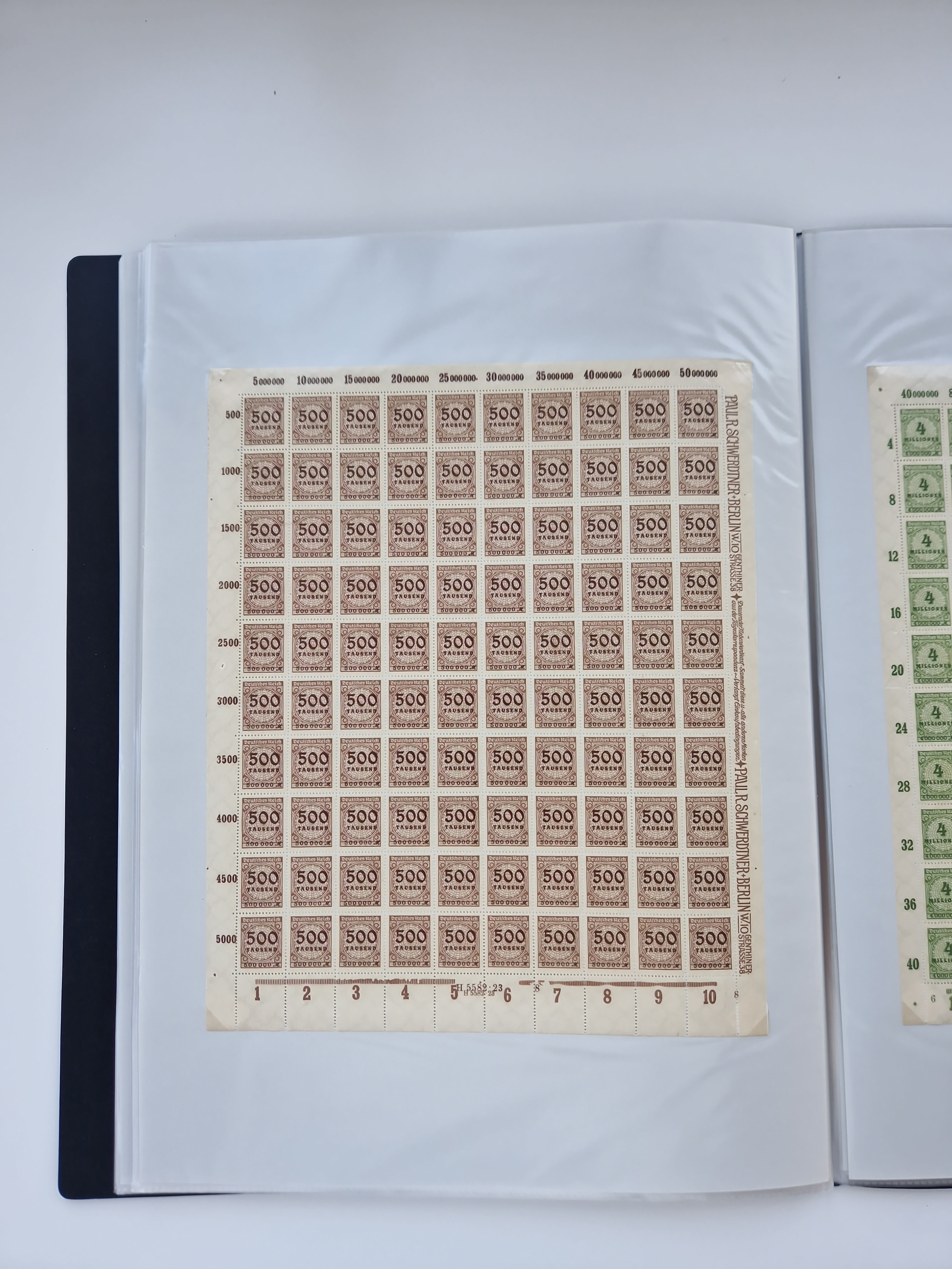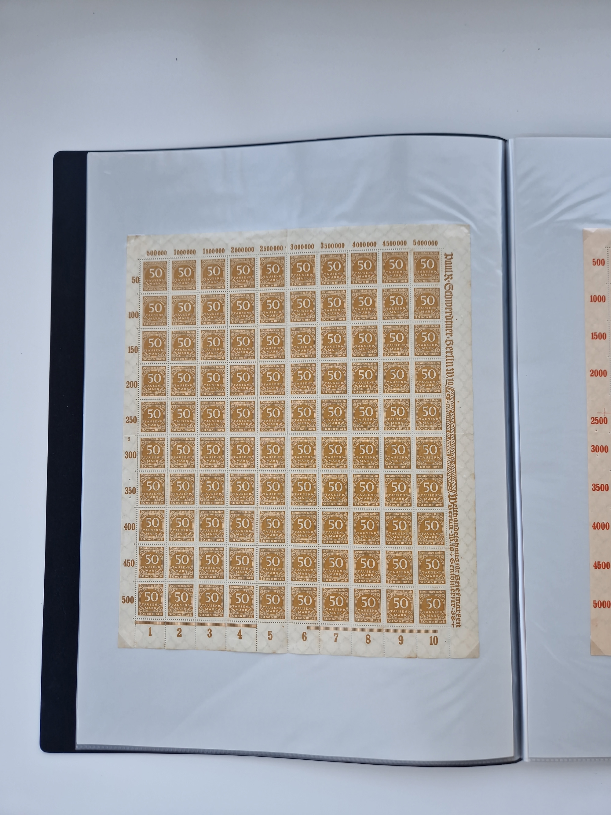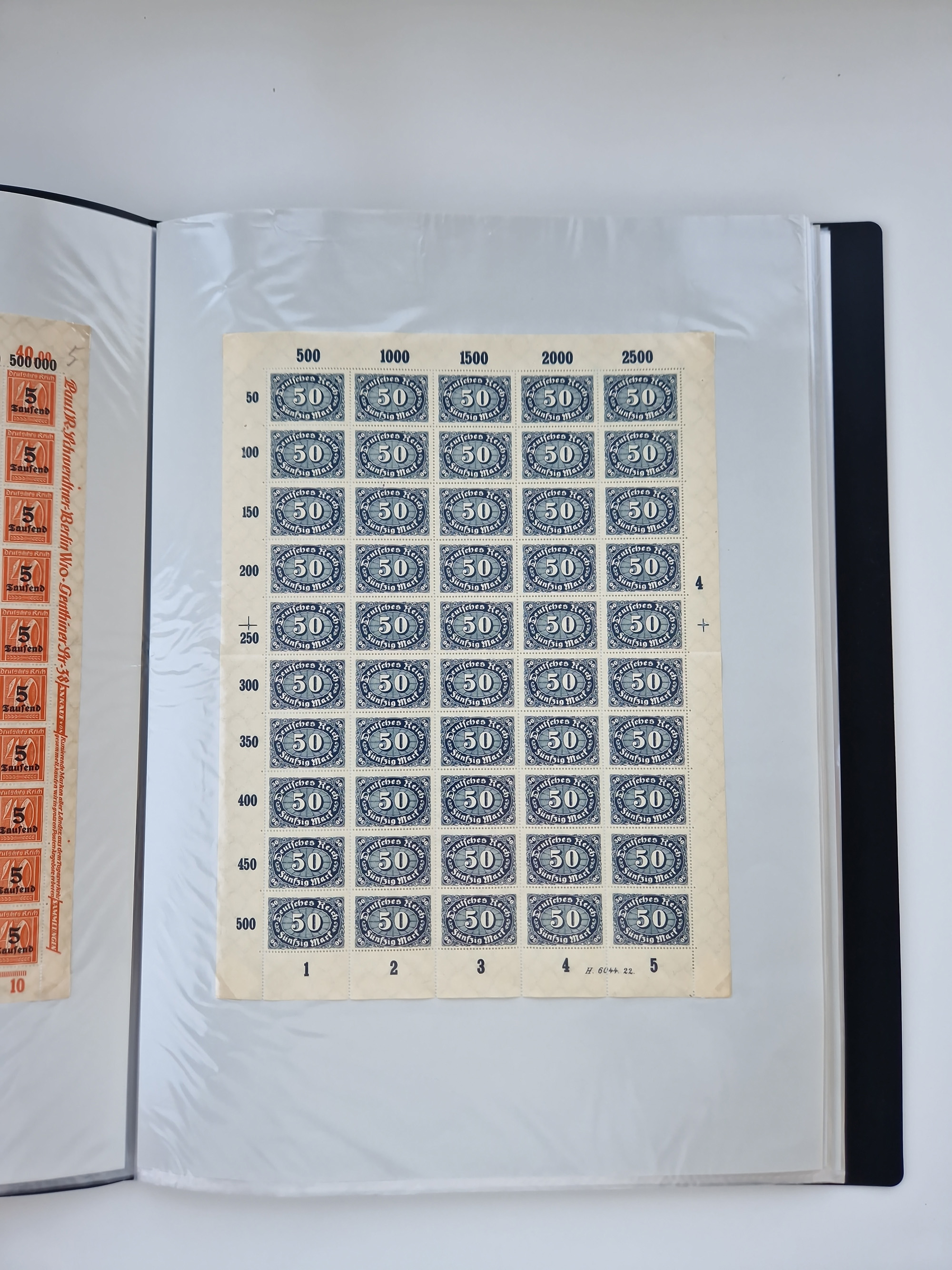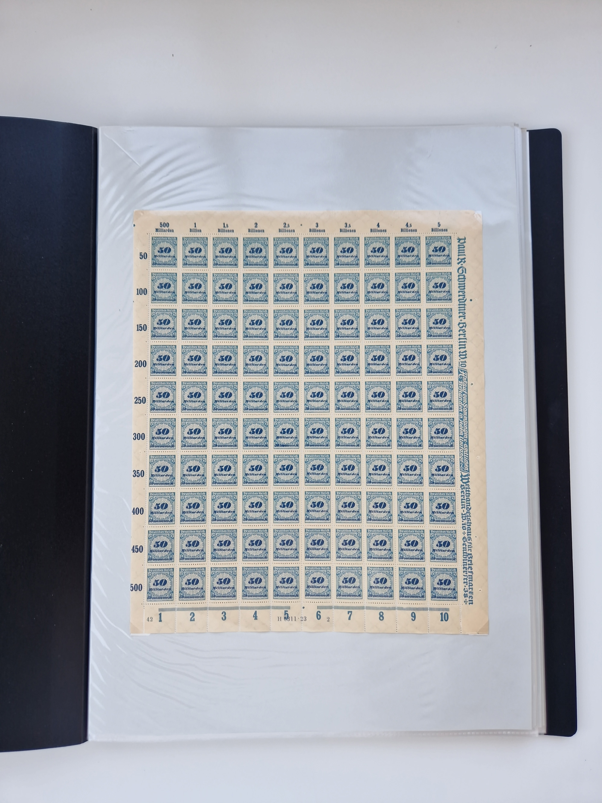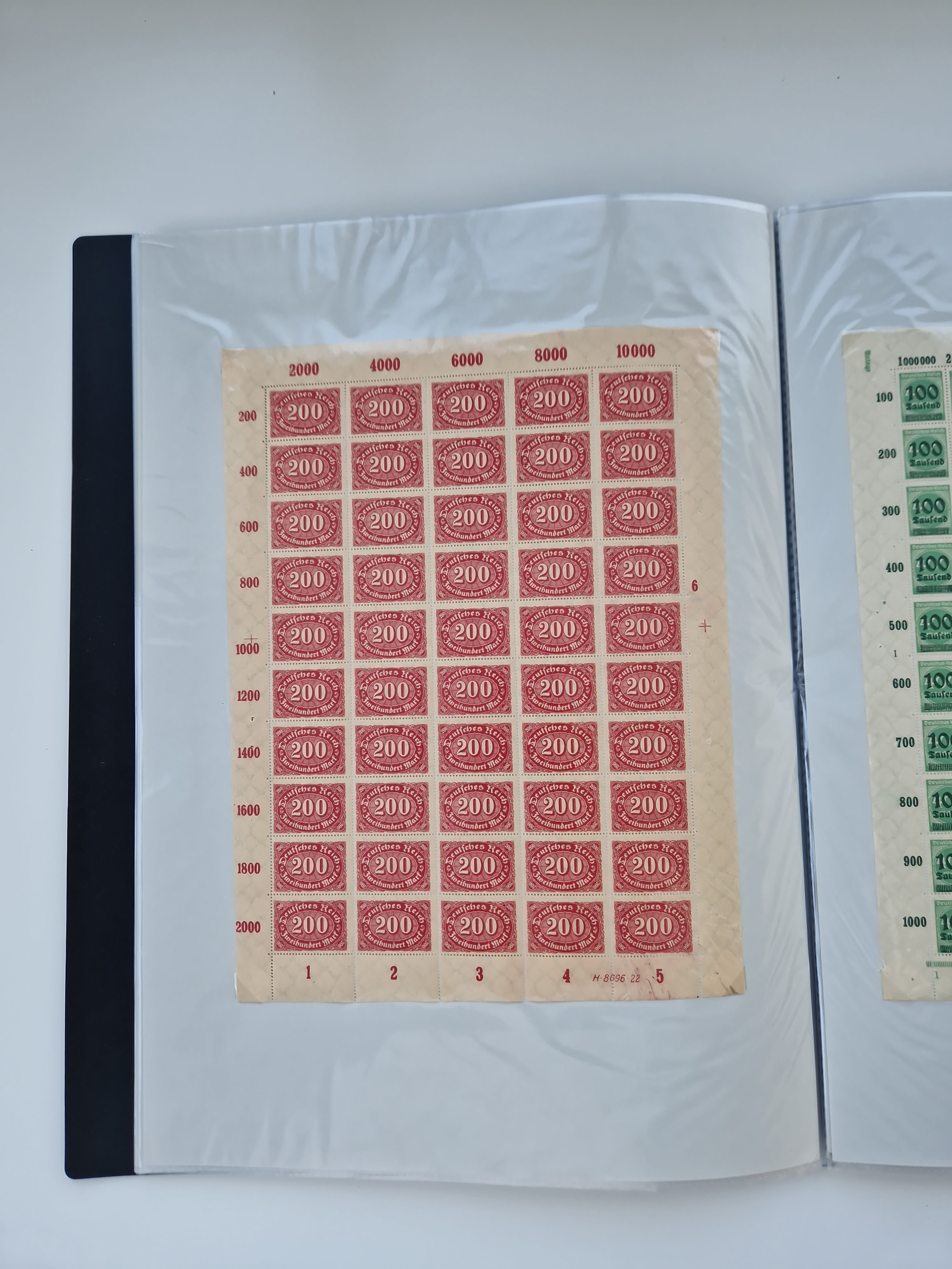 1921/22, postfrischer und ungebrauchter Bestand mit etwas über 200 Bogen und Bogenteilen, dabei Walzen- und Plattenbogen, HAN, Druckereizeichen, Pl.-Nr., auch Wz. Waffeln und Bogentaschen, teils sign. INFLA Berlin, etwas unterschiedliche Erhaltung, in zwei Ordnern