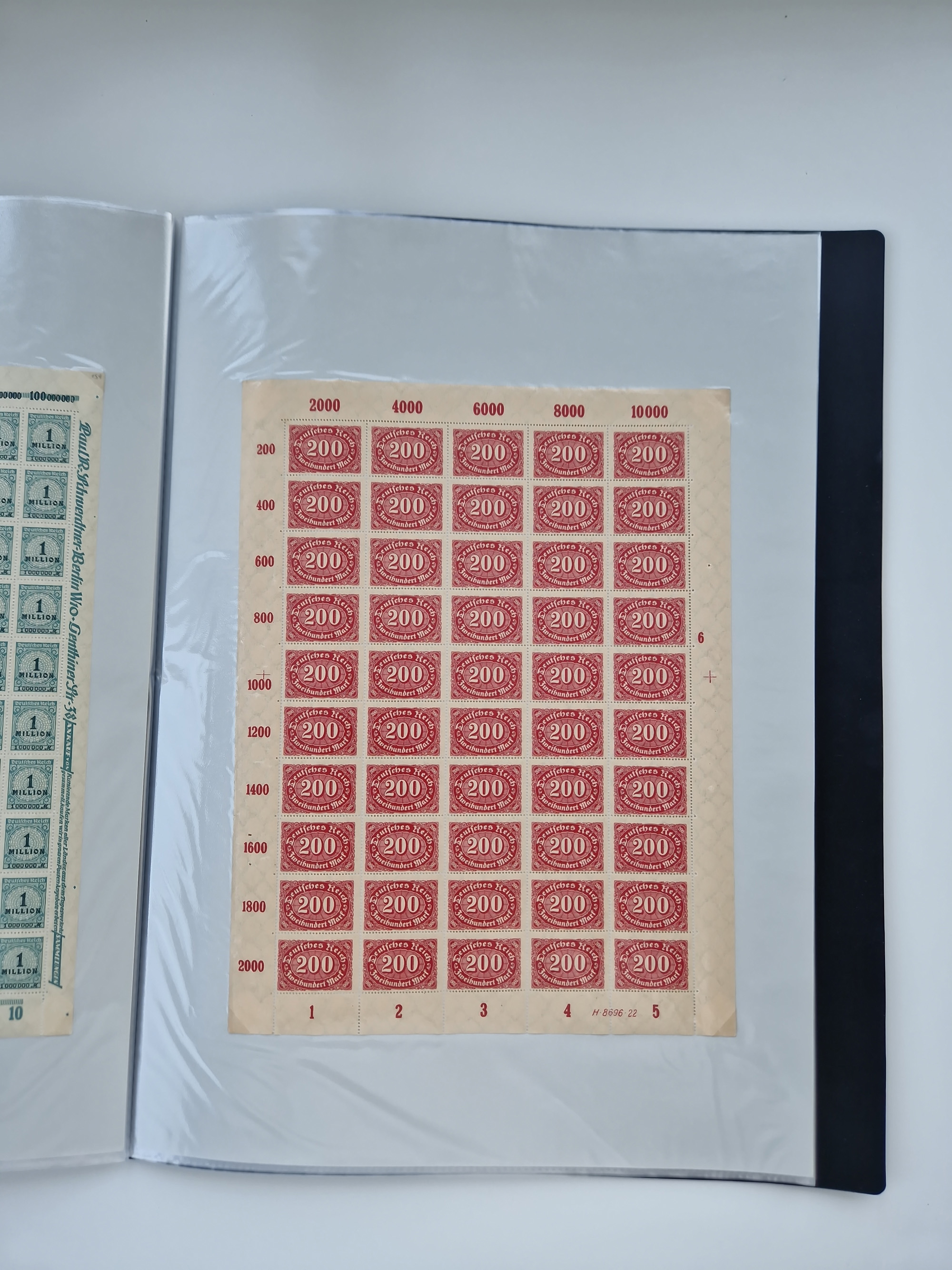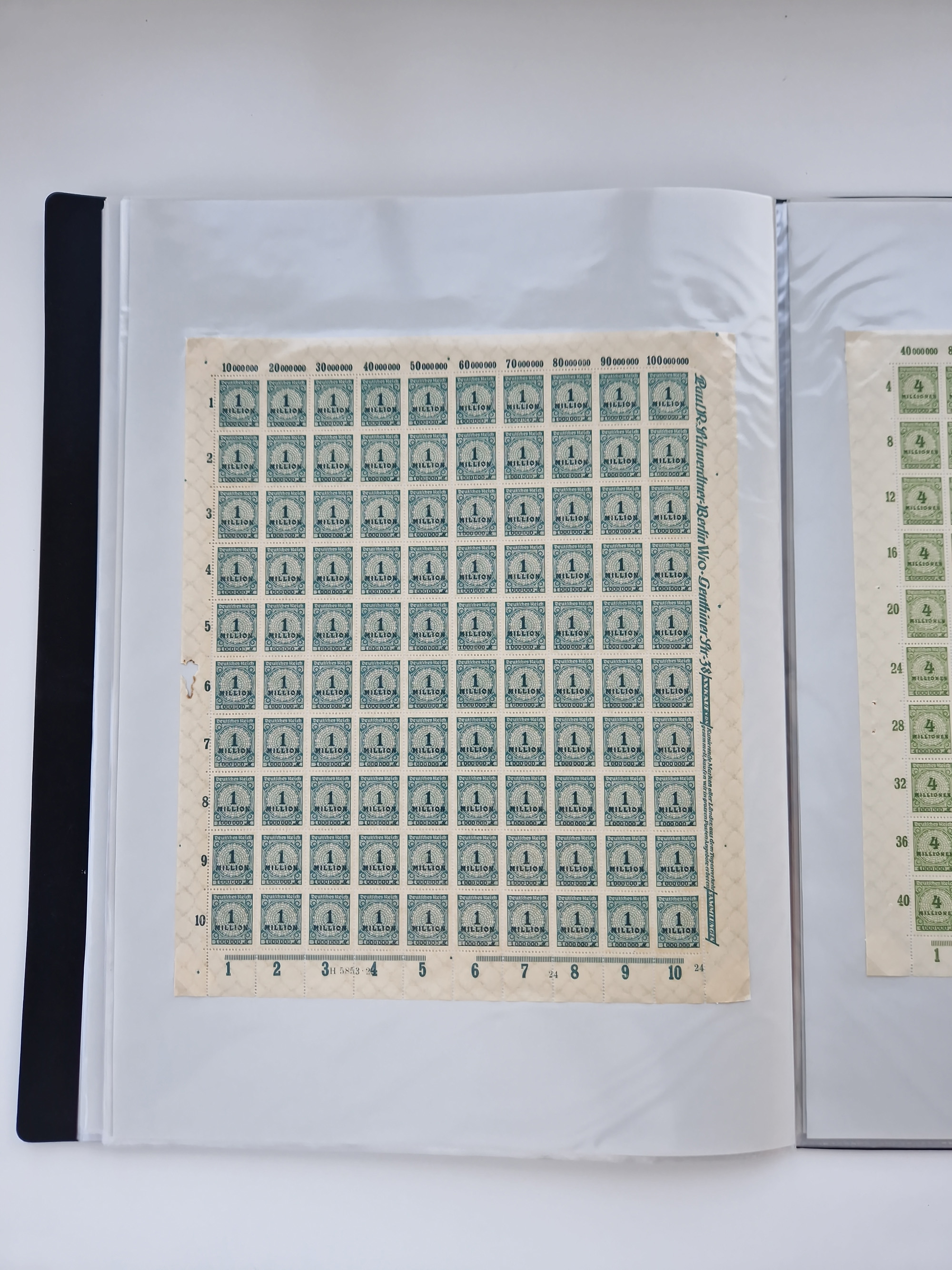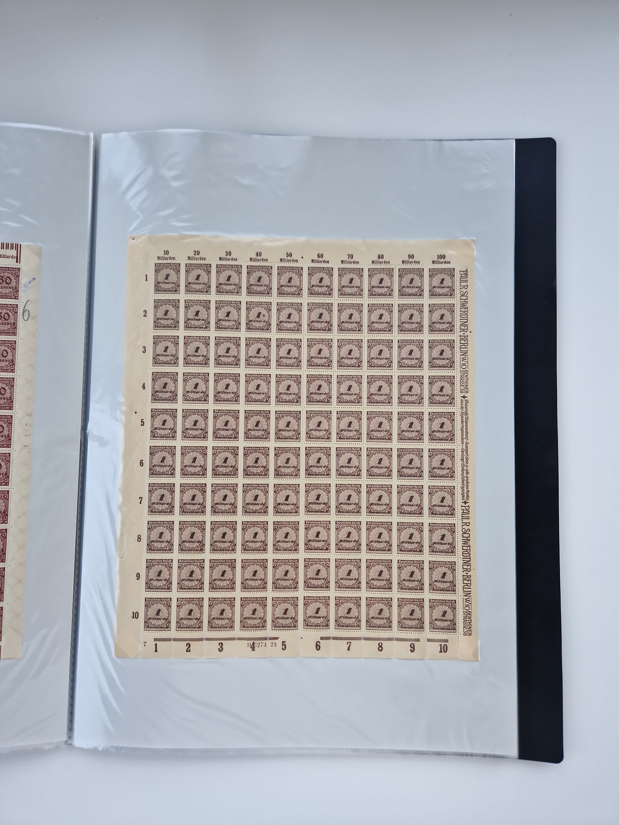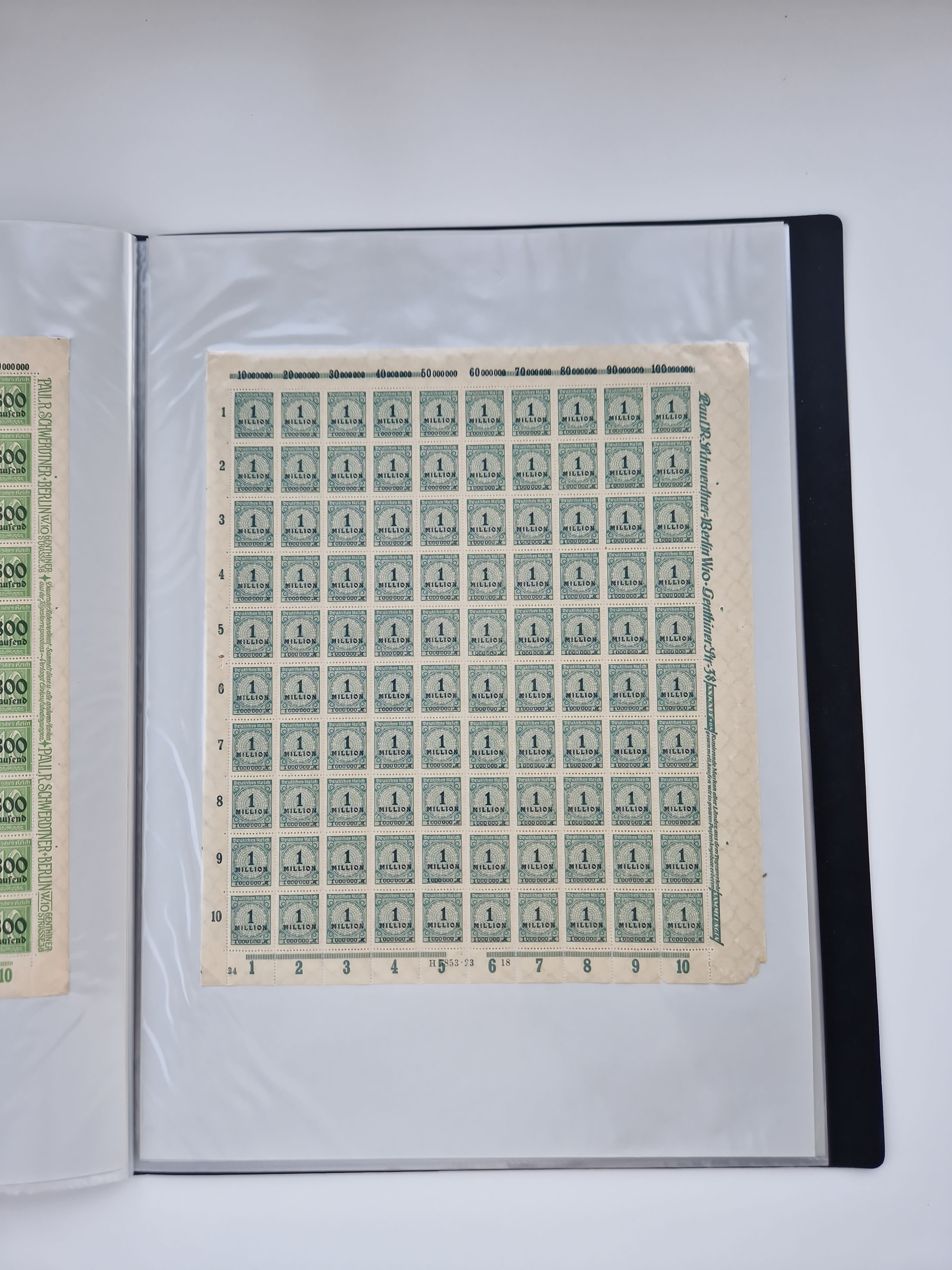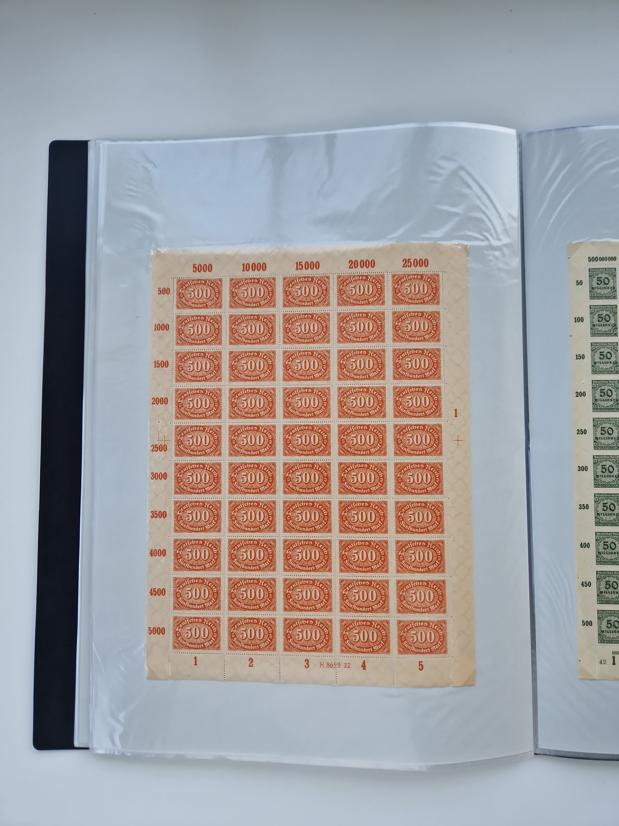 1921/22, postfrischer und ungebrauchter Bestand mit etwas über 200 Bogen und Bogenteilen, dabei Walzen- und Plattenbogen, HAN, Druckereizeichen, Pl.-Nr., auch Wz. Waffeln und Bogentaschen, teils sign. INFLA Berlin, etwas unterschiedliche Erhaltung, in zwei Ordnern