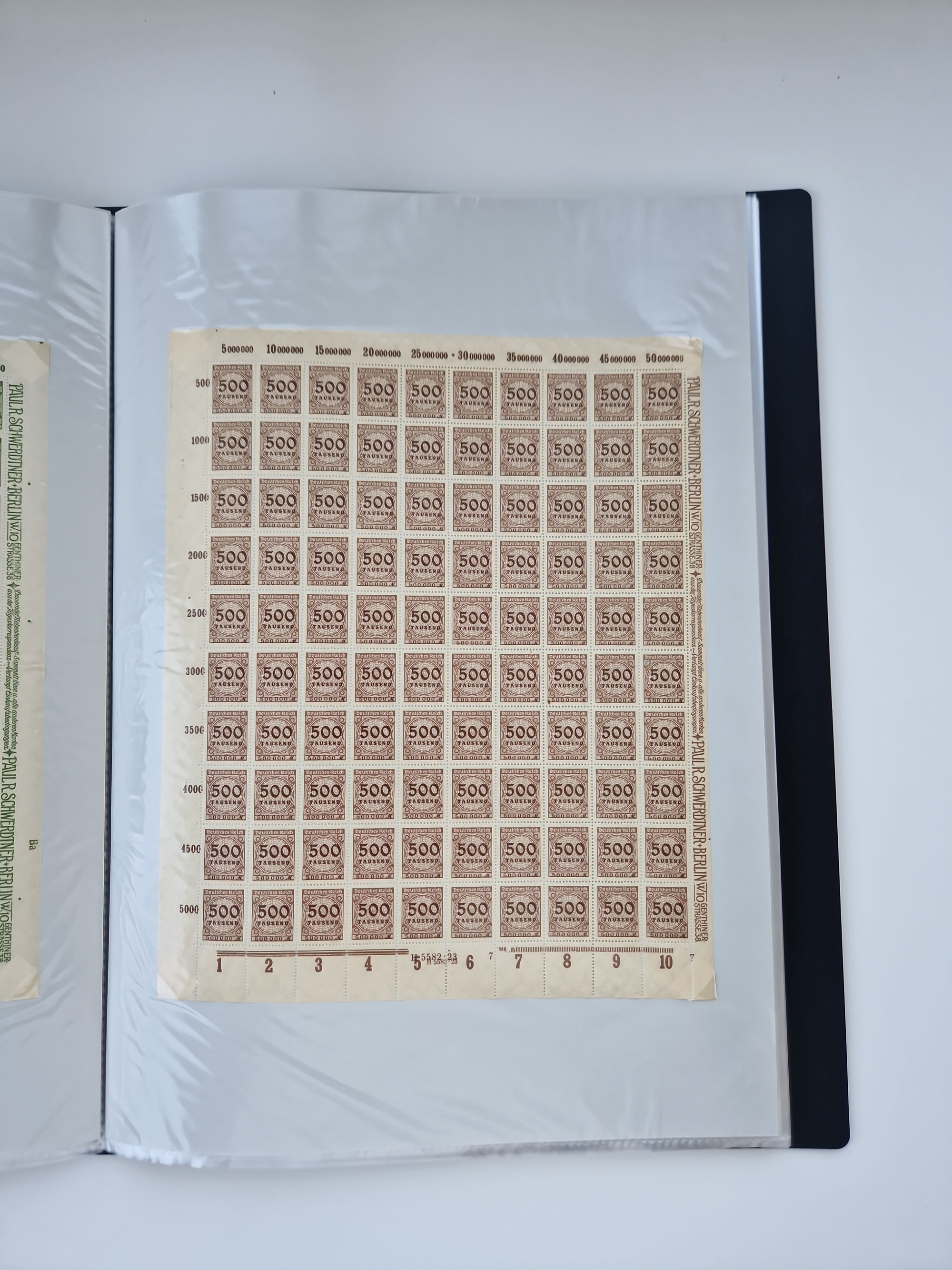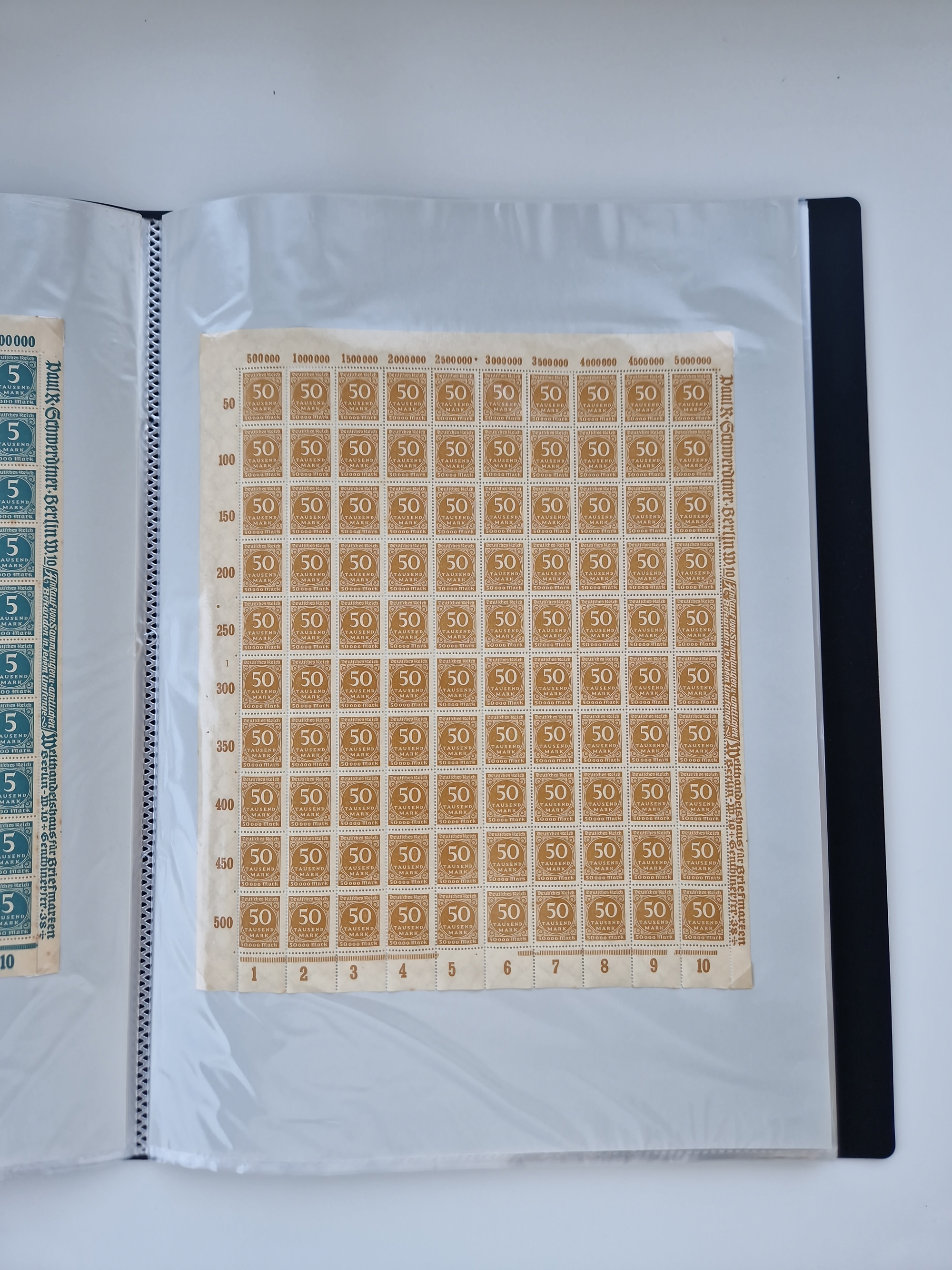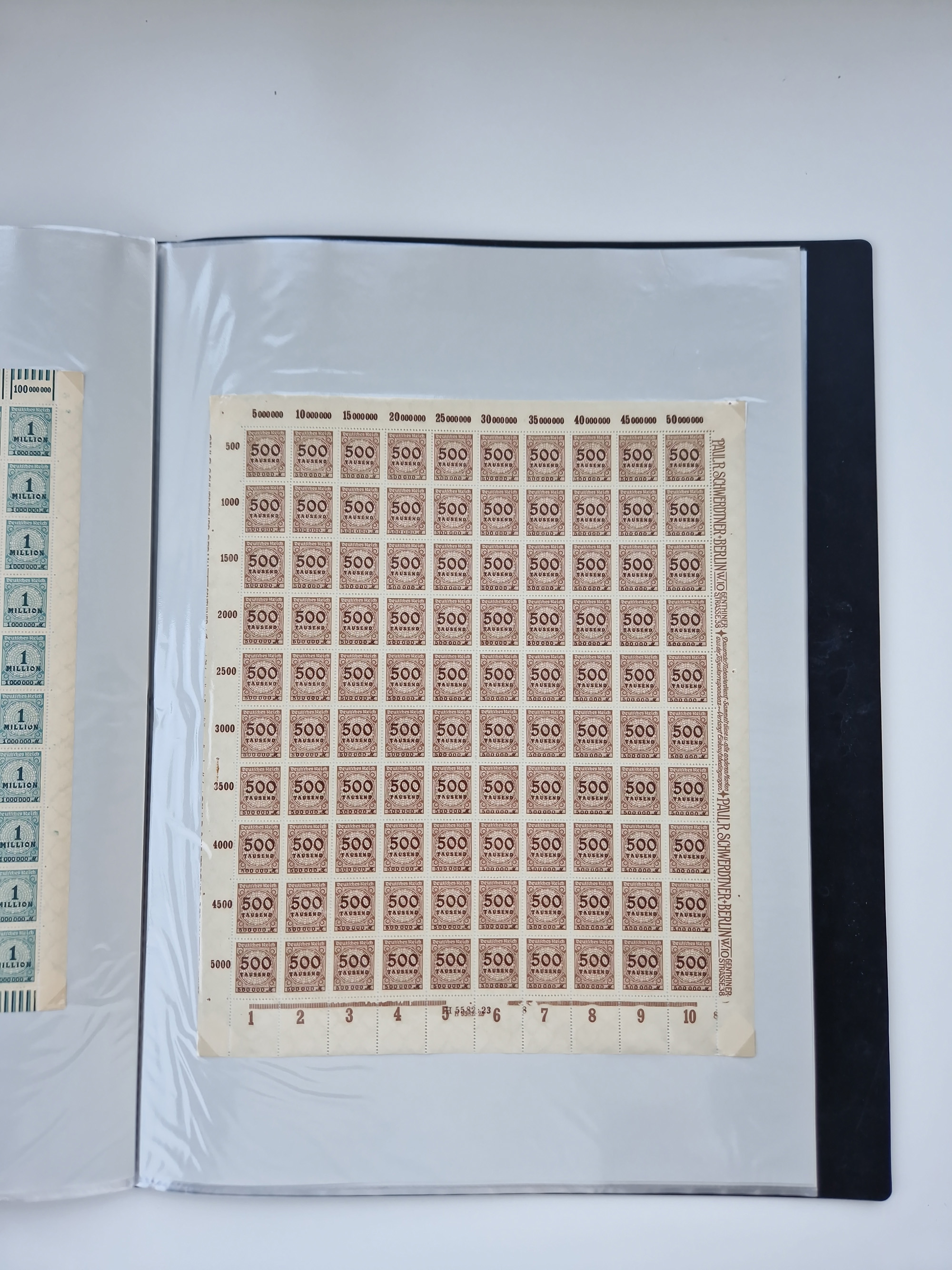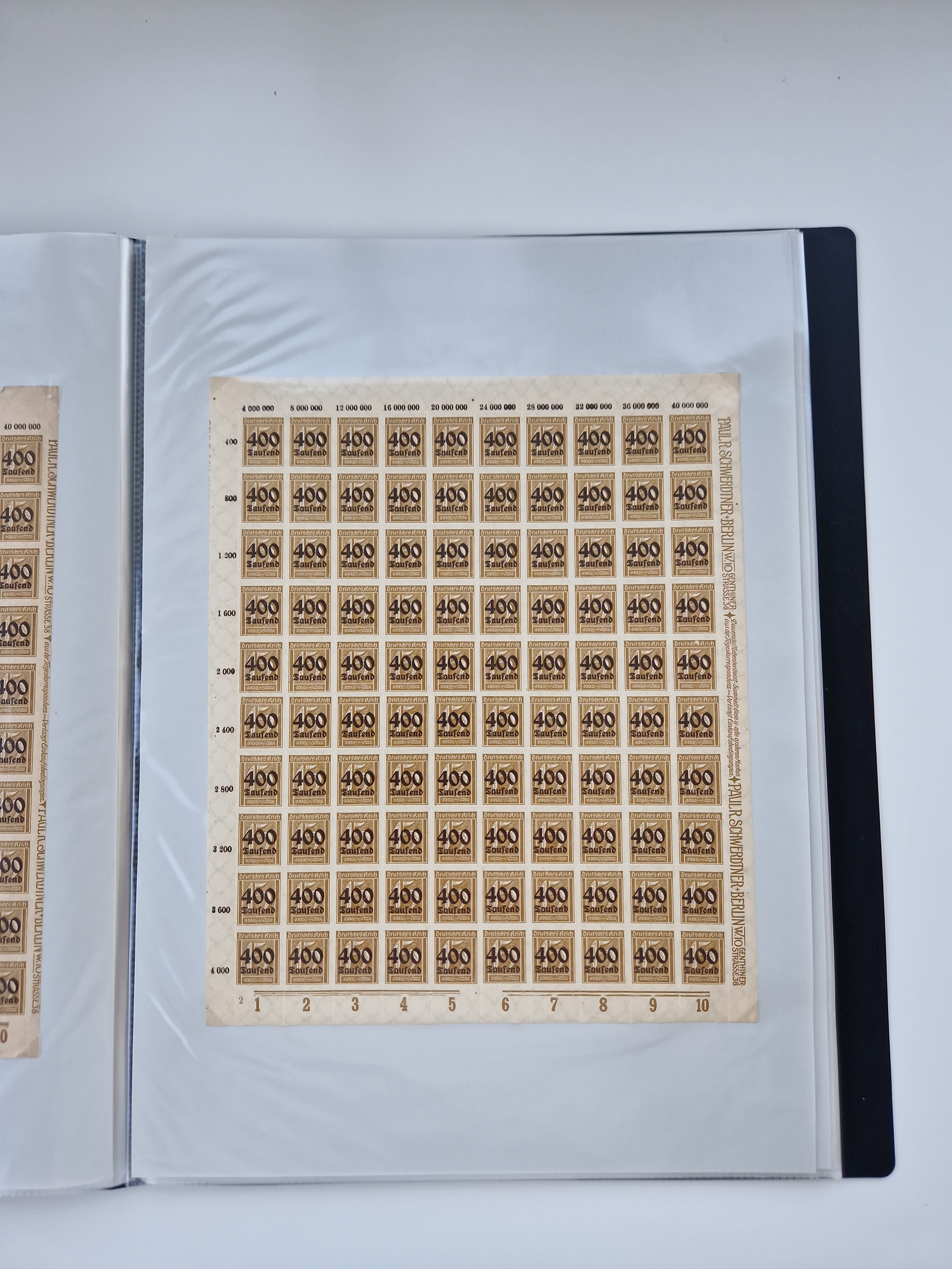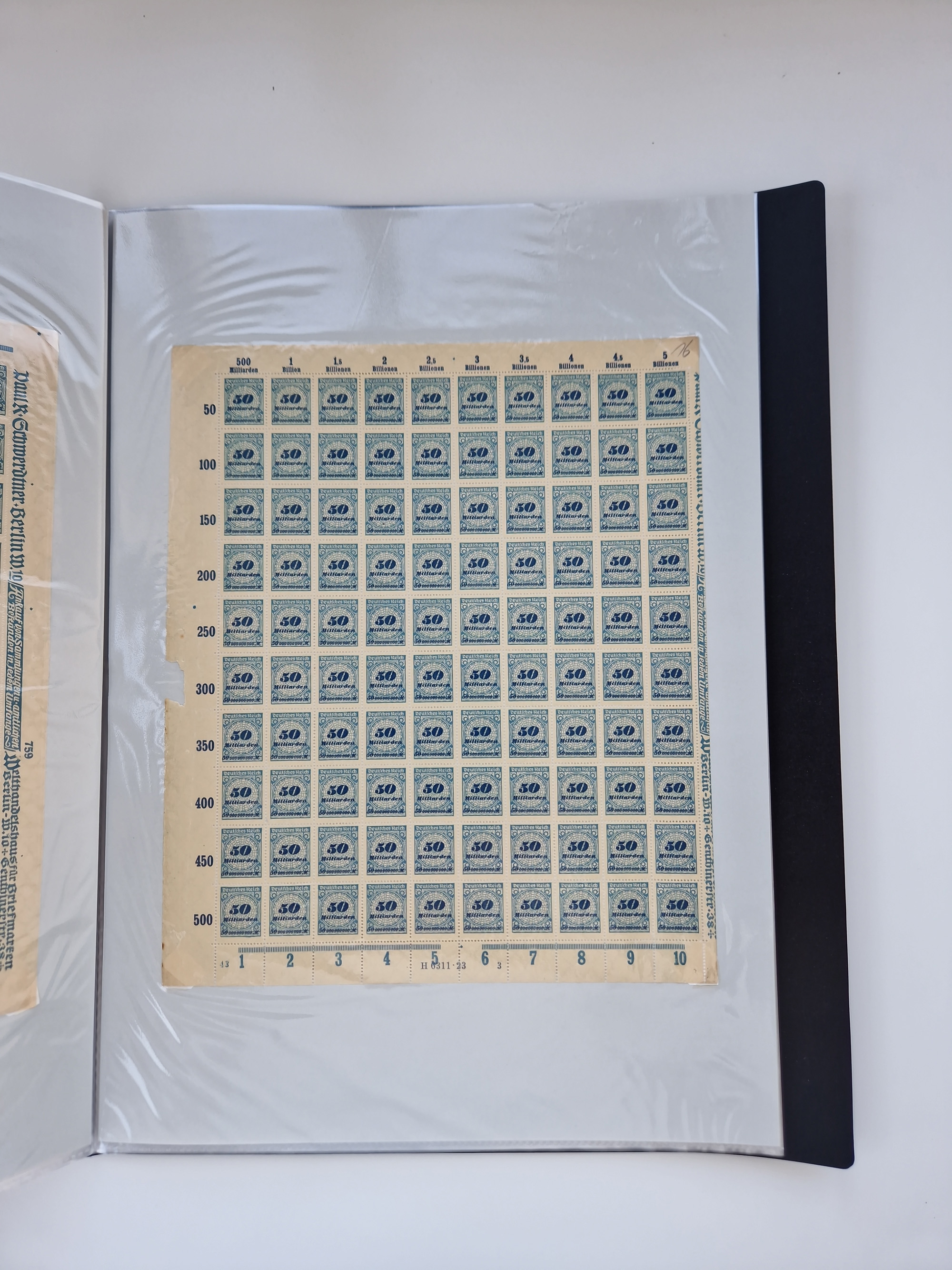 1921/22, postfrischer und ungebrauchter Bestand mit etwas über 200 Bogen und Bogenteilen, dabei Walzen- und Plattenbogen, HAN, Druckereizeichen, Pl.-Nr., auch Wz. Waffeln und Bogentaschen, teils sign. INFLA Berlin, etwas unterschiedliche Erhaltung, in zwei Ordnern