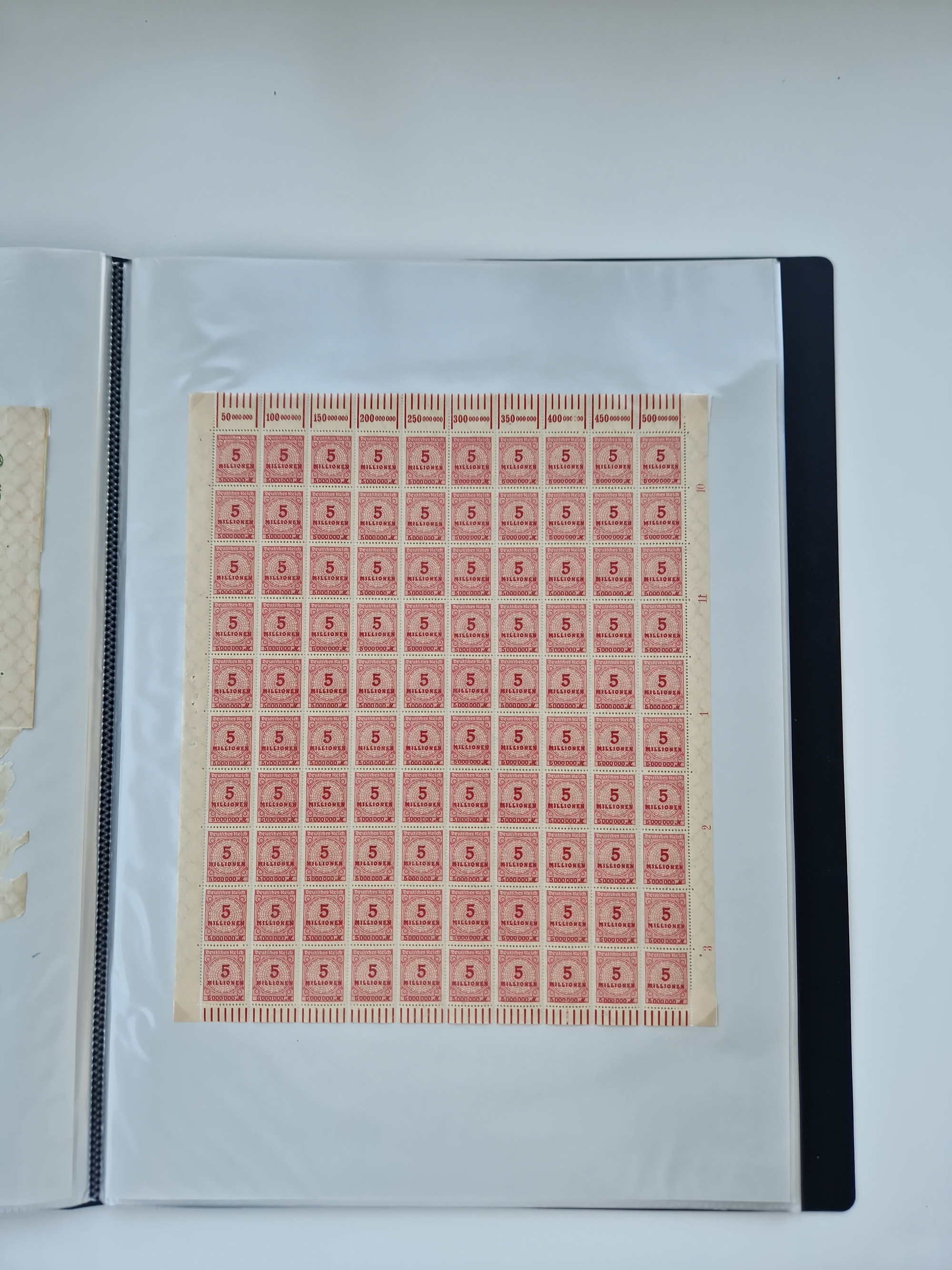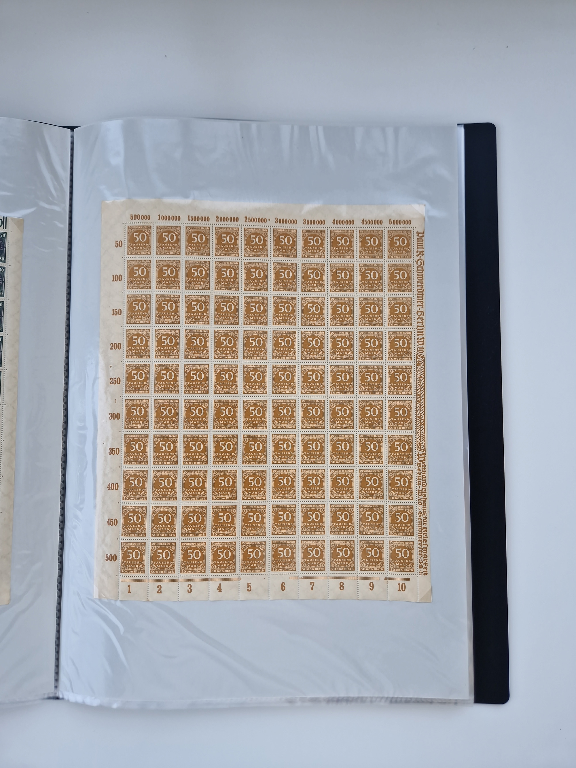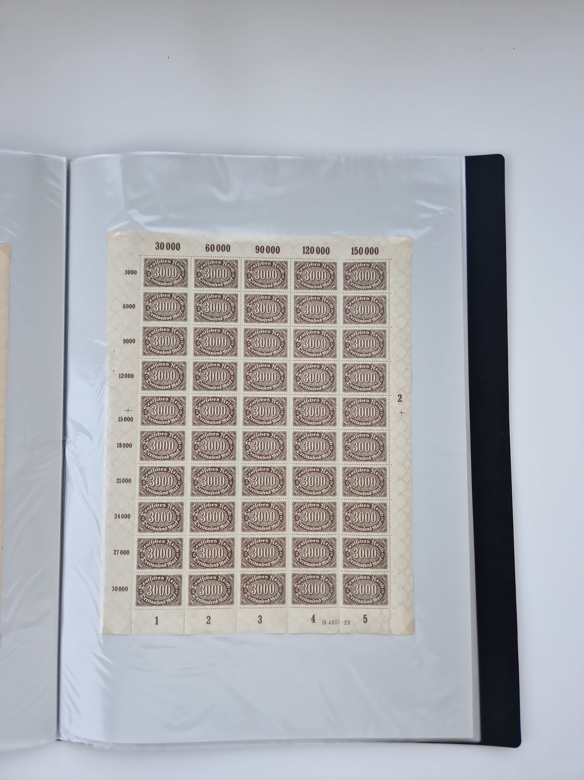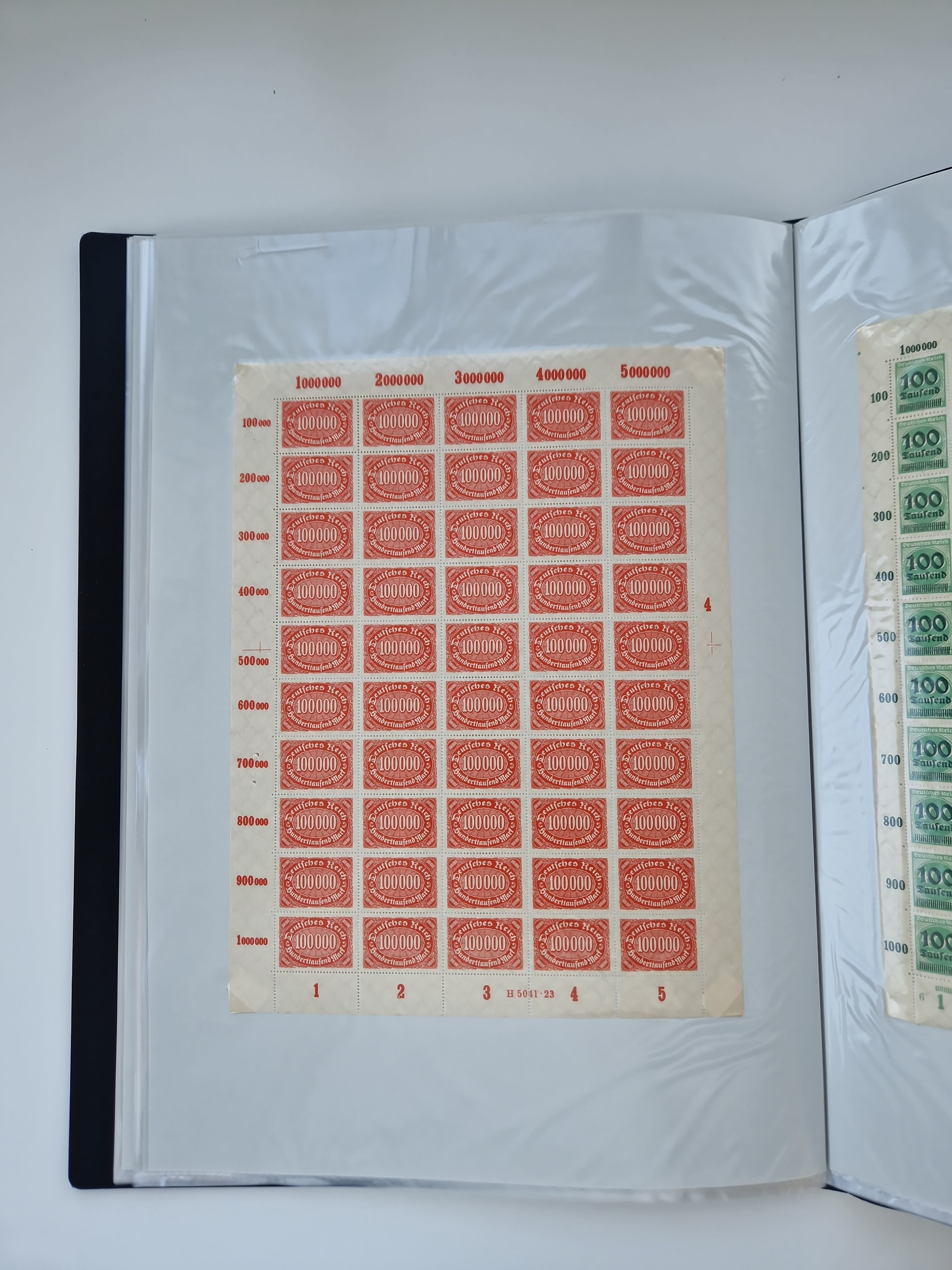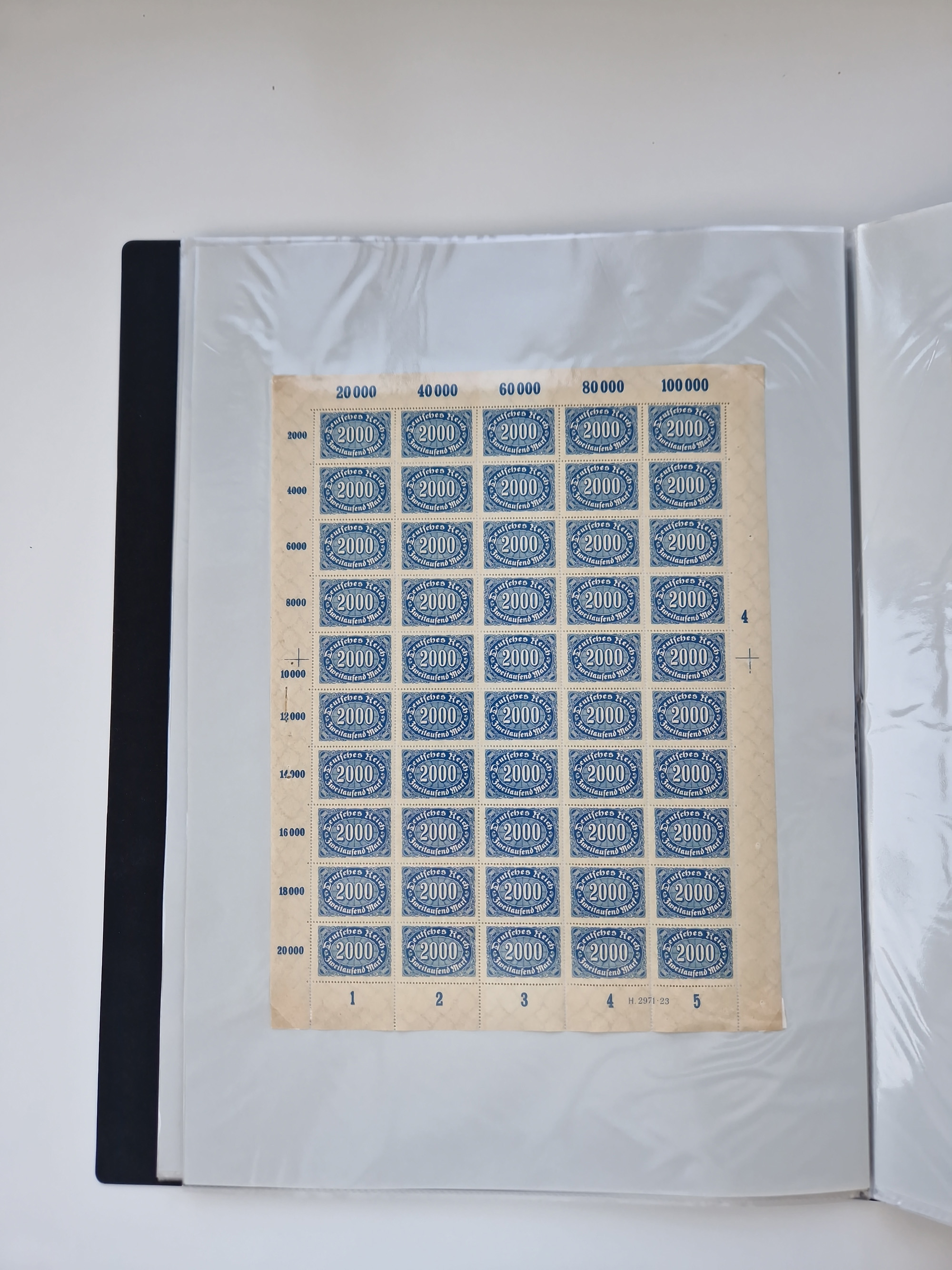 1920, postfrischer Bestand Germania 1.25 auf 1M. (2), 1.5 auf 1 M. (2) sowie 2.5 auf 2 M. (1), in kompletten Bögen, postfrisch, teils gefaltet mit Randfehlern (Mi.-Nr. 116-118)