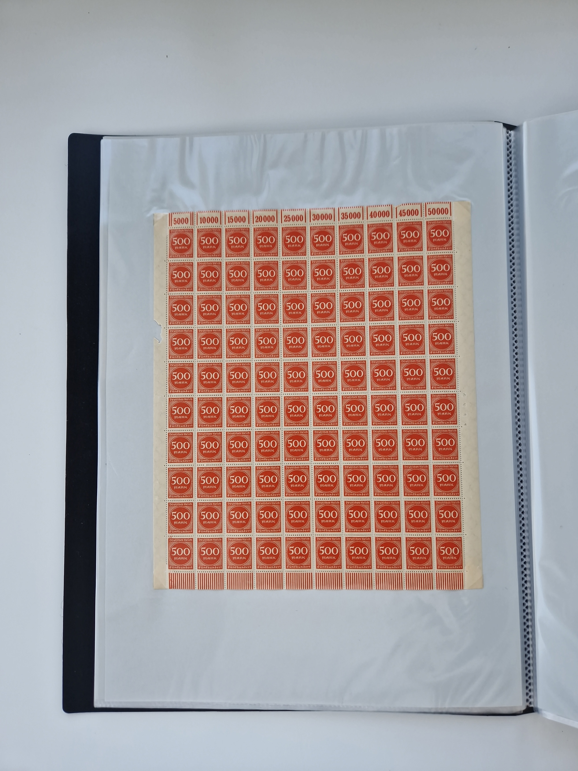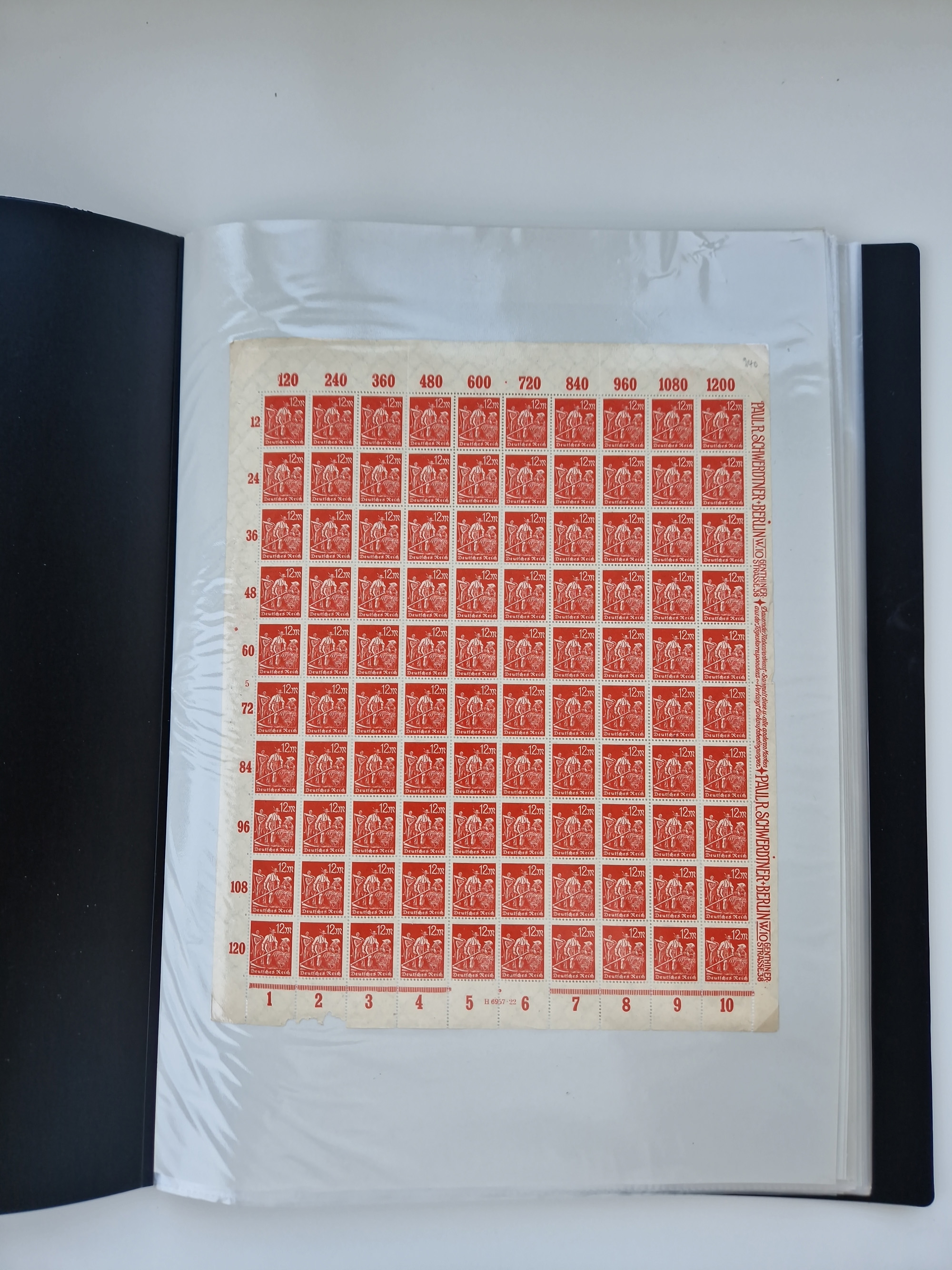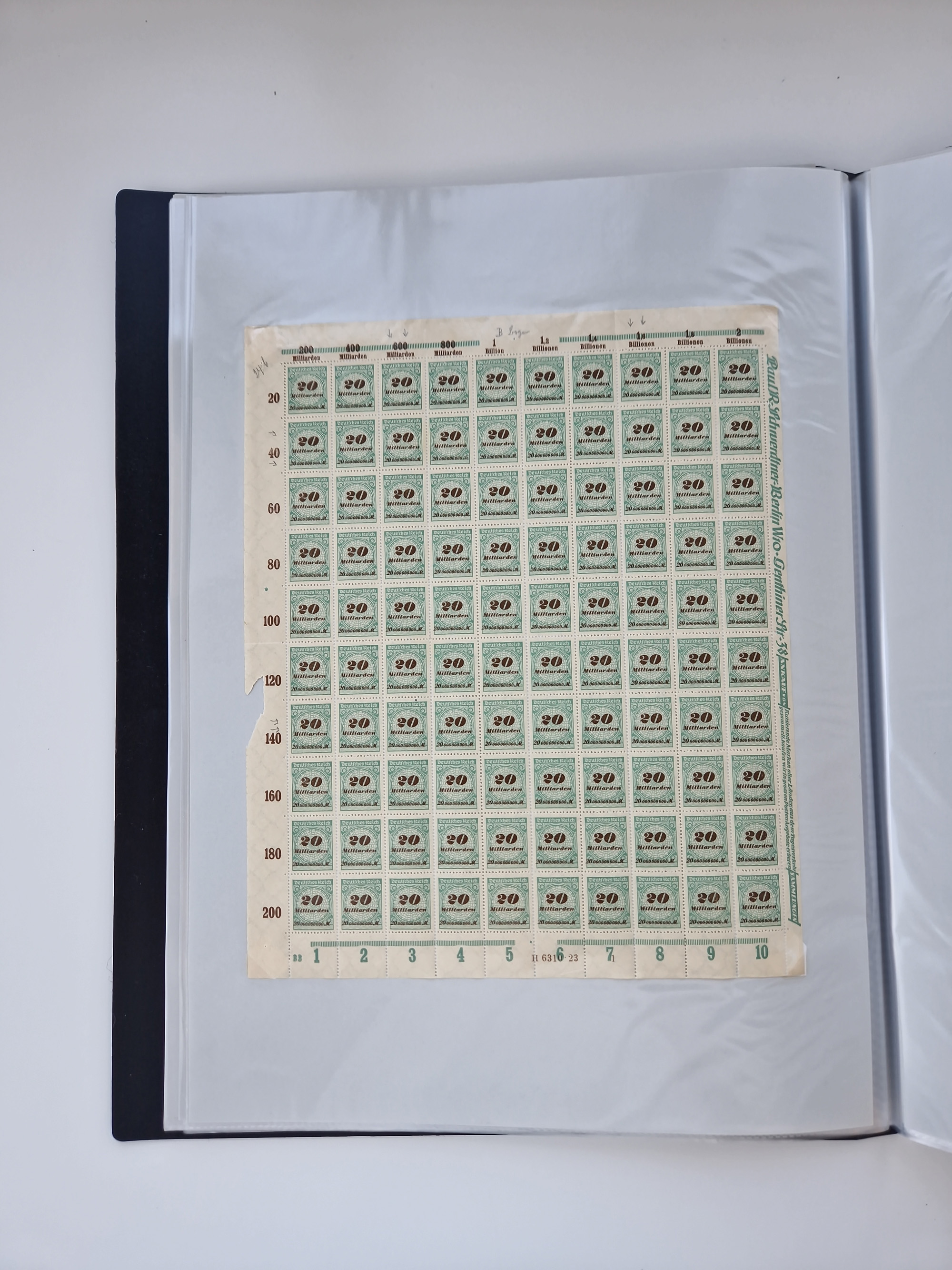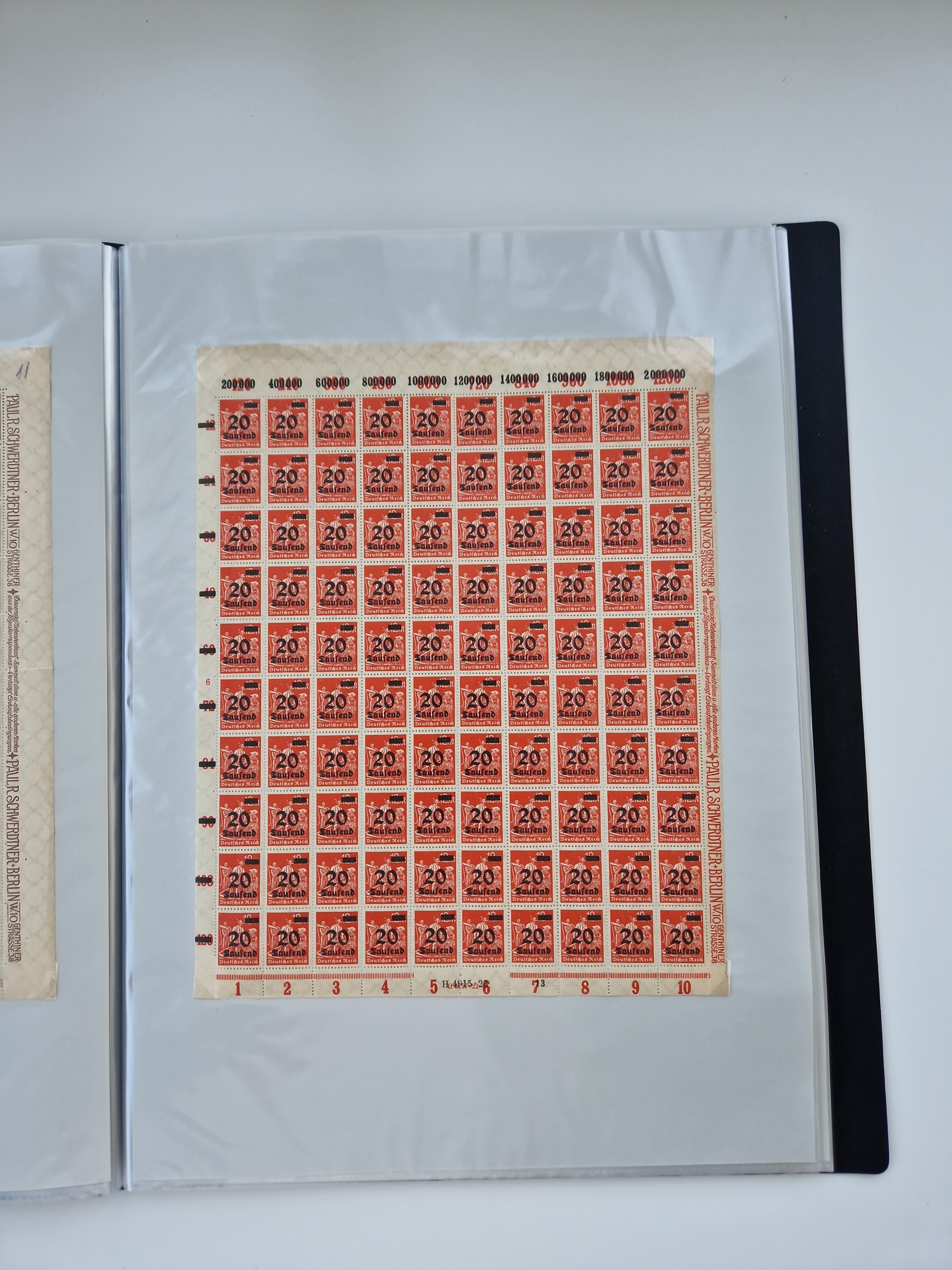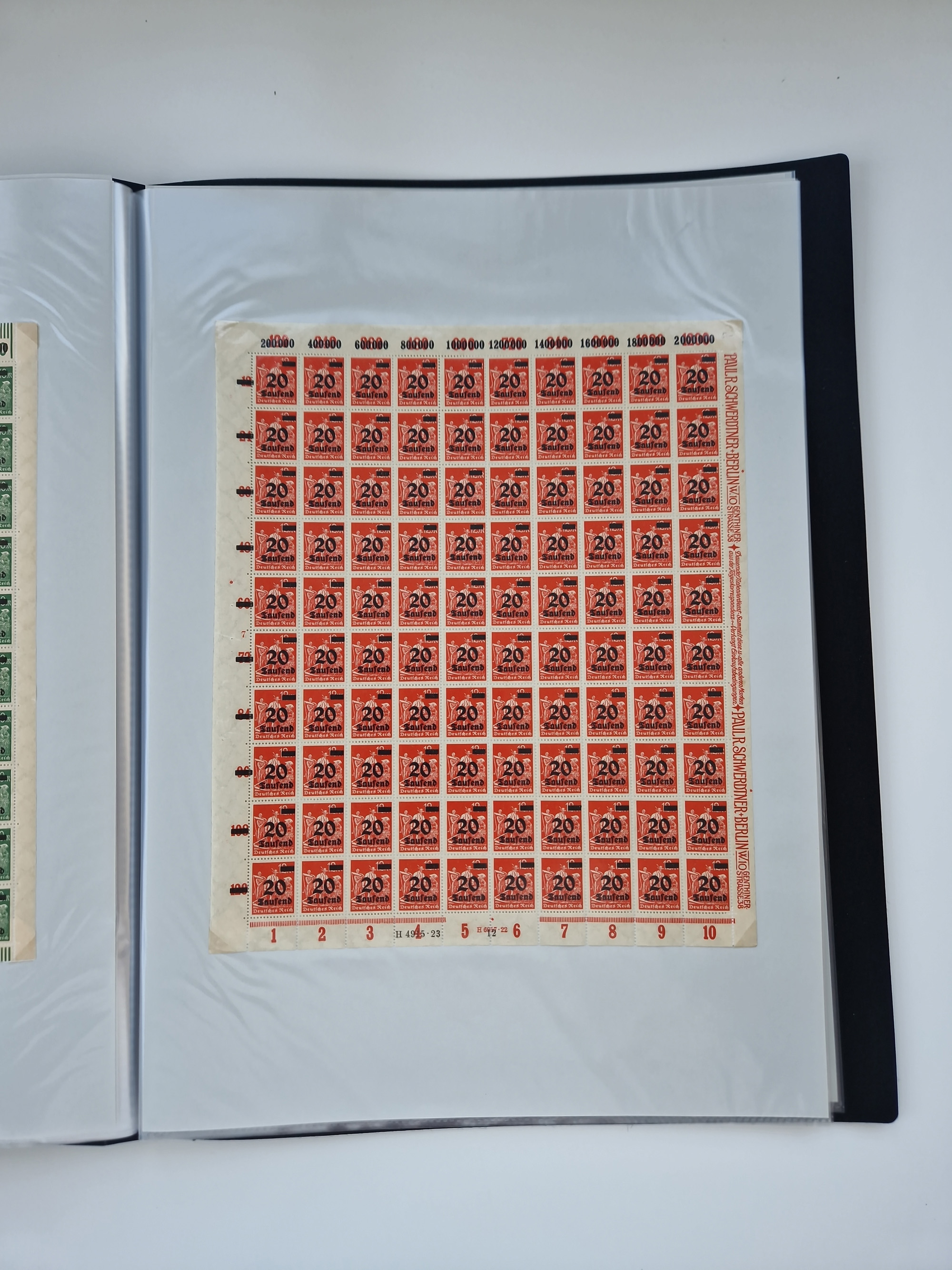 1920, meist postfrischer Bestand mit Mi.-Nr. 115 in 12 verschiedenen Bogen mit HAN “4891.20” mit geschlossener “4”, Plattenfehler XI, XV-XVII, unterschiedliche Farben, ein Bogen sign. Infla Berlin f, ein Bogen mit leichten Anhaftungen, einige leicht fleckig bzw. Randfehler
