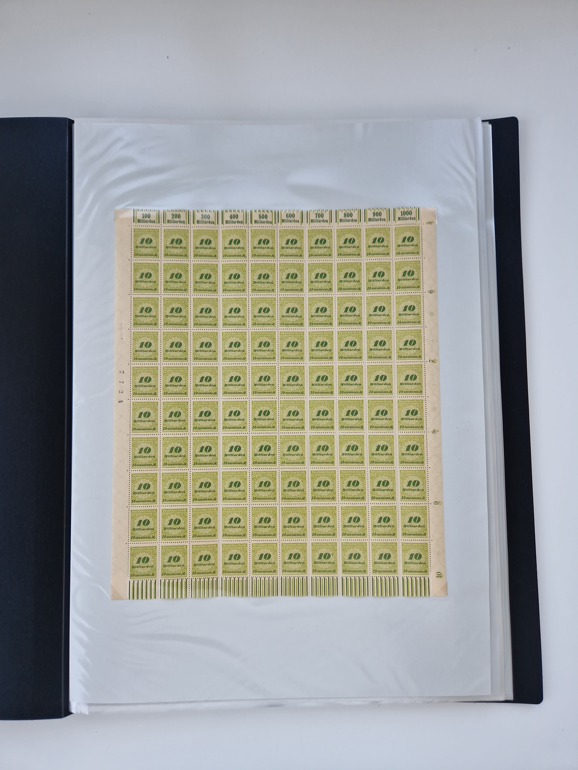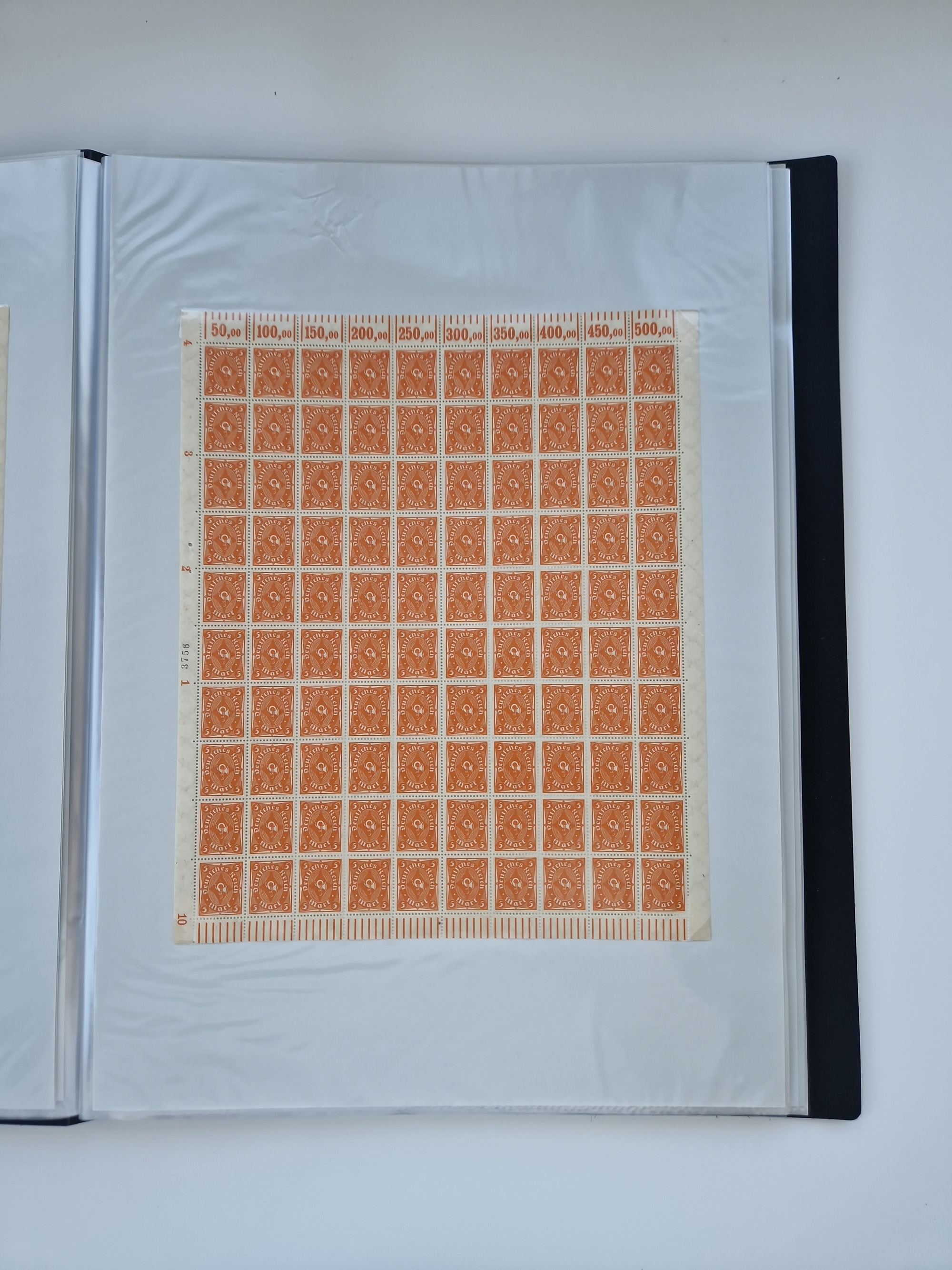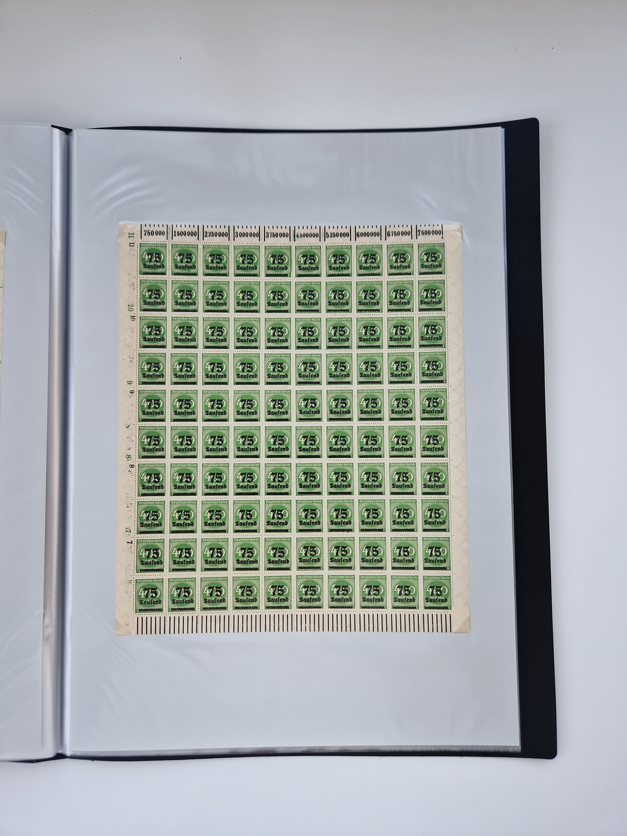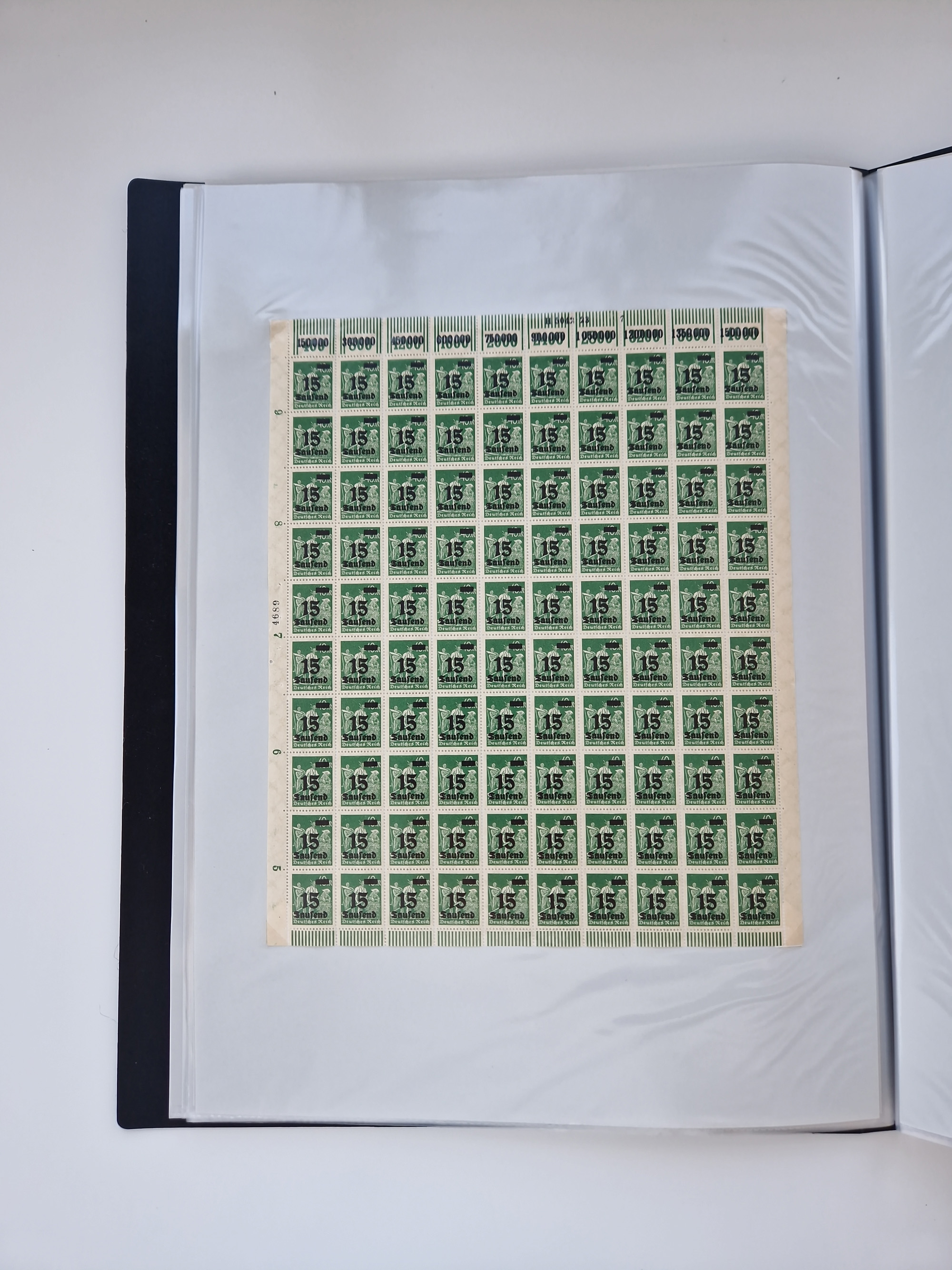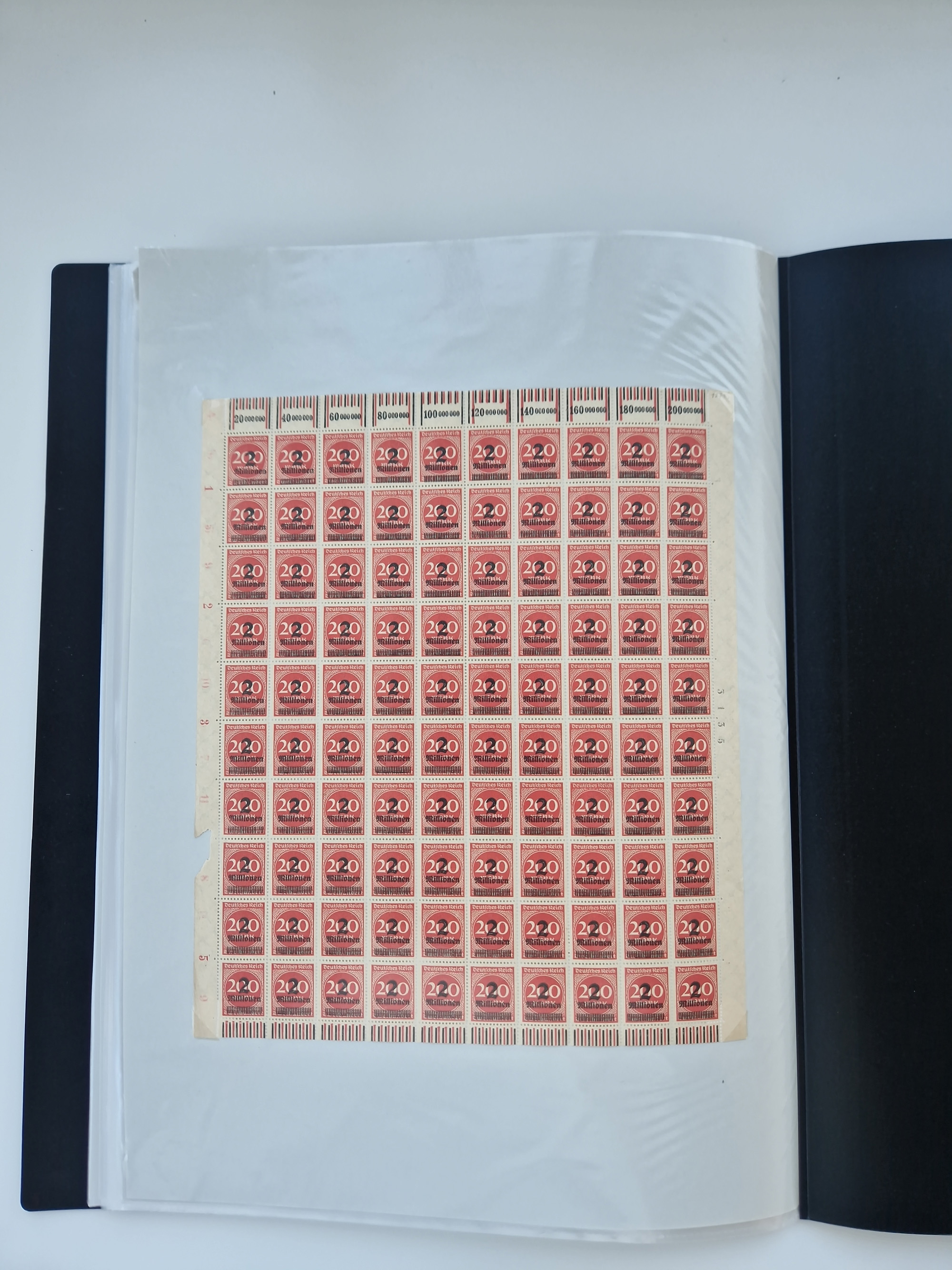 1920, meist postfrischer Bestand mit Mi.-Nr. 115 in 12 verschiedenen Bogen mit HAN “4891.20” mit geschlossener “4”, Plattenfehler XI, XV-XVII, unterschiedliche Farben, ein Bogen sign. Infla Berlin f, ein Bogen mit leichten Anhaftungen, einige leicht fleckig bzw. Randfehler