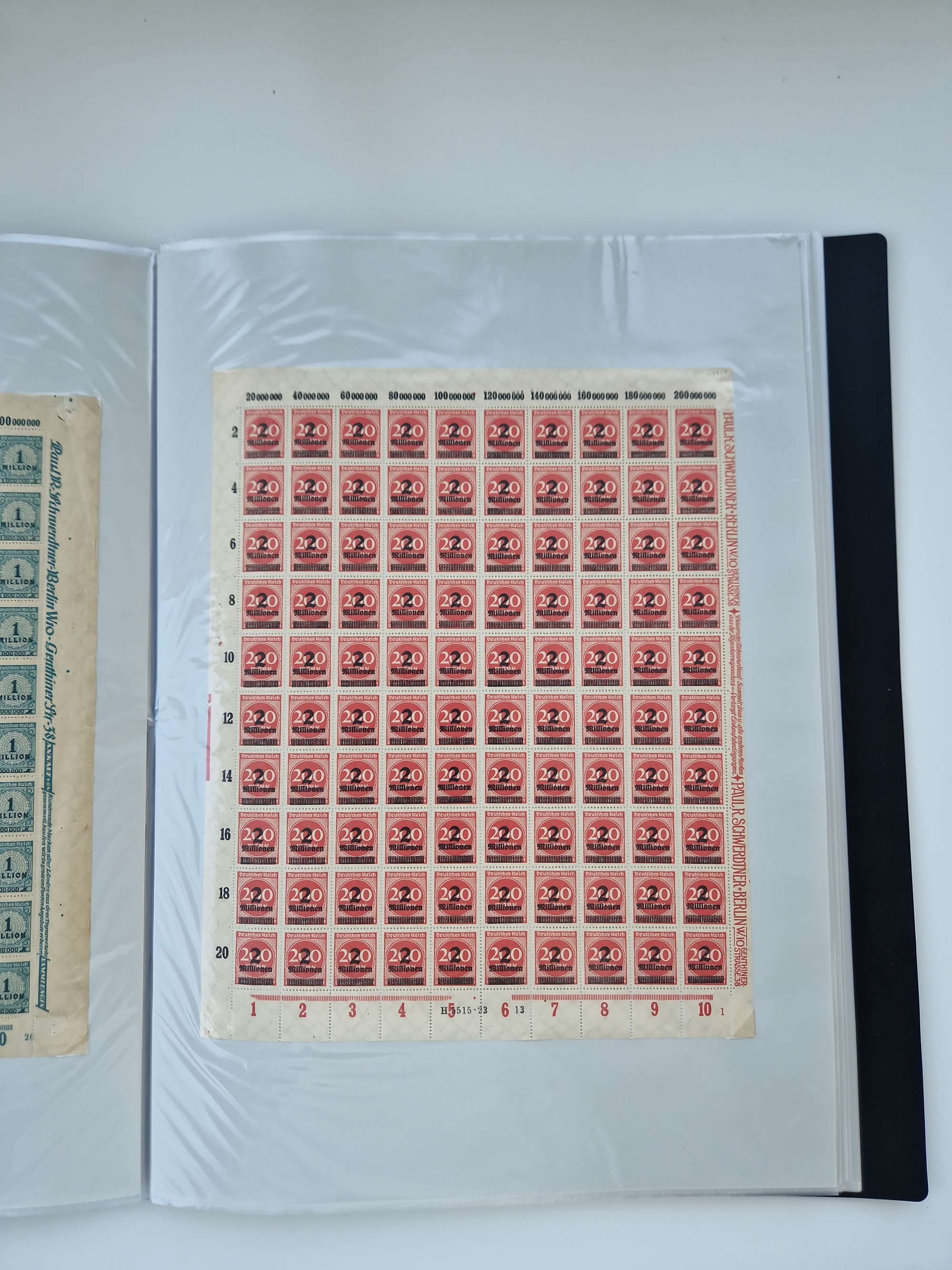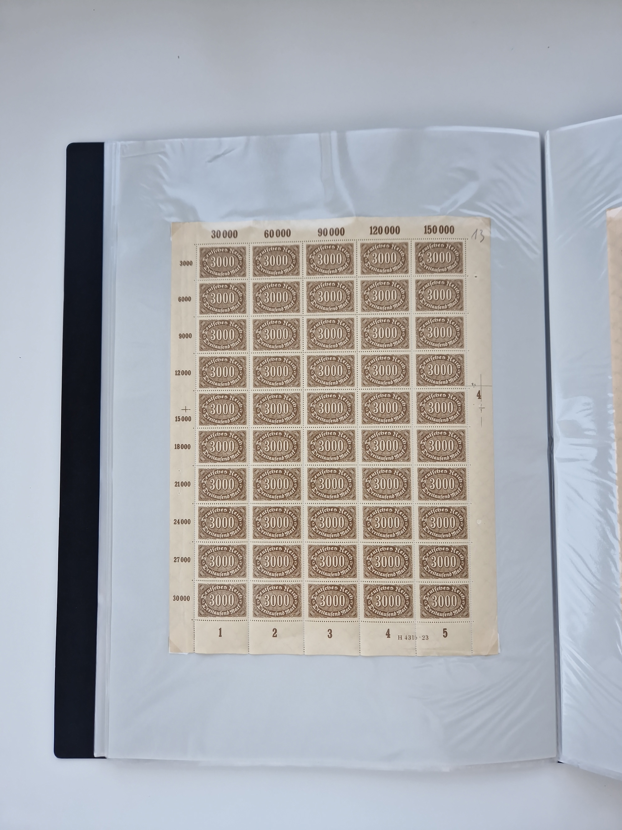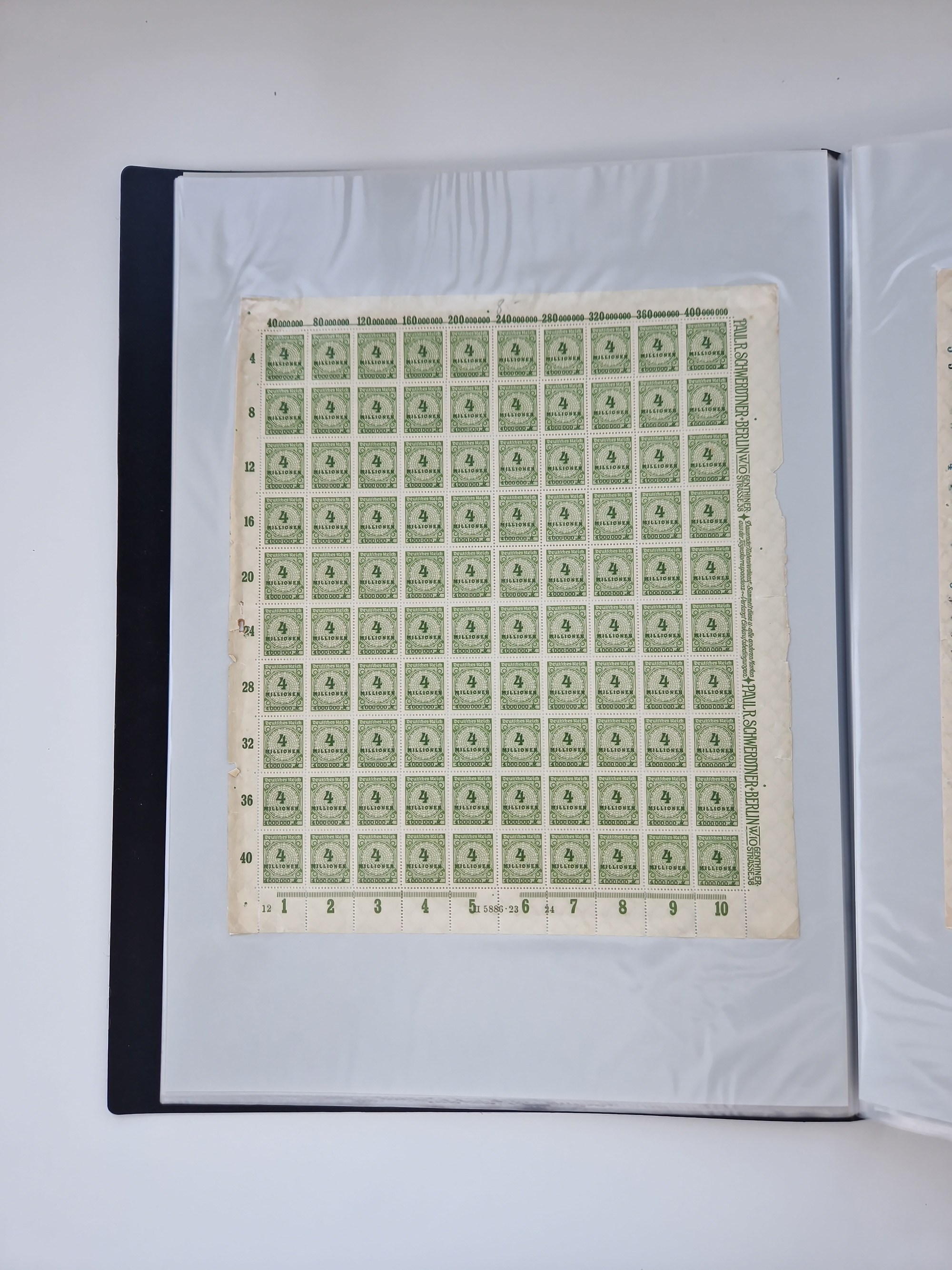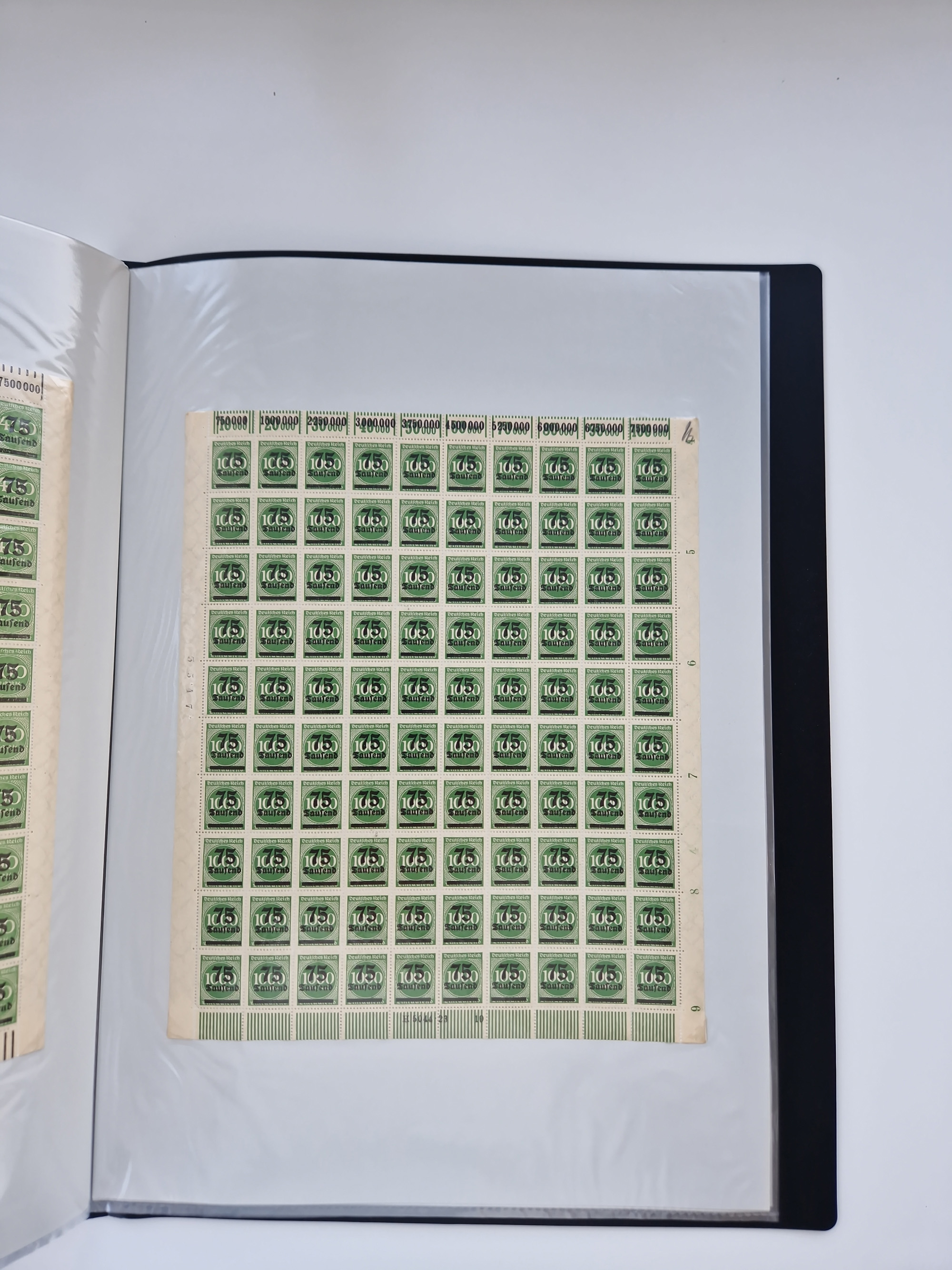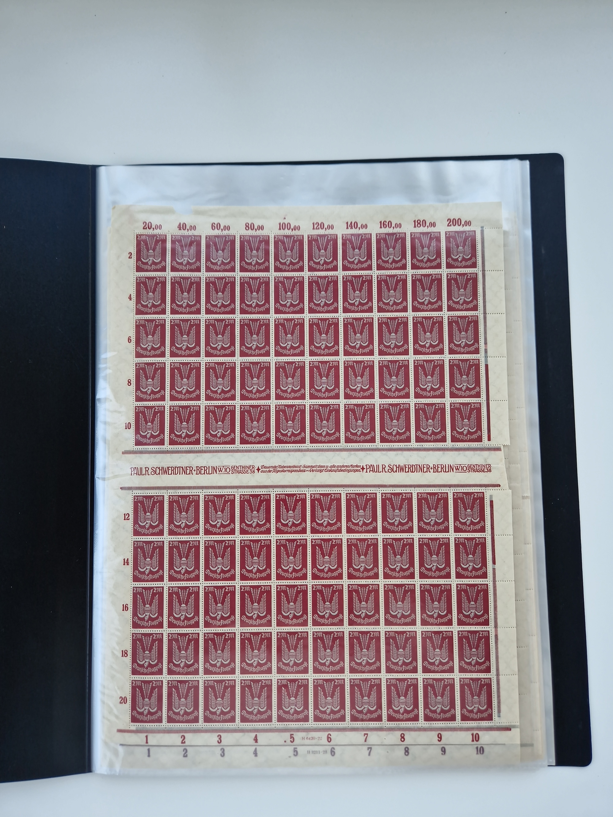 1920, meist postfrischer Bestand mit Mi.-Nr. 115 in 12 verschiedenen Bogen mit HAN “4891.20” mit geschlossener “4”, Plattenfehler XI, XV-XVII, unterschiedliche Farben, ein Bogen sign. Infla Berlin f, ein Bogen mit leichten Anhaftungen, einige leicht fleckig bzw. Randfehler