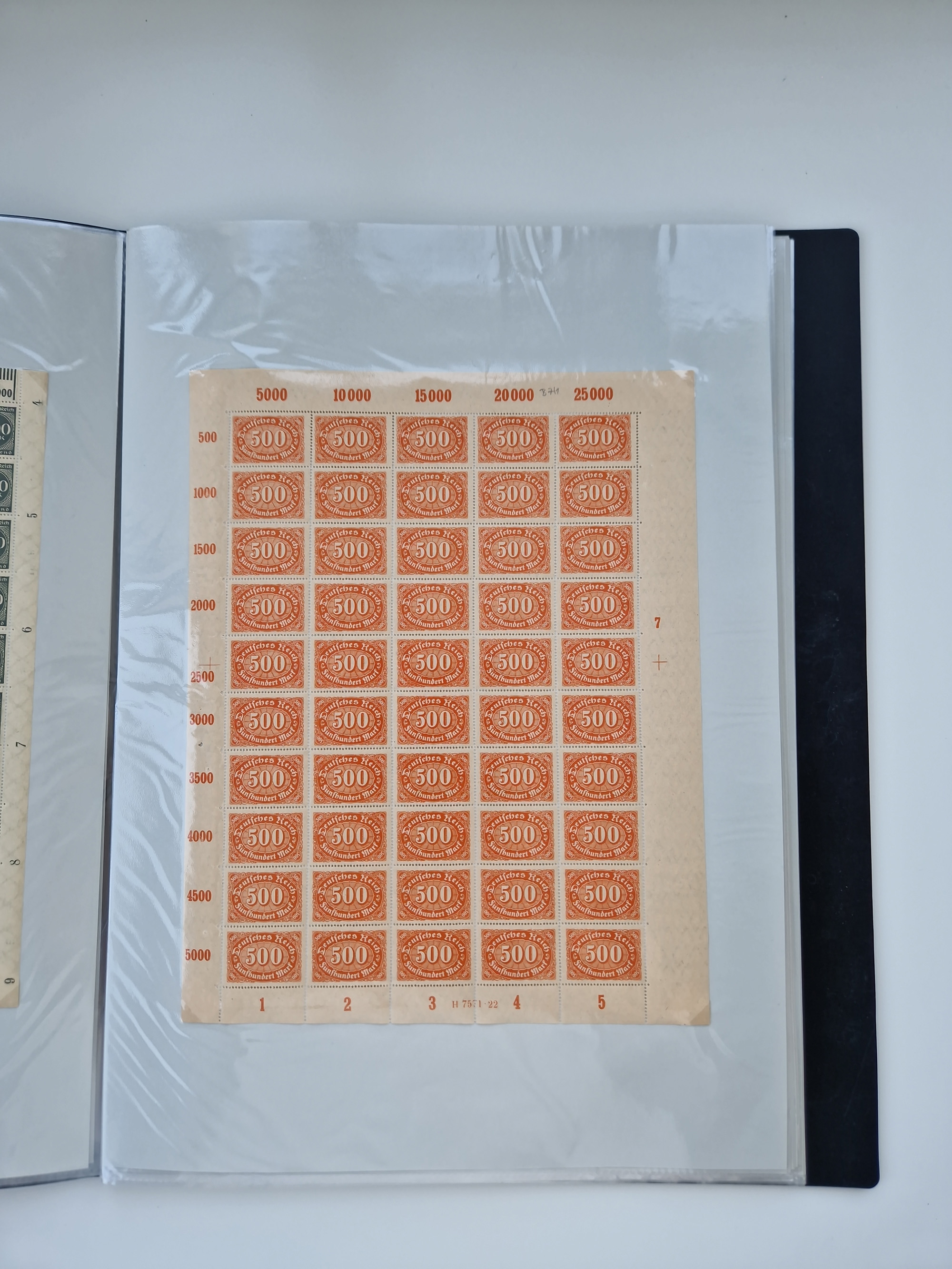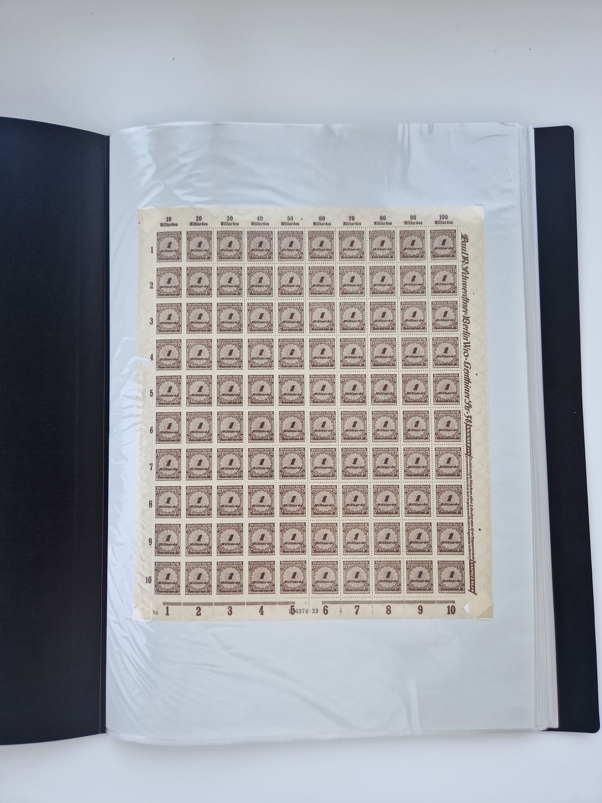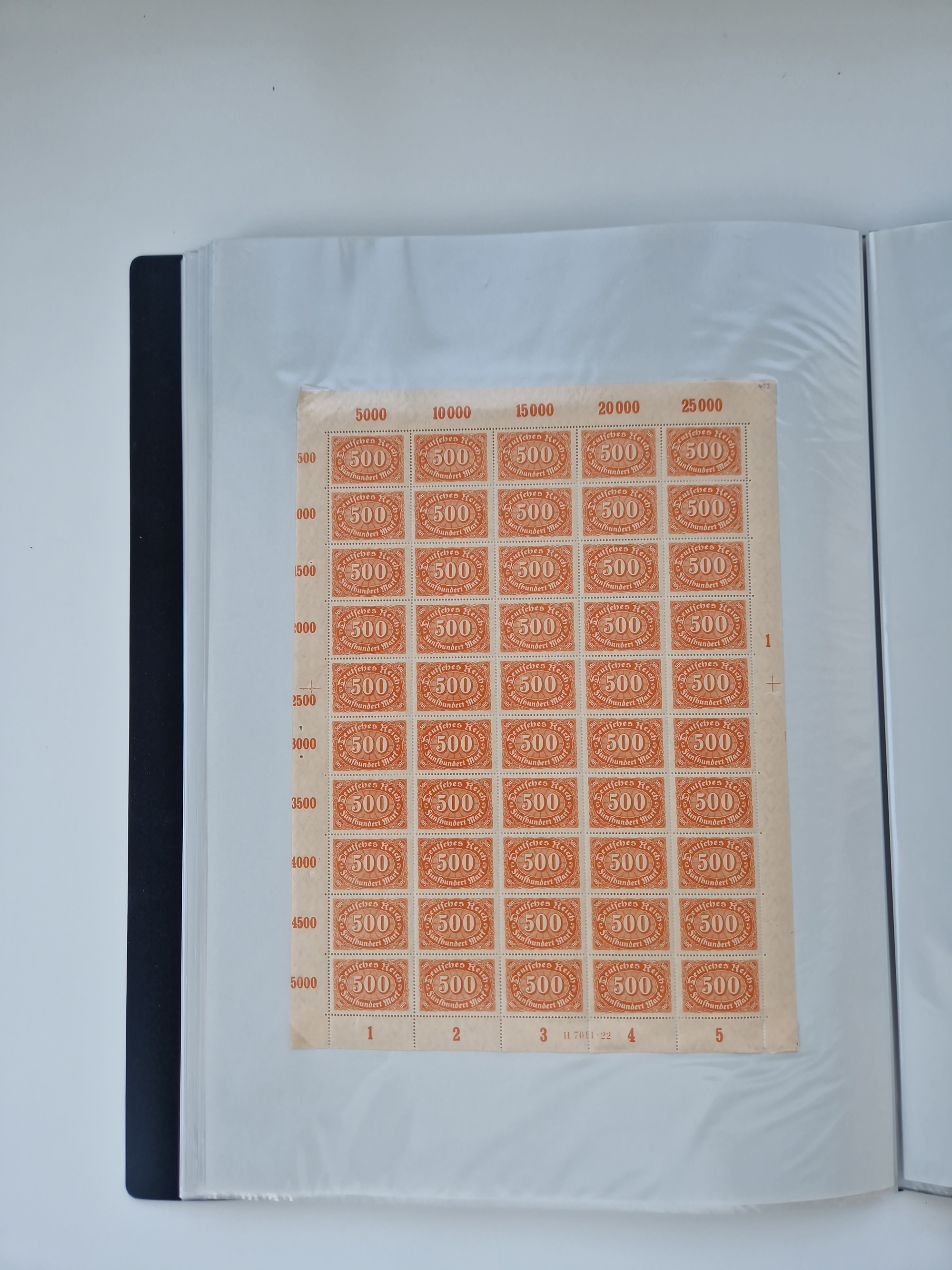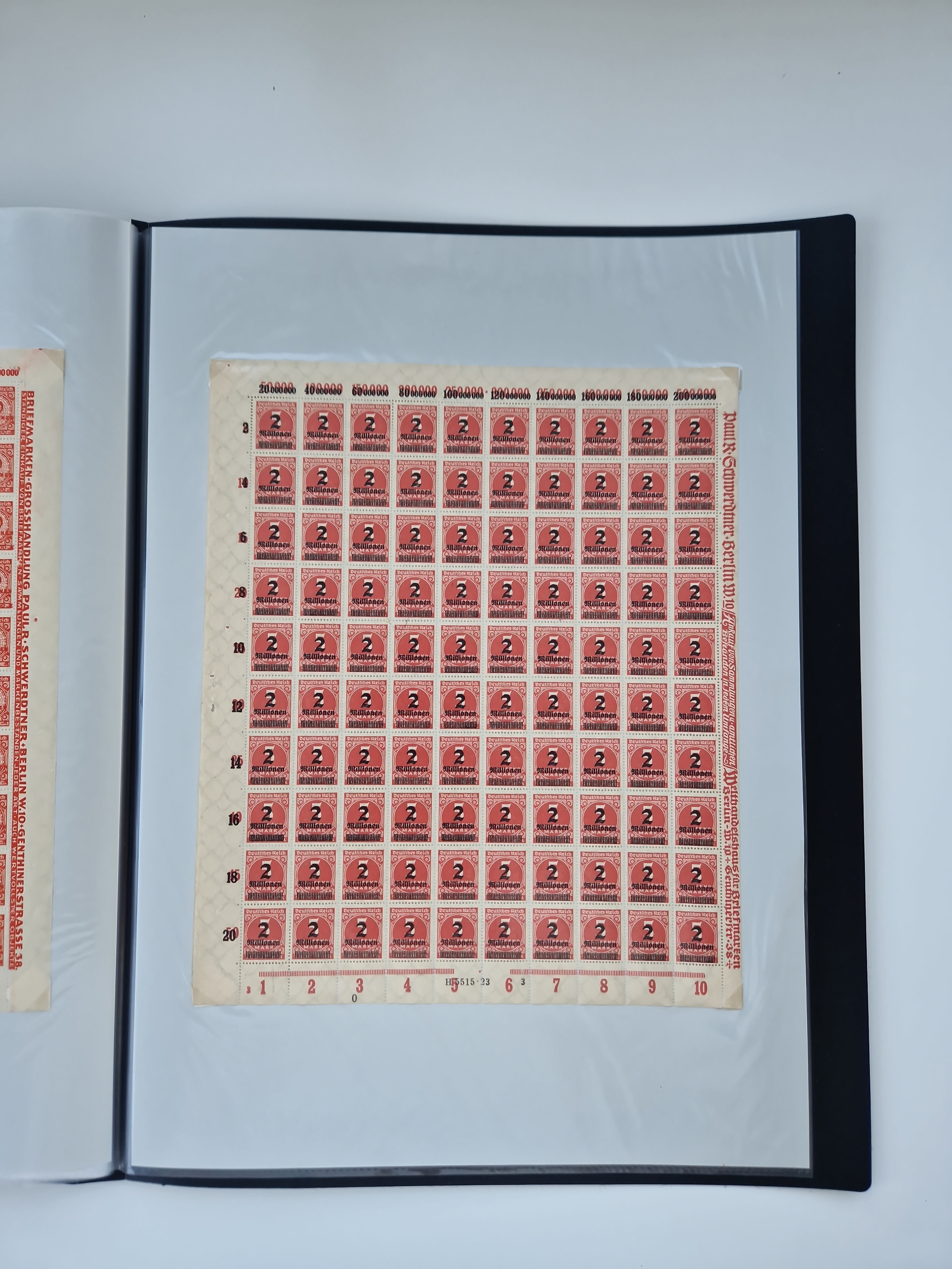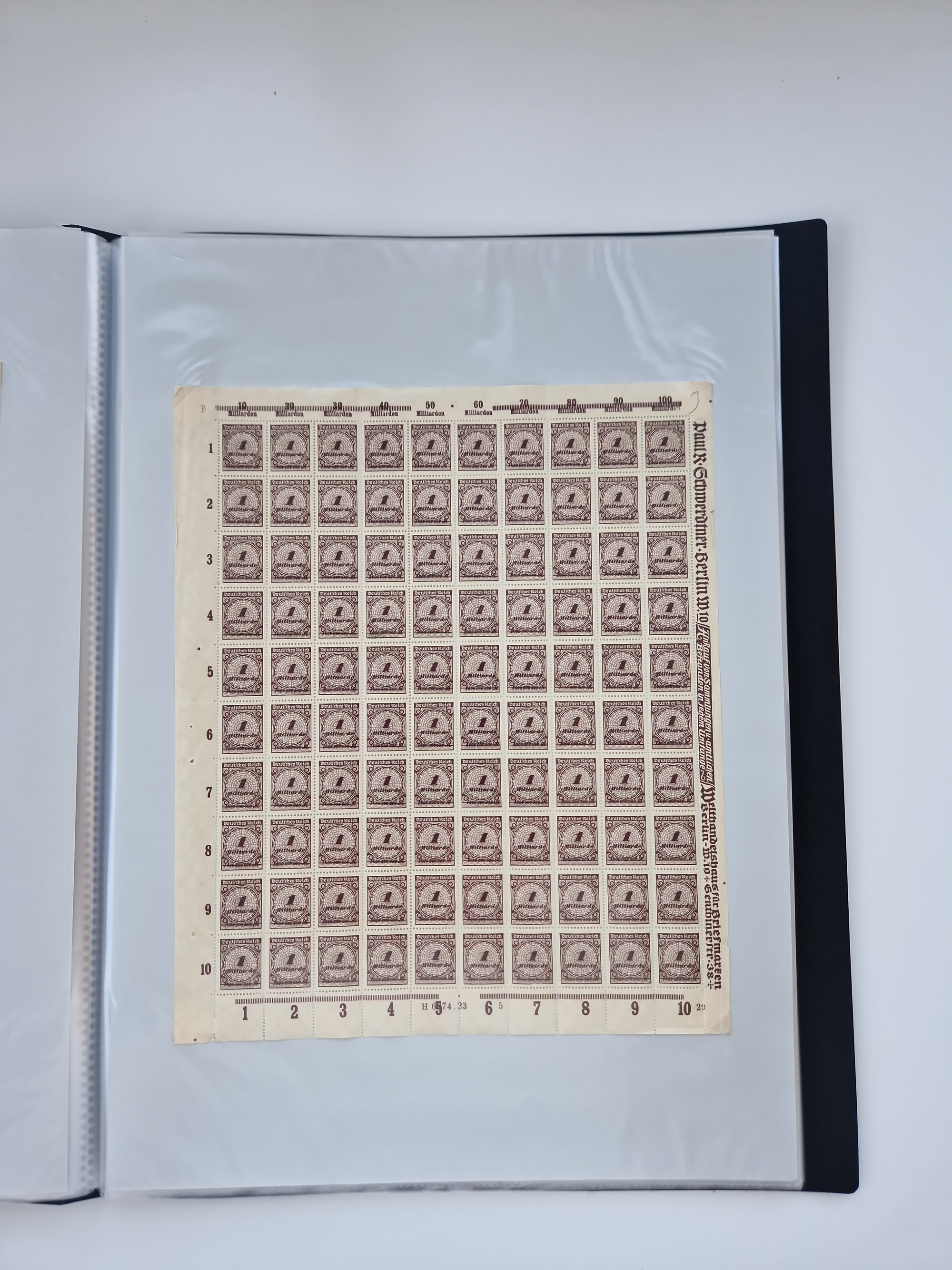 1920, meist postfrischer Bestand mit Mi.-Nr. 115 in 12 verschiedenen Bogen mit HAN “4891.20” mit geschlossener “4”, Plattenfehler XI, XV-XVII, unterschiedliche Farben, ein Bogen sign. Infla Berlin f, ein Bogen mit leichten Anhaftungen, einige leicht fleckig bzw. Randfehler