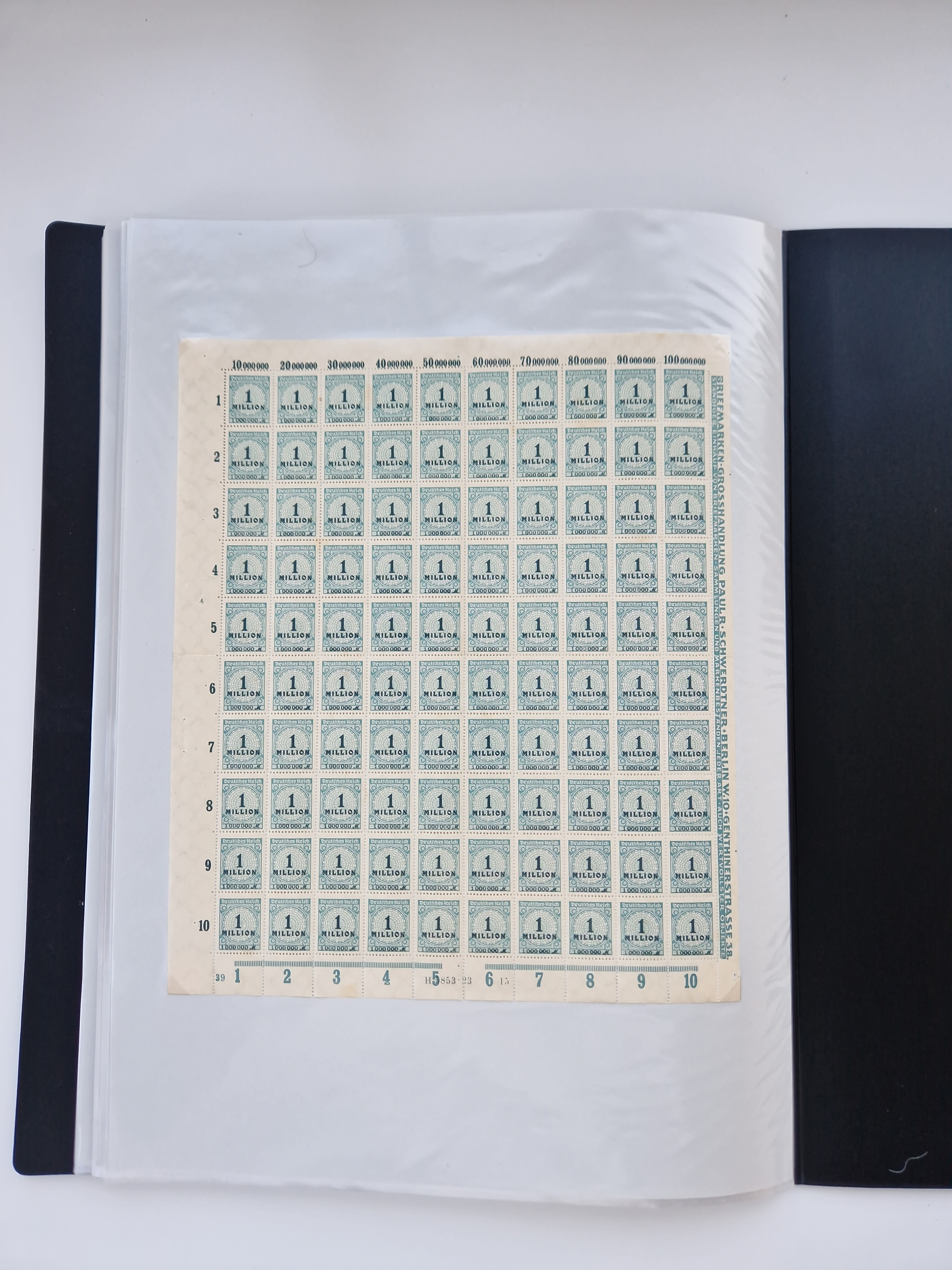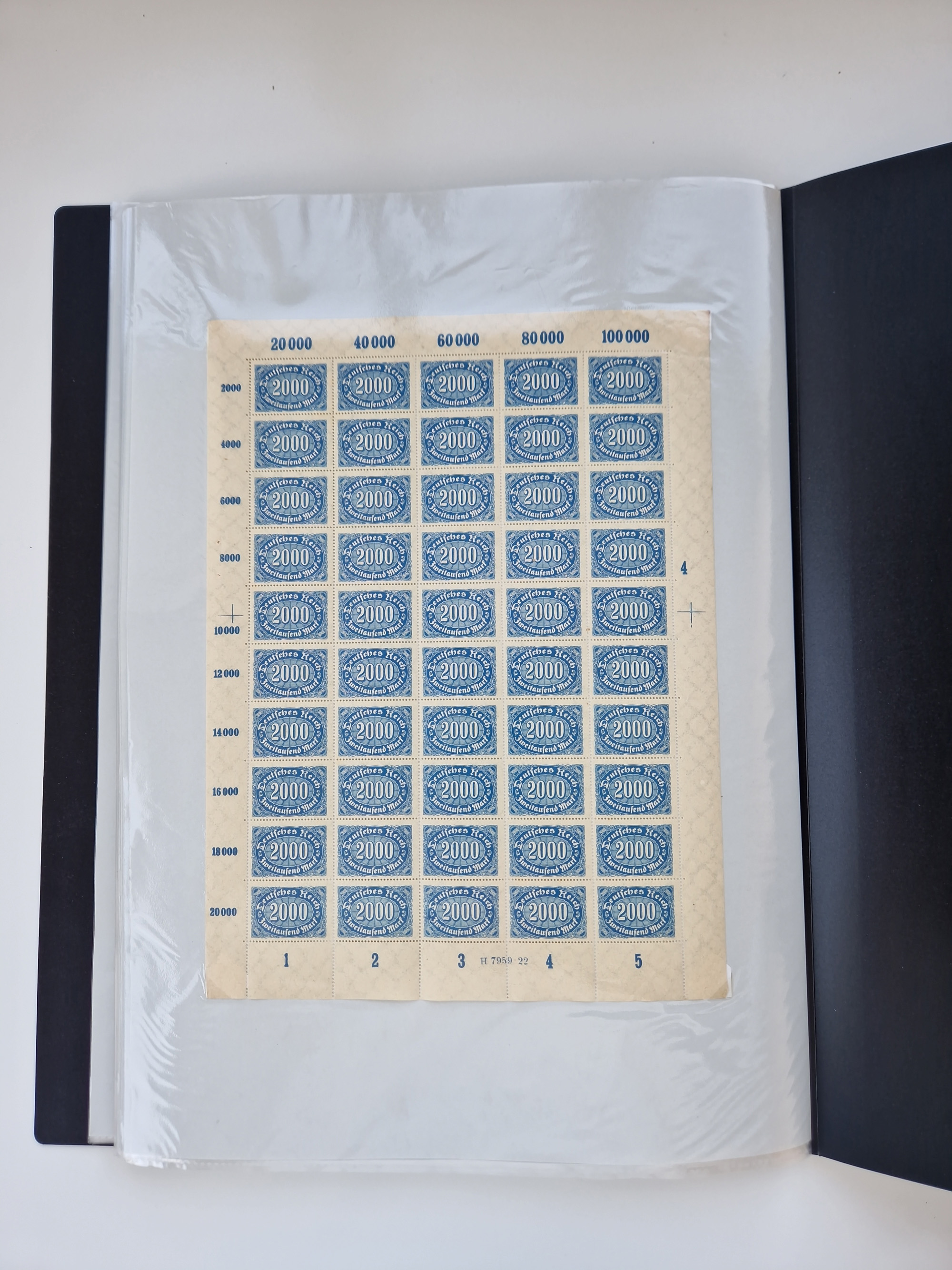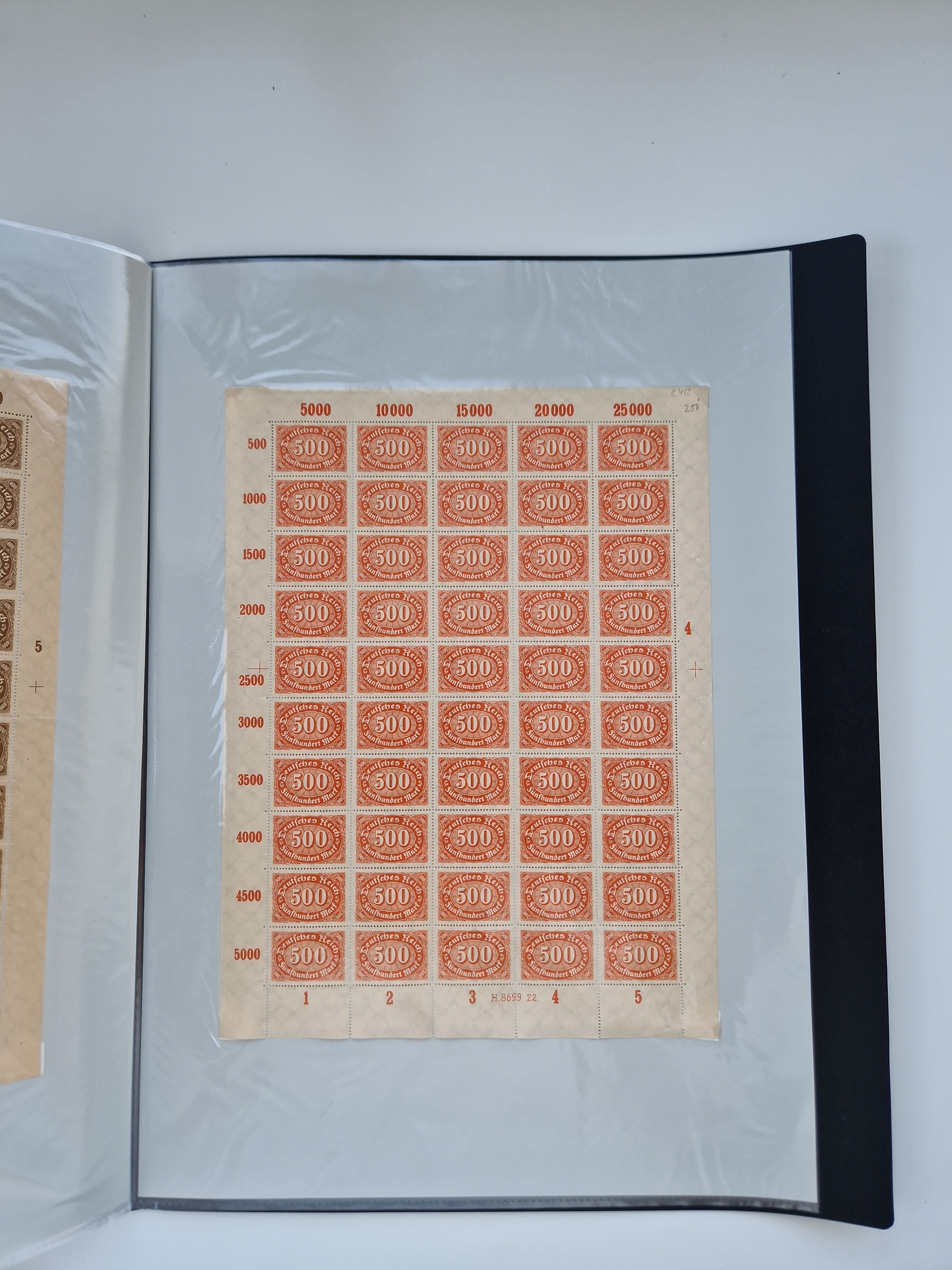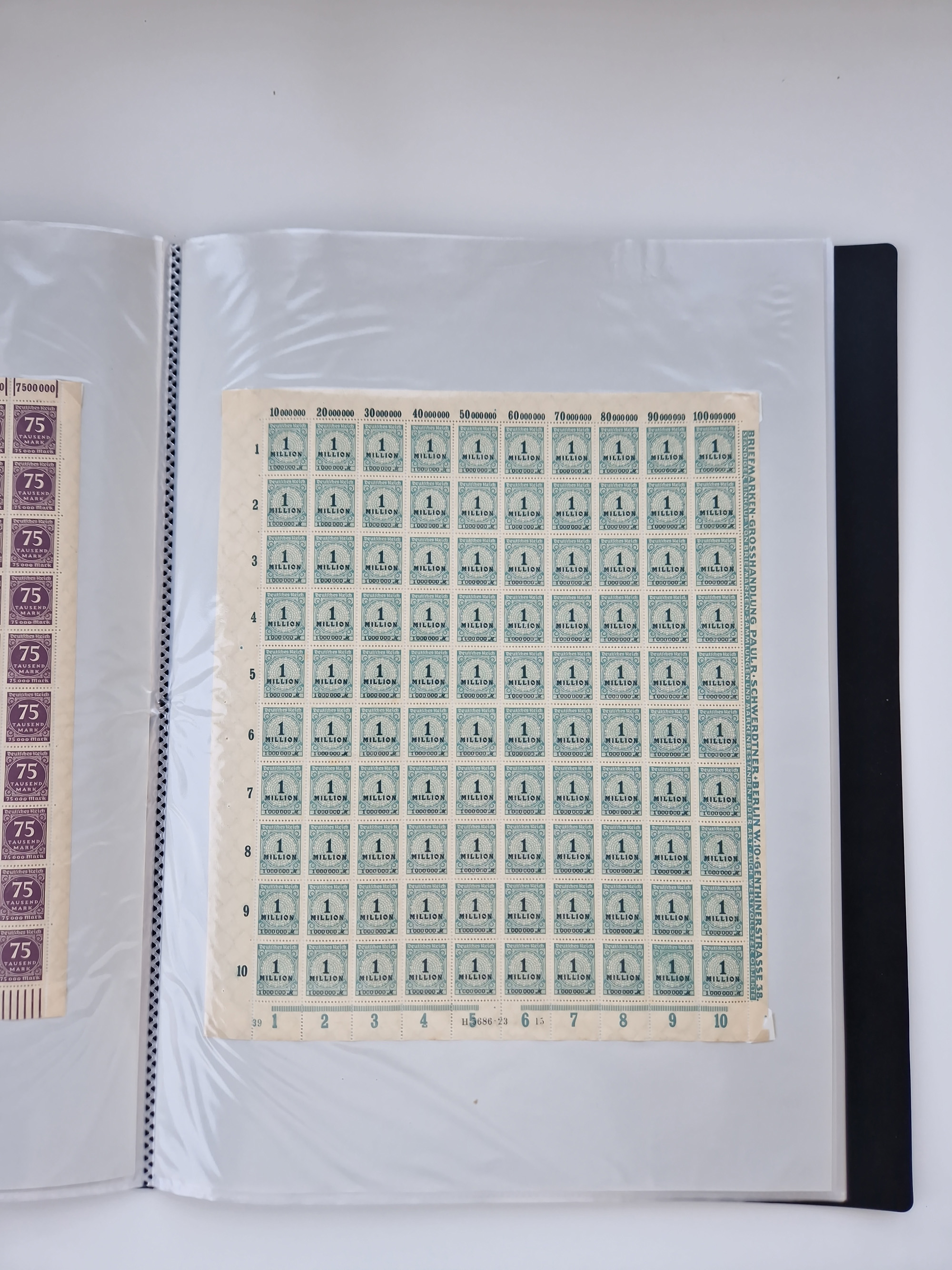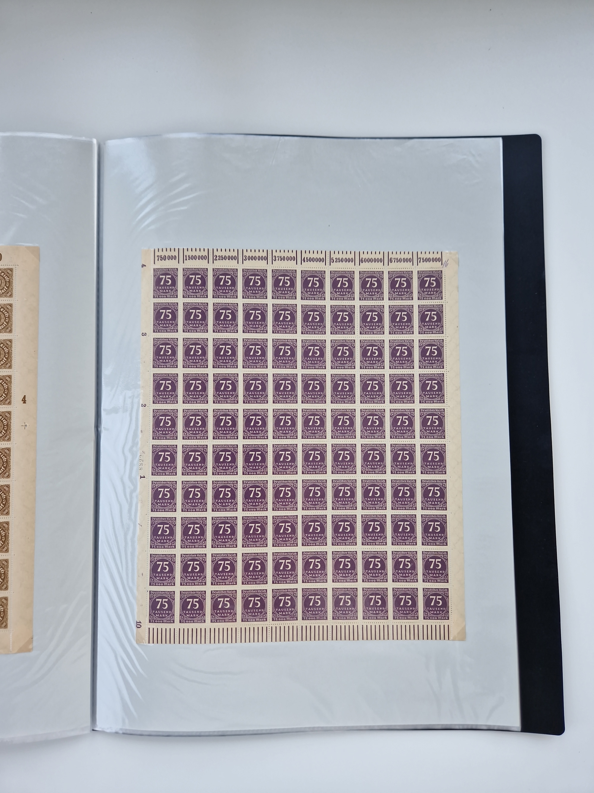 1920, meist postfrischer Bestand mit Mi.-Nr. 115 in 12 verschiedenen Bogen mit HAN “4891.20” mit geschlossener “4”, Plattenfehler XI, XV-XVII, unterschiedliche Farben, ein Bogen sign. Infla Berlin f, ein Bogen mit leichten Anhaftungen, einige leicht fleckig bzw. Randfehler