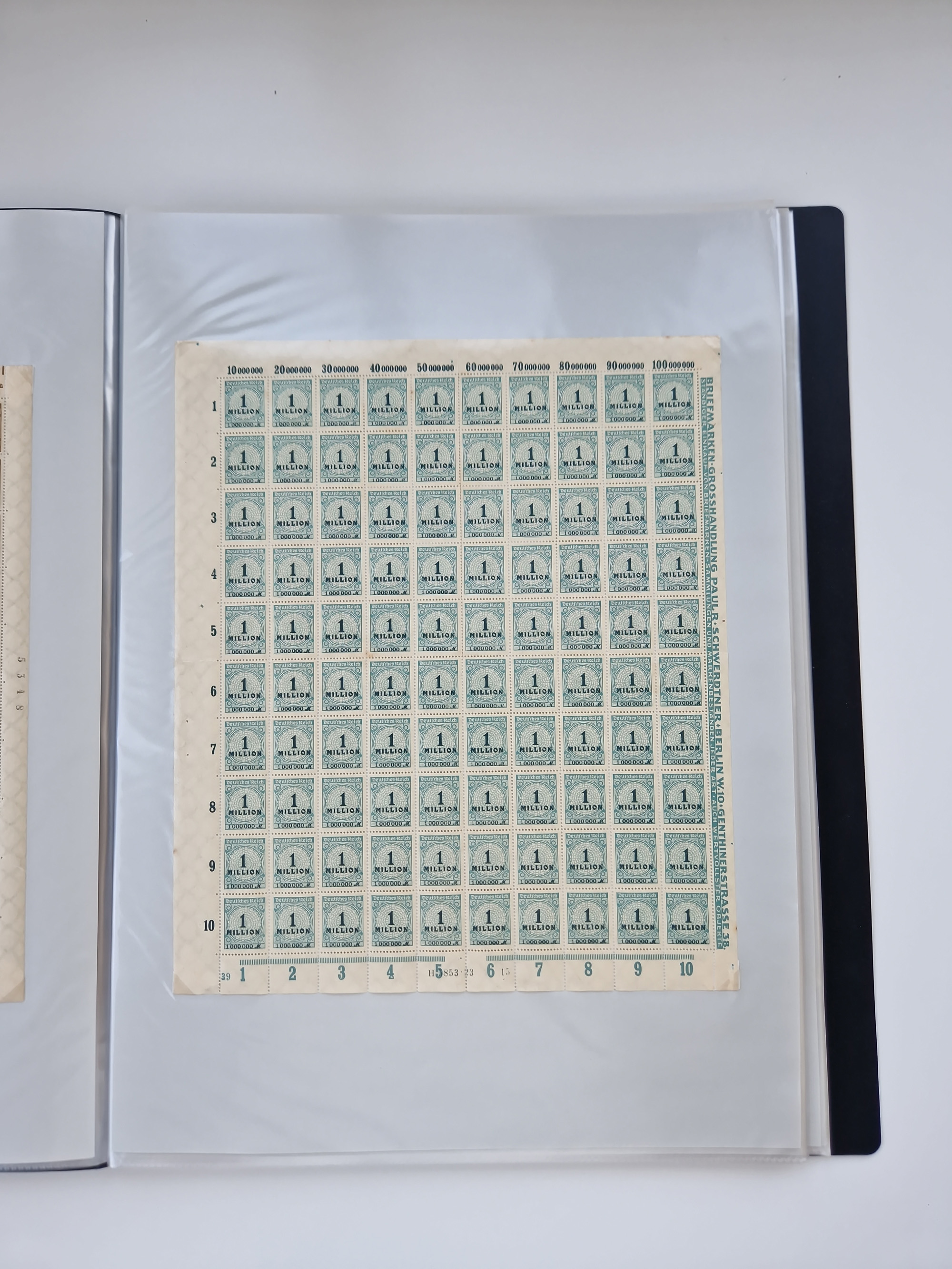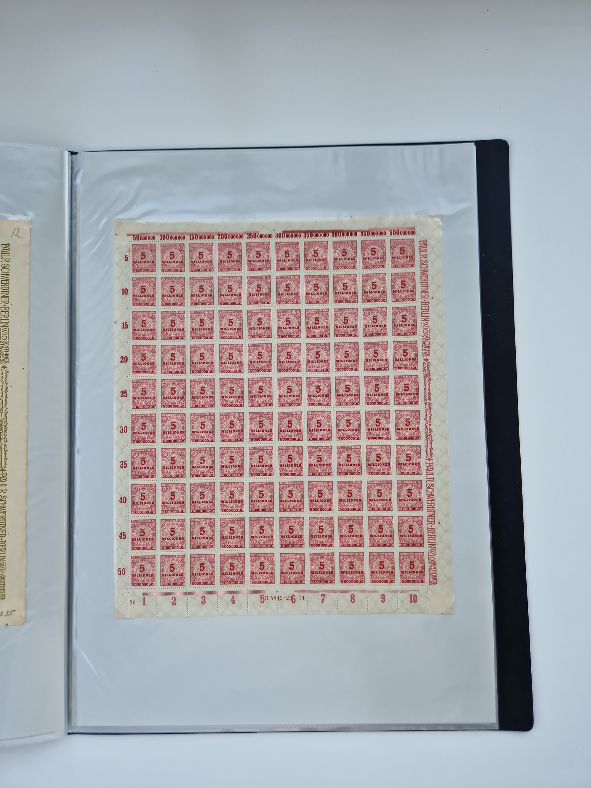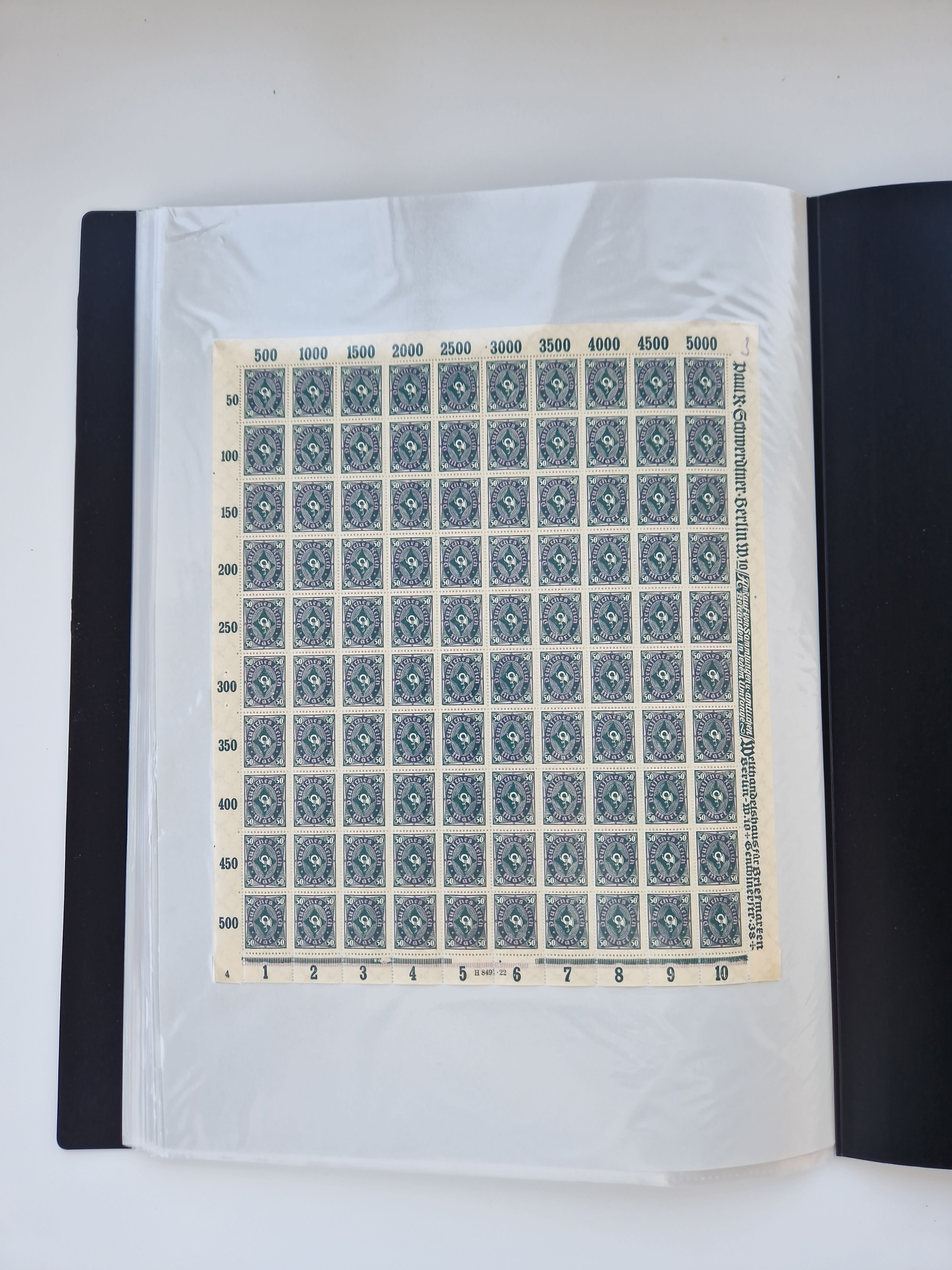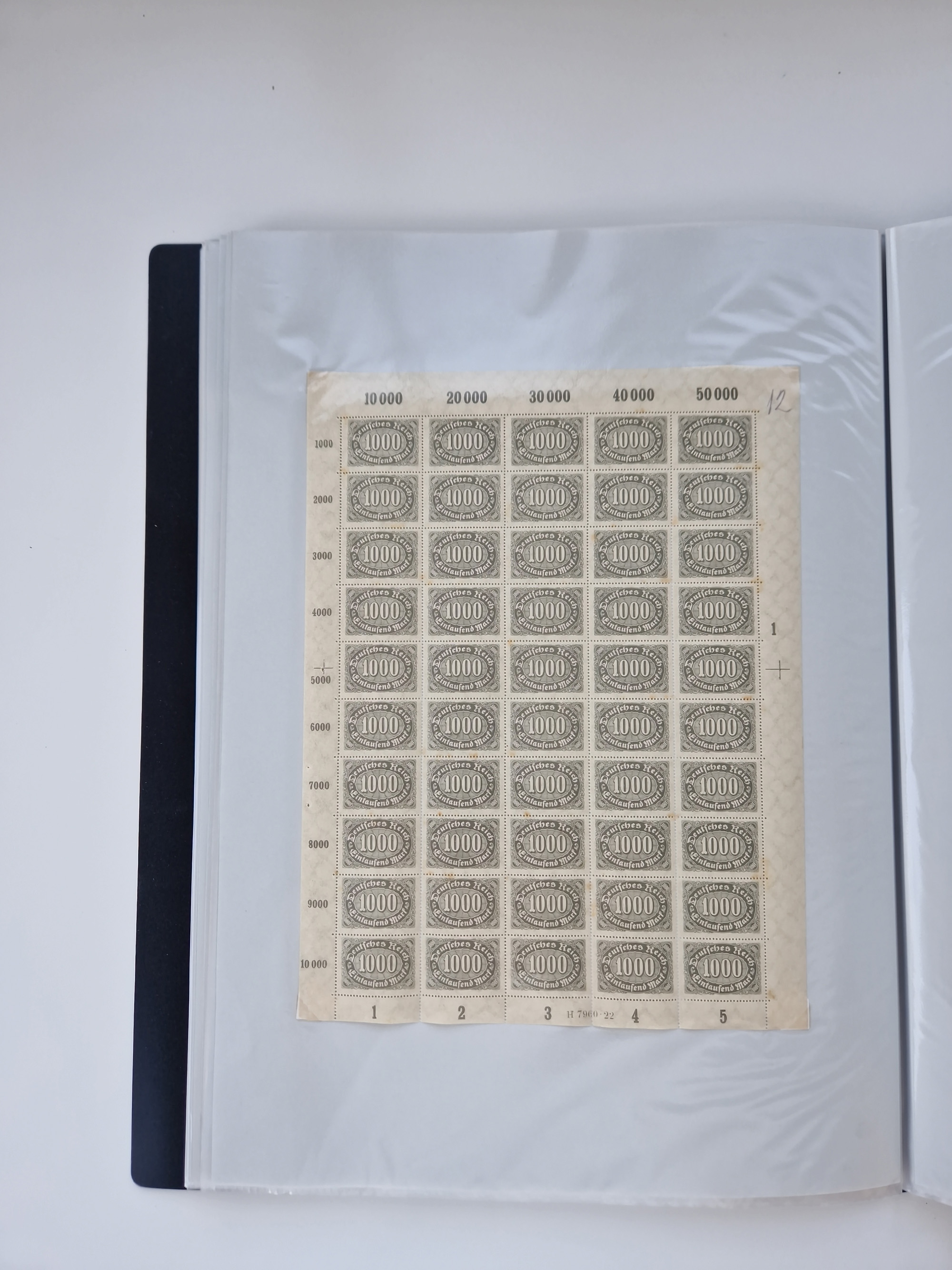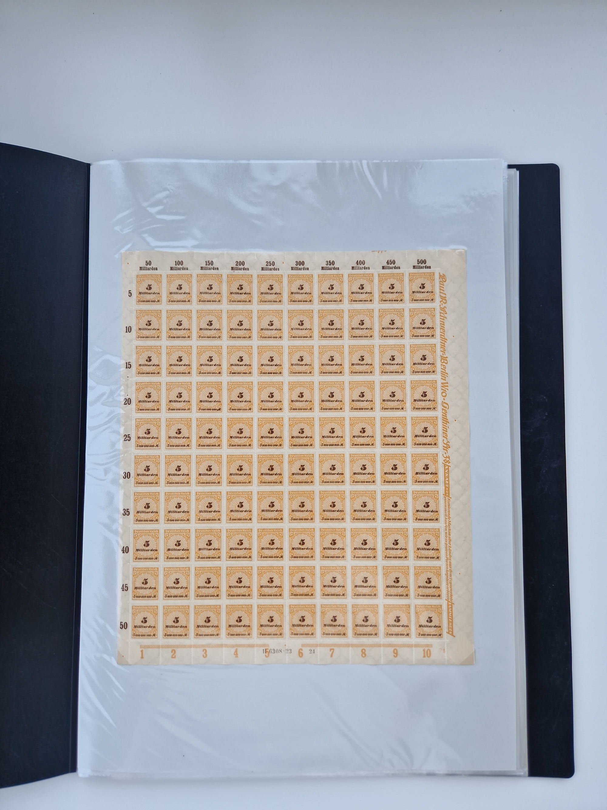 1920, meist postfrischer Bestand mit Mi.-Nr. 115 in 12 verschiedenen Bogen mit HAN “4891.20” mit geschlossener “4”, Plattenfehler XI, XV-XVII, unterschiedliche Farben, ein Bogen sign. Infla Berlin f, ein Bogen mit leichten Anhaftungen, einige leicht fleckig bzw. Randfehler