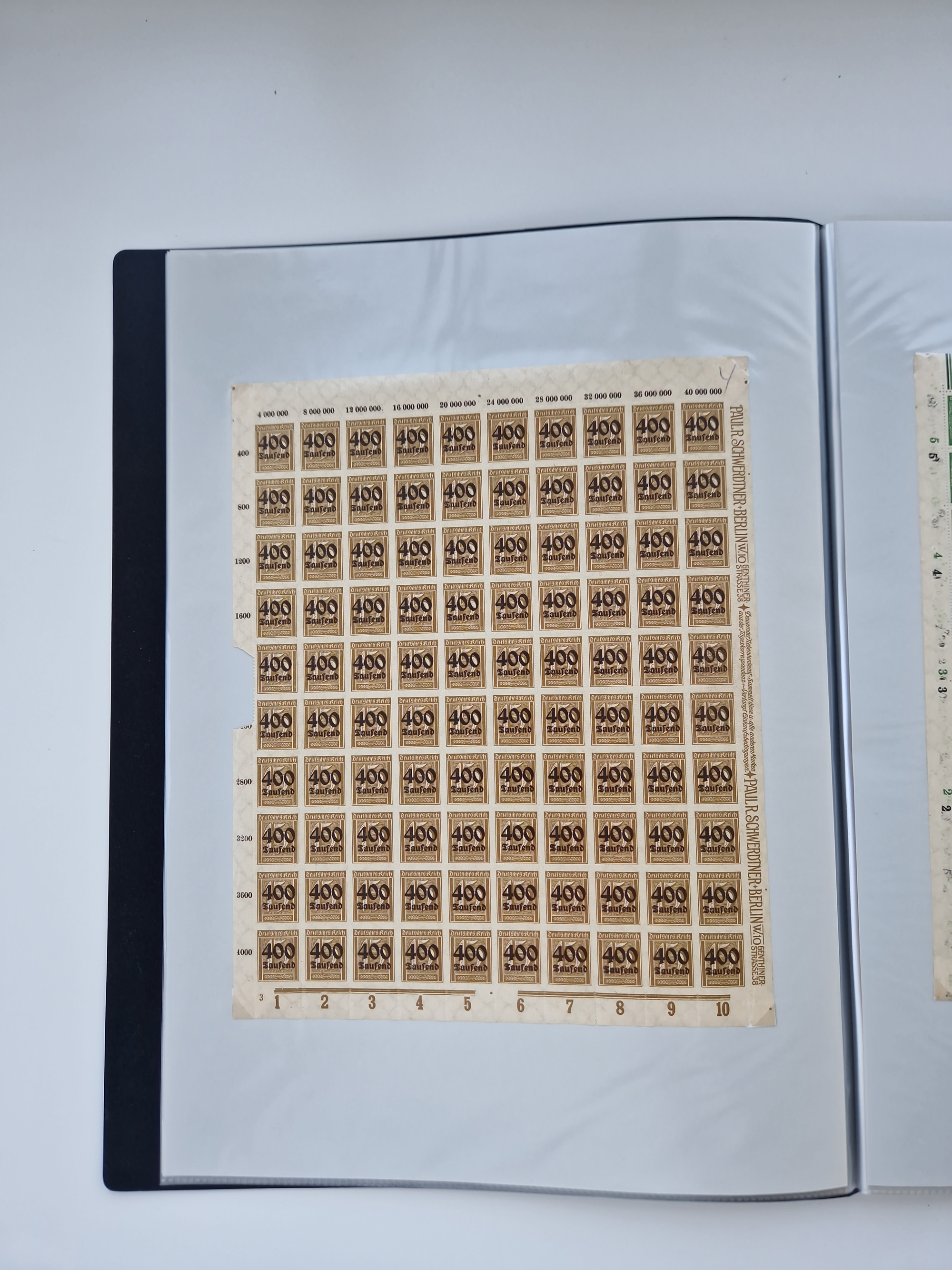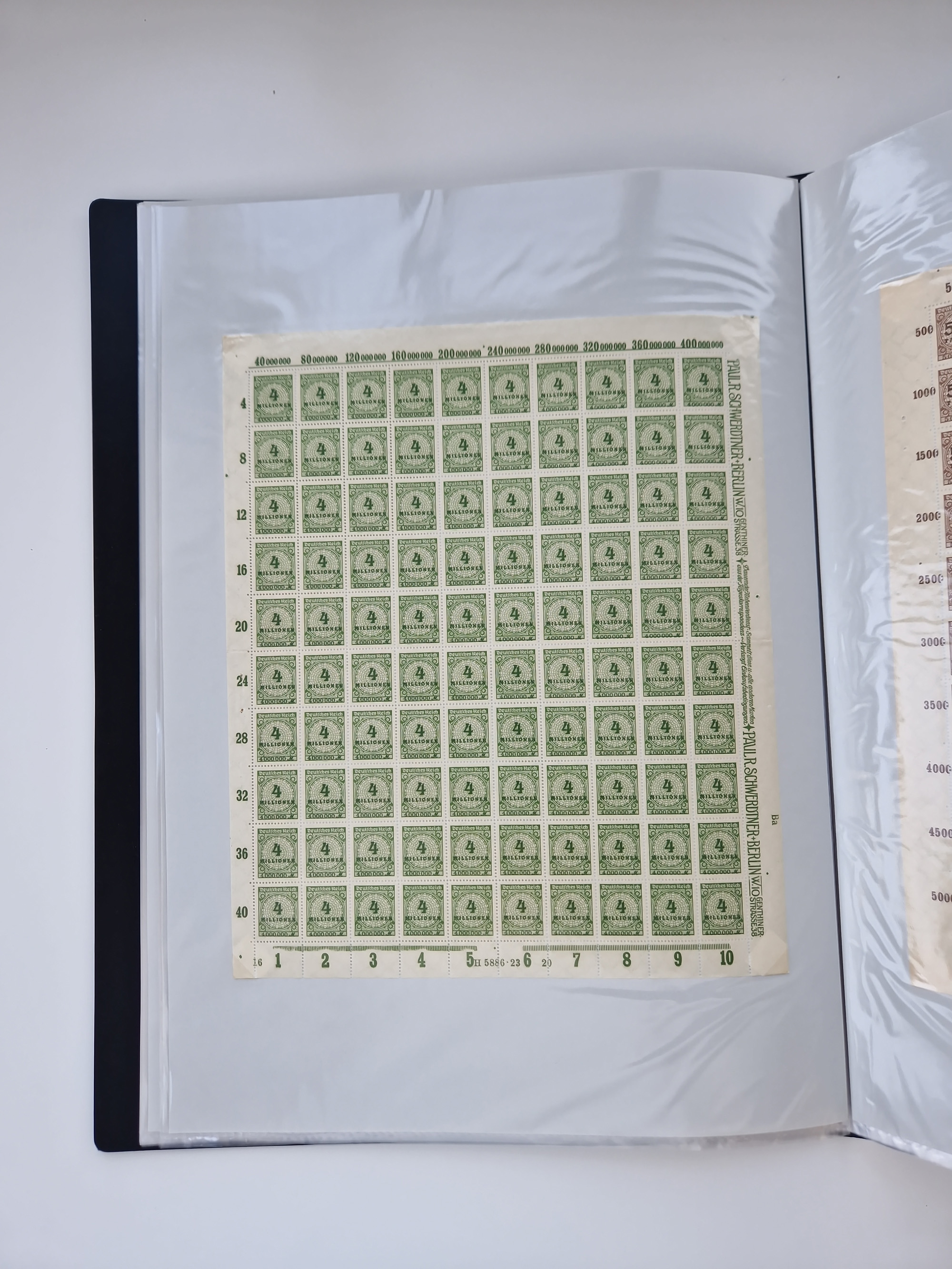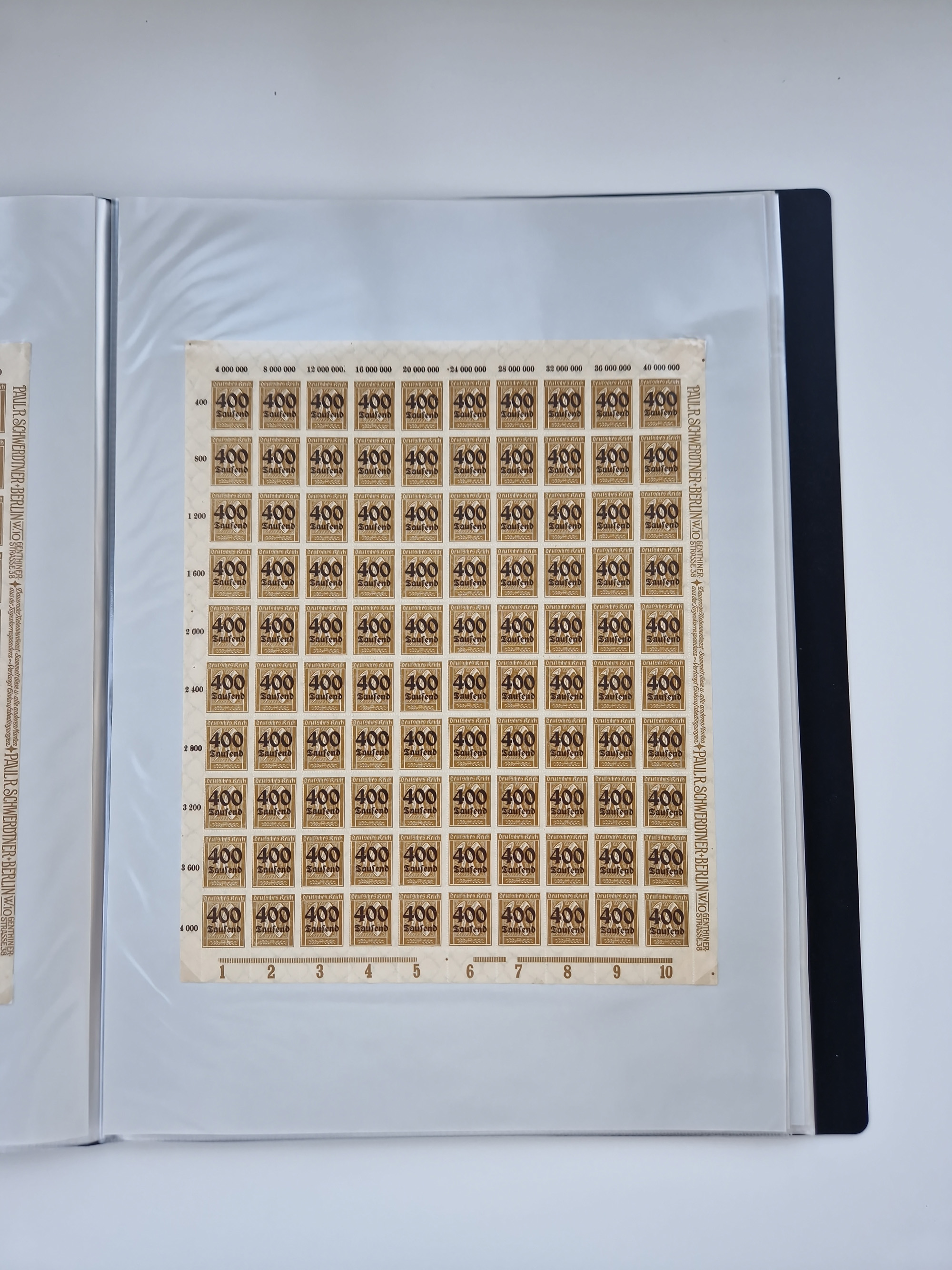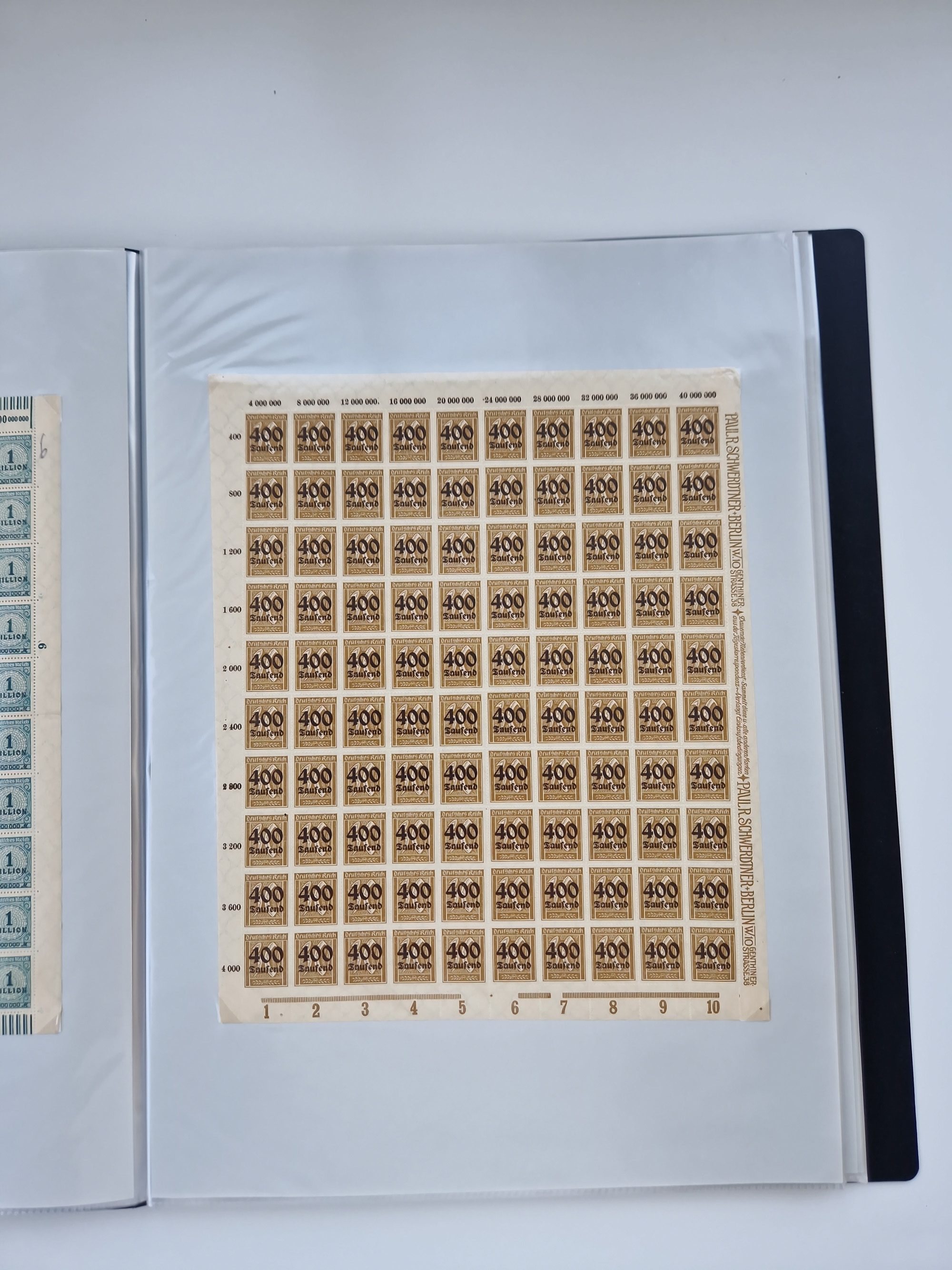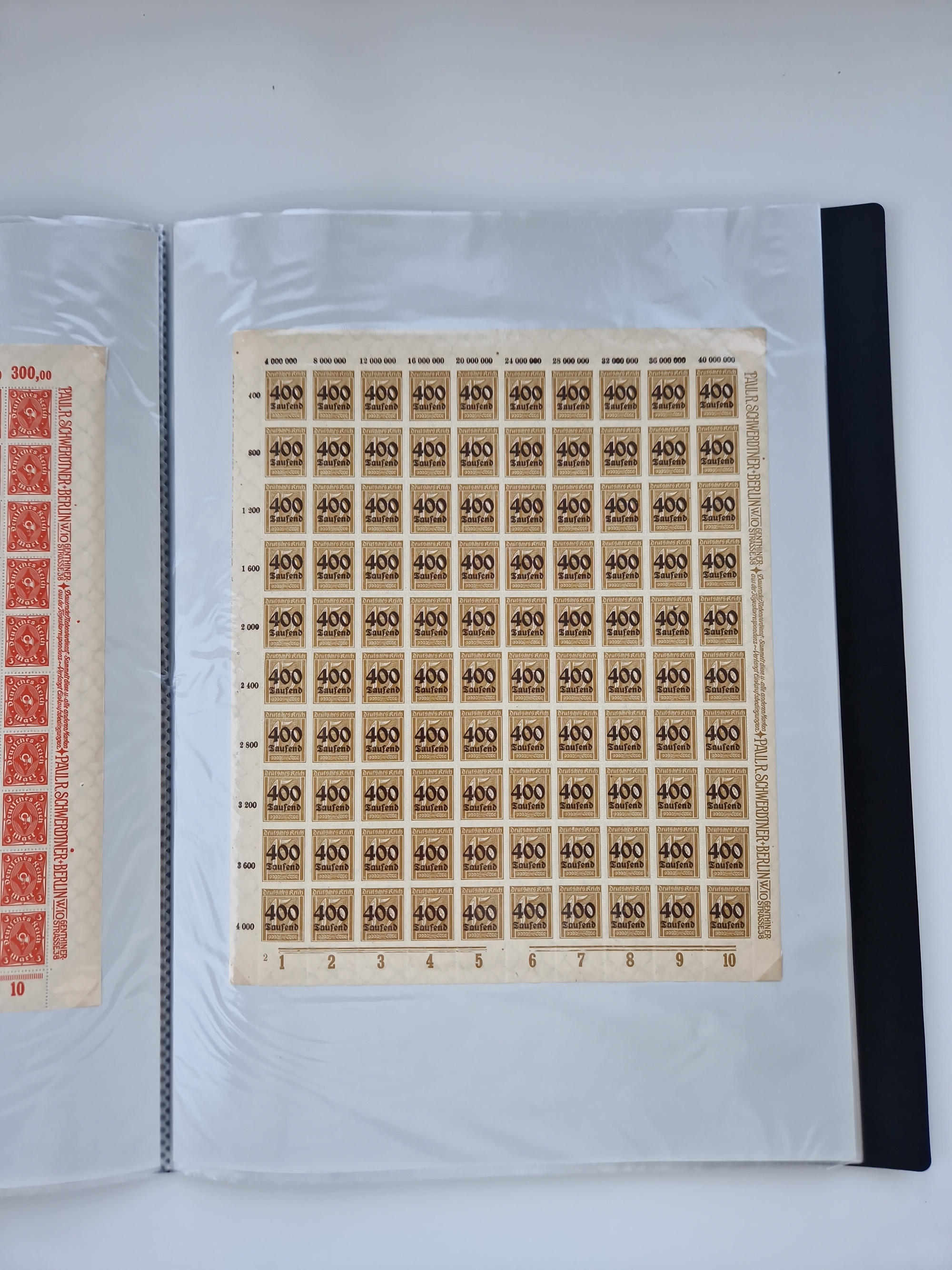 1919/32, meist postfrische Sammlung im Lindner-Falzlosalbum komplett mit vielen Besonderheiten. Infla mit vielen Farben und ungezähnten Marken. Weimar mit Mi. 339 ohne Wertziffer Befund Schlegel BPP, Mi. 344-350 Viererblocksatz meist postfrisch, Attest A. Schlegel BPP, Mi. 401X im 6er-Block postfrisch mit HAN in braun und gelb, Attest Dr. Oechsner BPP, Mi. 407-409 Viererblocksatz postfrisch, Attest Oechsner BPP, Mi. 434I postfrisch Attest A. Schlegel BPP, Mi. 397 postfrisch Befund H-D-Schlegel BPP, Zeppelinmarken ungebraucht