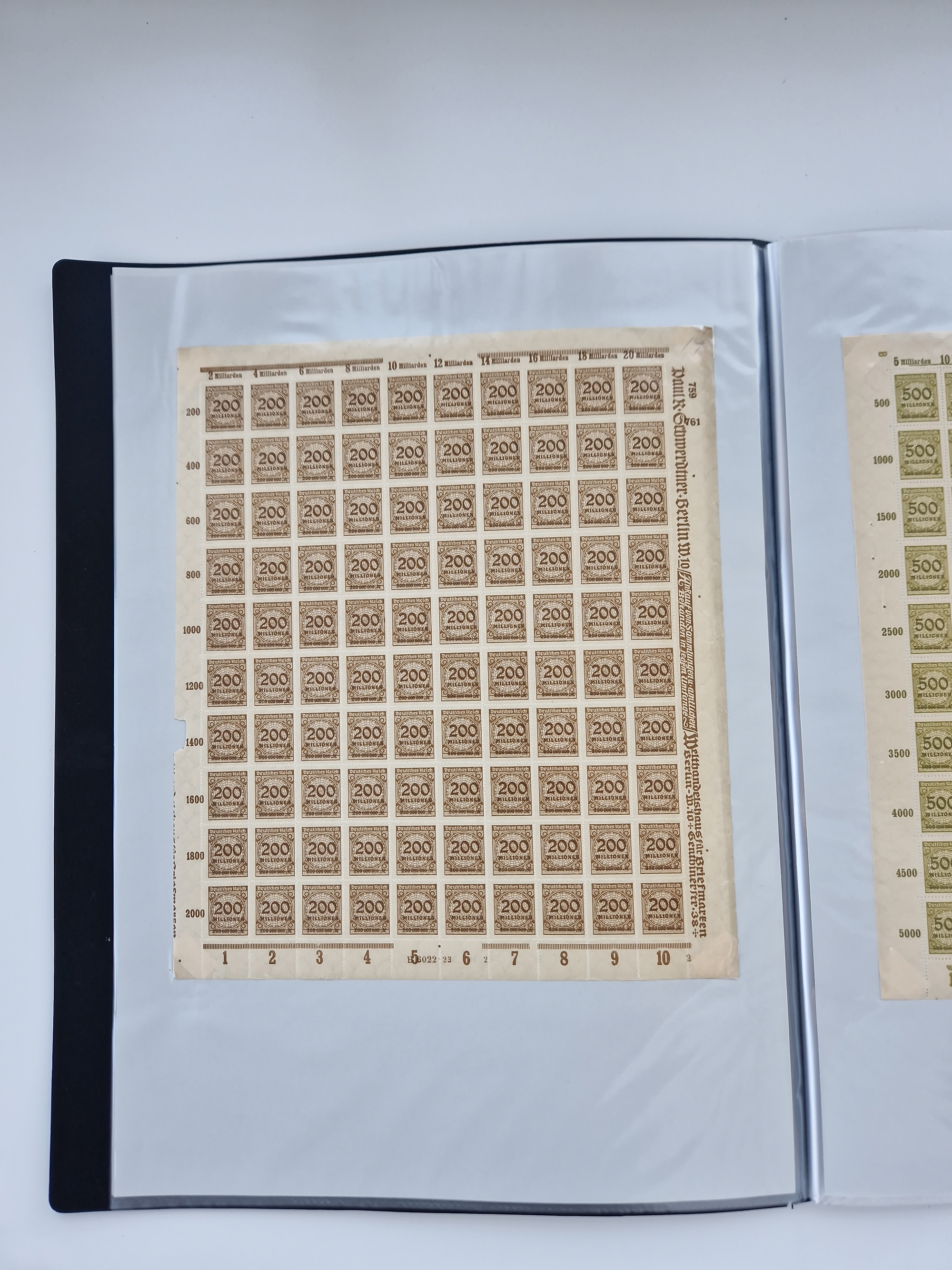 1919/23, meist postfrische Sammlung mit über 200 Bögen, bis auf wenige aufgetrennte Exemplare in kpl. Bogen, dabei auch etwas OPD I, Mi.-Nr. 260 im kpl. Bogen, etc., gute Erhaltung, teils mit üblichen Einschränkungen