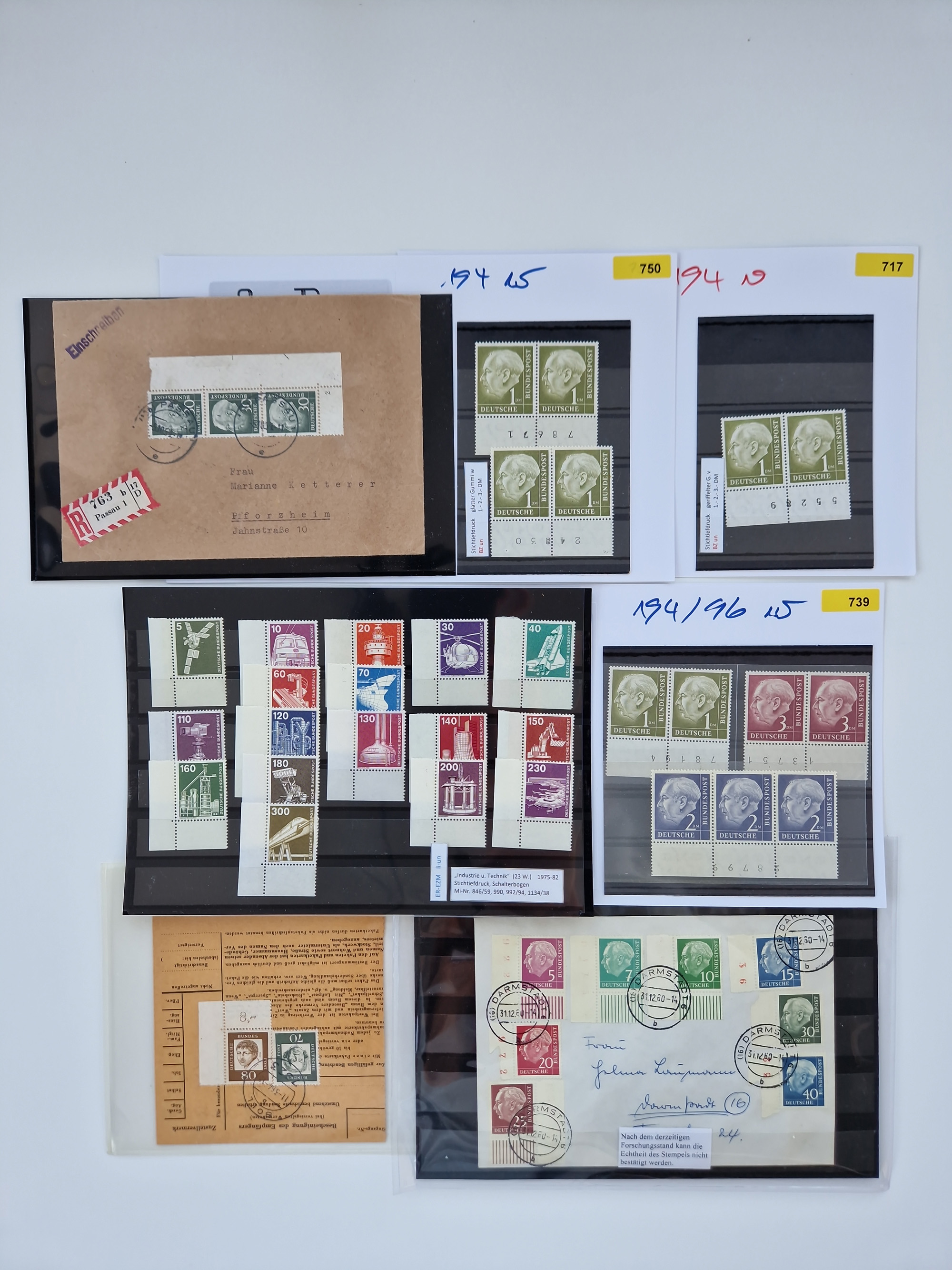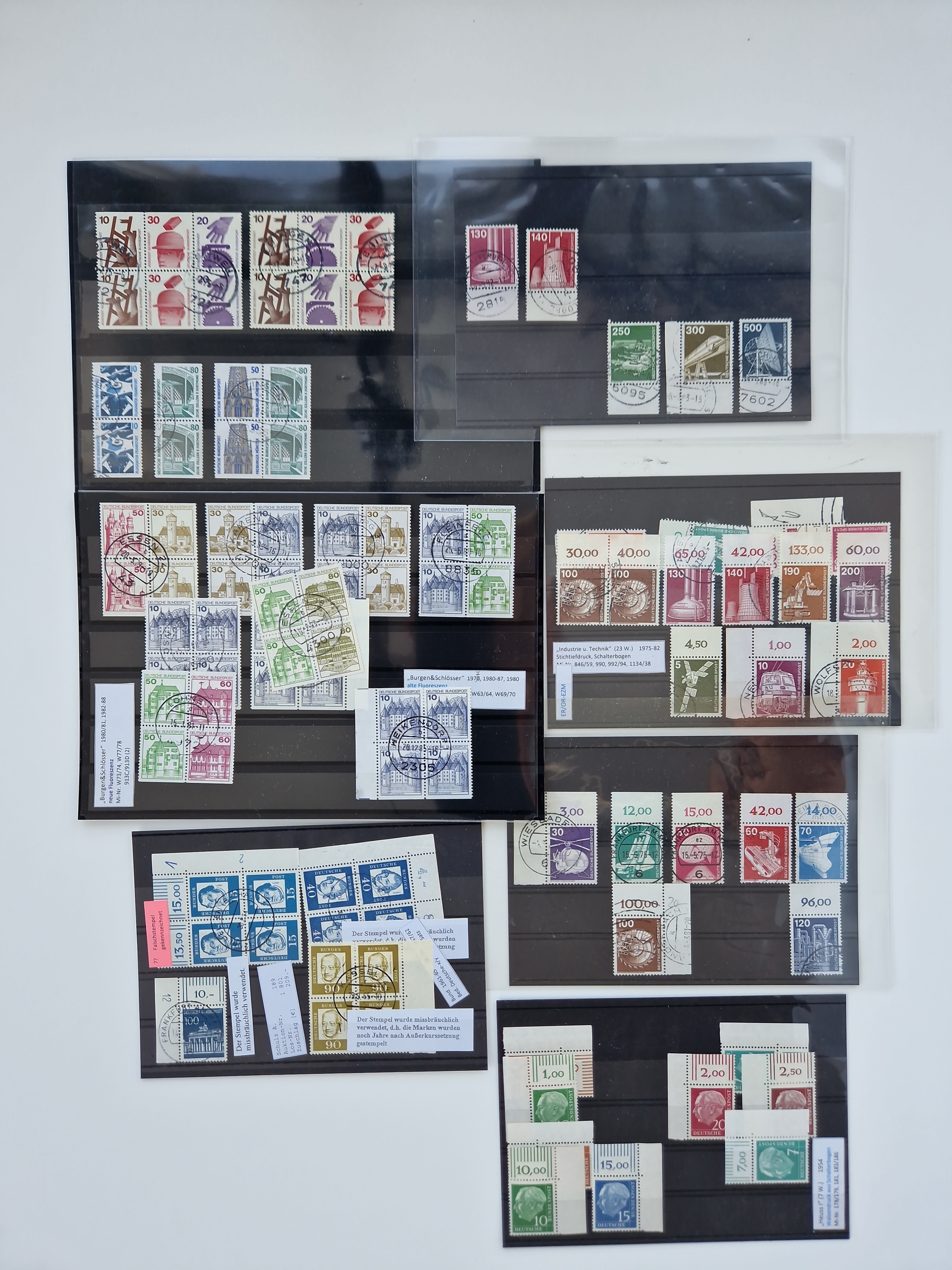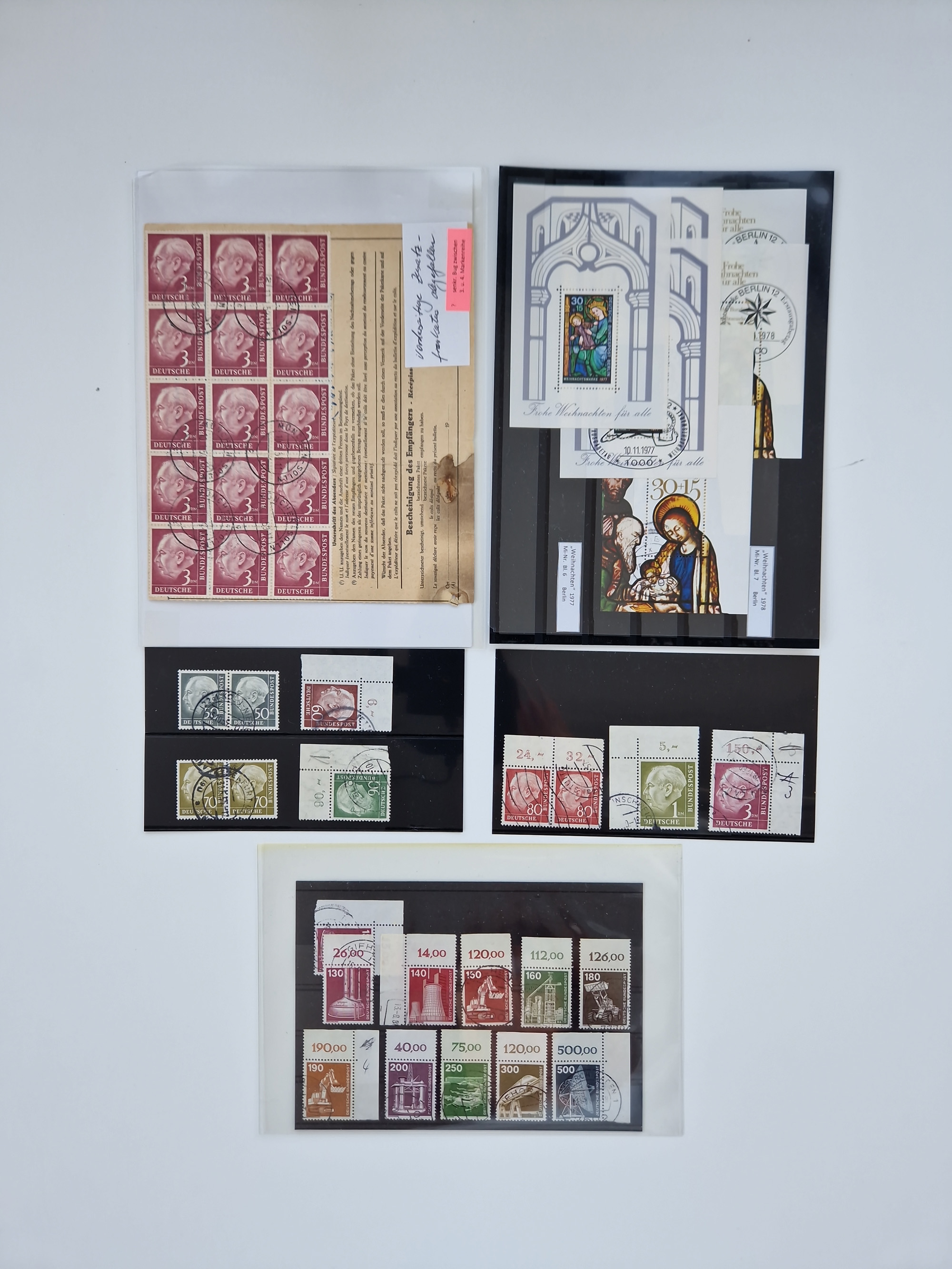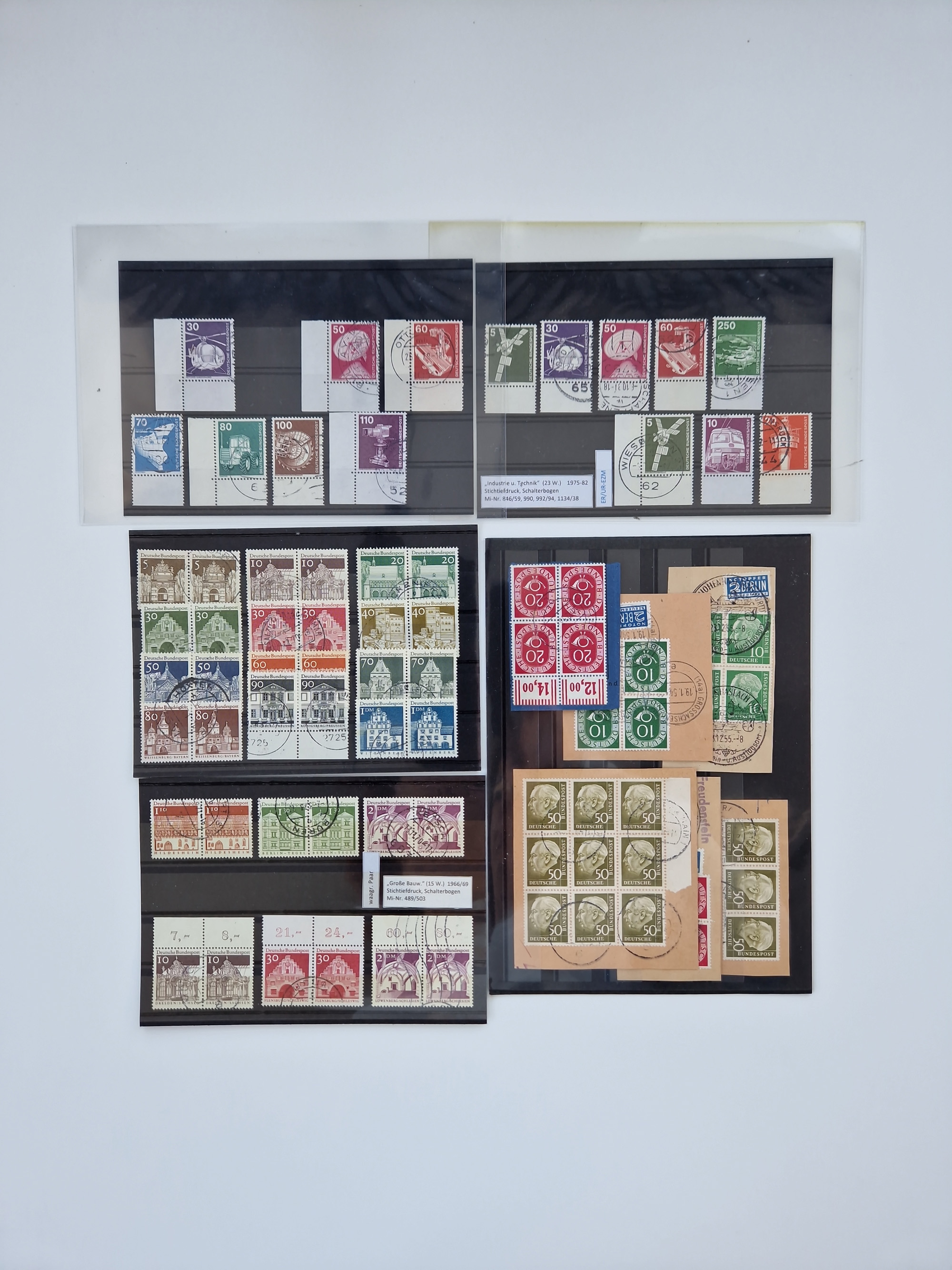 1949/60, Bestand auf Steckkarten mit Berlin Schwarzaufdrucke geprüft Schlegel, Goethe signiert Bühler, Helfer der Menschheit in Viererblöcken etc., meist sehr sauber erhalten.