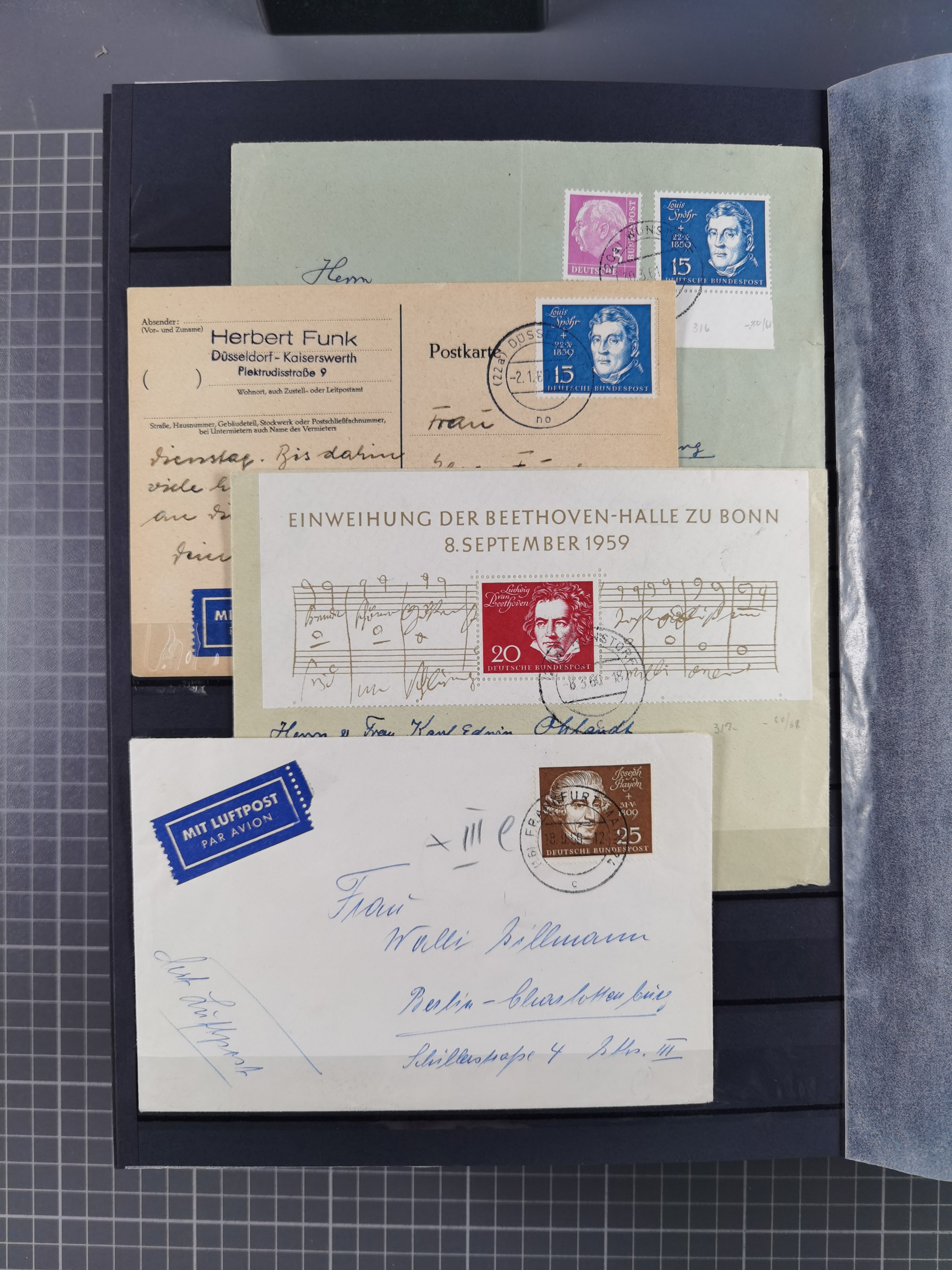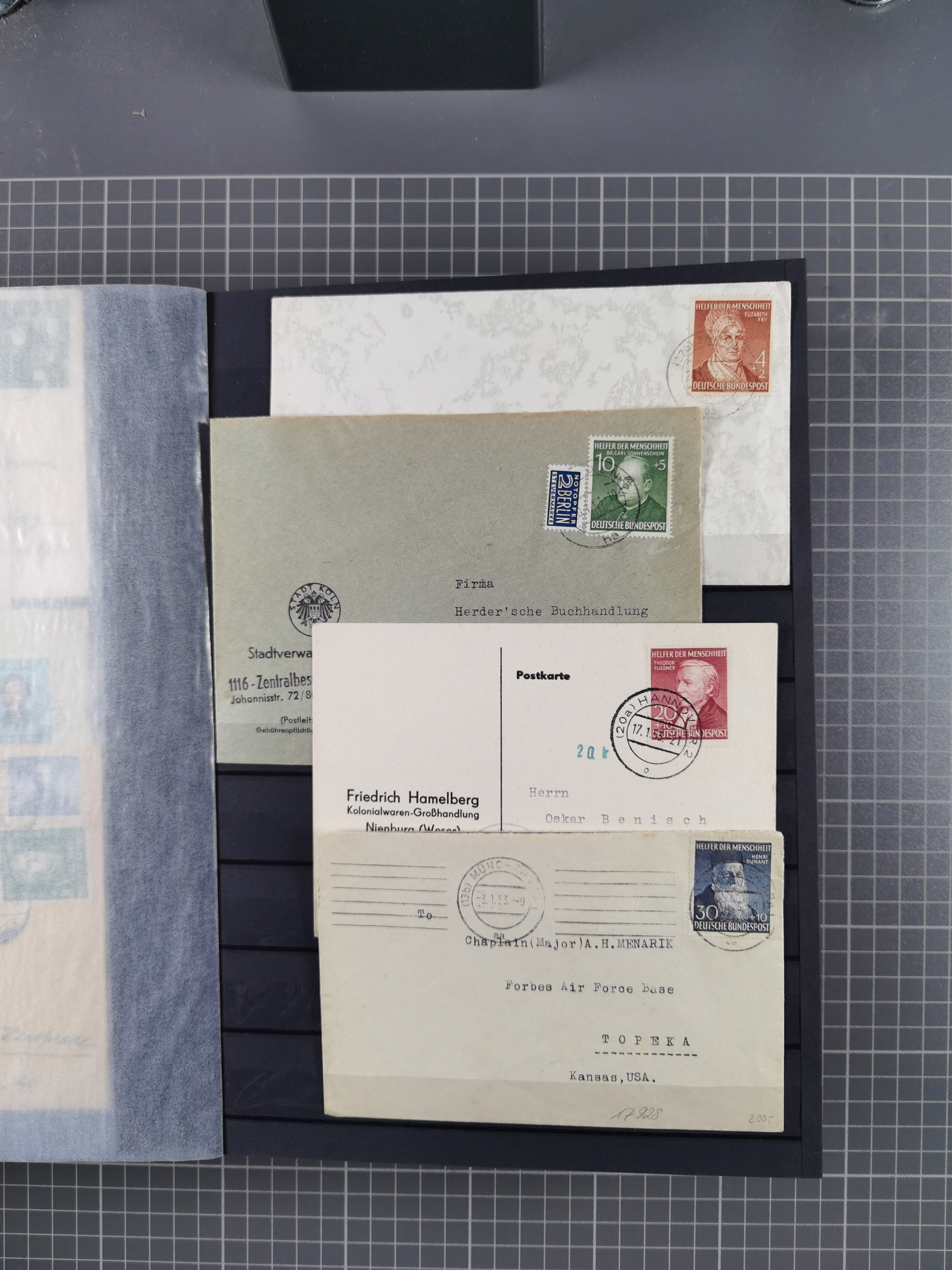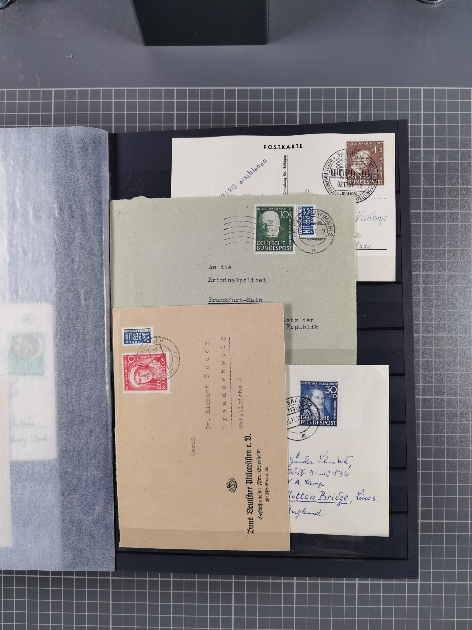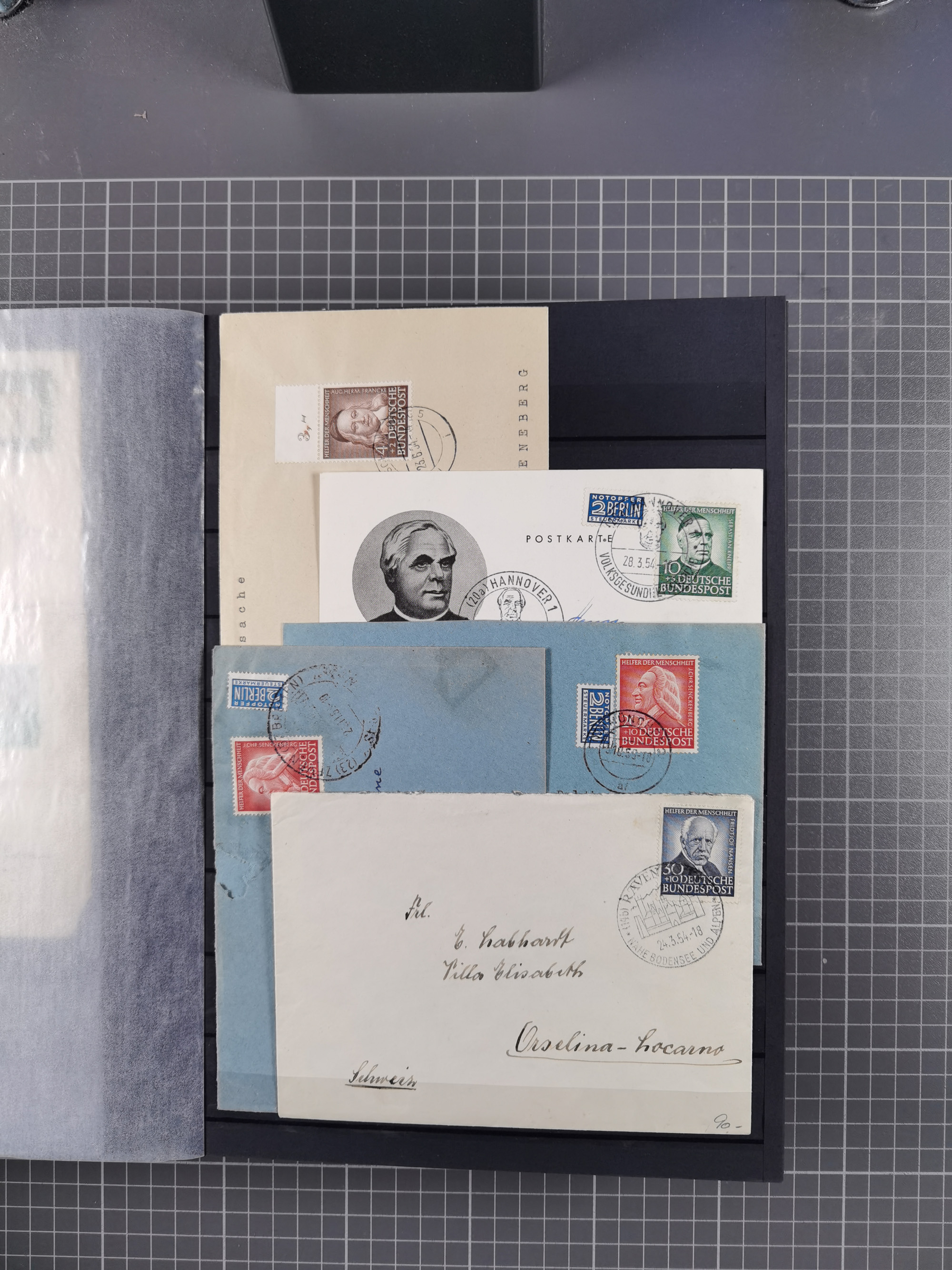 1949/60, Bestand auf Steckkarten mit Berlin Schwarzaufdrucke geprüft Schlegel, Goethe signiert Bühler, Helfer der Menschheit in Viererblöcken etc., meist sehr sauber erhalten.