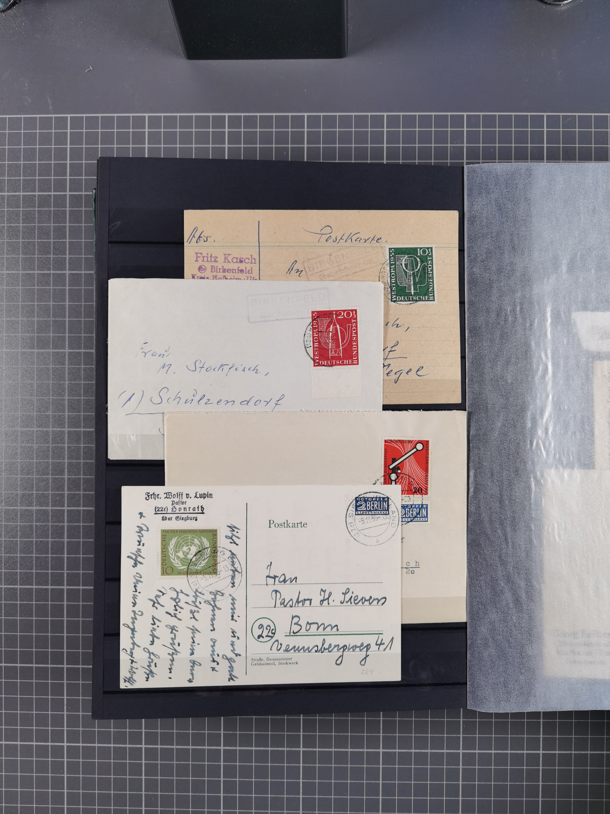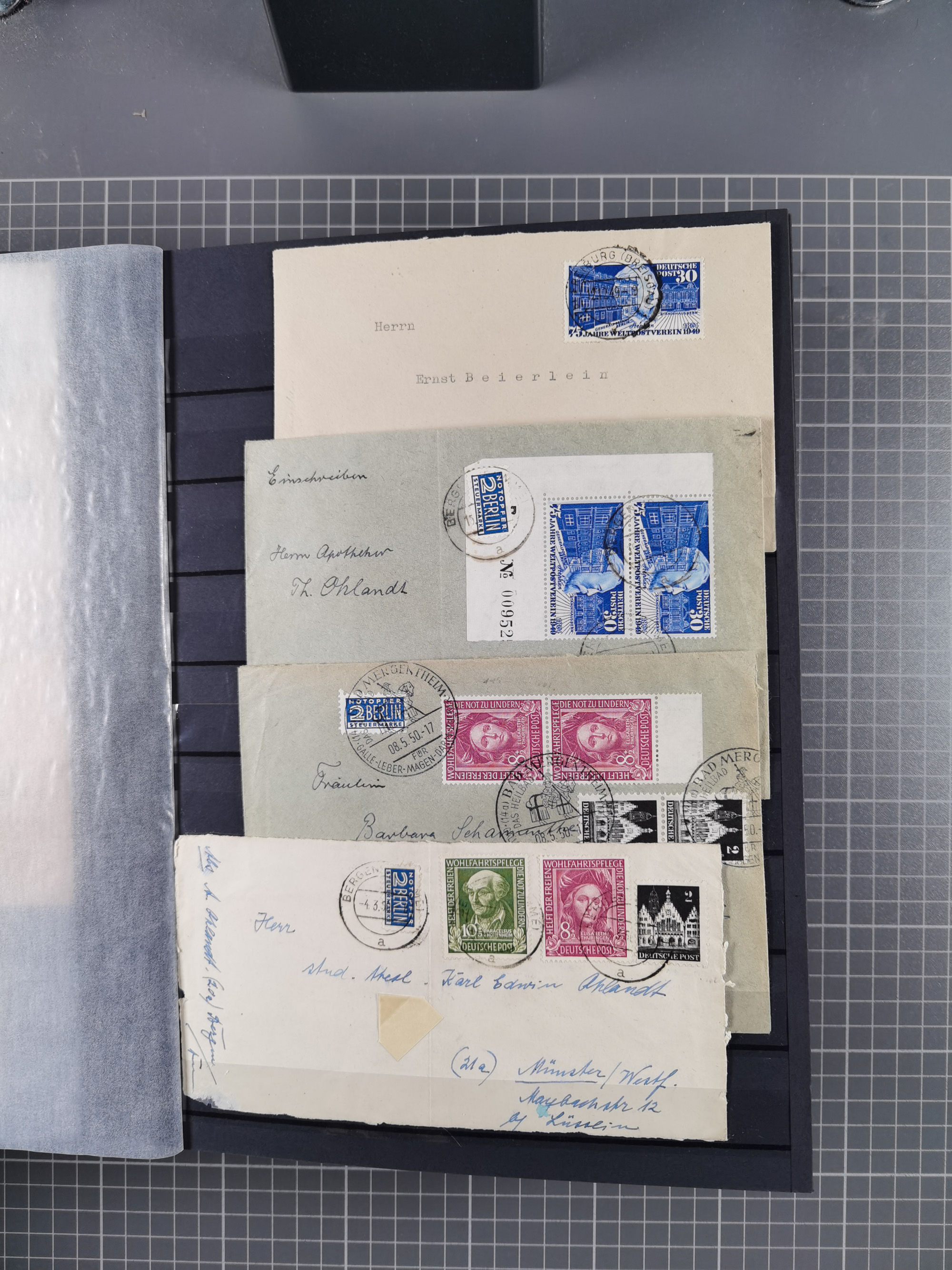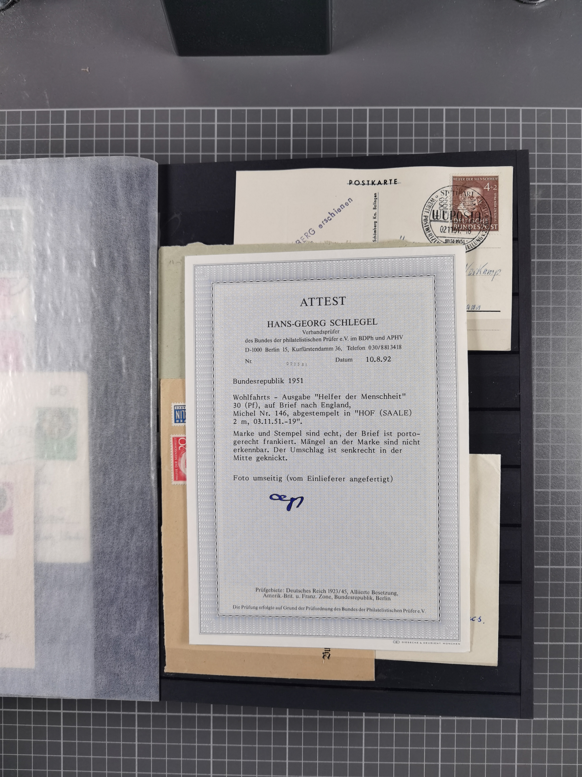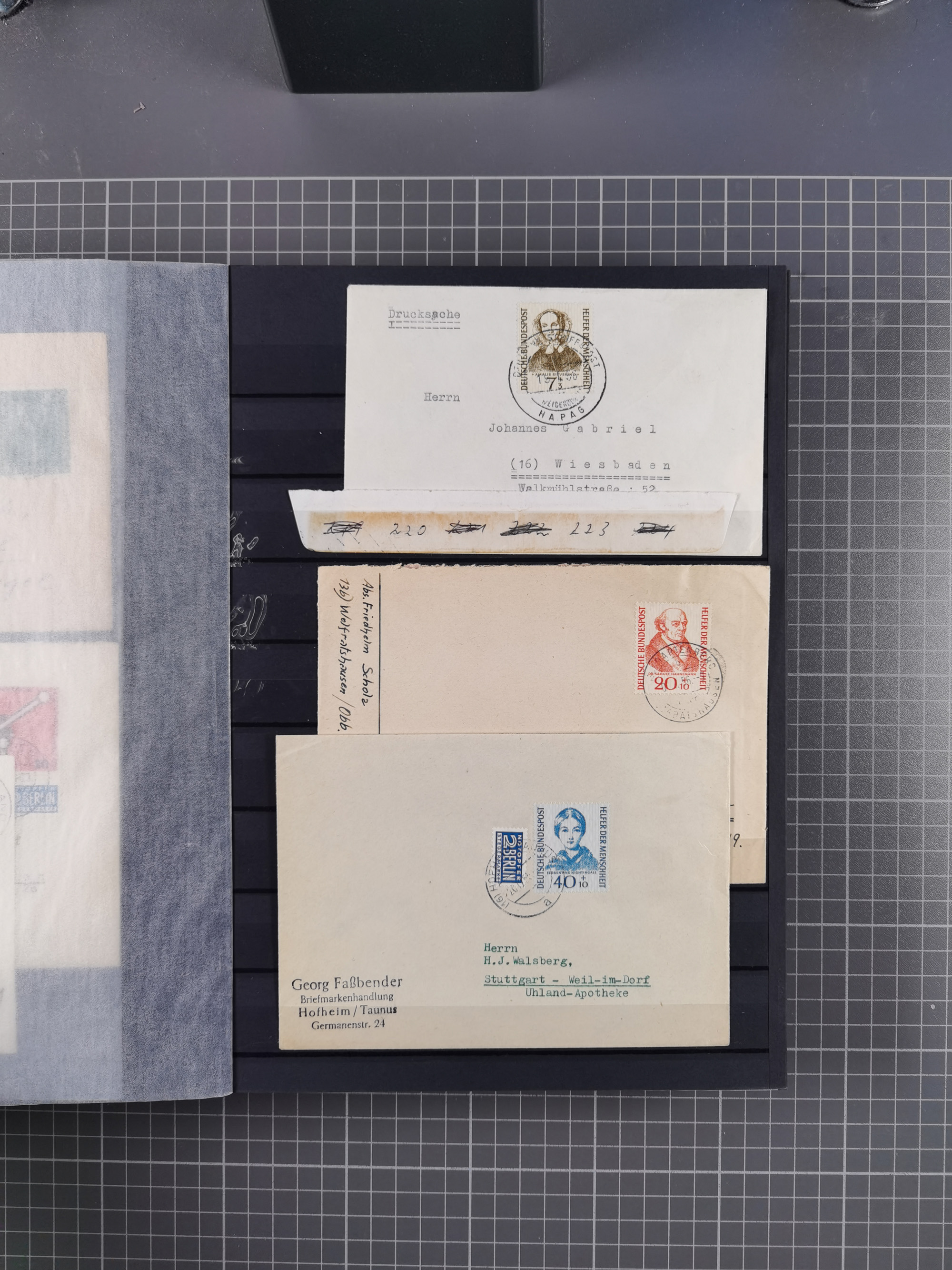 1949/60, Bestand auf Steckkarten mit Berlin Schwarzaufdrucke geprüft Schlegel, Goethe signiert Bühler, Helfer der Menschheit in Viererblöcken etc., meist sehr sauber erhalten.