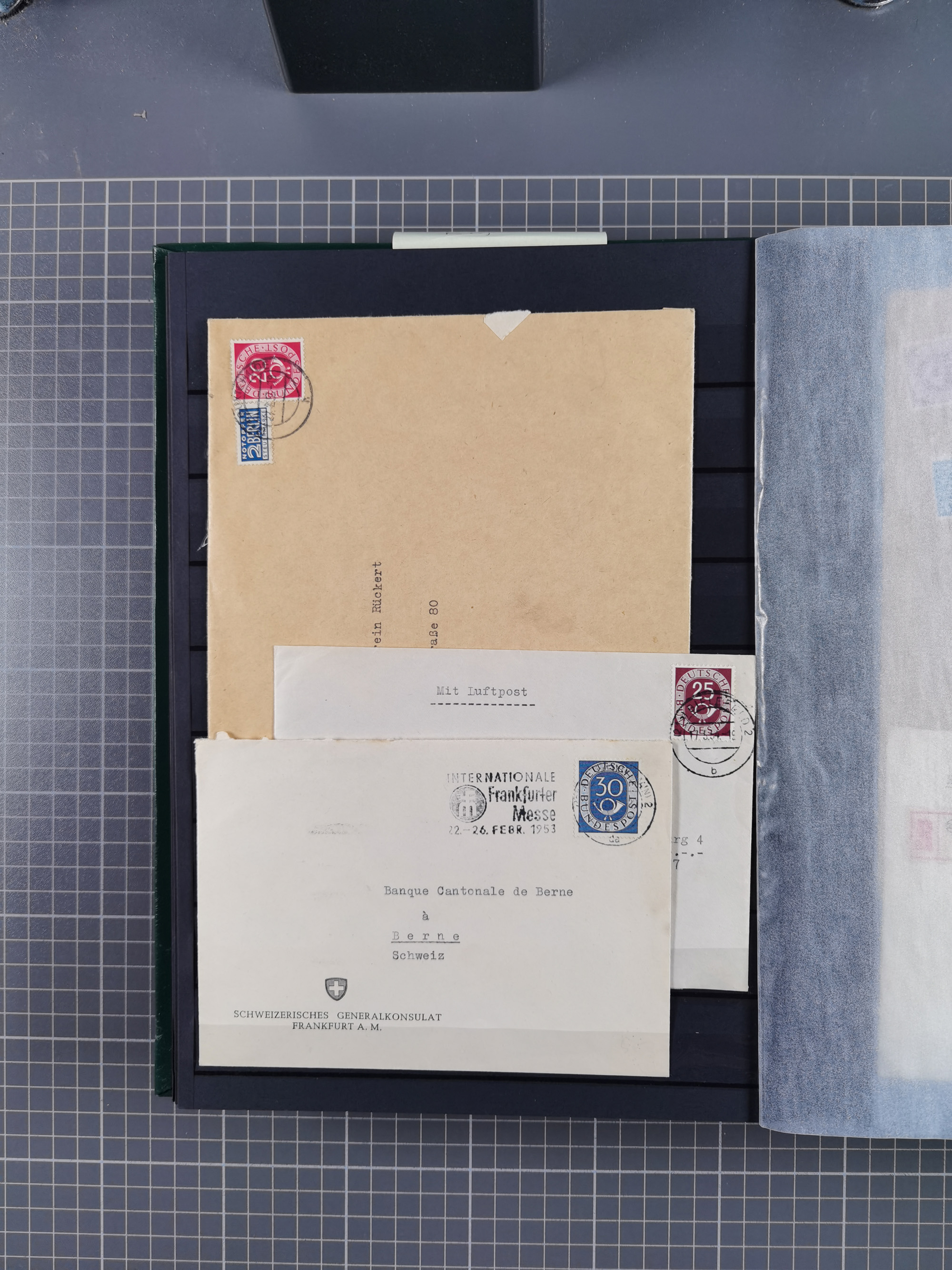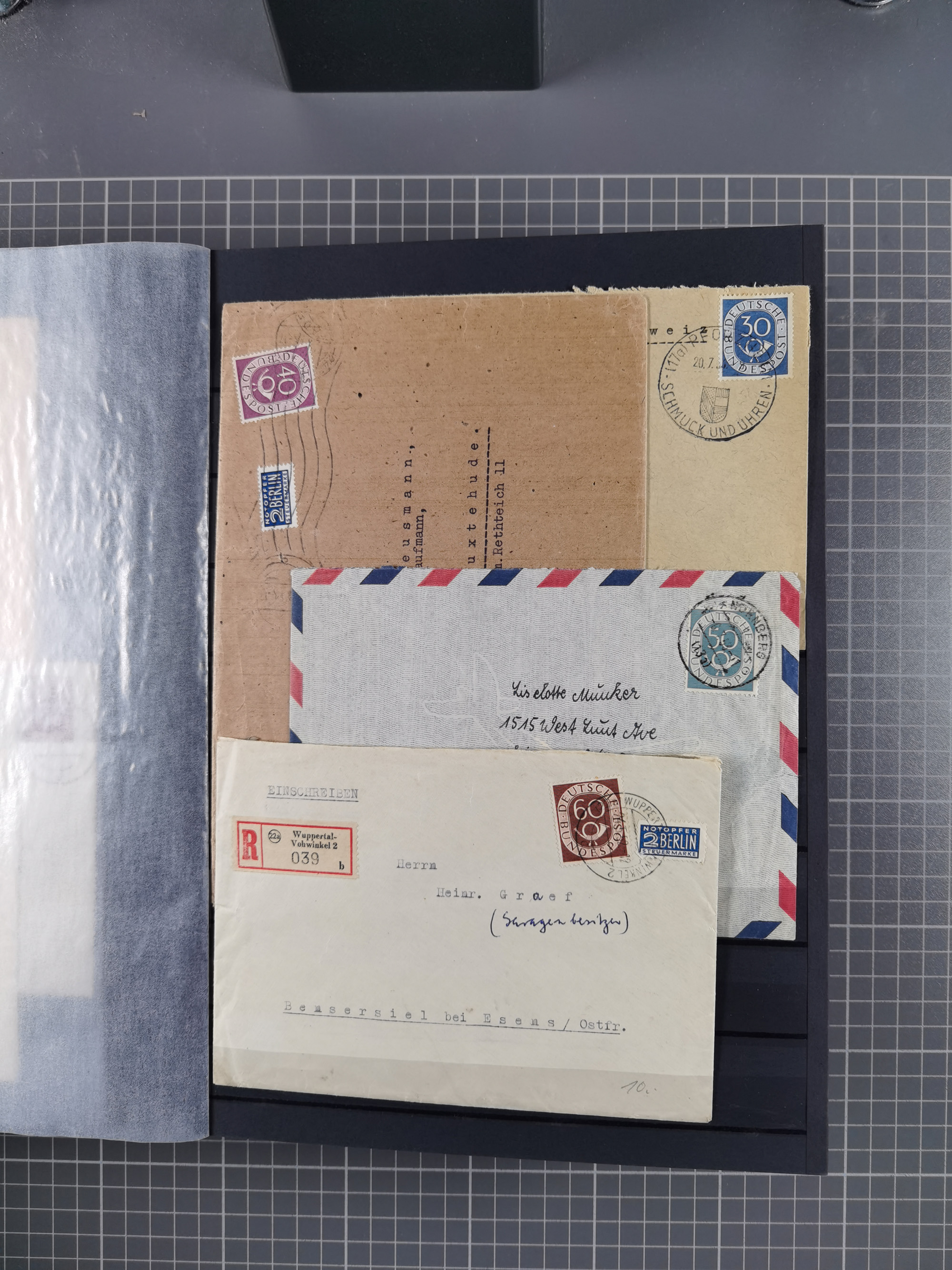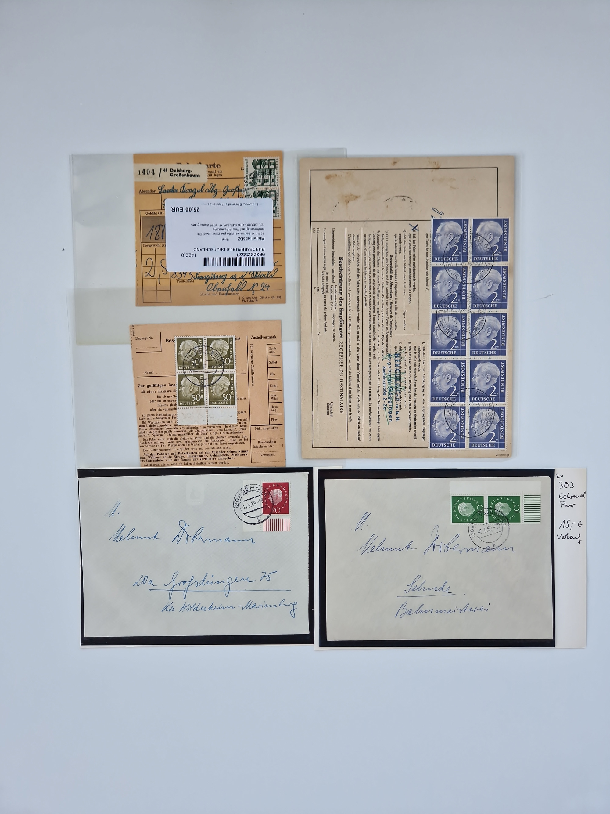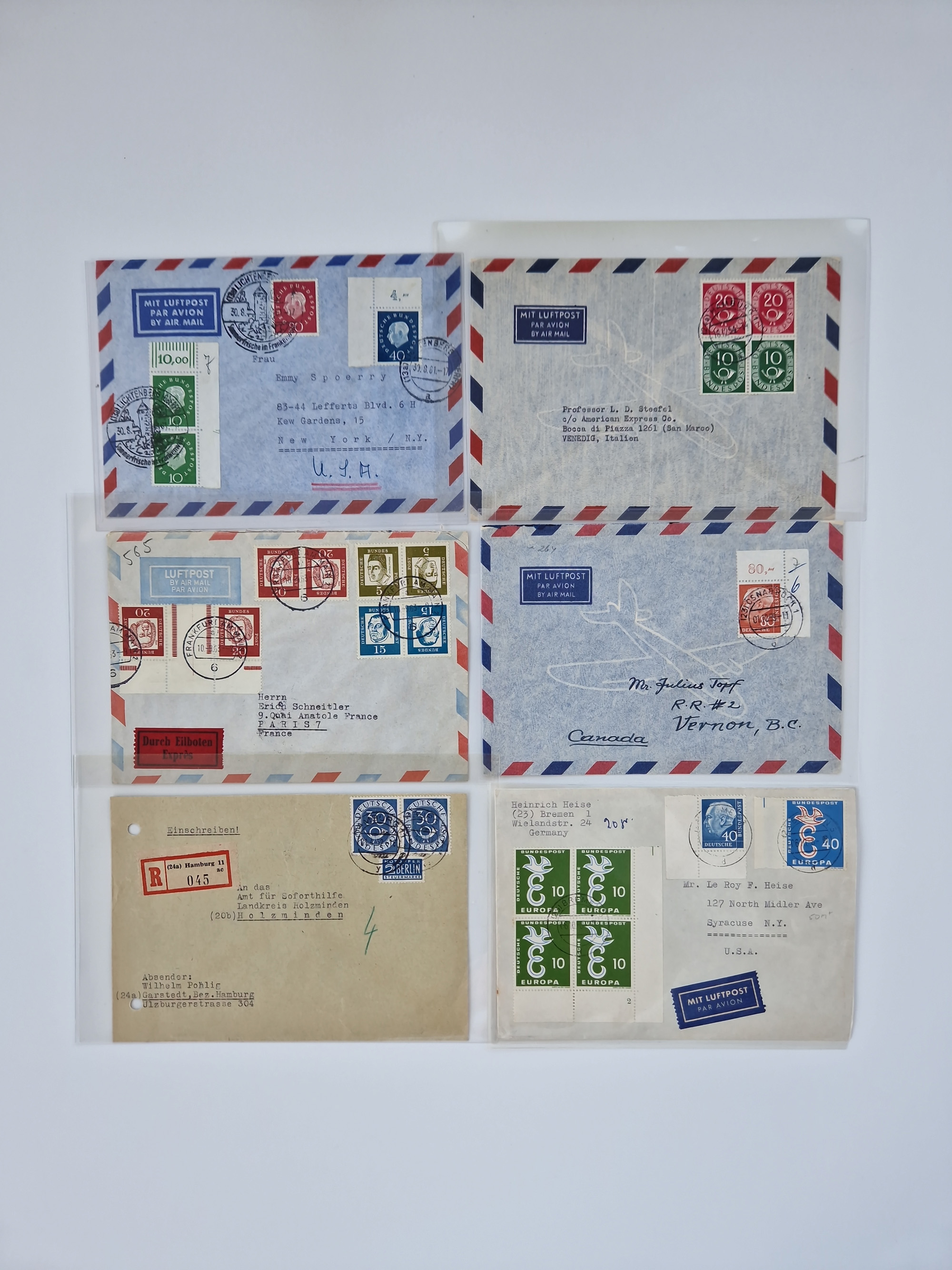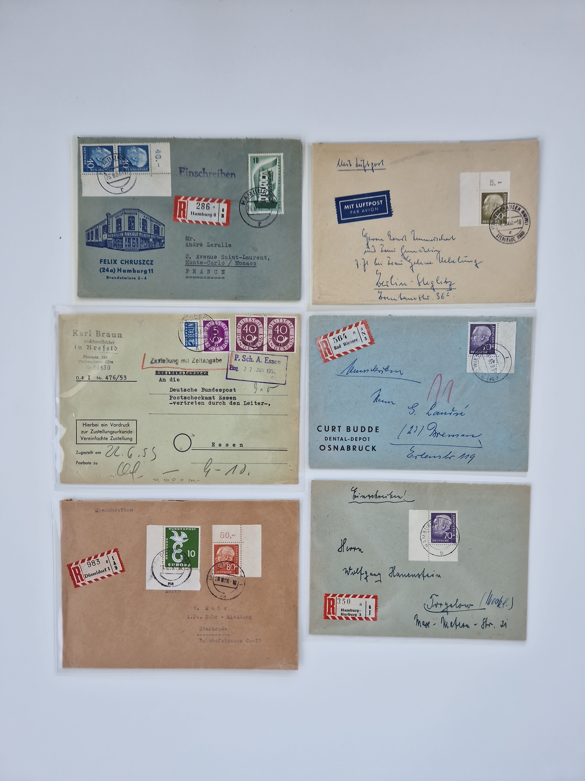 1949/94, fast 40 Briefe und Karten mit Schwerpunkt bei den Posthorn- und Heuss-Frankaturen. Dabei interessante Luftpost-Frankaturen in die USA, R-Briefe und bessere Sondermarken-Frankaturen