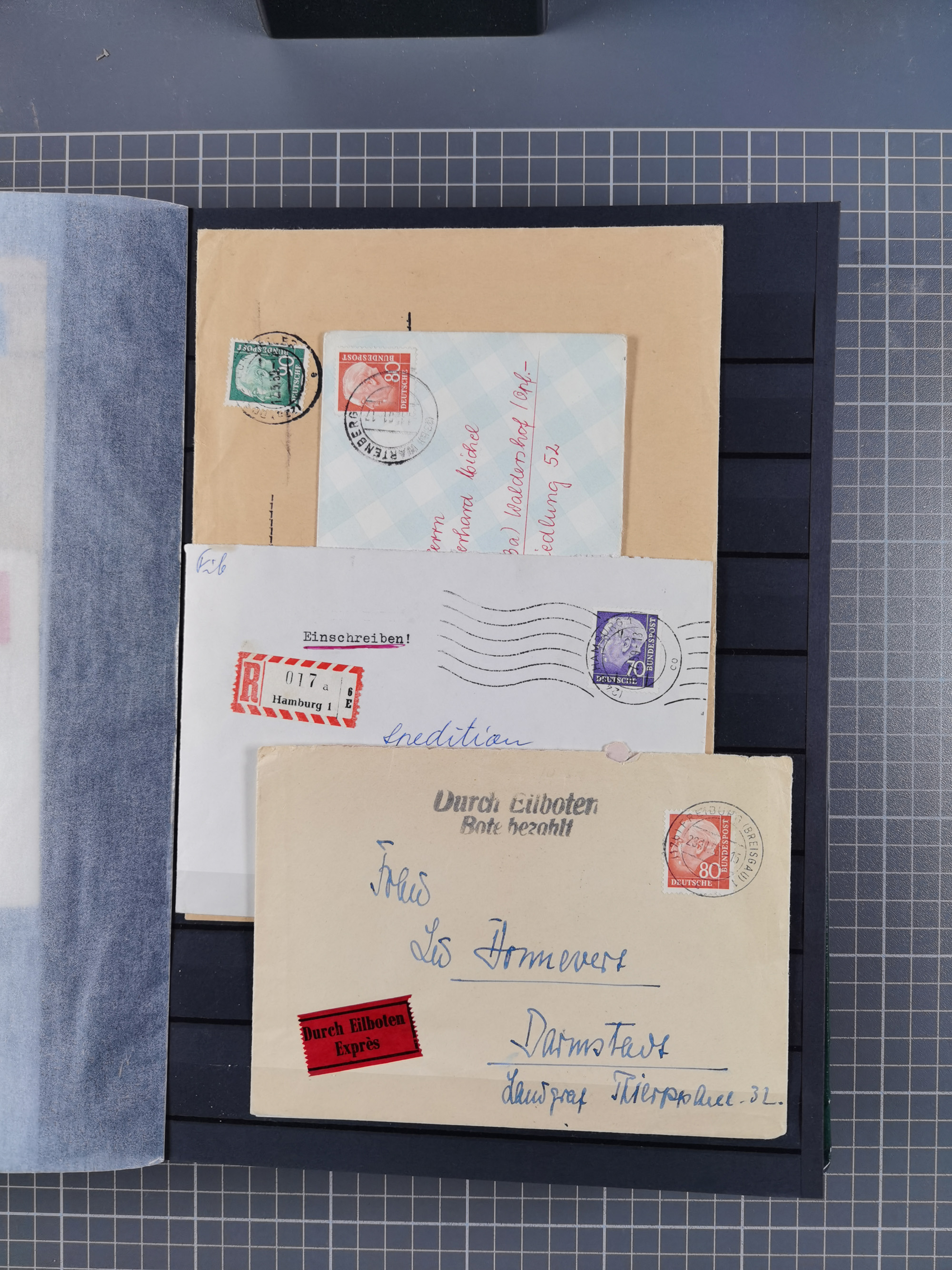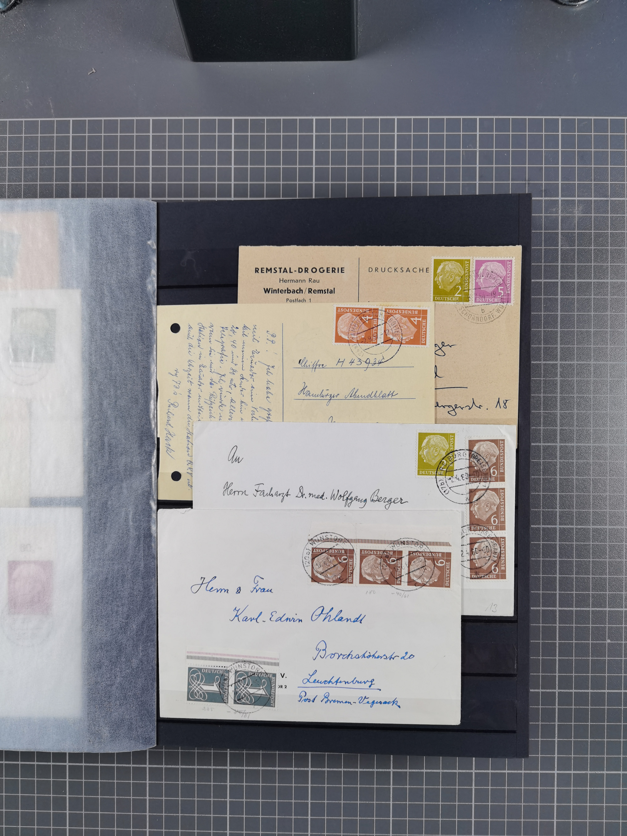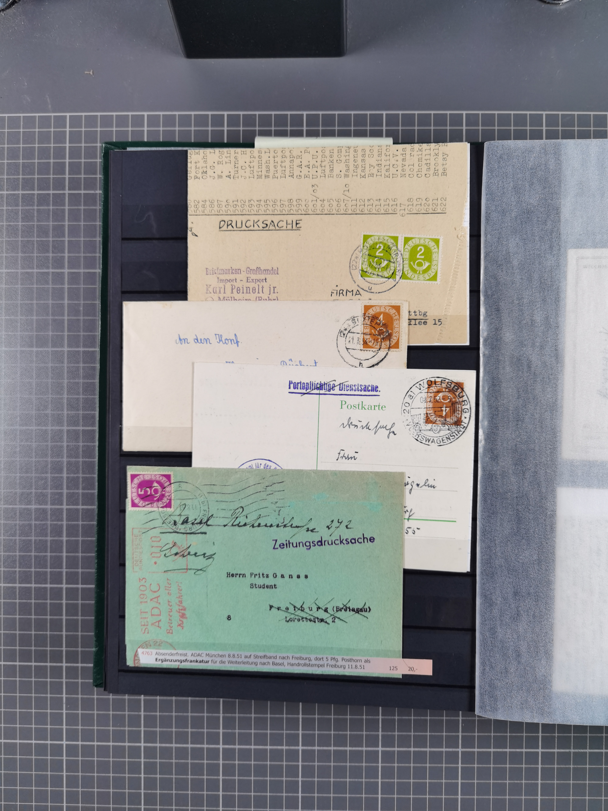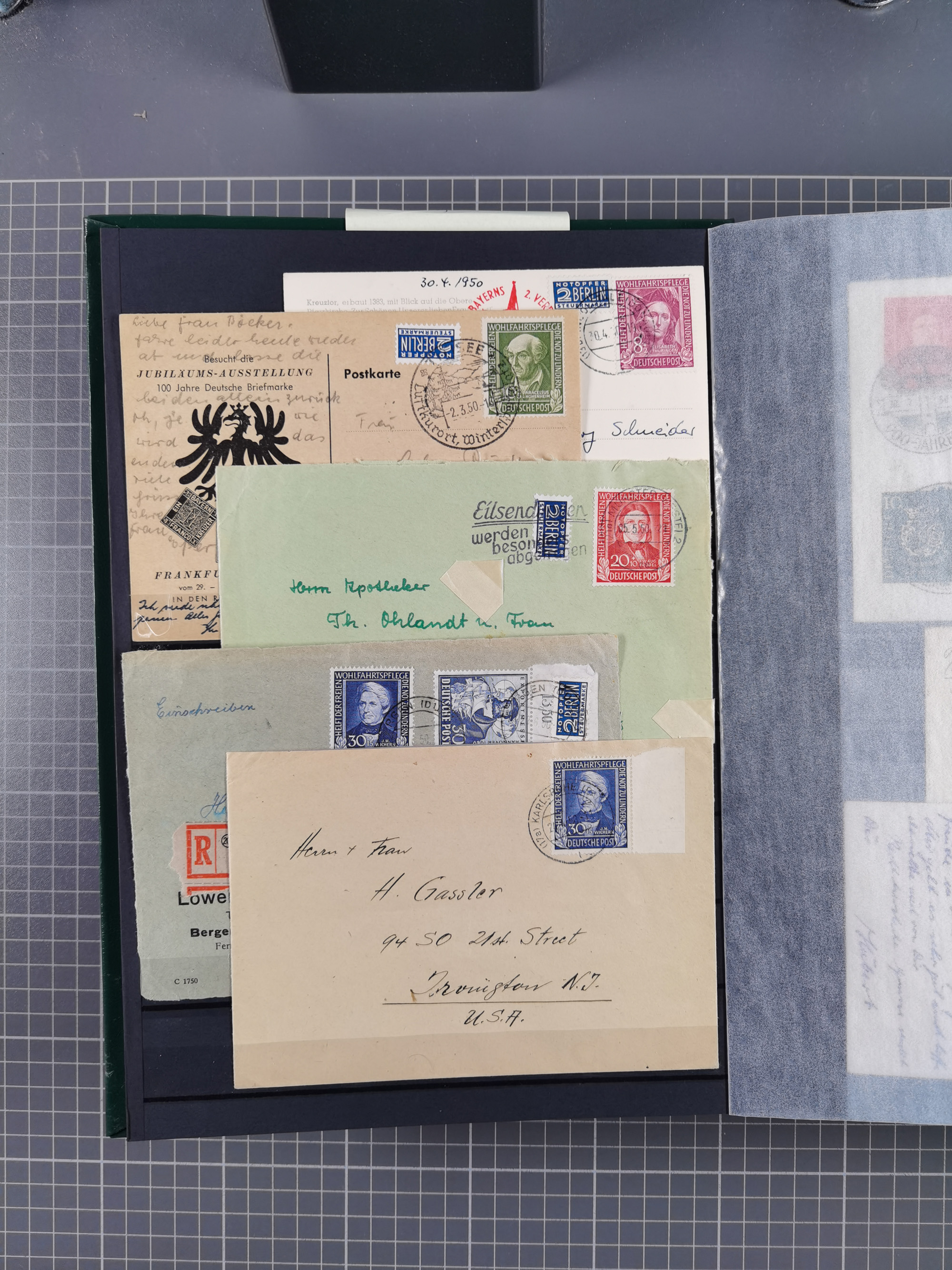 1949/94, fast 40 Briefe und Karten mit Schwerpunkt bei den Posthorn- und Heuss-Frankaturen. Dabei interessante Luftpost-Frankaturen in die USA, R-Briefe und bessere Sondermarken-Frankaturen