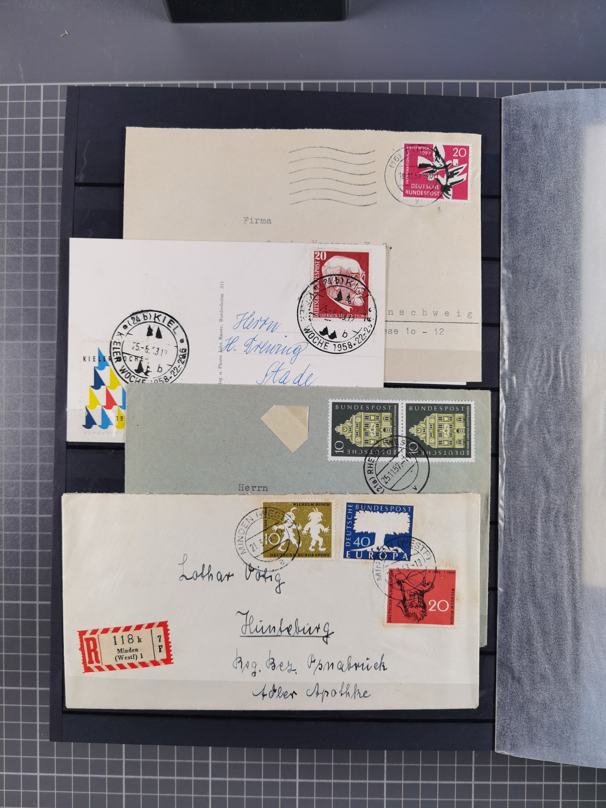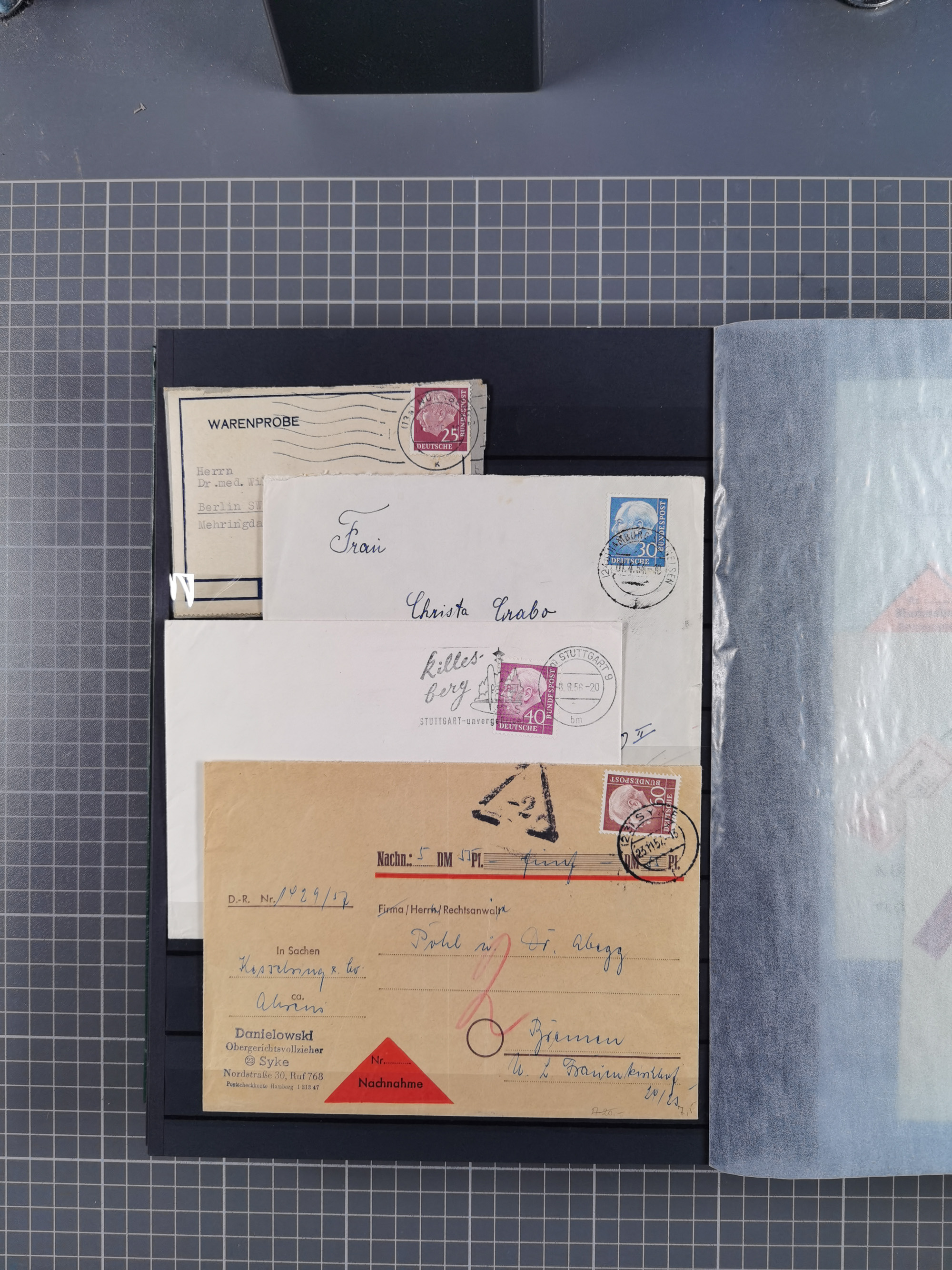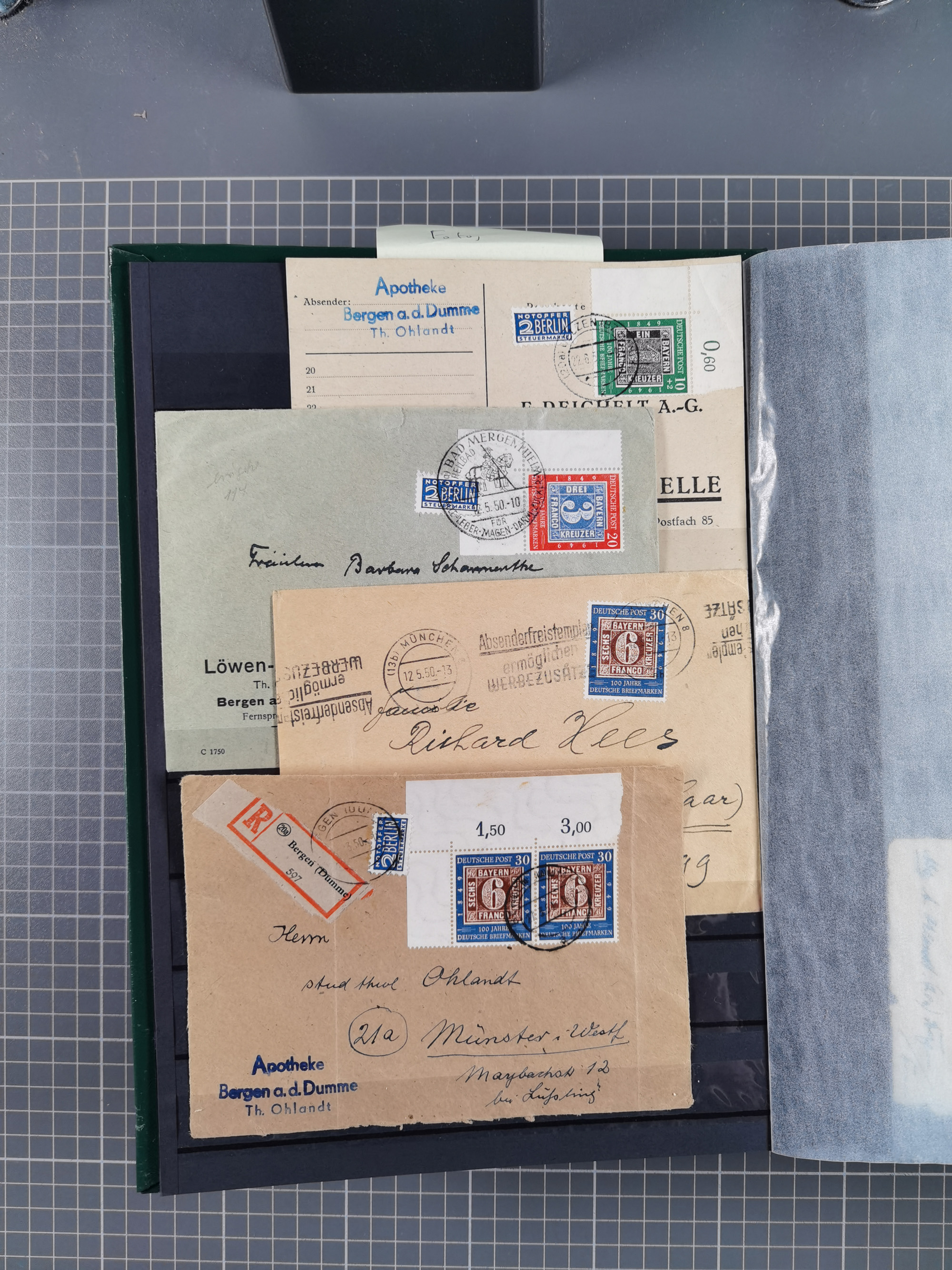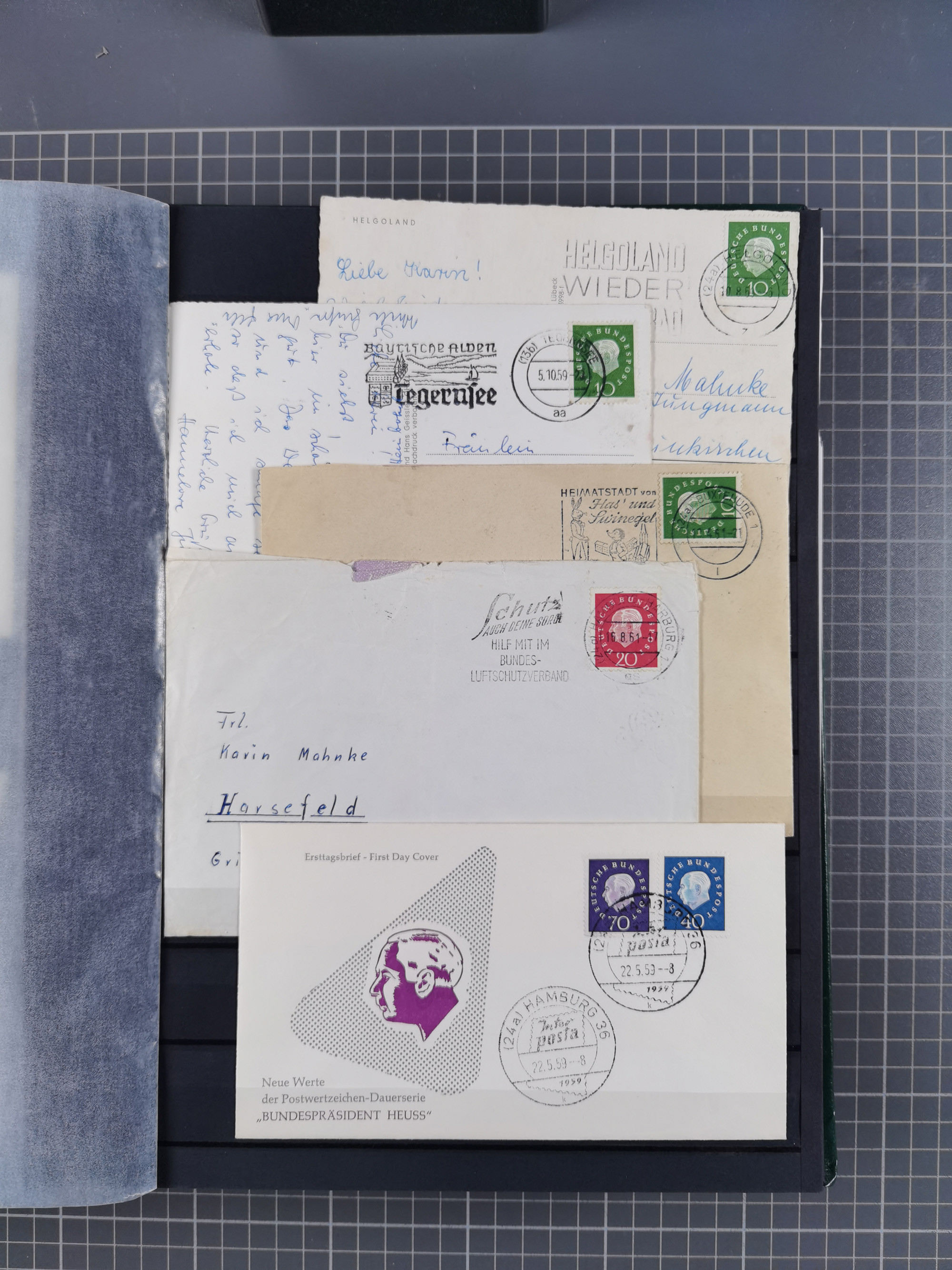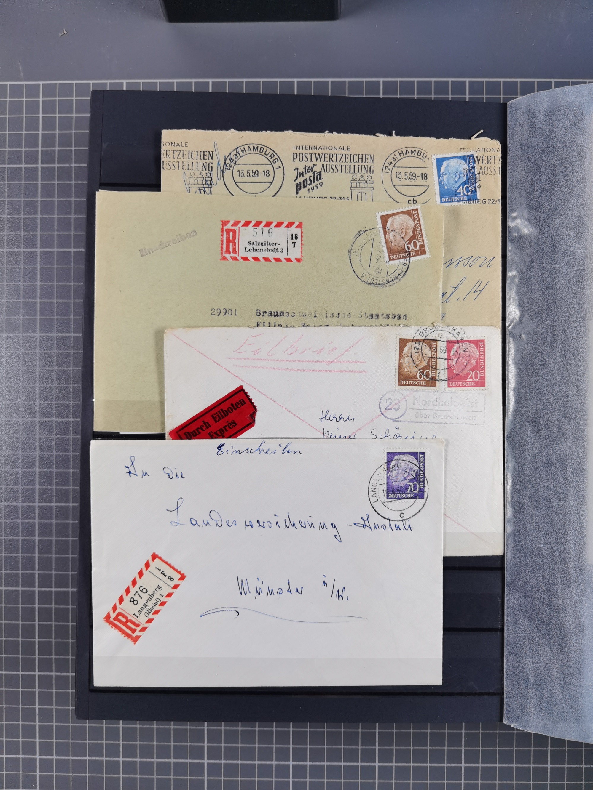 1949/94, fast 40 Briefe und Karten mit Schwerpunkt bei den Posthorn- und Heuss-Frankaturen. Dabei interessante Luftpost-Frankaturen in die USA, R-Briefe und bessere Sondermarken-Frankaturen