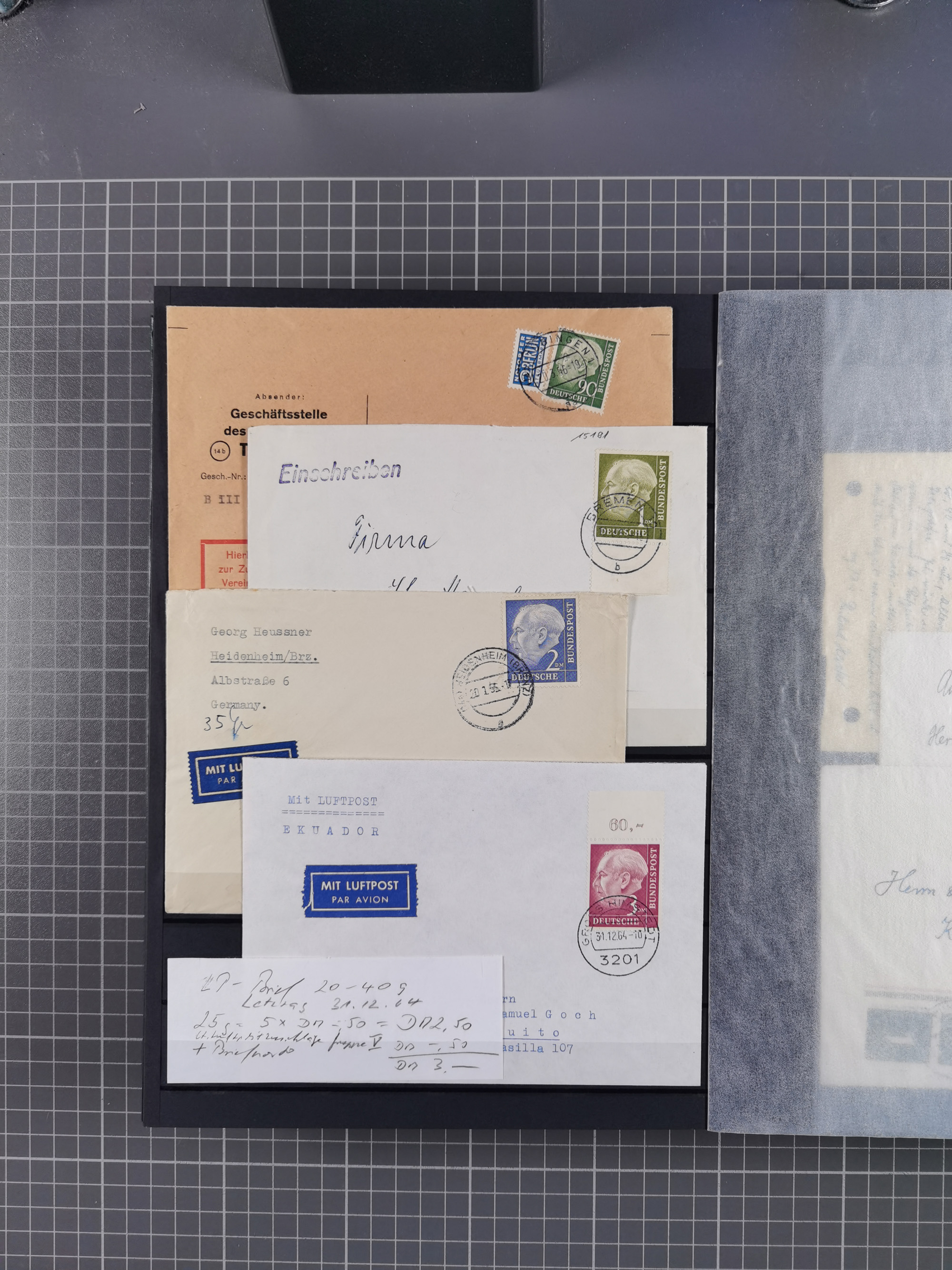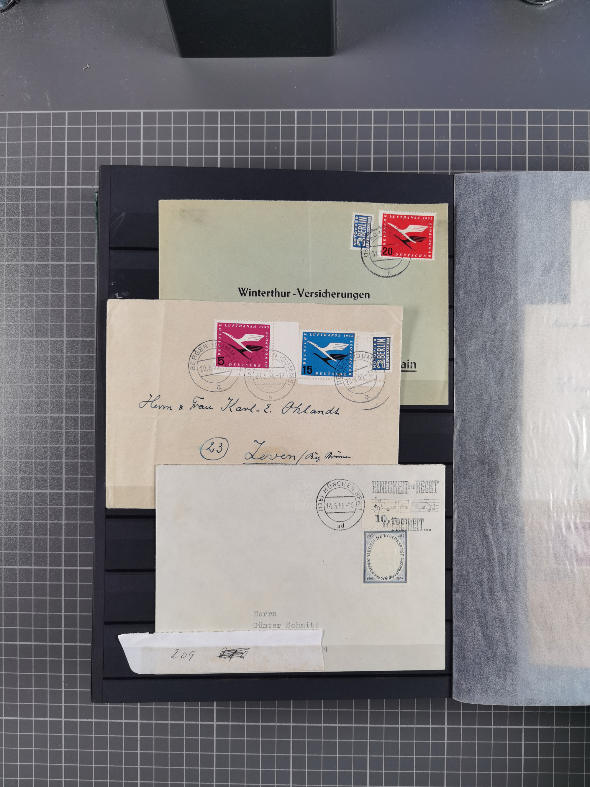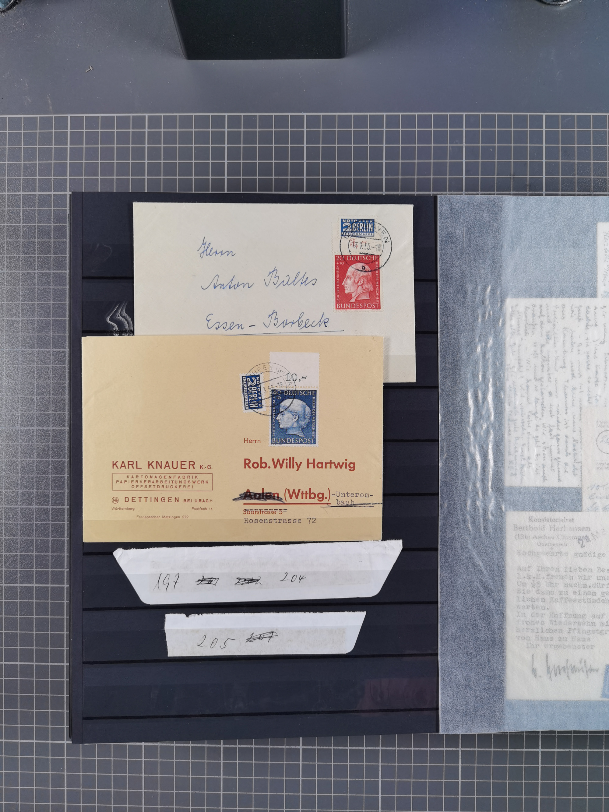 1962/64, Propaganda „Kalter Krieg", Sammlung von 277 Briefen, alle mit Propaganda-Vignetten versehen („Kampf um Wiedervereinigung". 17. Juni", „Die Mauer überwinden", Brücken bauen! Per Post oder Paket". „Wir lassen uns nicht trennen". 3 geteilt niemals!" usw. Alle Vignetten befinden sich auf Bedarfsbriefen und sind postalisch zusammen mit der Normalfrankatur abgestempelt, dabei auch 43 Luftpostbriefe, selten angeboten. Dazu noch 48 Belege Postkrieg".