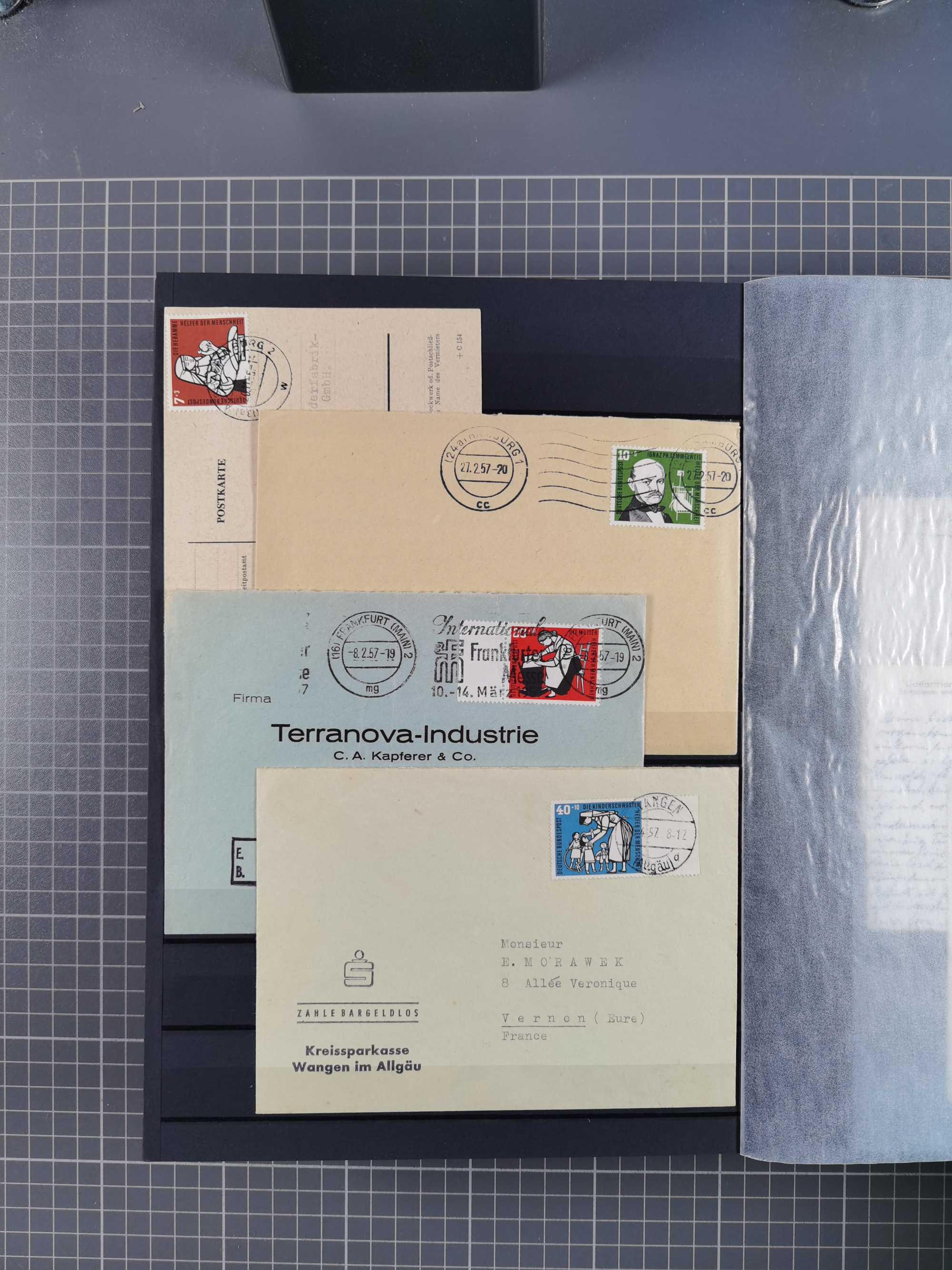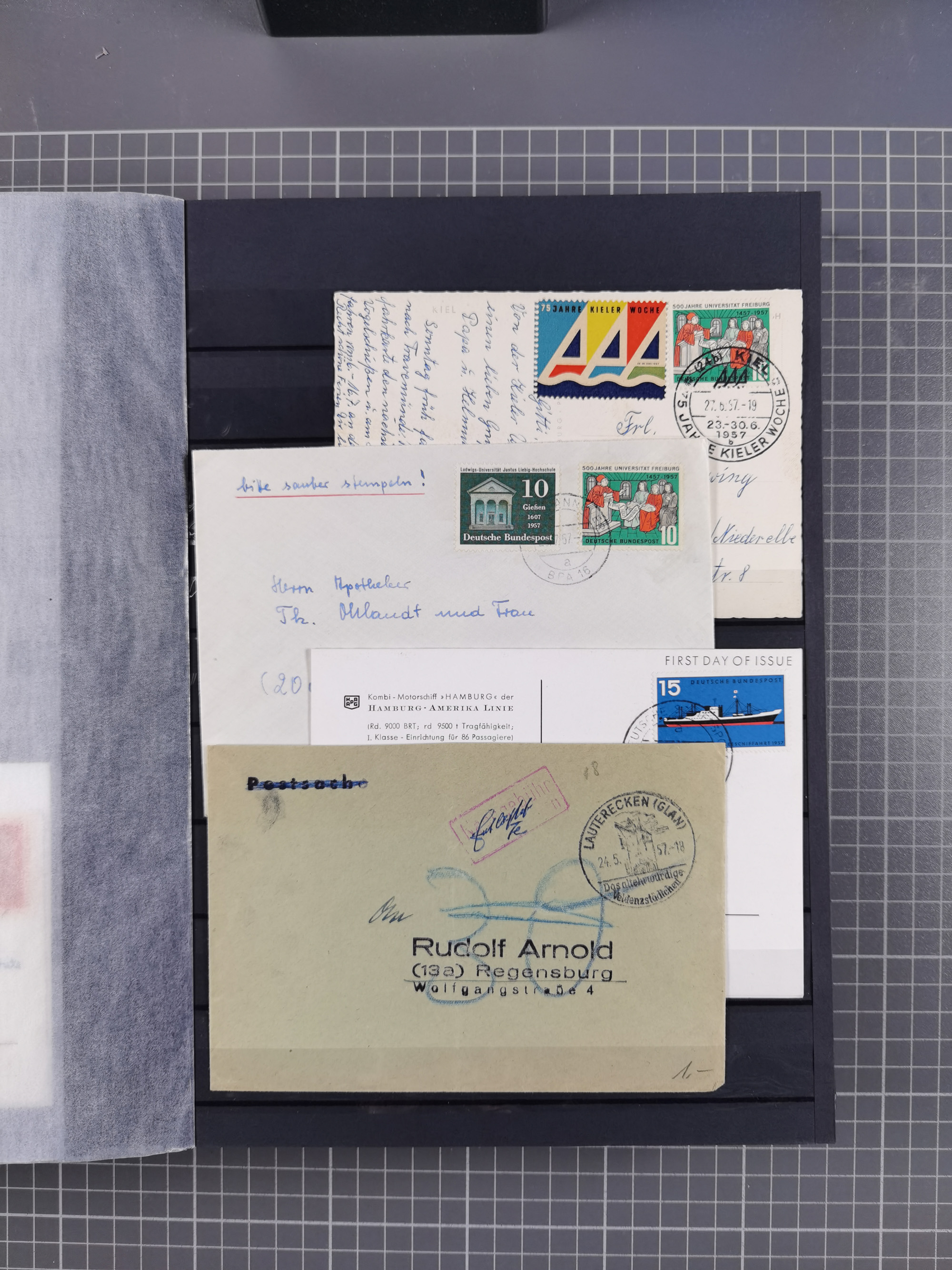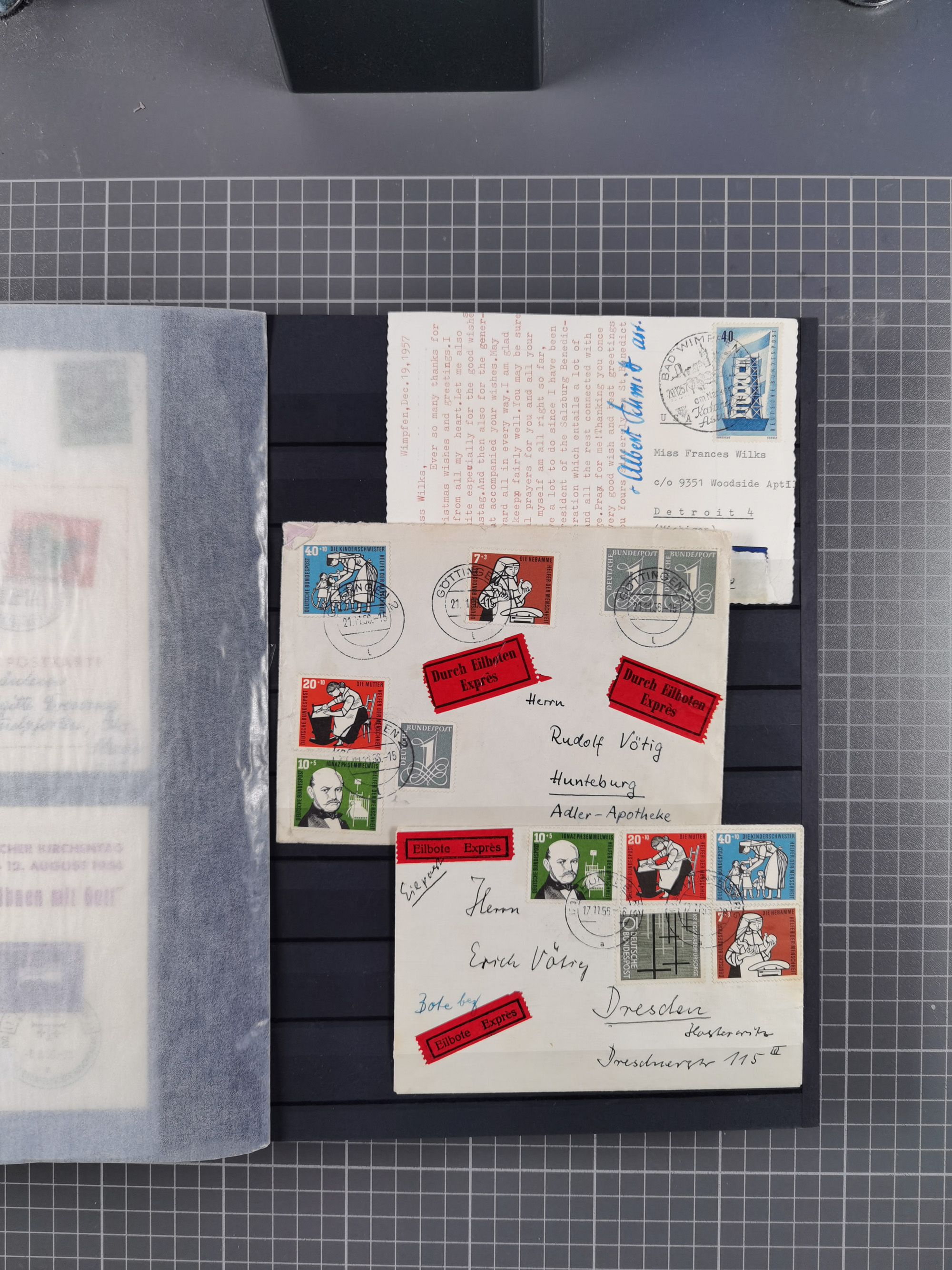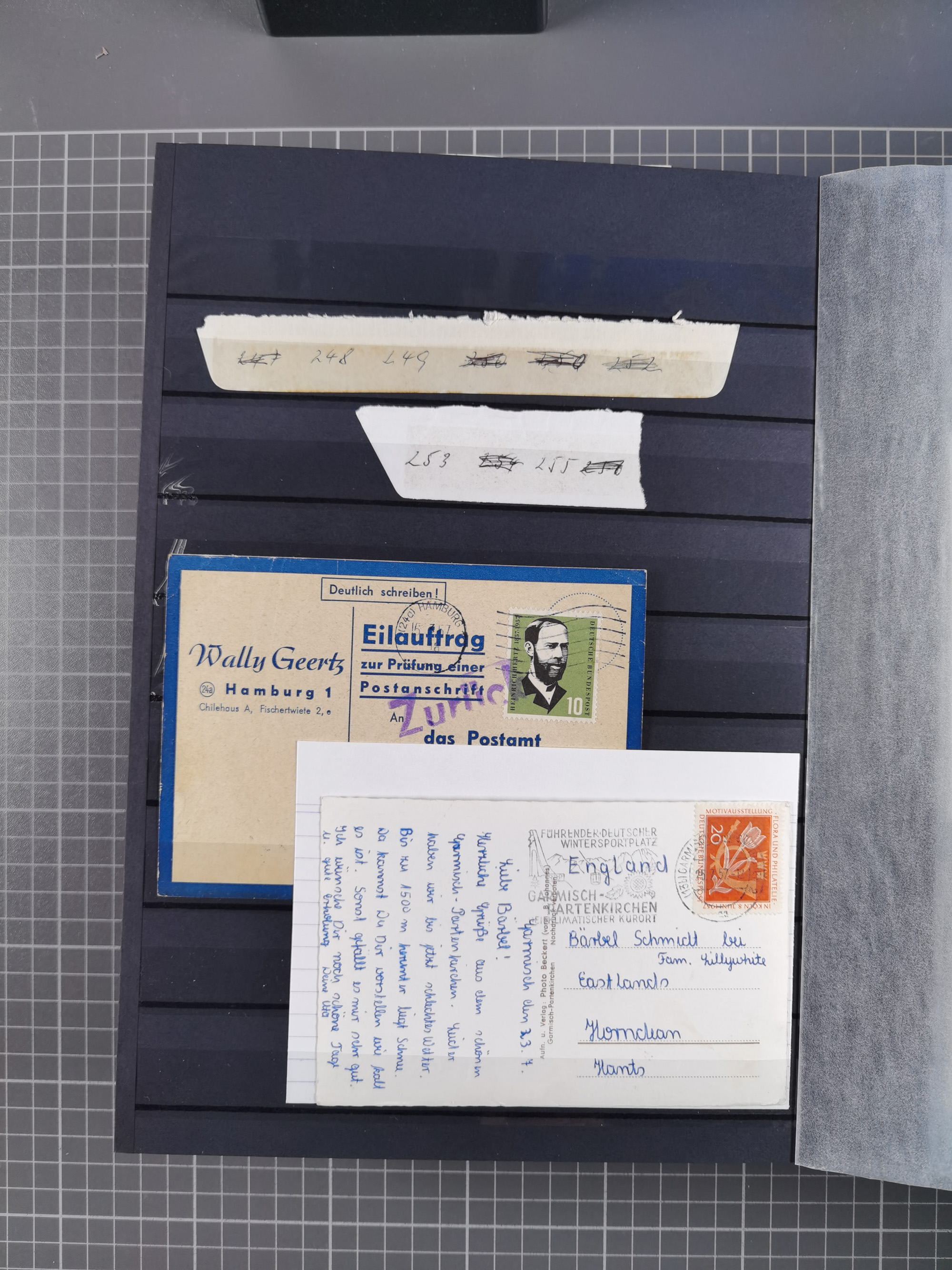 1962/64, Propaganda „Kalter Krieg", Sammlung von 277 Briefen, alle mit Propaganda-Vignetten versehen („Kampf um Wiedervereinigung". 17. Juni", „Die Mauer überwinden", Brücken bauen! Per Post oder Paket". „Wir lassen uns nicht trennen". 3 geteilt niemals!" usw. Alle Vignetten befinden sich auf Bedarfsbriefen und sind postalisch zusammen mit der Normalfrankatur abgestempelt, dabei auch 43 Luftpostbriefe, selten angeboten. Dazu noch 48 Belege Postkrieg".