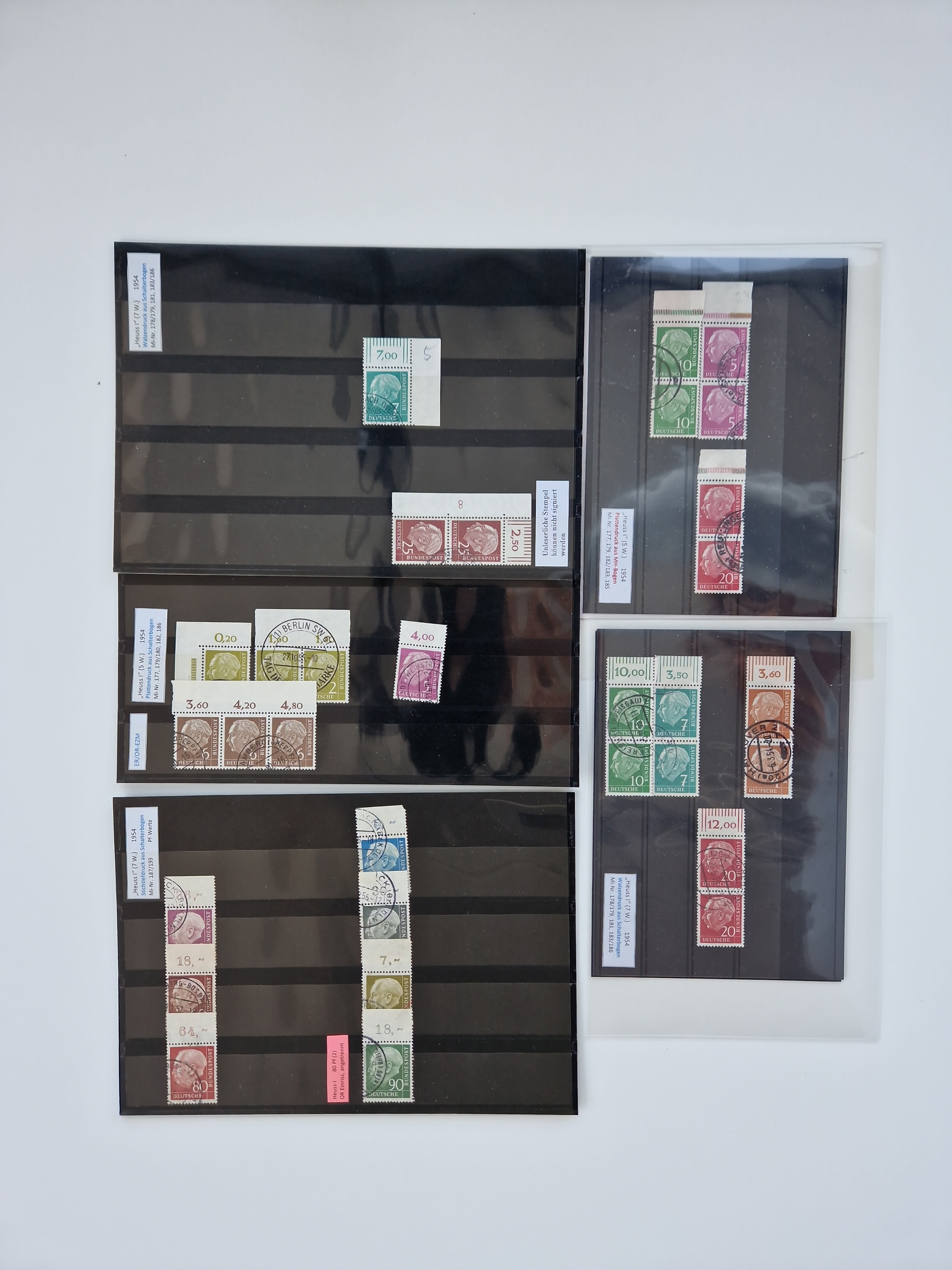 1949/2002, ungebrauchter, postfrischer und gestempelter Bestand Plattenfehler in 6 Alben sowie einer Bogenmappe, vorwiegend Plattenfehler, meist in Paaren mit genauer Bestimmung, meist gute Erhaltung