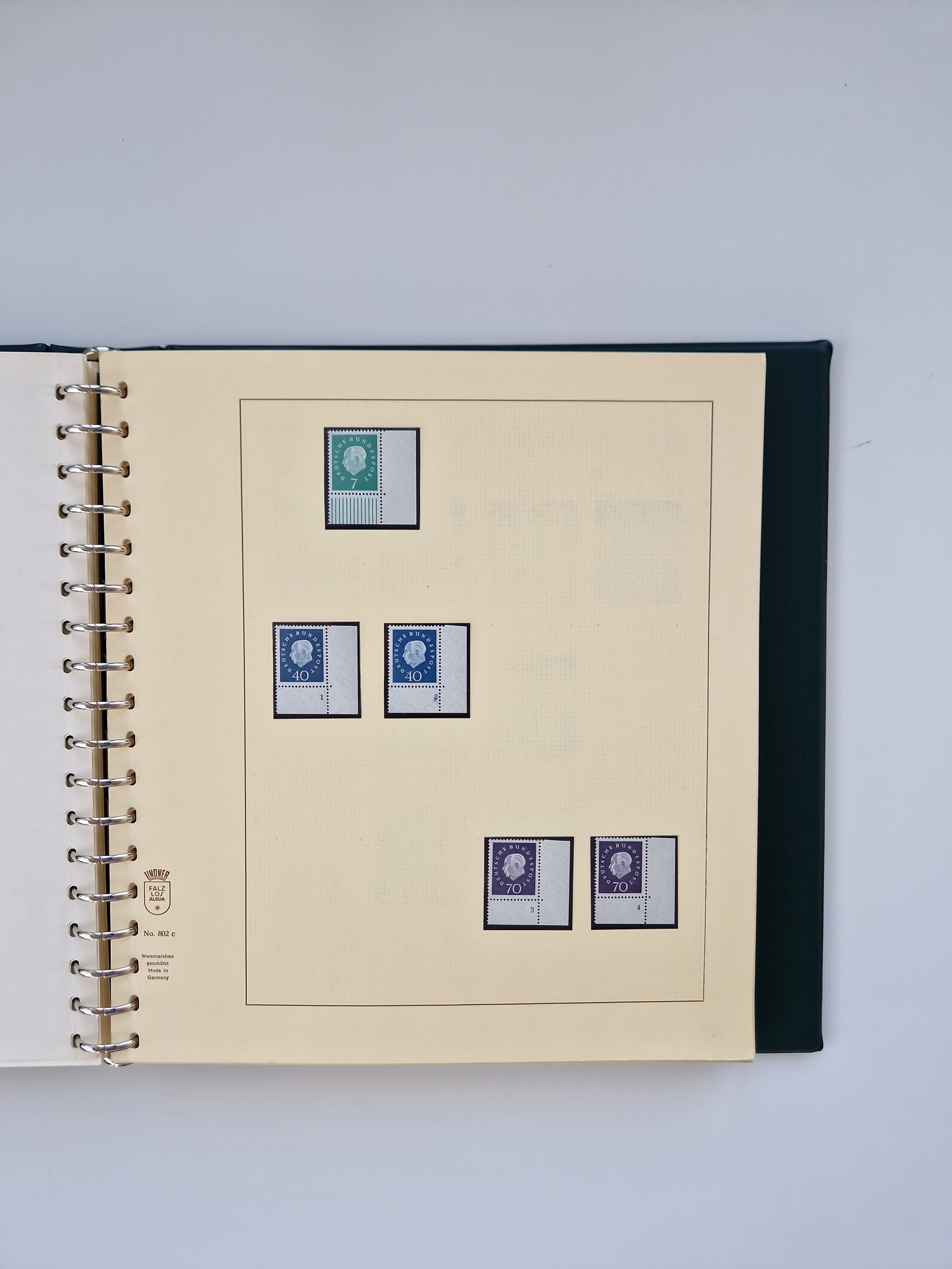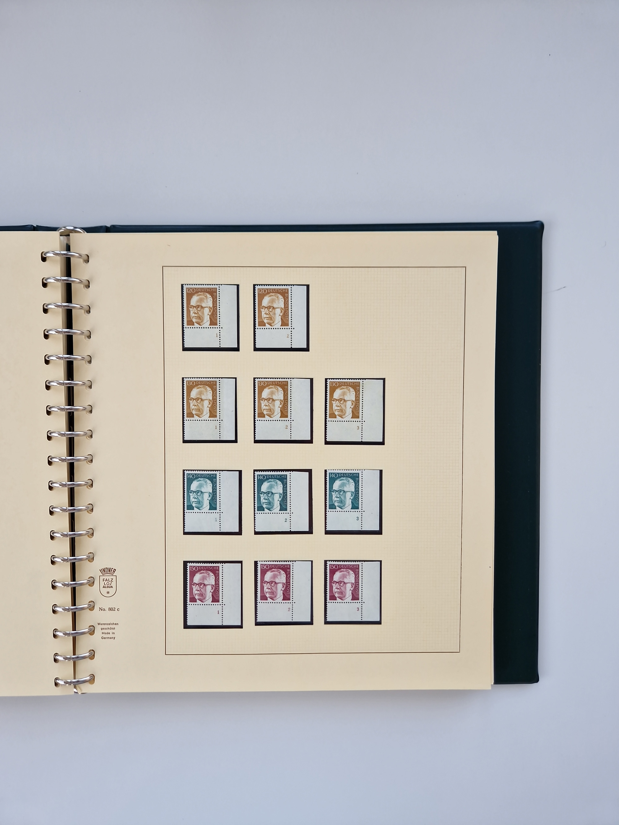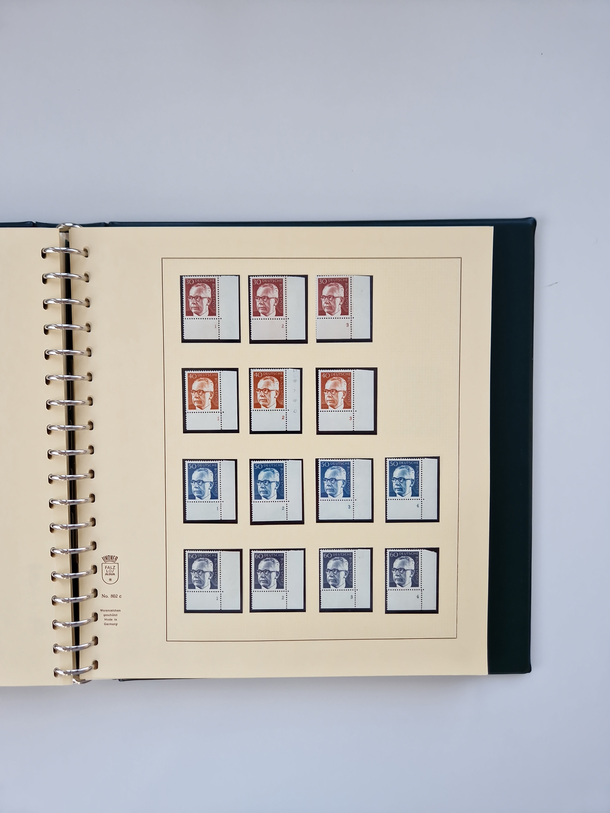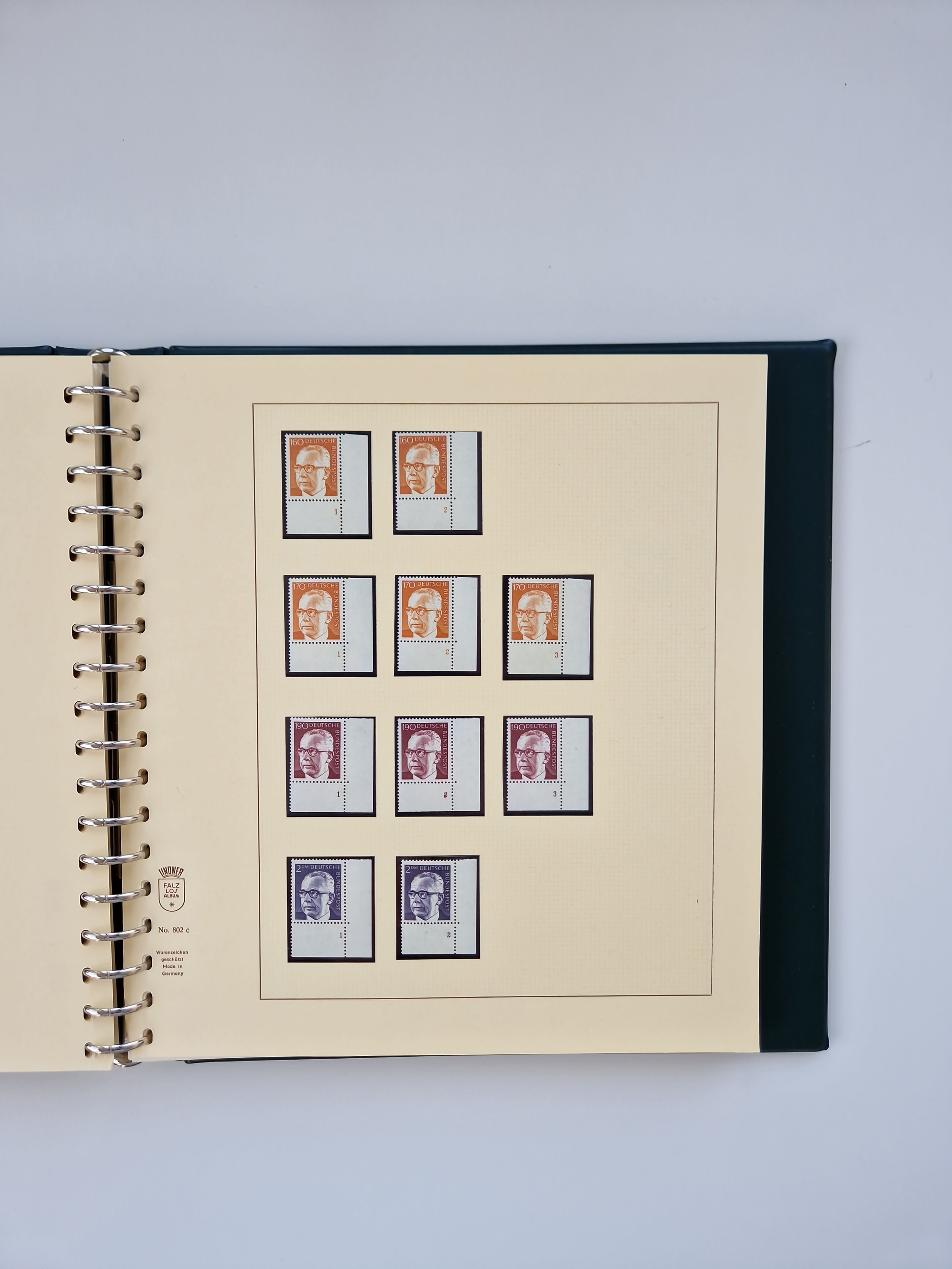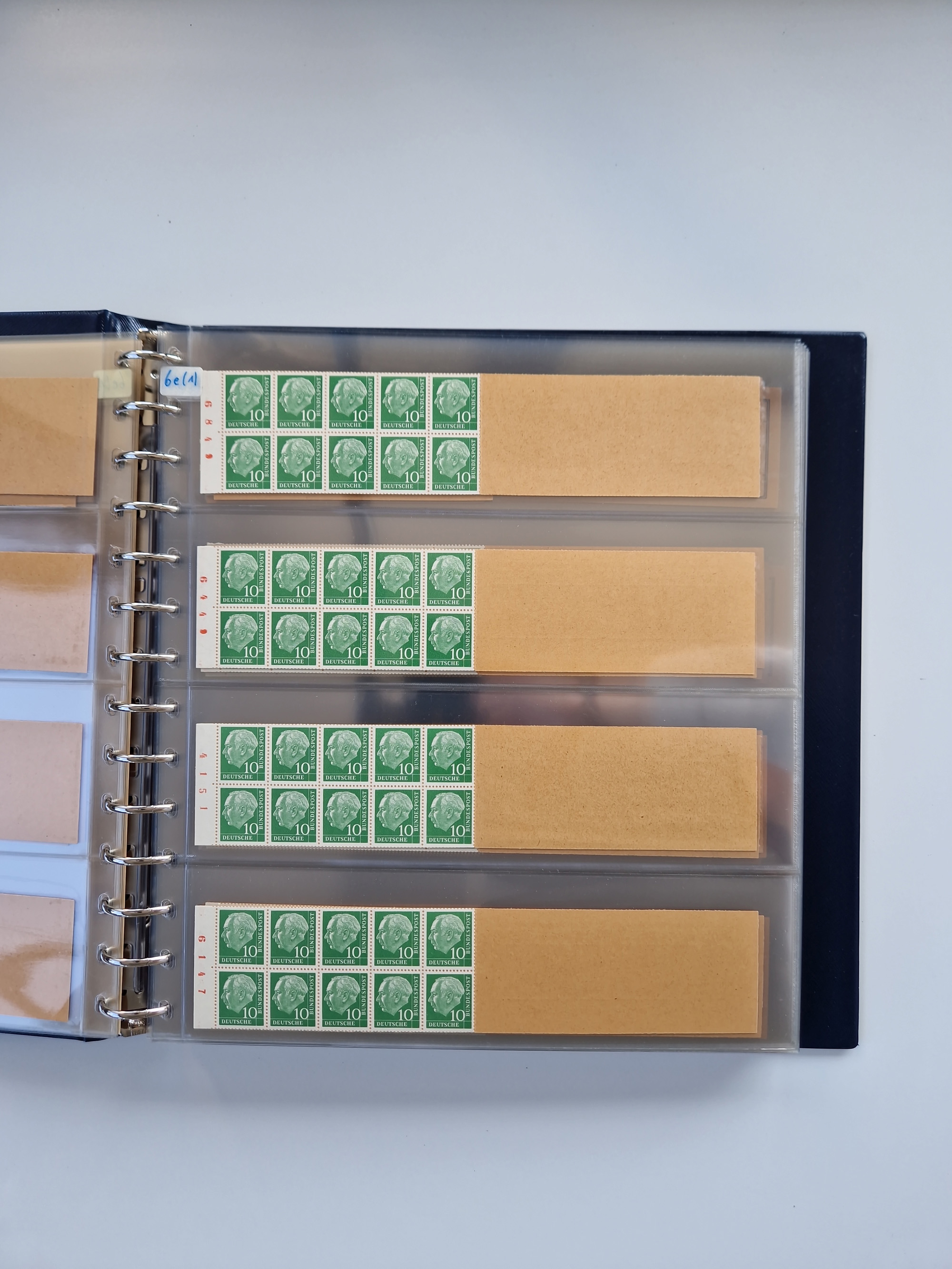 1951/94, postfrische Sammlung Dauerserien, dabei Posthorn in waagerechten oder senkrechten Paaren mit 3 Attesten und 6 Befunden A. Schlegel BPP, Heuss I Eckrandviererblocks, teils mit Druckerzeichen (Attest H.-D. Schlegel BPP). Heuss lumogen mit DZ Befund H.-D. Schlegel BPP. Heuss II Befund H-D Schlegel BPP. Danach Heuss III bis bedeutende Frauen 1994 alles Eckrandviererblocks oben links mit vielen Druckerzeichen und sonstigen Randbesonderheiten, im Lindner-Falzlosalbum.