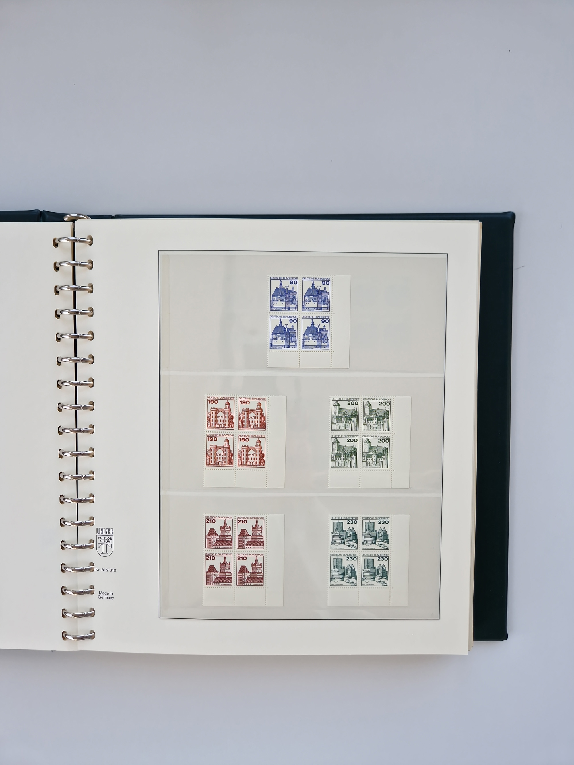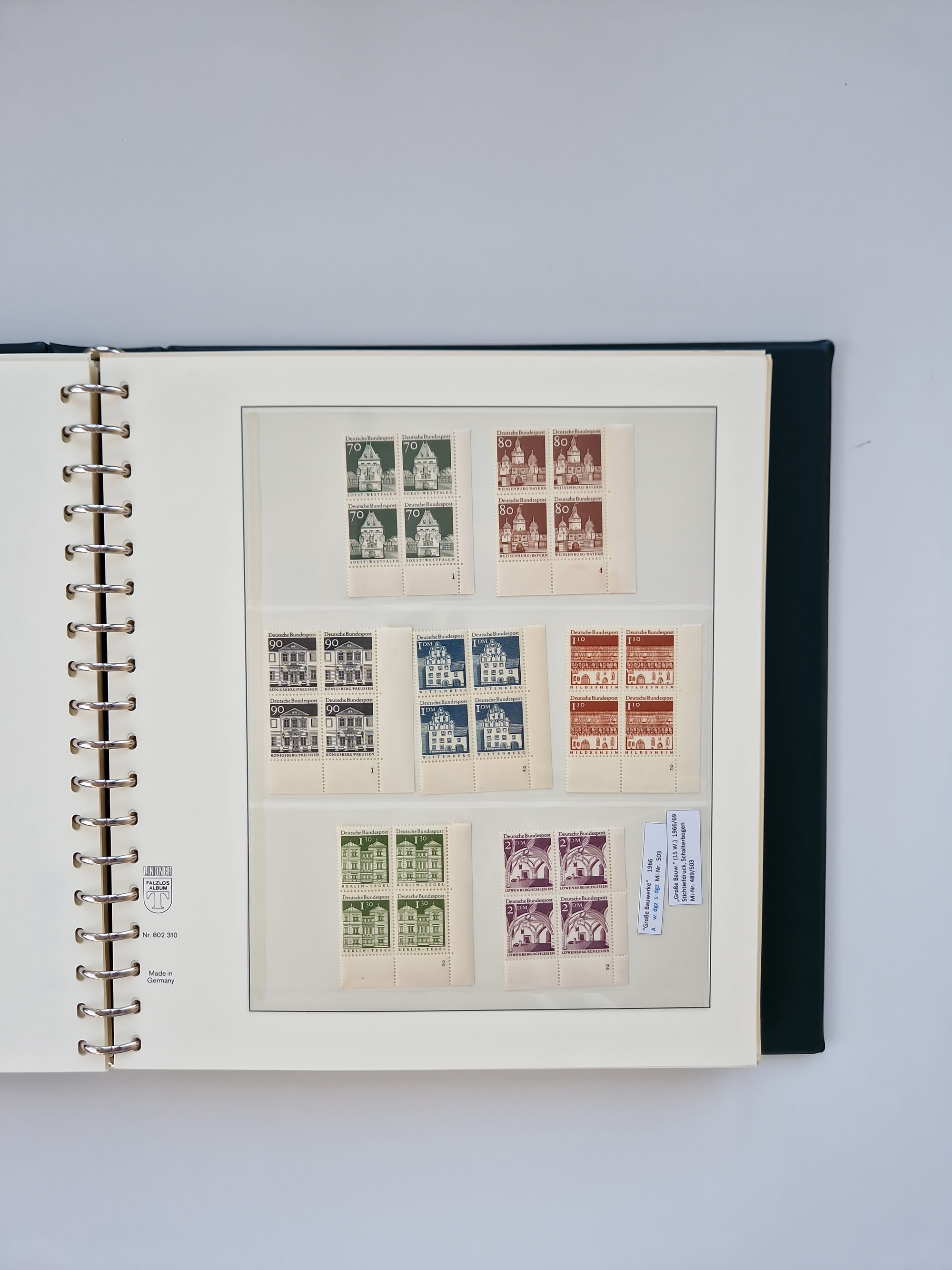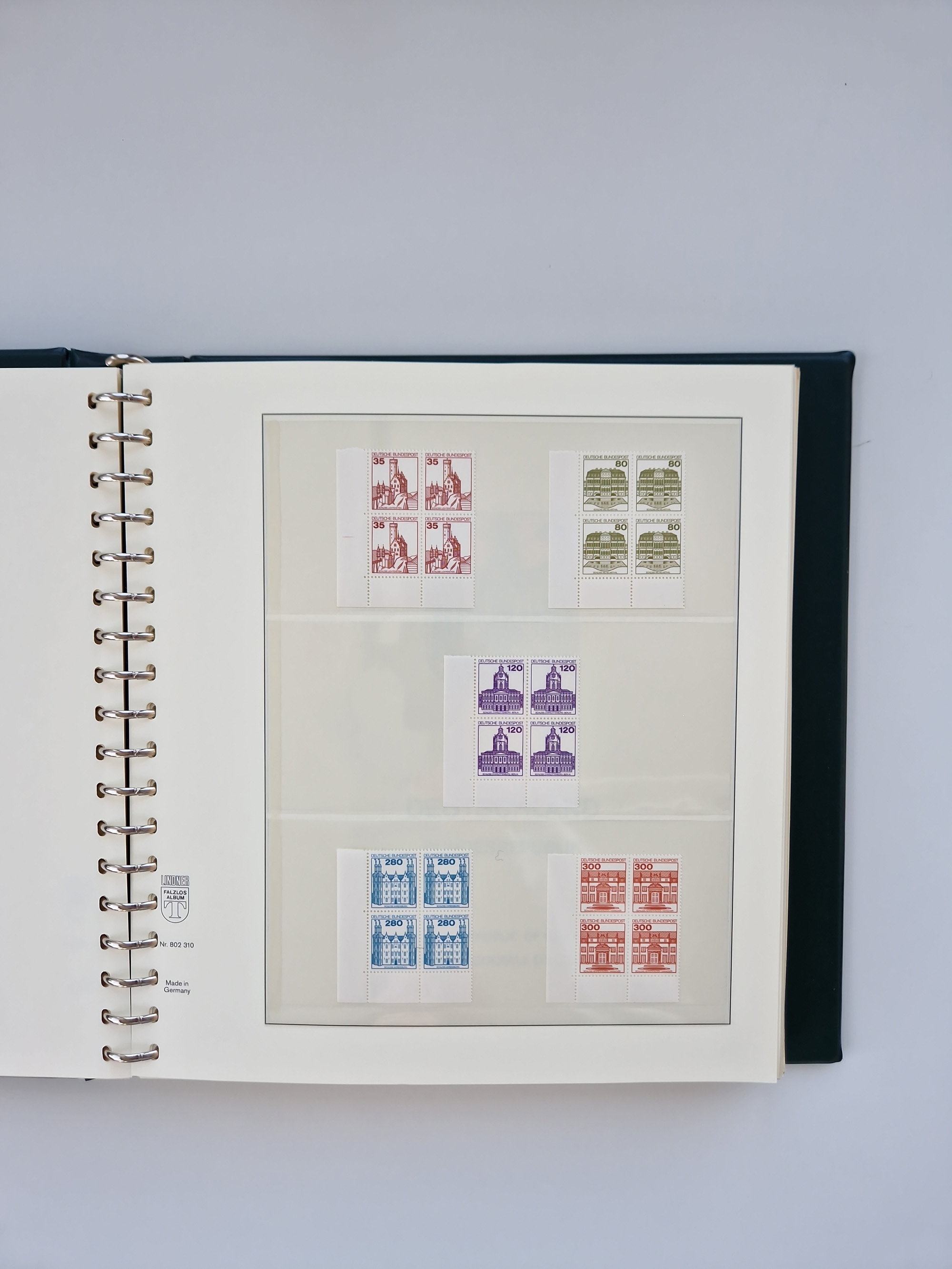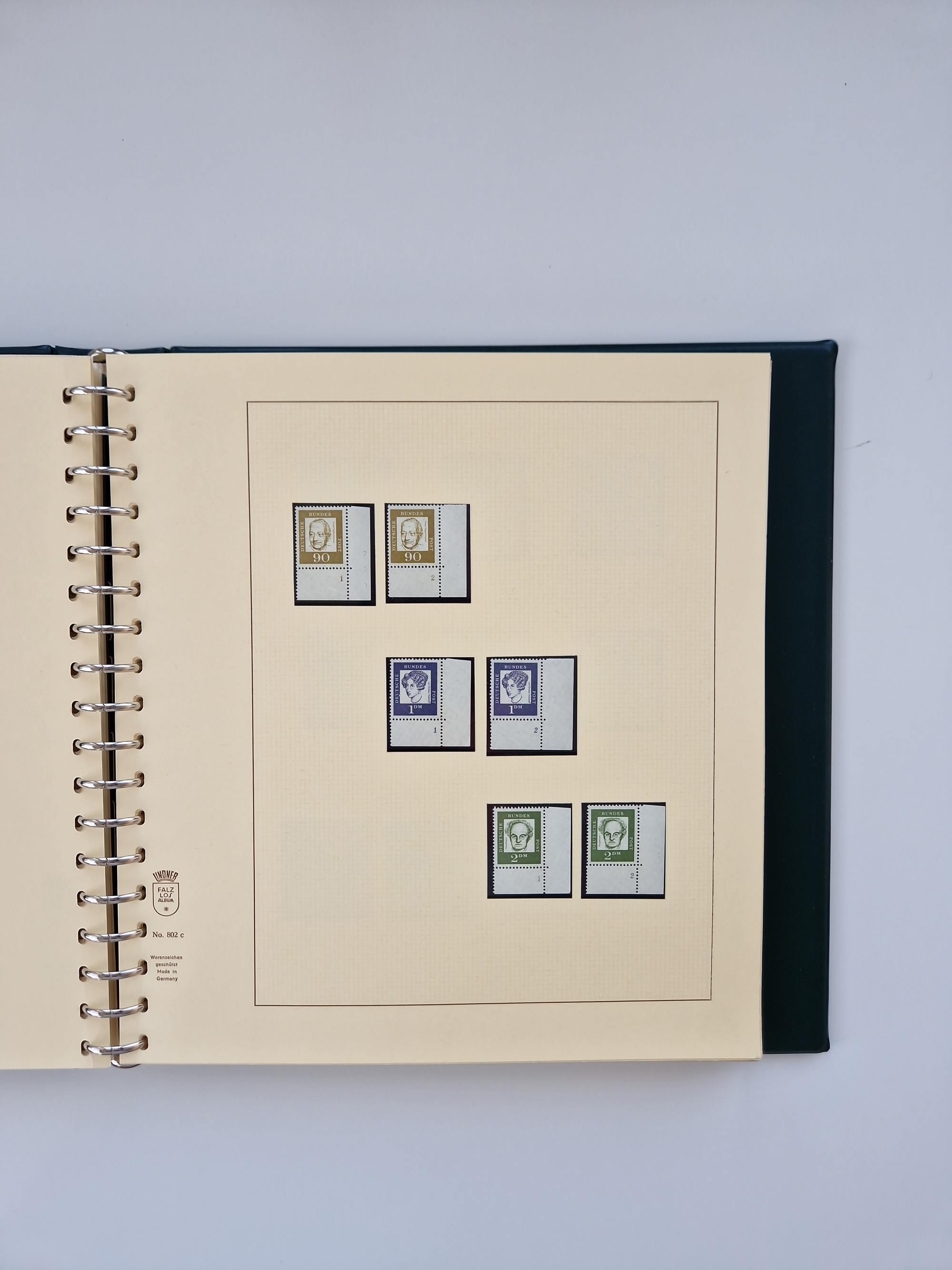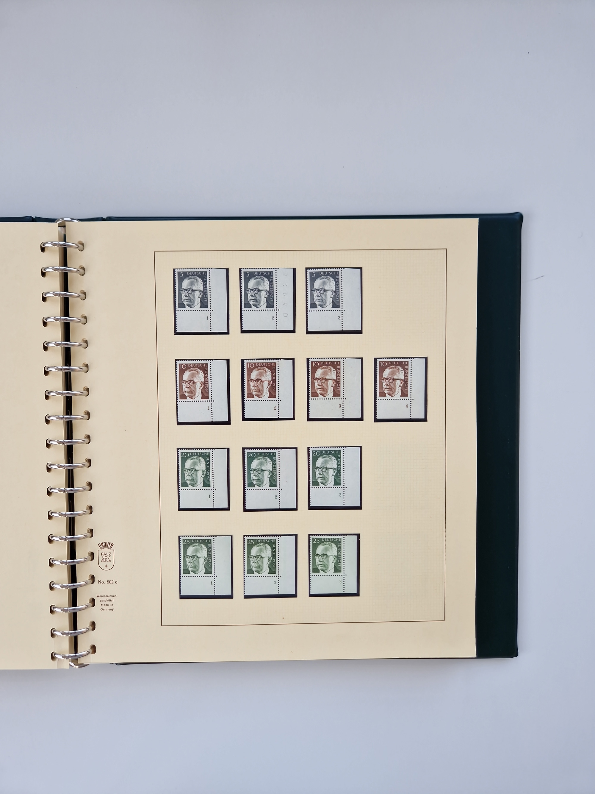 1951/94, postfrische Sammlung Dauerserien, dabei Posthorn in waagerechten oder senkrechten Paaren mit 3 Attesten und 6 Befunden A. Schlegel BPP, Heuss I Eckrandviererblocks, teils mit Druckerzeichen (Attest H.-D. Schlegel BPP). Heuss lumogen mit DZ Befund H.-D. Schlegel BPP. Heuss II Befund H-D Schlegel BPP. Danach Heuss III bis bedeutende Frauen 1994 alles Eckrandviererblocks oben links mit vielen Druckerzeichen und sonstigen Randbesonderheiten, im Lindner-Falzlosalbum.