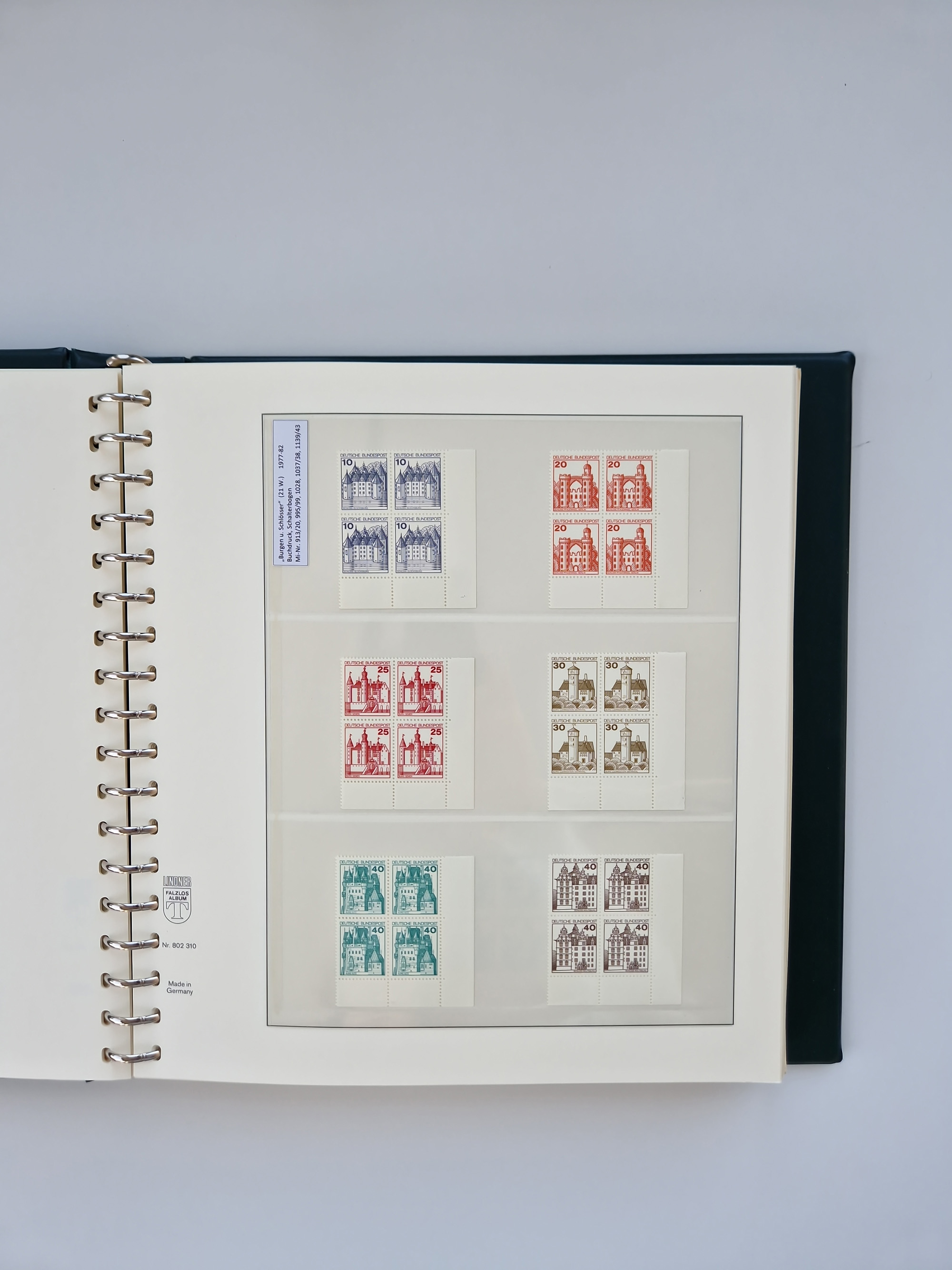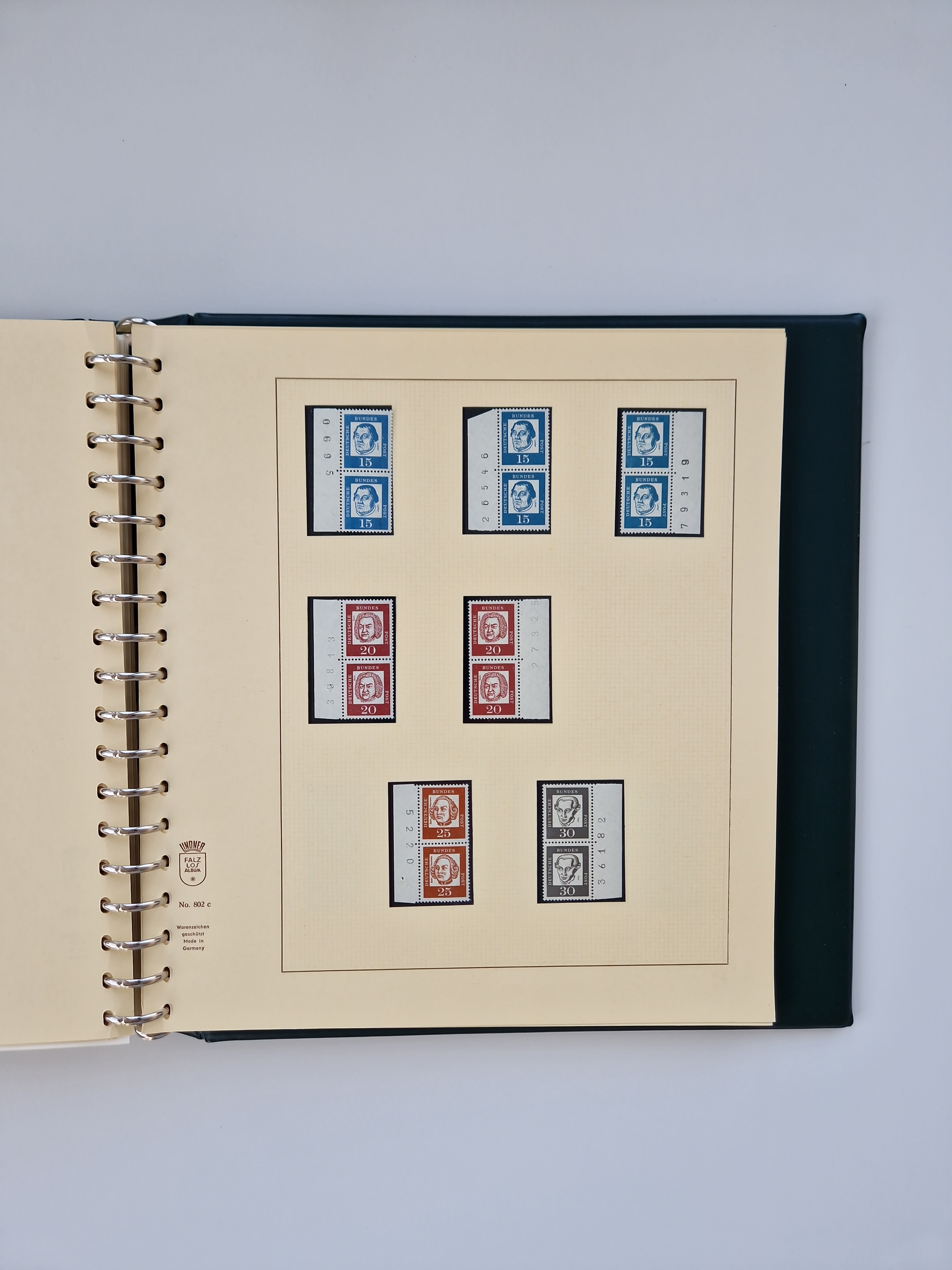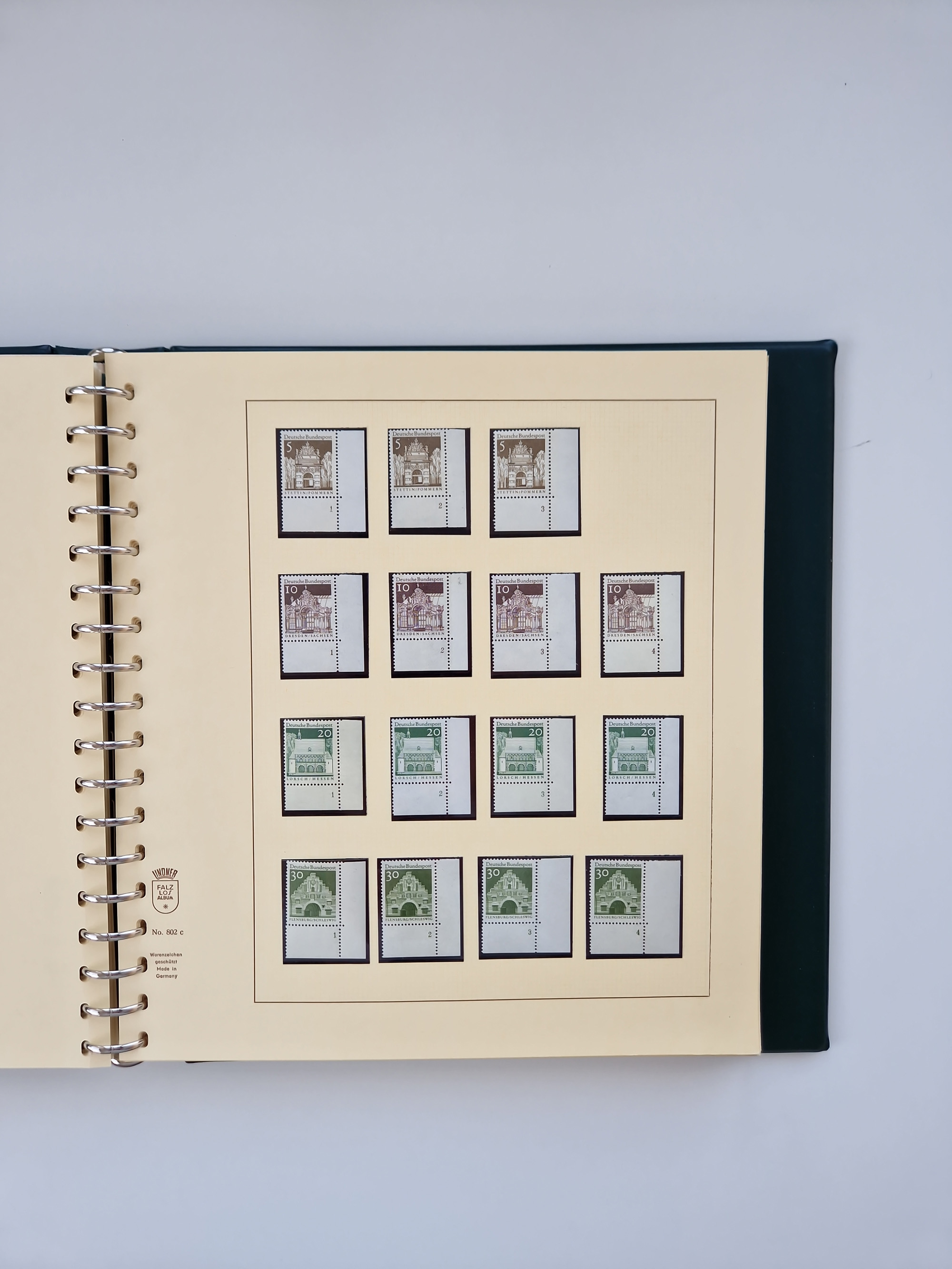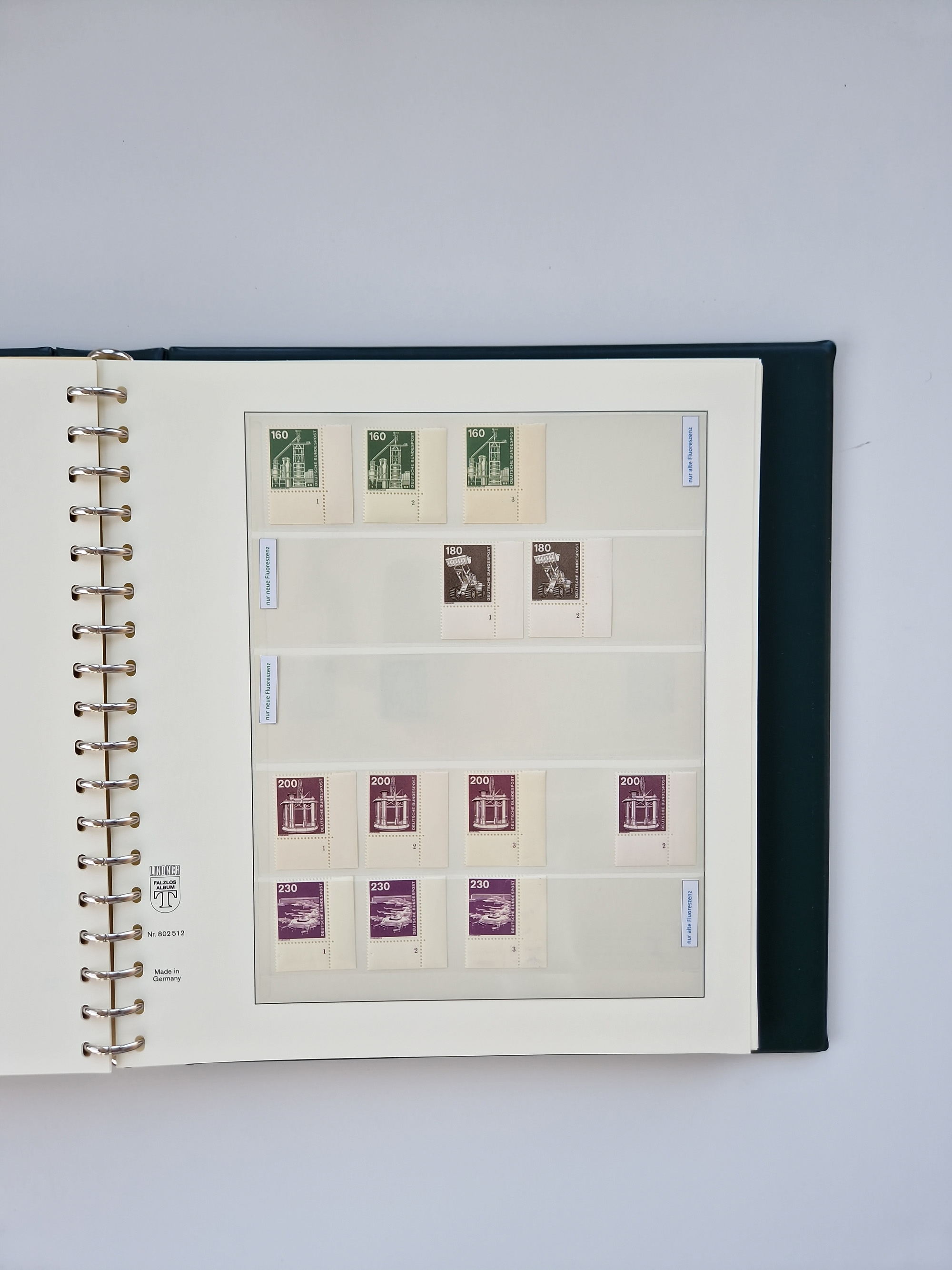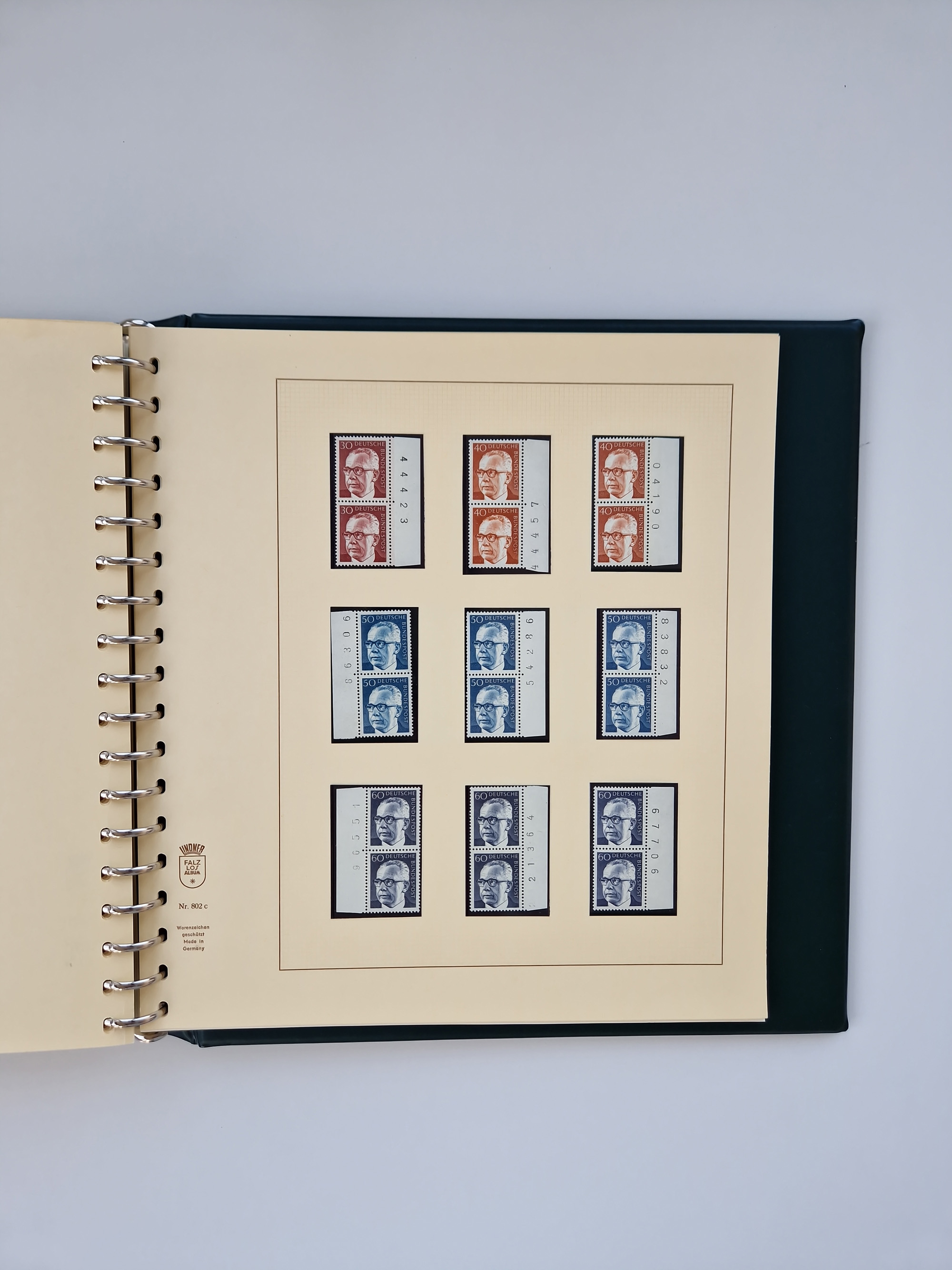 1951/94, postfrische Sammlung Dauerserien, dabei Posthorn in waagerechten oder senkrechten Paaren mit 3 Attesten und 6 Befunden A. Schlegel BPP, Heuss I Eckrandviererblocks, teils mit Druckerzeichen (Attest H.-D. Schlegel BPP). Heuss lumogen mit DZ Befund H.-D. Schlegel BPP. Heuss II Befund H-D Schlegel BPP. Danach Heuss III bis bedeutende Frauen 1994 alles Eckrandviererblocks oben links mit vielen Druckerzeichen und sonstigen Randbesonderheiten, im Lindner-Falzlosalbum.