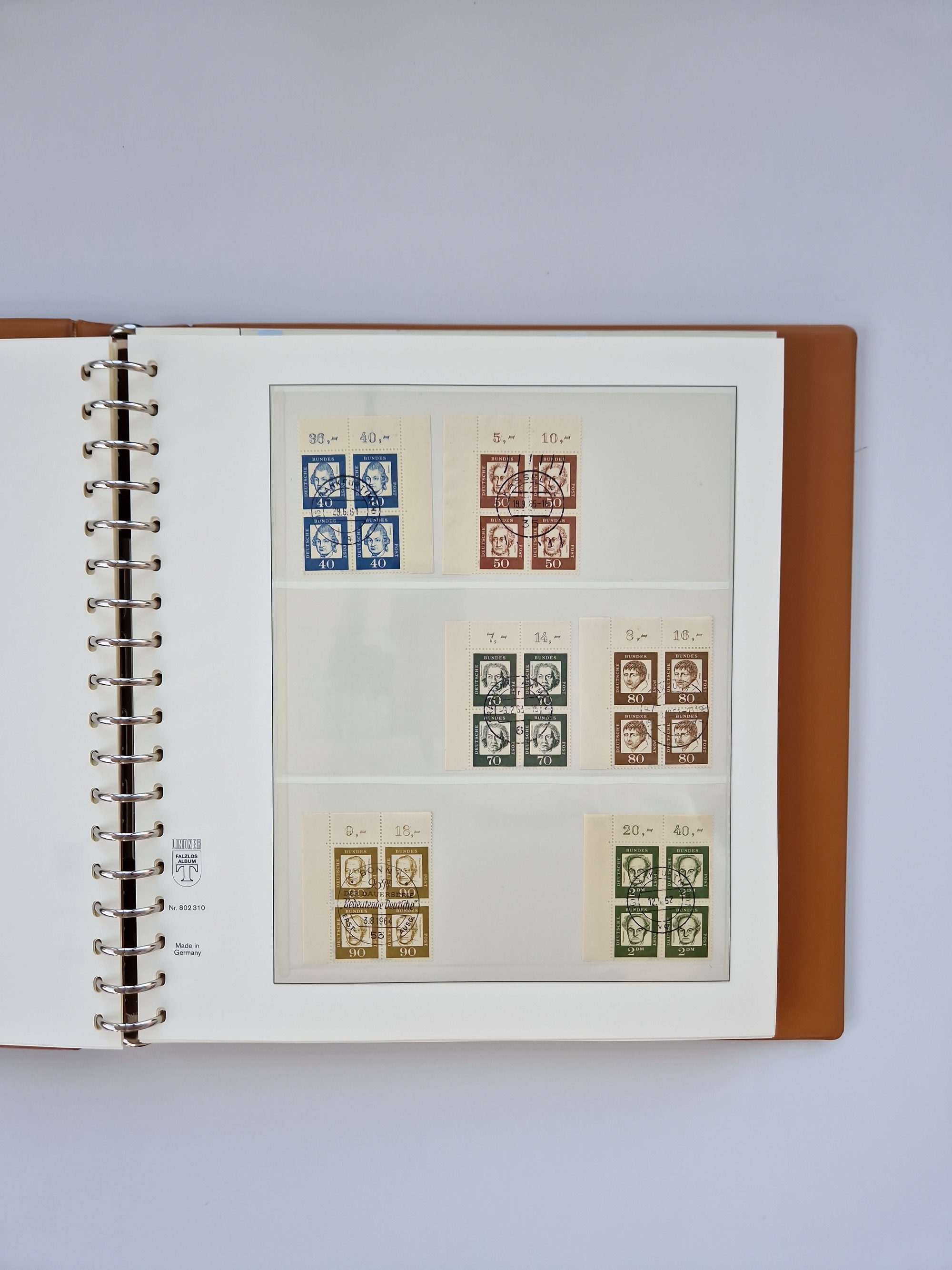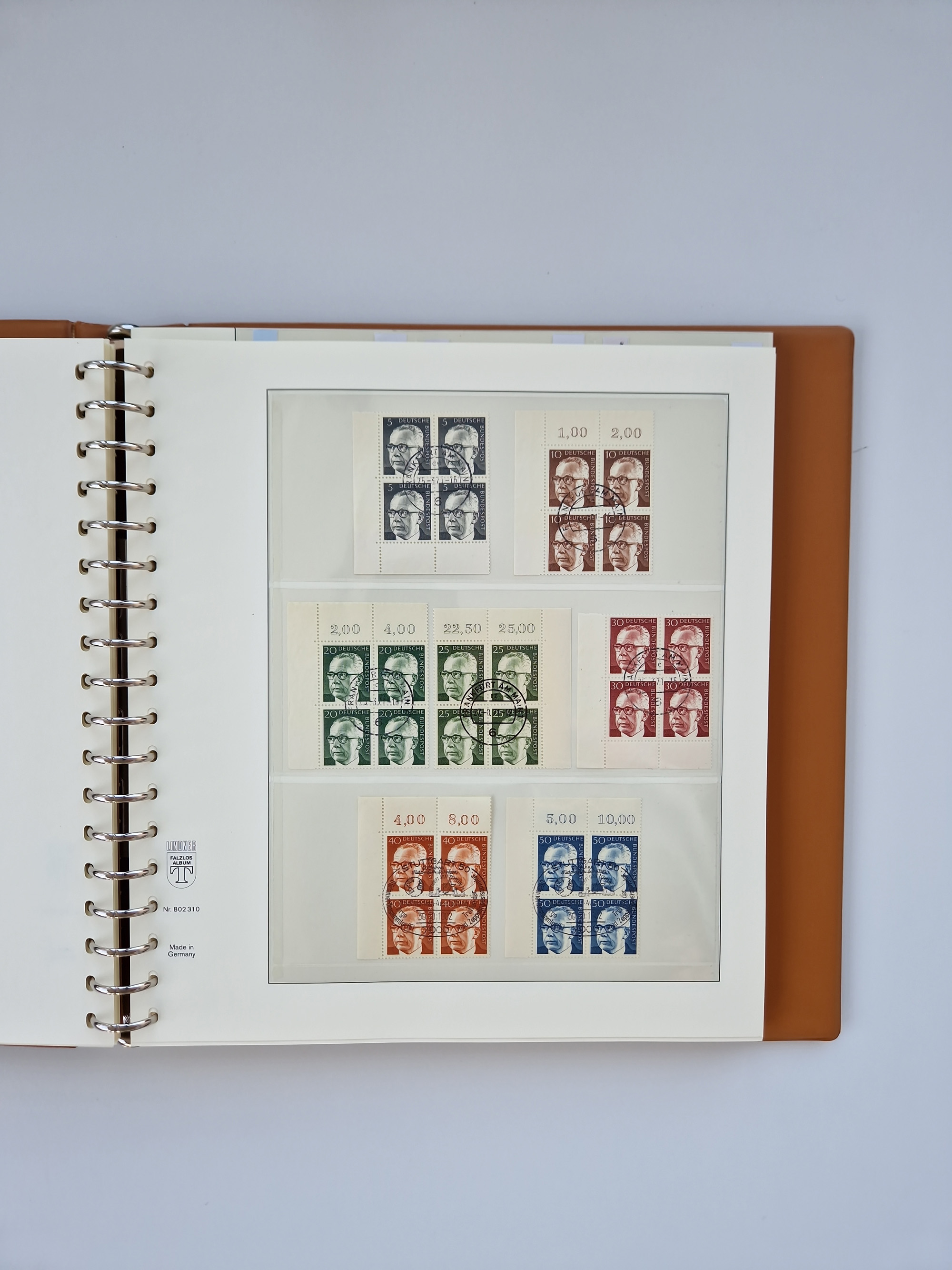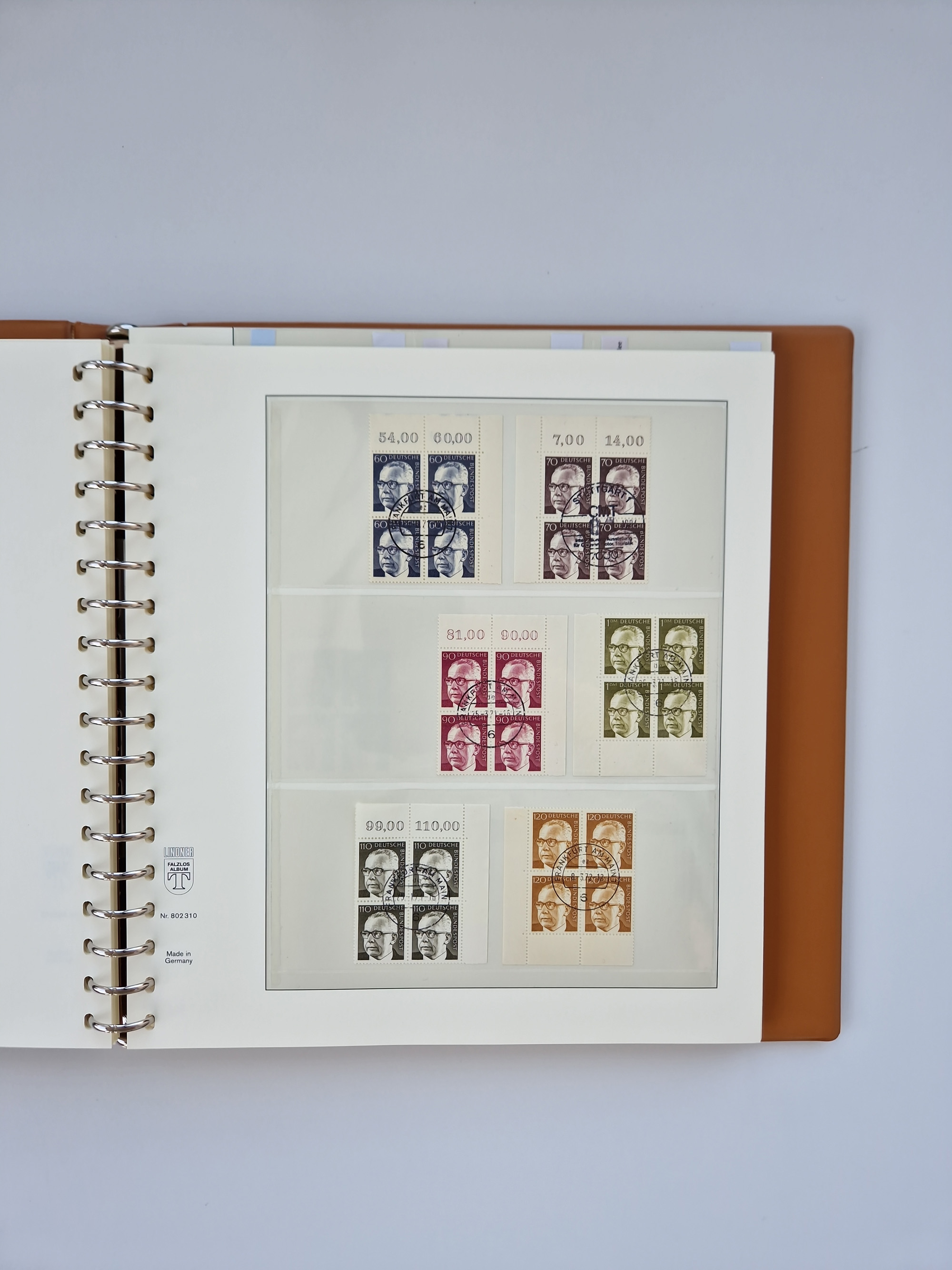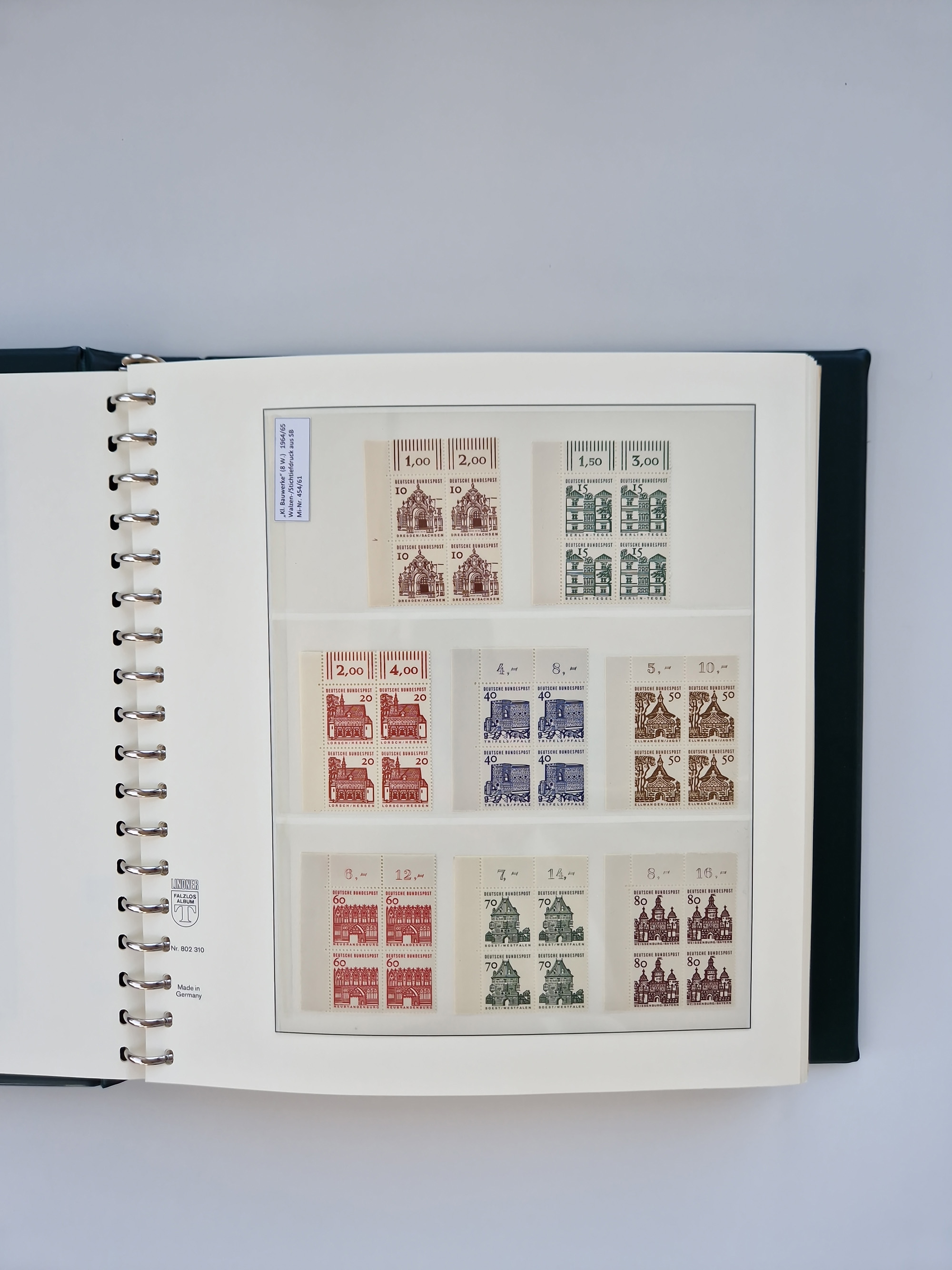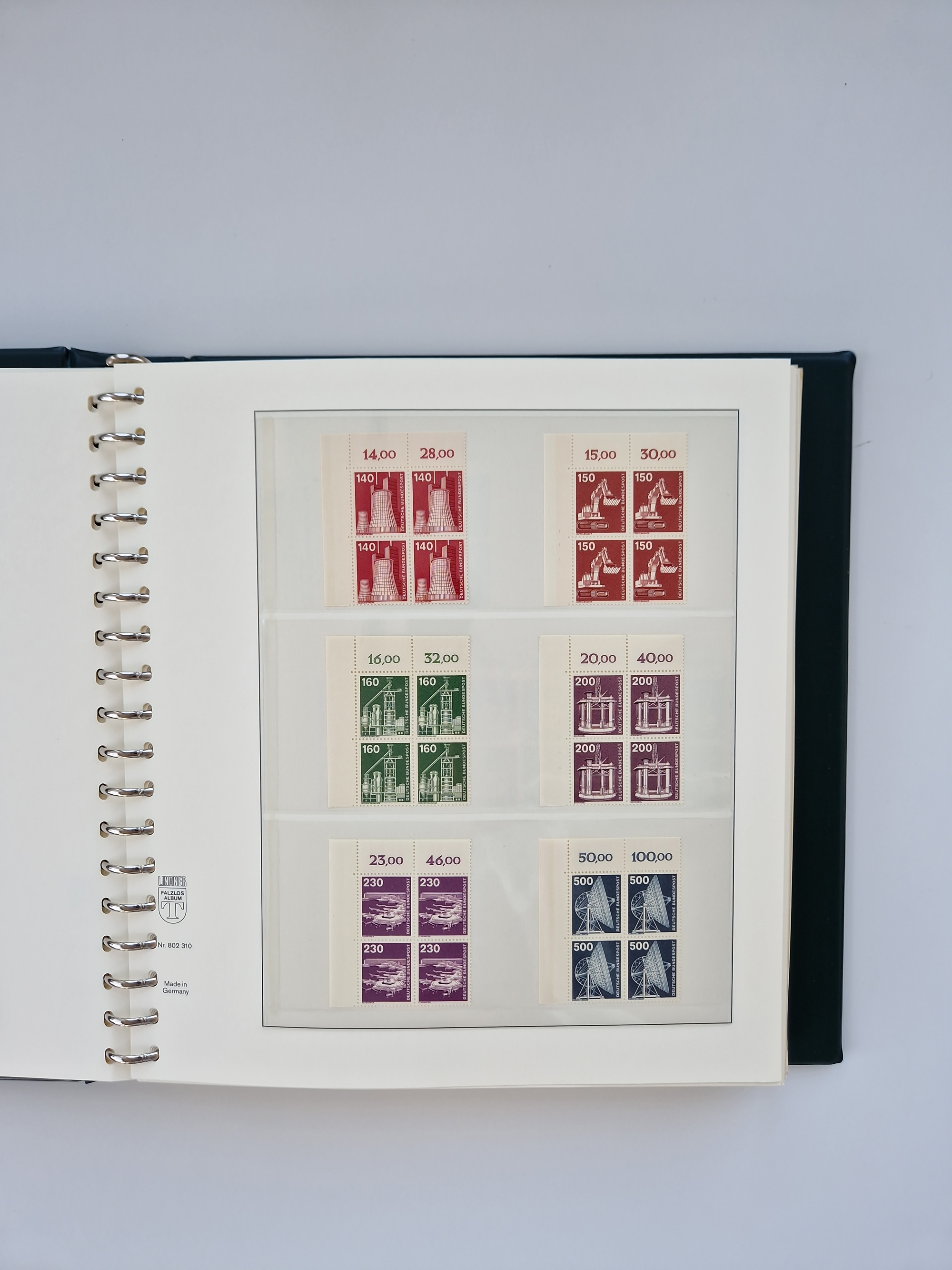 1951/94, postfrische Sammlung Dauerserien, dabei Posthorn in waagerechten oder senkrechten Paaren mit 3 Attesten und 6 Befunden A. Schlegel BPP, Heuss I Eckrandviererblocks, teils mit Druckerzeichen (Attest H.-D. Schlegel BPP). Heuss lumogen mit DZ Befund H.-D. Schlegel BPP. Heuss II Befund H-D Schlegel BPP. Danach Heuss III bis bedeutende Frauen 1994 alles Eckrandviererblocks oben links mit vielen Druckerzeichen und sonstigen Randbesonderheiten, im Lindner-Falzlosalbum.