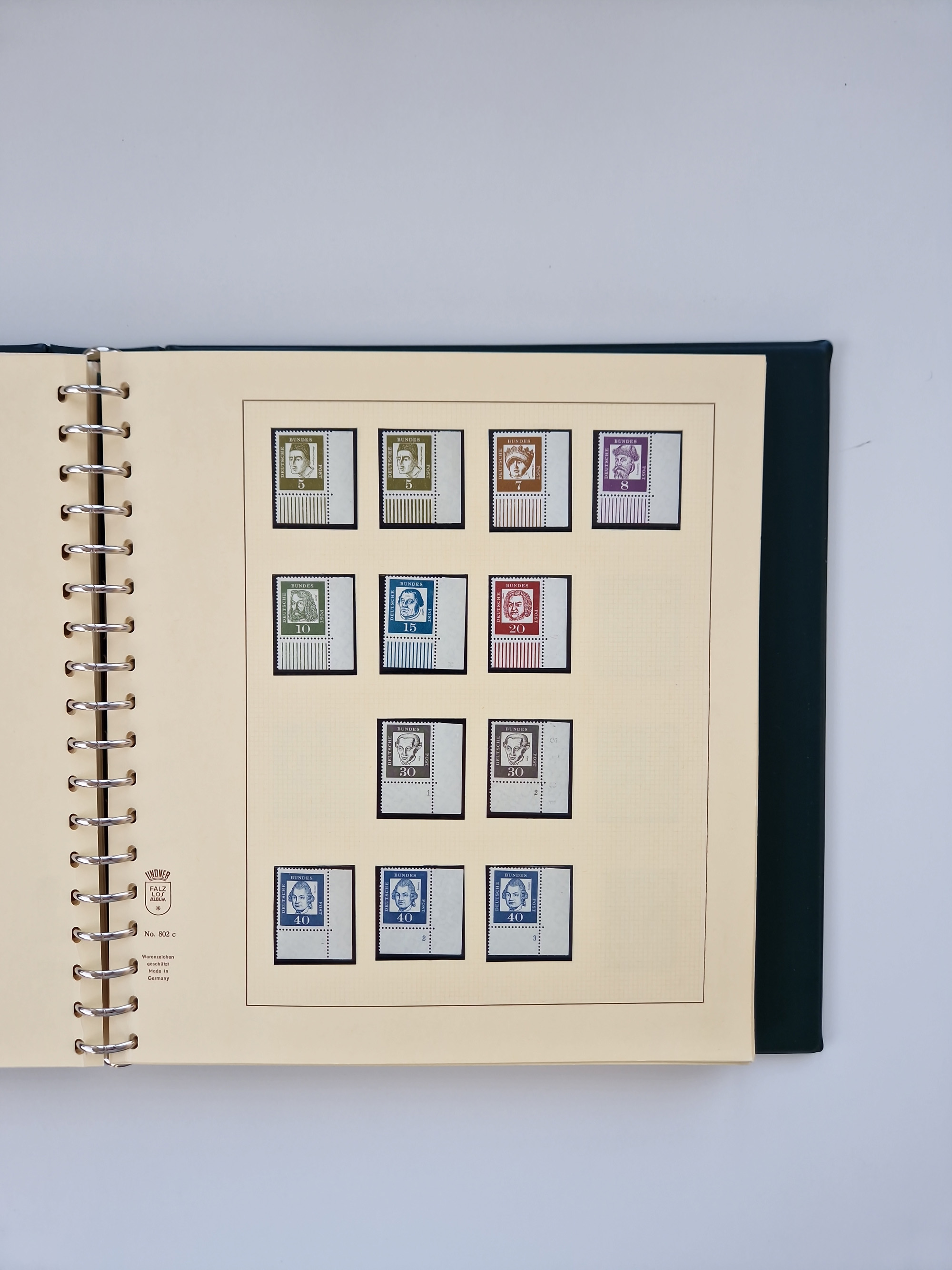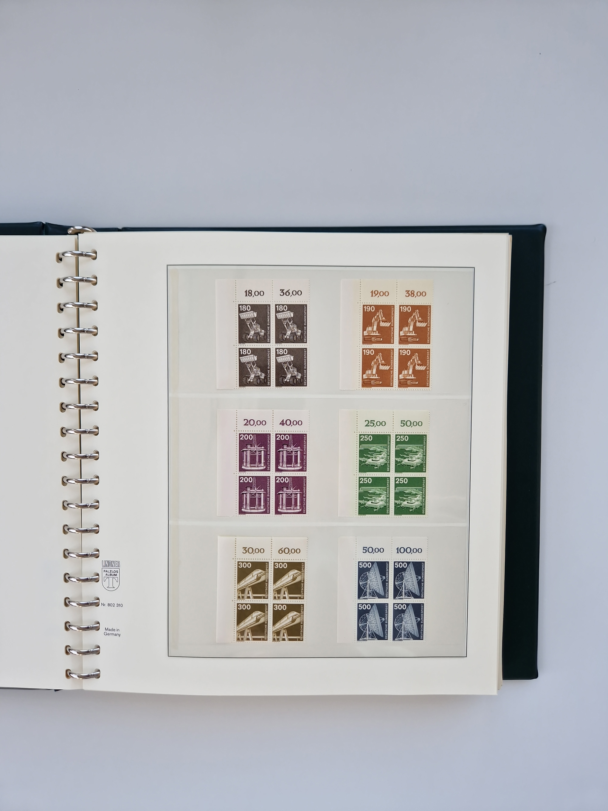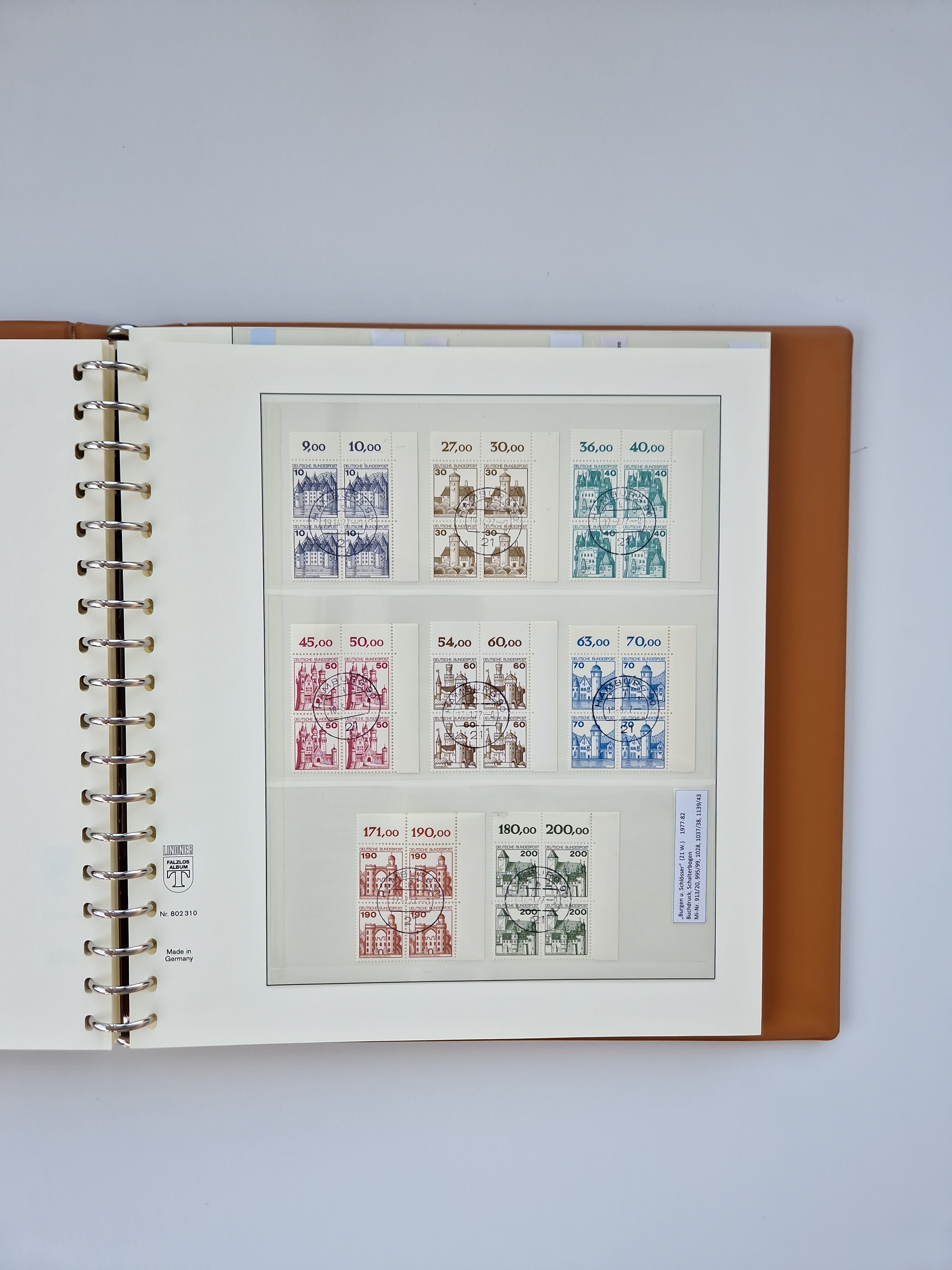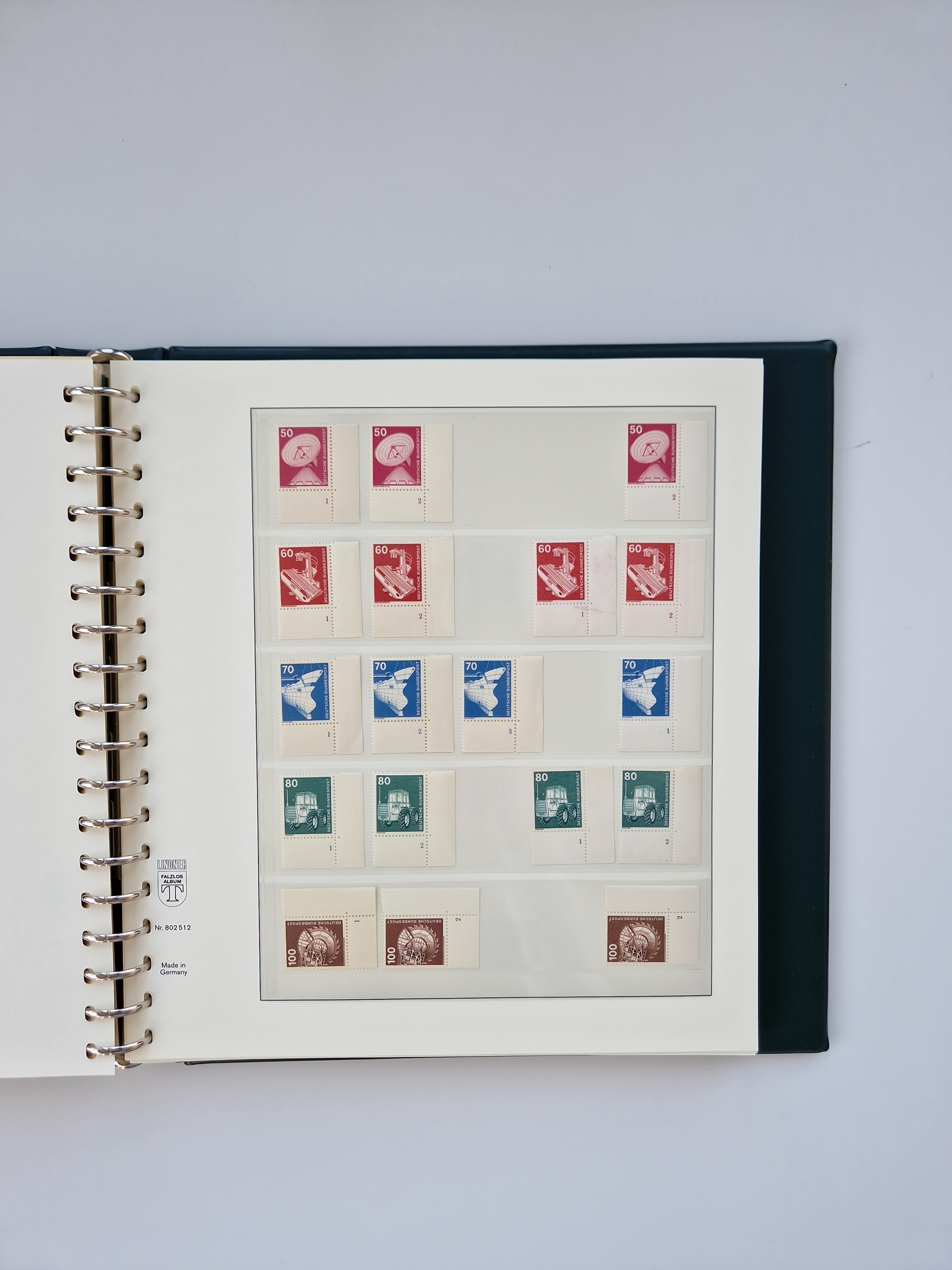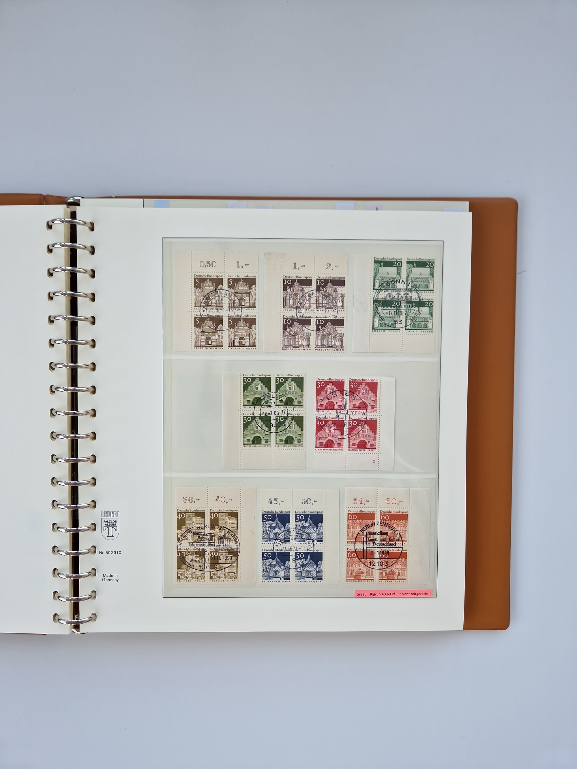 1951/94, postfrische Sammlung Dauerserien, dabei Posthorn in waagerechten oder senkrechten Paaren mit 3 Attesten und 6 Befunden A. Schlegel BPP, Heuss I Eckrandviererblocks, teils mit Druckerzeichen (Attest H.-D. Schlegel BPP). Heuss lumogen mit DZ Befund H.-D. Schlegel BPP. Heuss II Befund H-D Schlegel BPP. Danach Heuss III bis bedeutende Frauen 1994 alles Eckrandviererblocks oben links mit vielen Druckerzeichen und sonstigen Randbesonderheiten, im Lindner-Falzlosalbum.