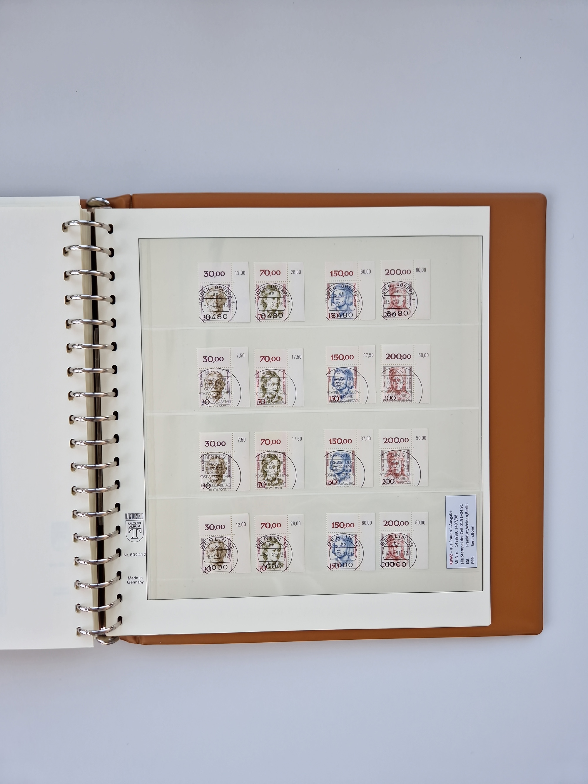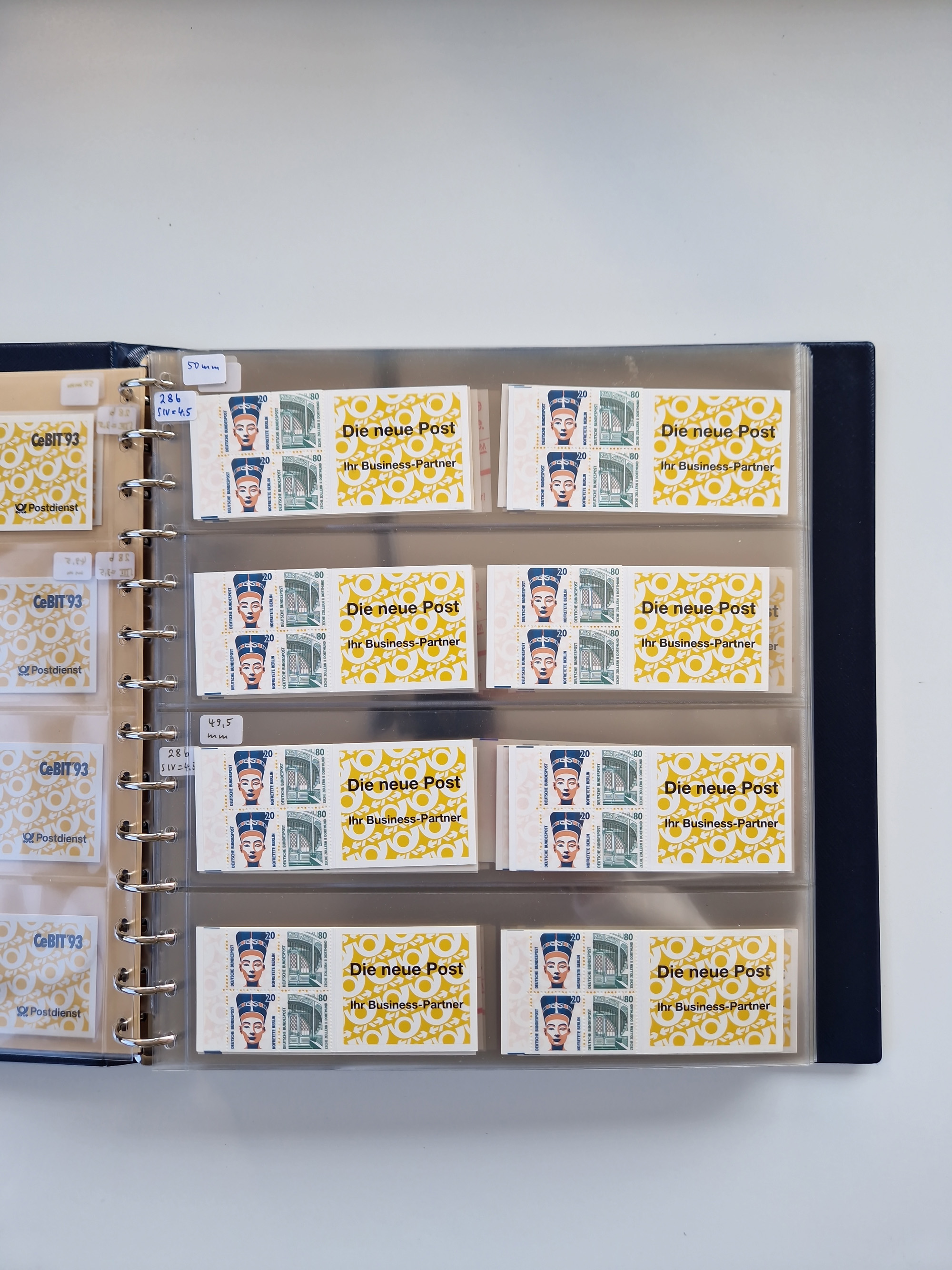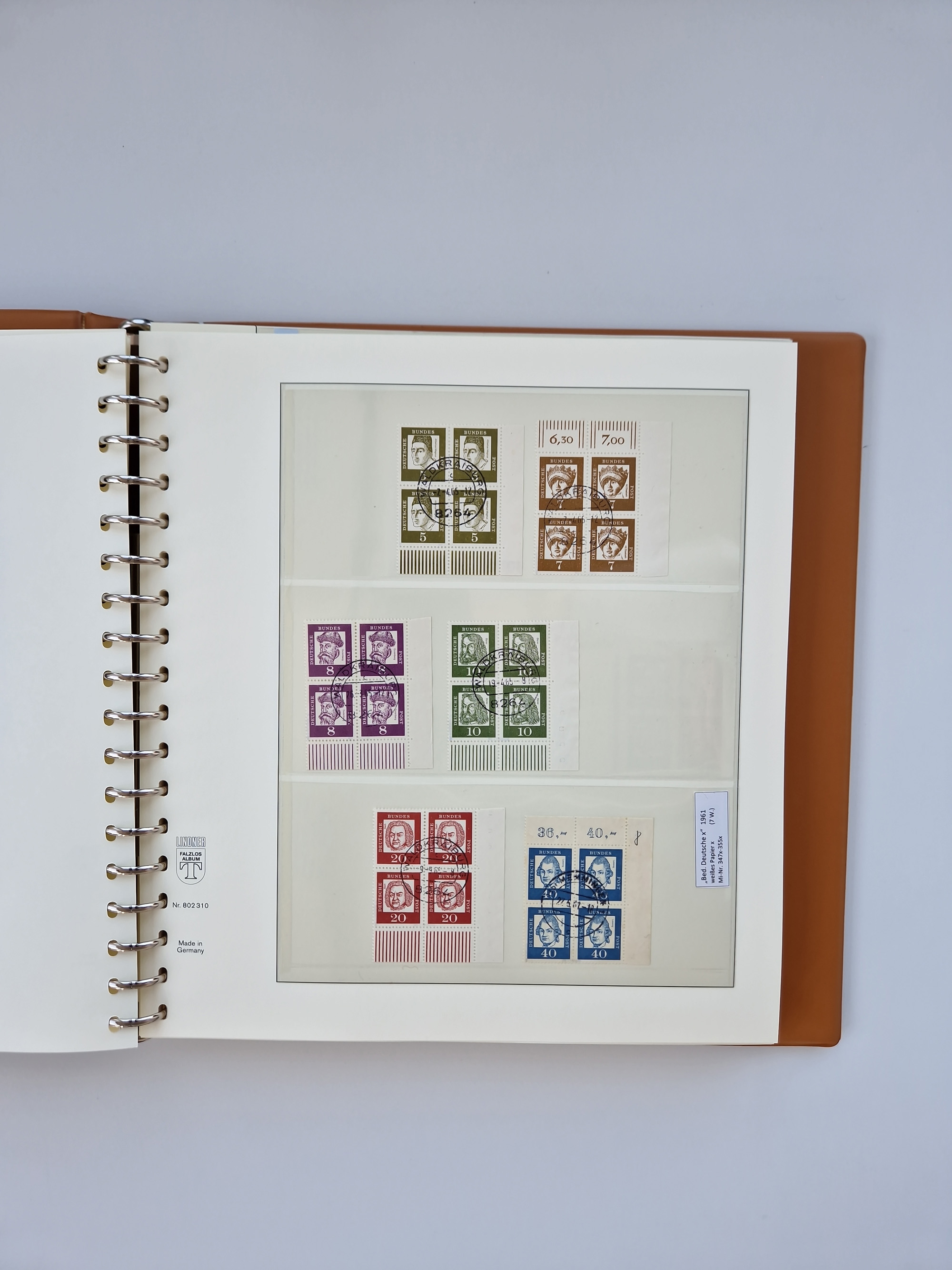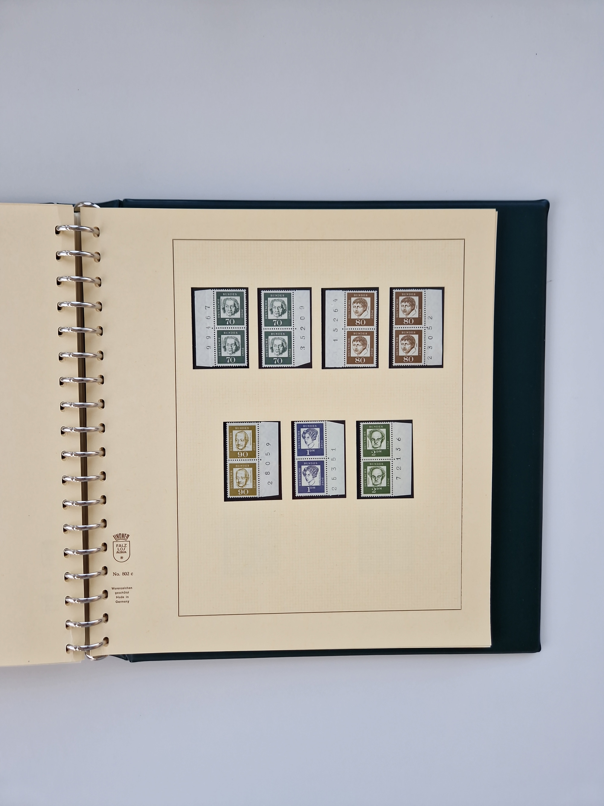 1951/94, postfrische Sammlung Dauerserien, dabei Posthorn in waagerechten oder senkrechten Paaren mit 3 Attesten und 6 Befunden A. Schlegel BPP, Heuss I Eckrandviererblocks, teils mit Druckerzeichen (Attest H.-D. Schlegel BPP). Heuss lumogen mit DZ Befund H.-D. Schlegel BPP. Heuss II Befund H-D Schlegel BPP. Danach Heuss III bis bedeutende Frauen 1994 alles Eckrandviererblocks oben links mit vielen Druckerzeichen und sonstigen Randbesonderheiten, im Lindner-Falzlosalbum.