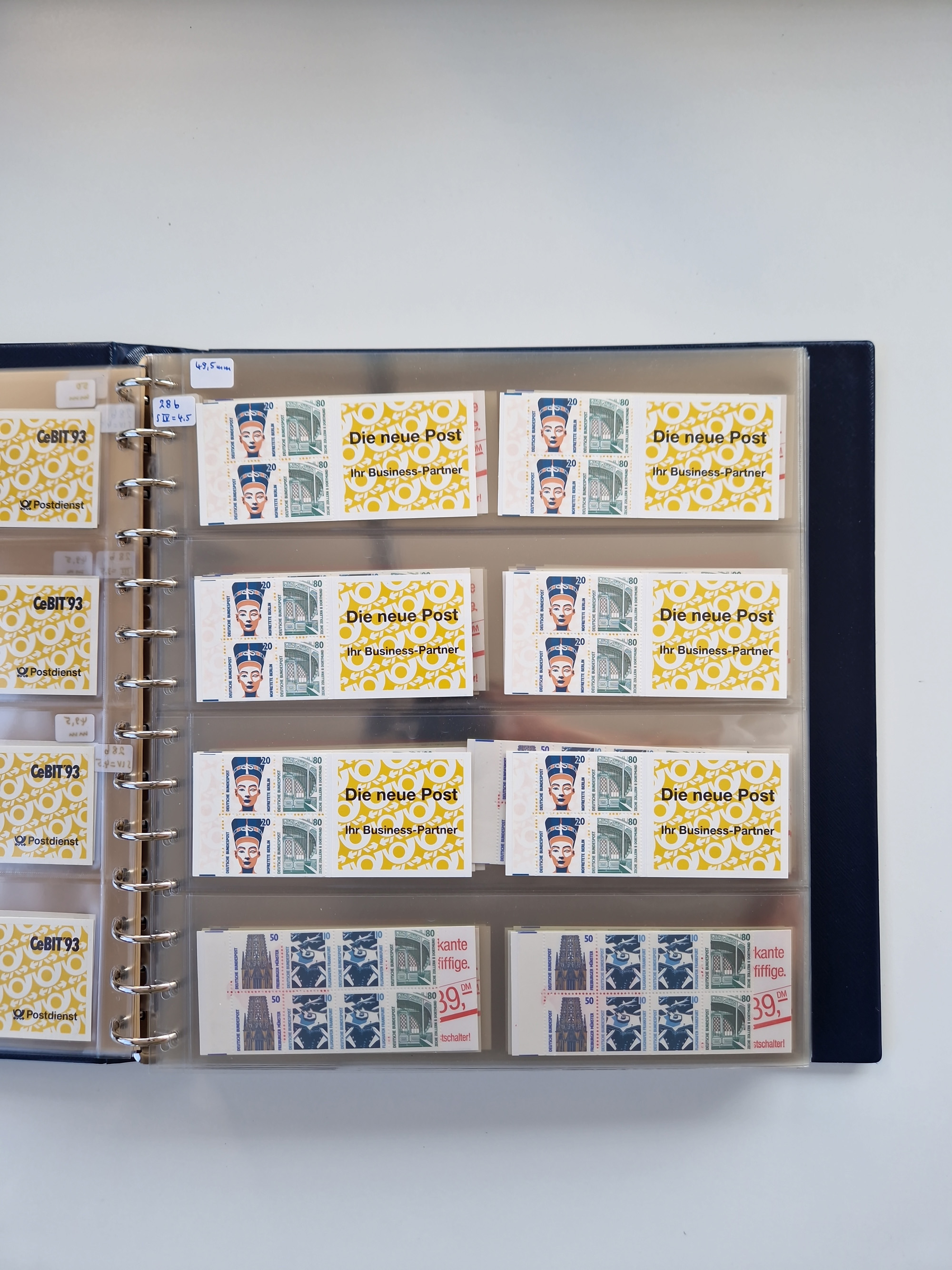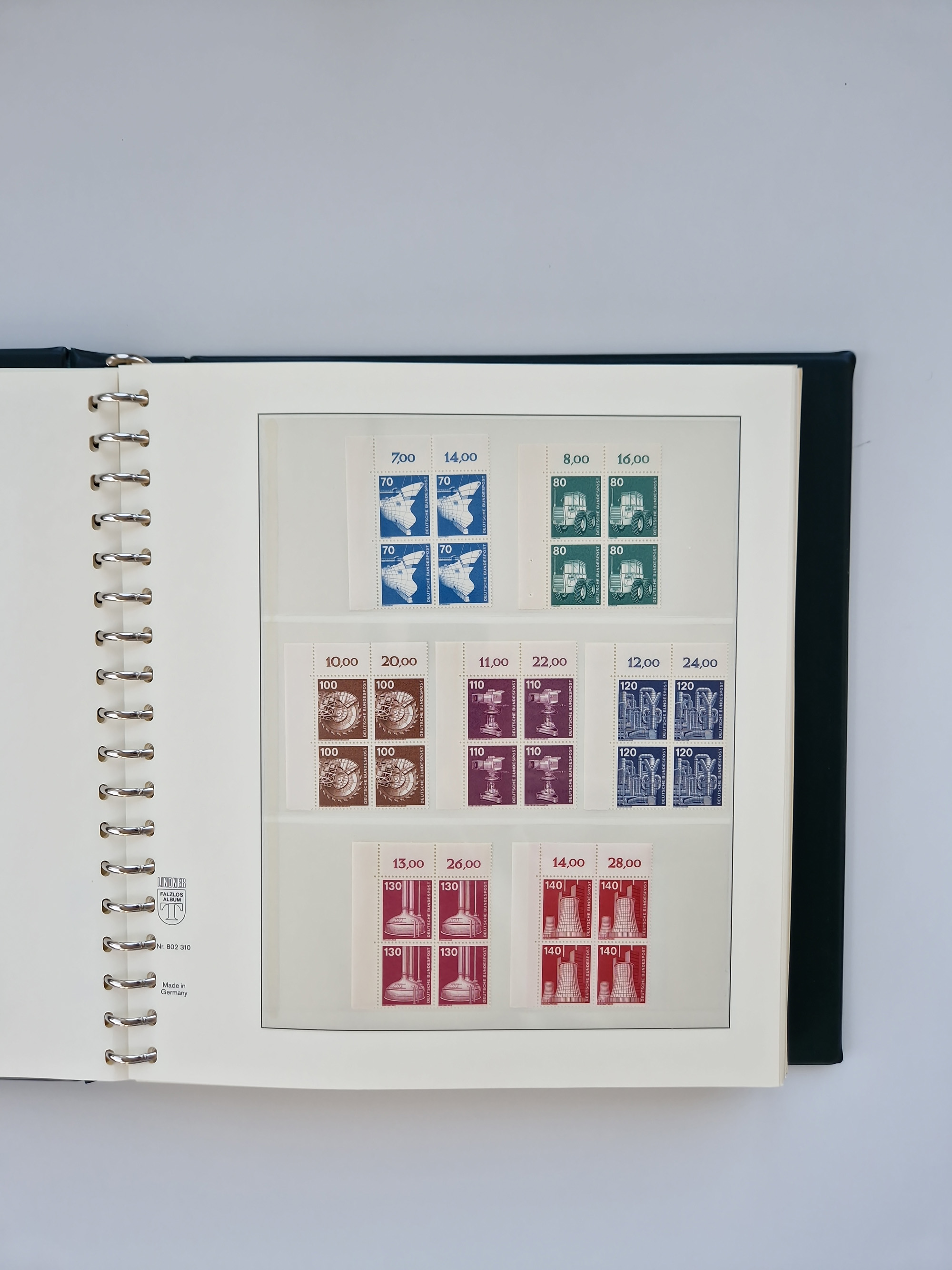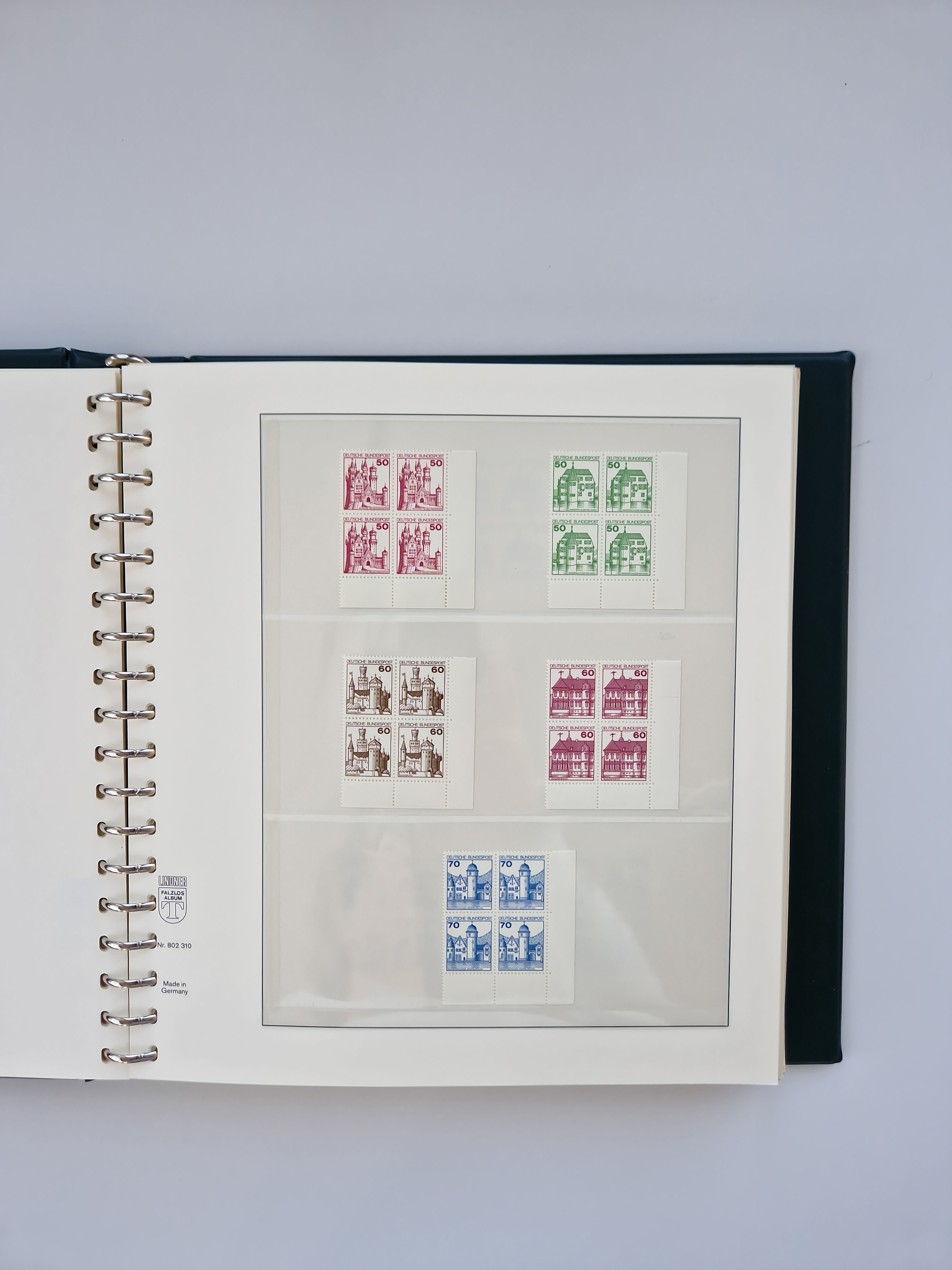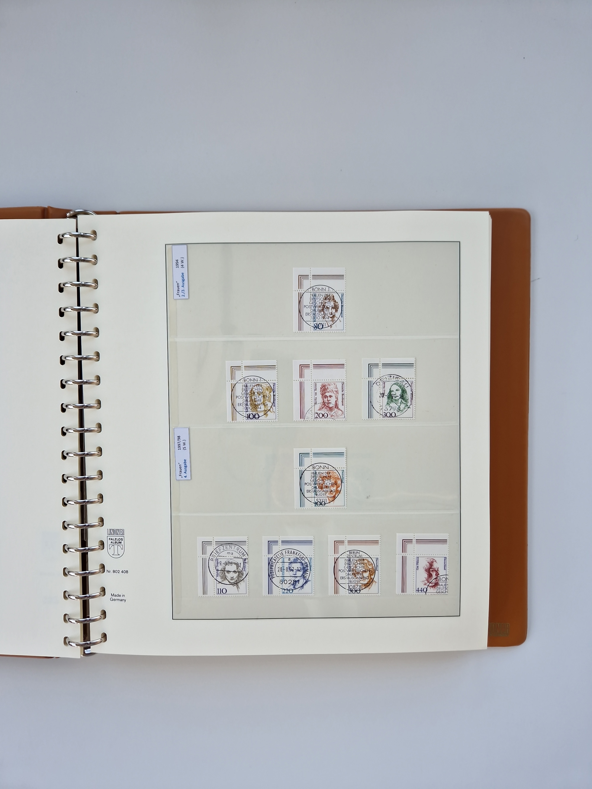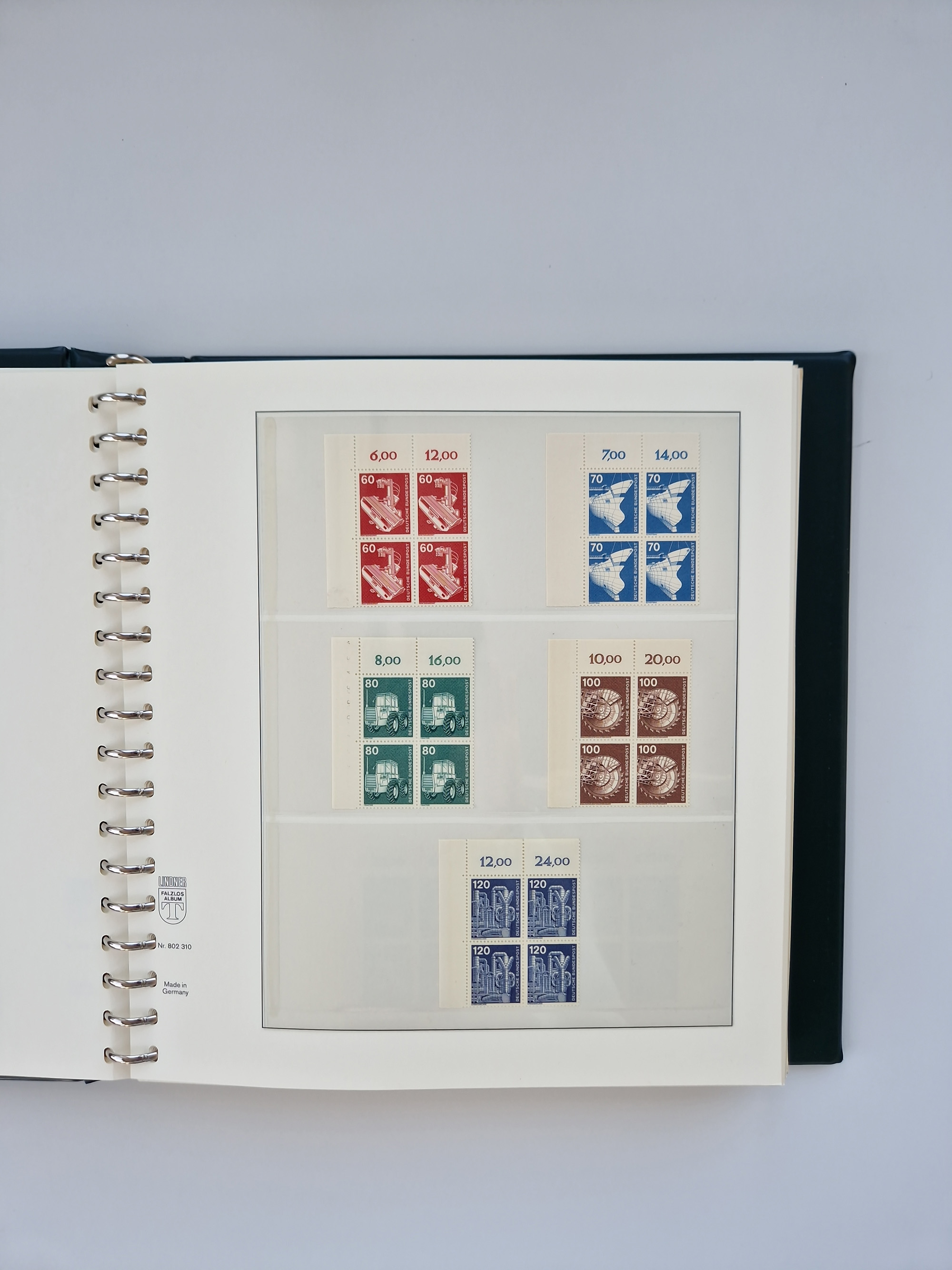 1951/94, postfrische Sammlung Dauerserien, dabei Posthorn in waagerechten oder senkrechten Paaren mit 3 Attesten und 6 Befunden A. Schlegel BPP, Heuss I Eckrandviererblocks, teils mit Druckerzeichen (Attest H.-D. Schlegel BPP). Heuss lumogen mit DZ Befund H.-D. Schlegel BPP. Heuss II Befund H-D Schlegel BPP. Danach Heuss III bis bedeutende Frauen 1994 alles Eckrandviererblocks oben links mit vielen Druckerzeichen und sonstigen Randbesonderheiten, im Lindner-Falzlosalbum.