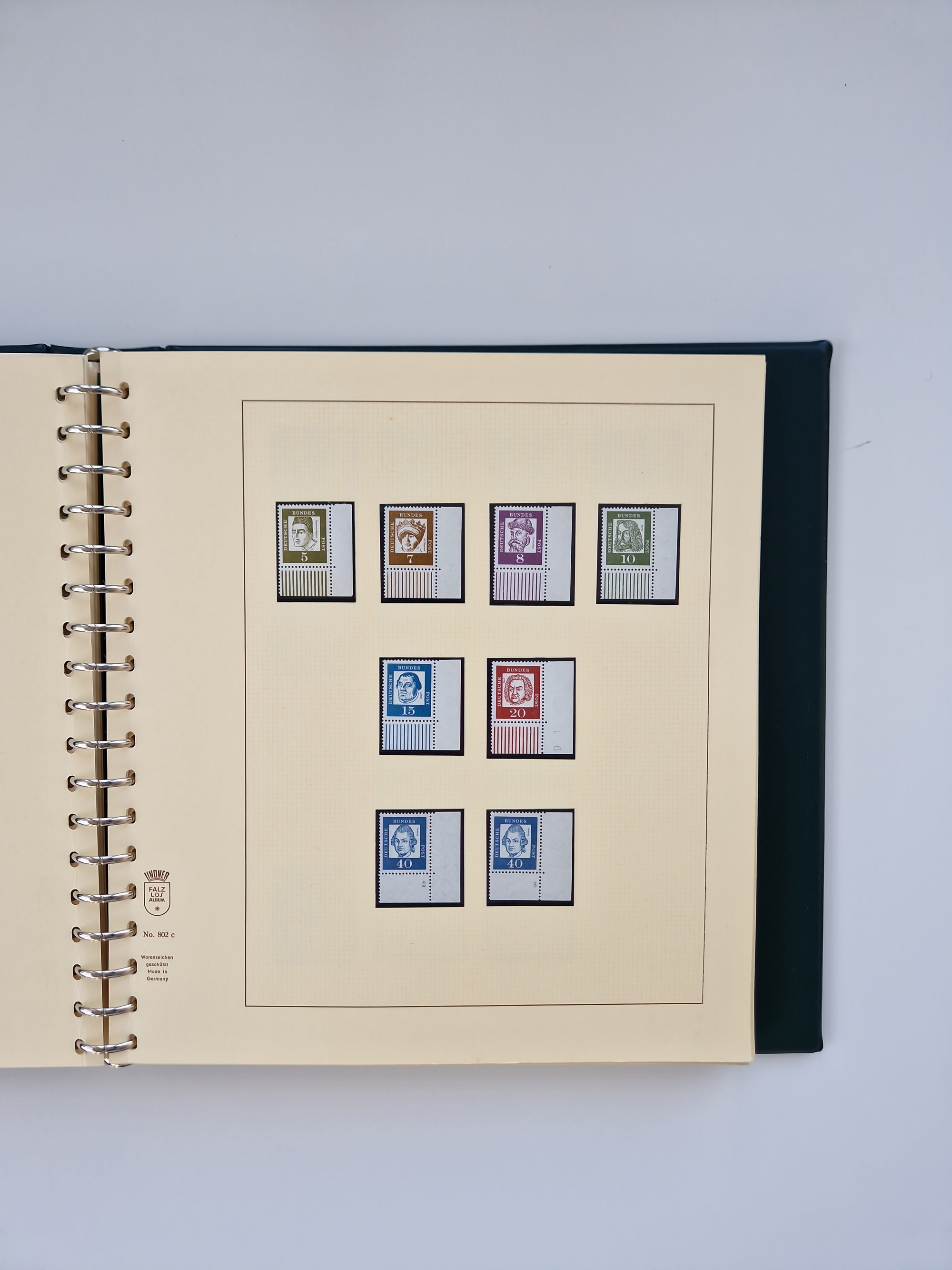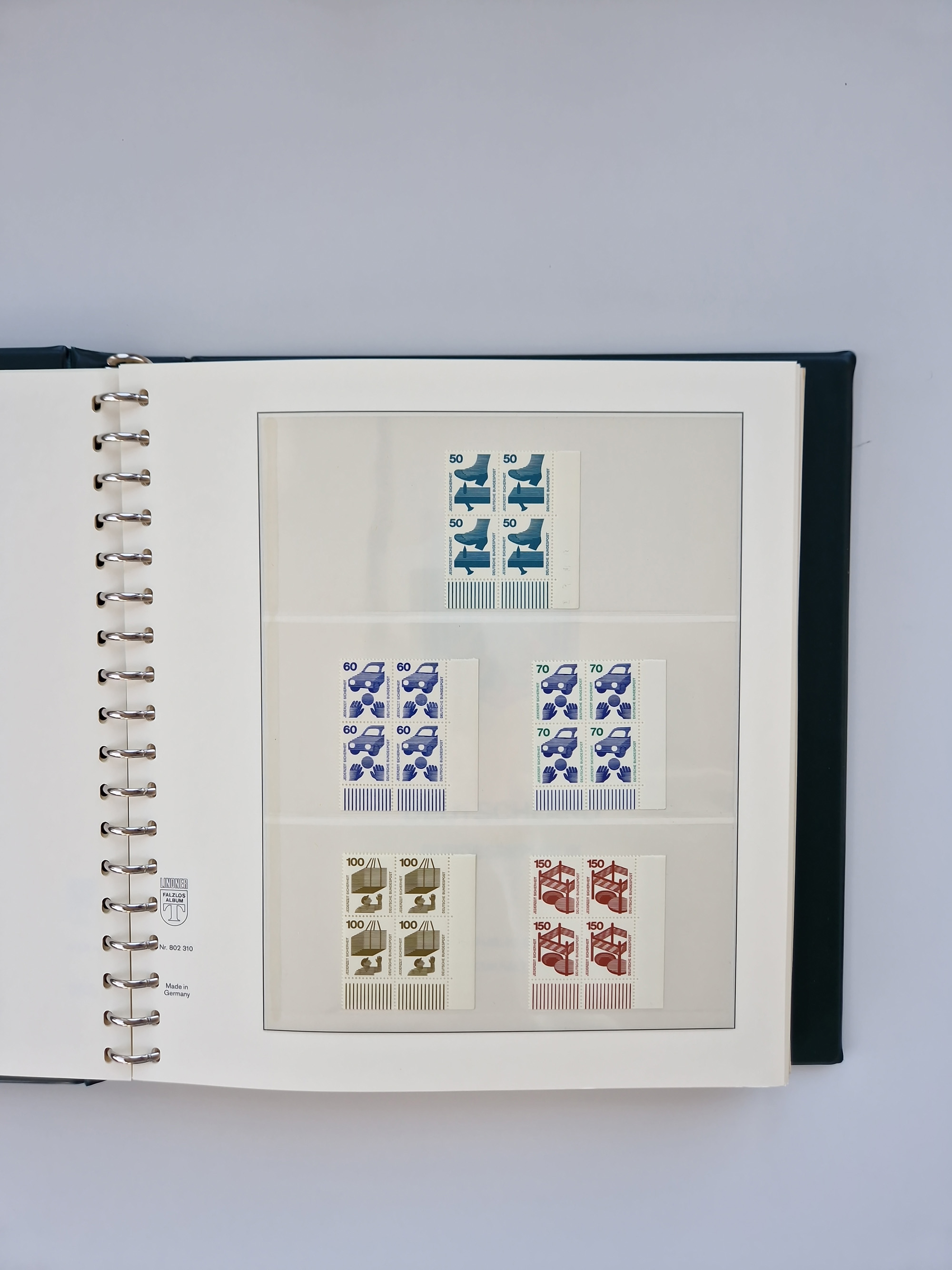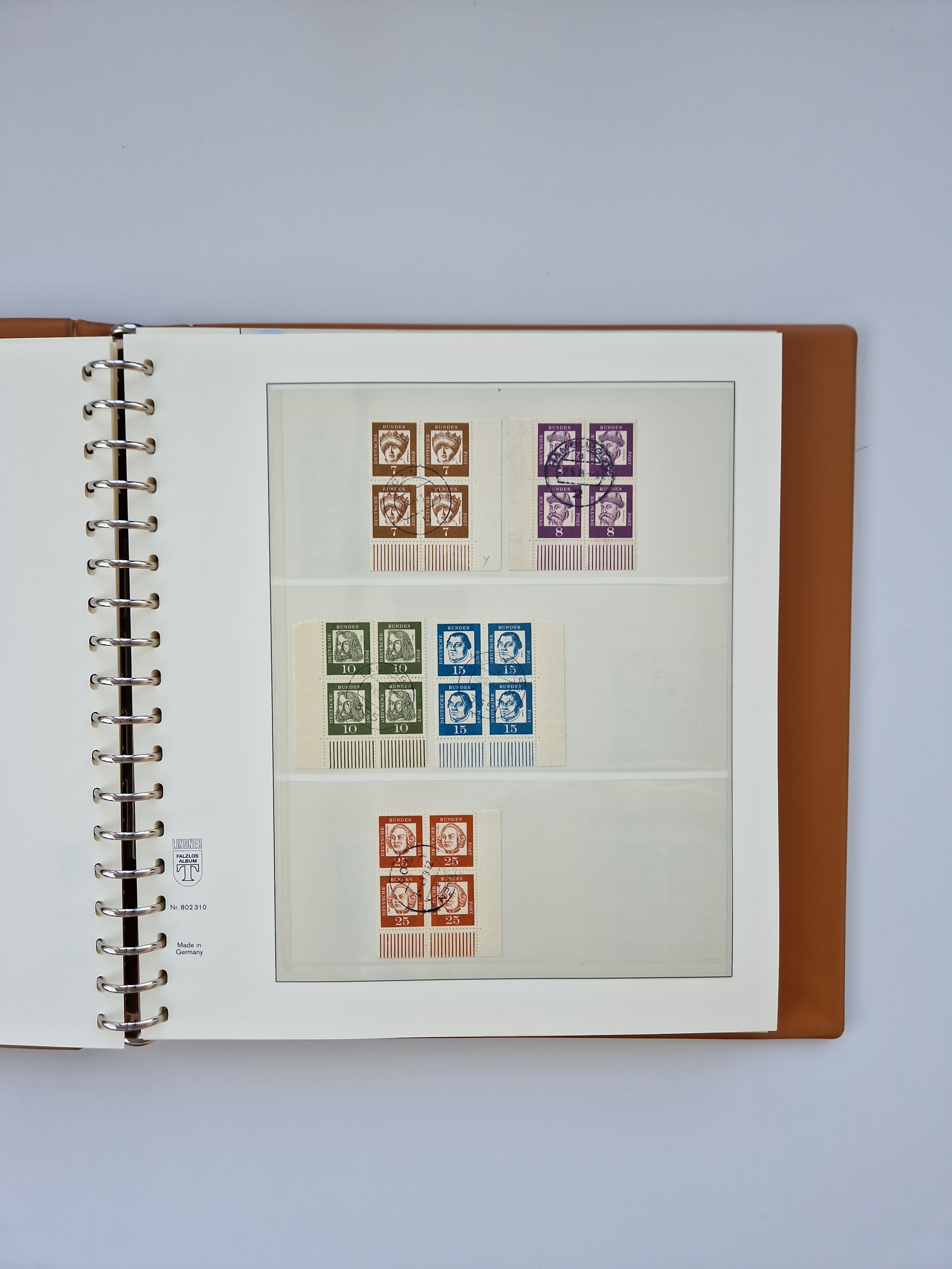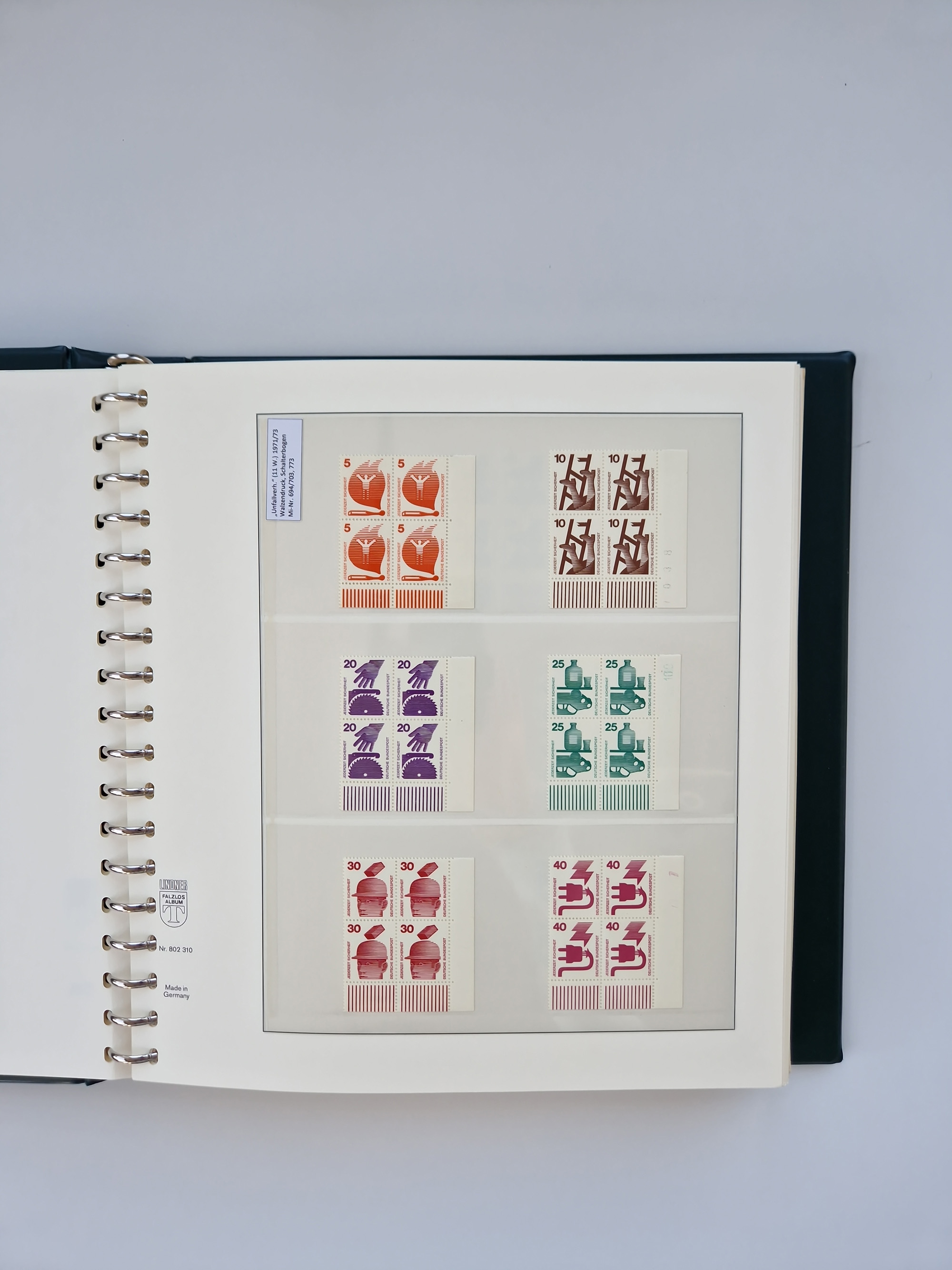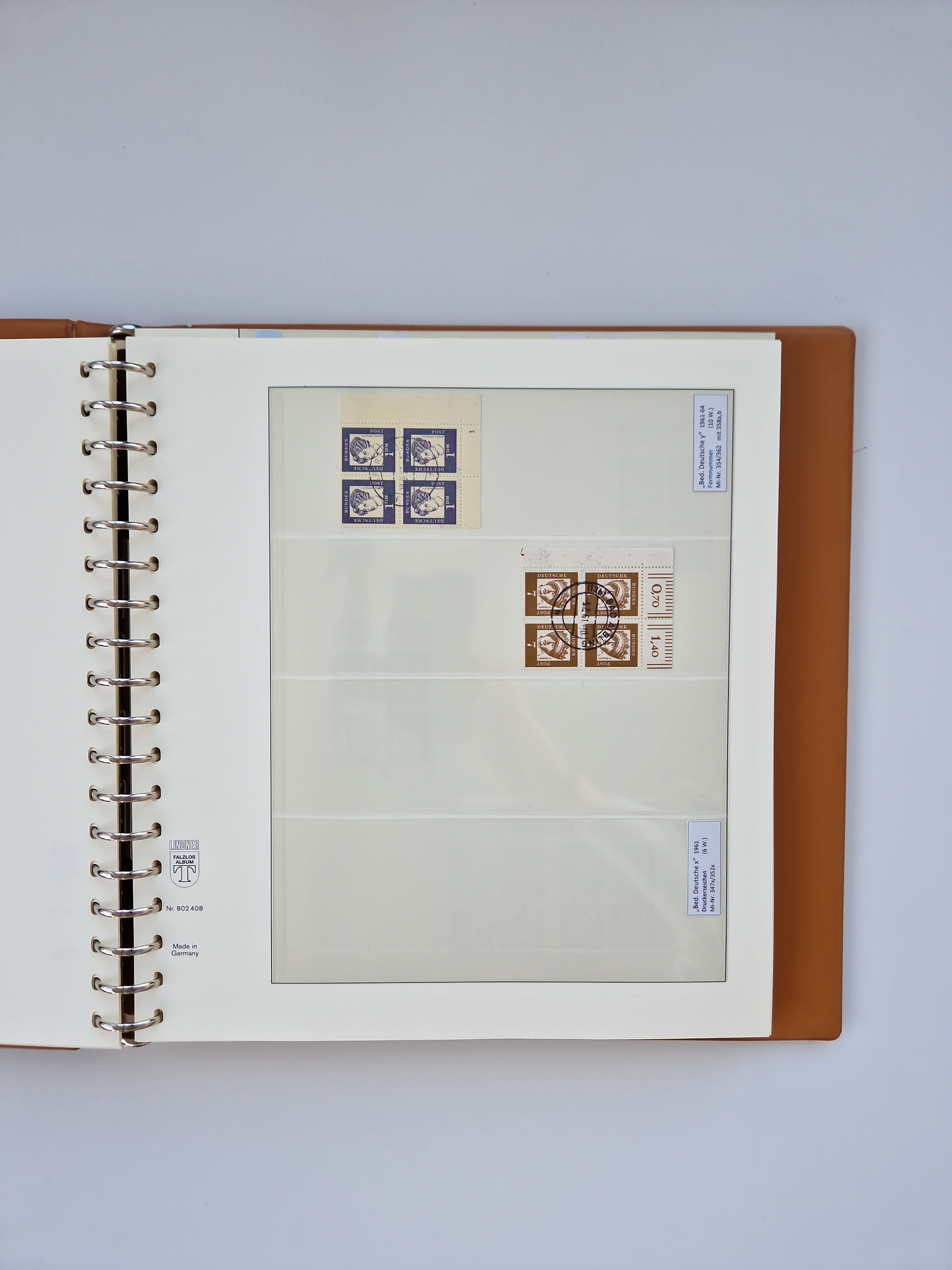 1951/94, postfrische Sammlung Dauerserien, dabei Posthorn in waagerechten oder senkrechten Paaren mit 3 Attesten und 6 Befunden A. Schlegel BPP, Heuss I Eckrandviererblocks, teils mit Druckerzeichen (Attest H.-D. Schlegel BPP). Heuss lumogen mit DZ Befund H.-D. Schlegel BPP. Heuss II Befund H-D Schlegel BPP. Danach Heuss III bis bedeutende Frauen 1994 alles Eckrandviererblocks oben links mit vielen Druckerzeichen und sonstigen Randbesonderheiten, im Lindner-Falzlosalbum.