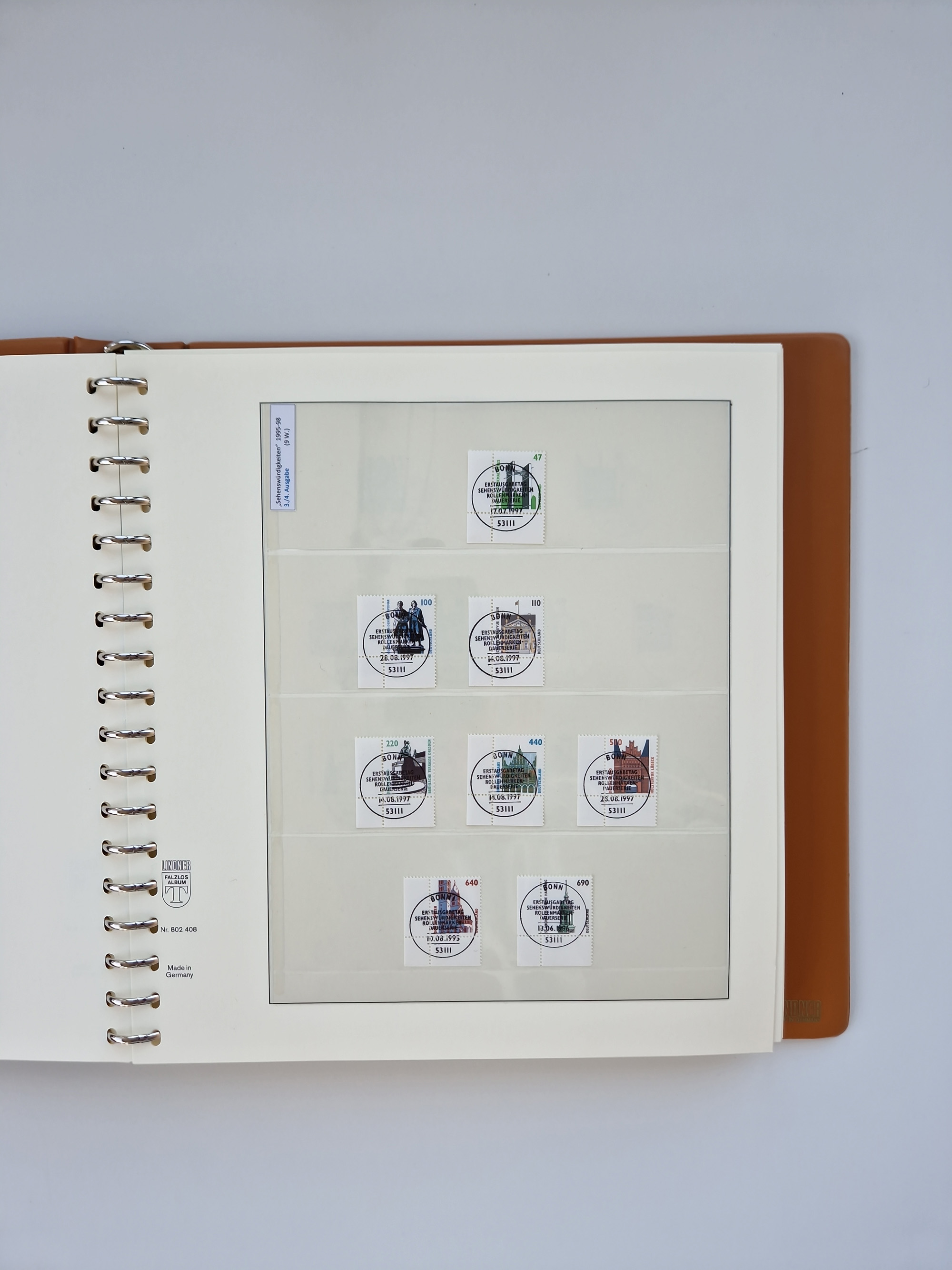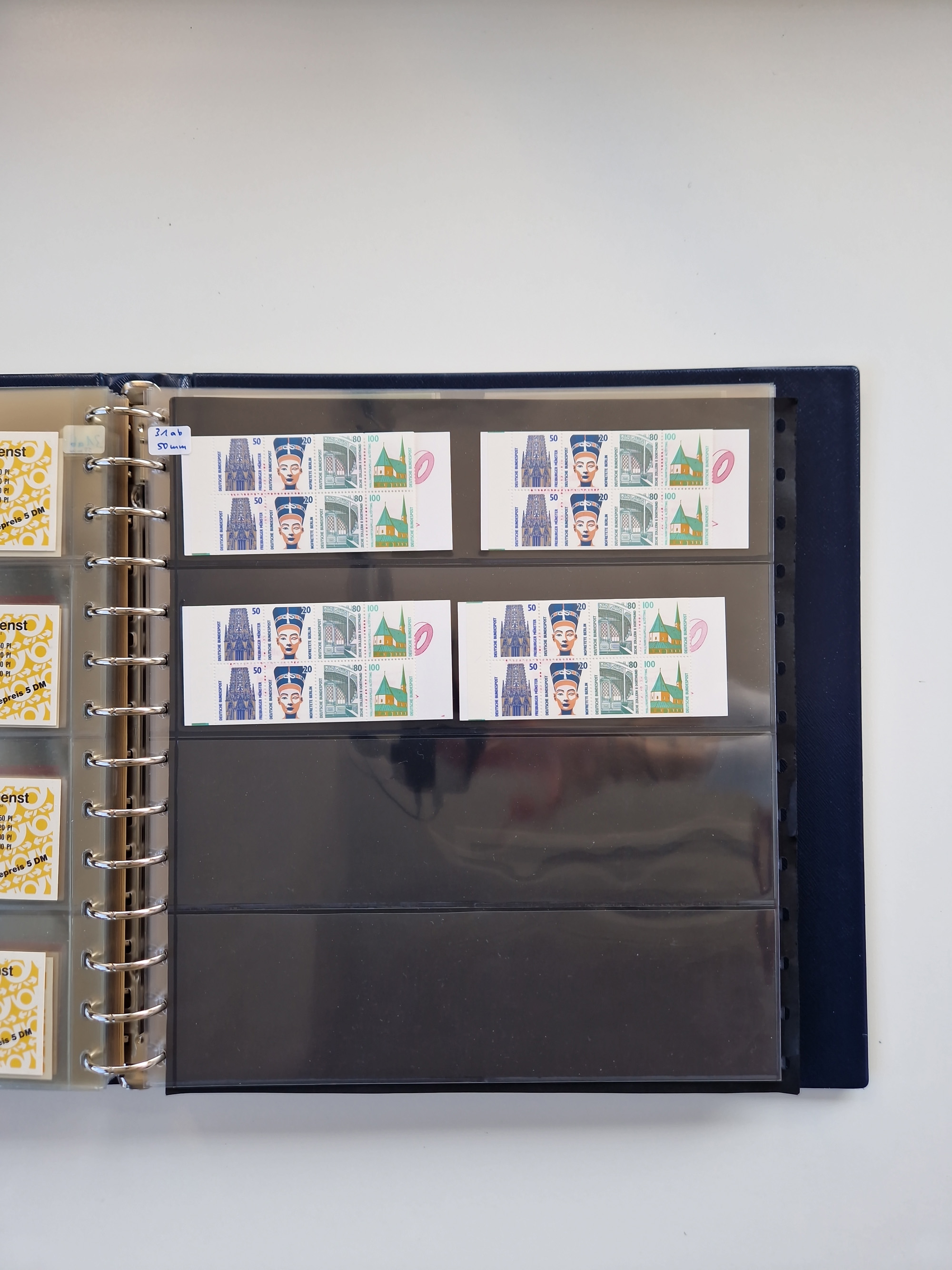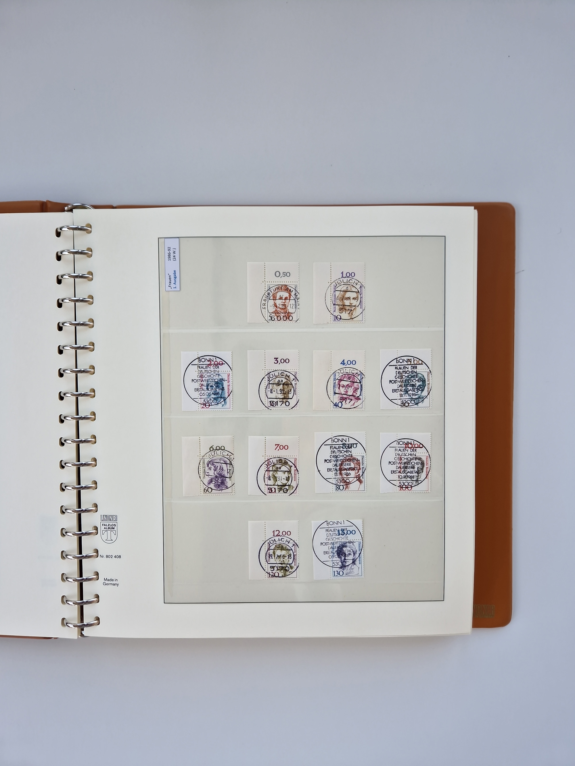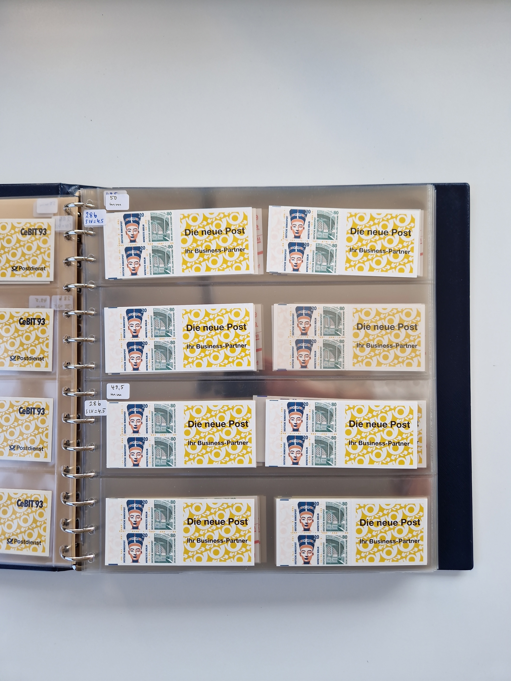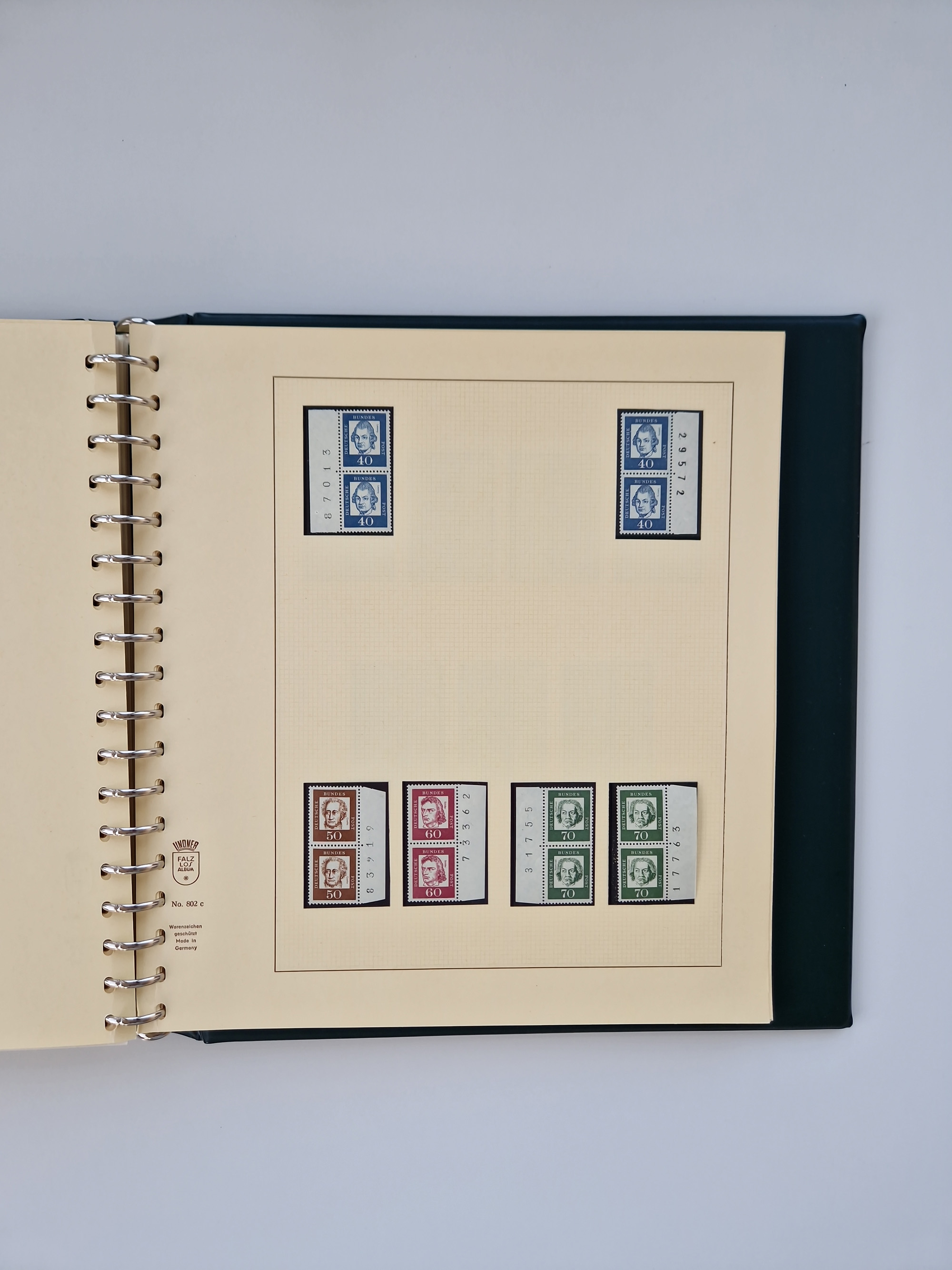 1951/94, postfrische Sammlung Dauerserien, dabei Posthorn in waagerechten oder senkrechten Paaren mit 3 Attesten und 6 Befunden A. Schlegel BPP, Heuss I Eckrandviererblocks, teils mit Druckerzeichen (Attest H.-D. Schlegel BPP). Heuss lumogen mit DZ Befund H.-D. Schlegel BPP. Heuss II Befund H-D Schlegel BPP. Danach Heuss III bis bedeutende Frauen 1994 alles Eckrandviererblocks oben links mit vielen Druckerzeichen und sonstigen Randbesonderheiten, im Lindner-Falzlosalbum.