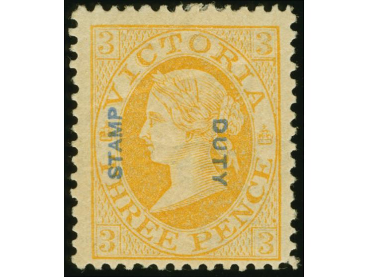 1885, Queen Victoria, 3 d. yellow-orange overprinted ´STAMP DUTY´ mint large part og., bright color, fine SG £ 80