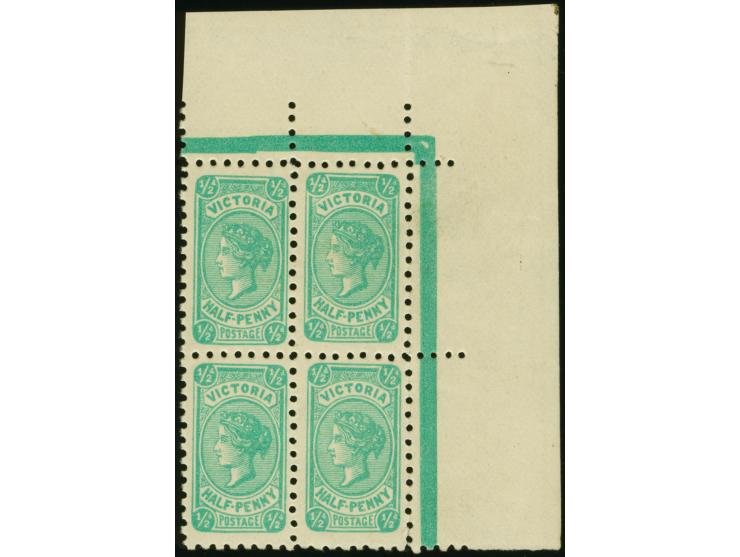 1905-13, Bantam ½ d. bluish-green, perf. 12½, wmk. Crown over A upright inverted, unused block of four, mint never hinged og. Very fine and scarce