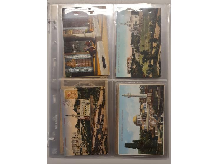 Turkey, 1900-20, 43 postcards Smyrna, Bursa, Constantinople, costumes, workers, mosques, palais, railway Salonique in folder