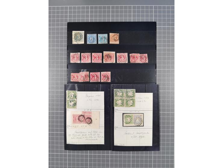 1850-1918, Partie in Tüten und Steckkarten ab Kreuzer Ausgabe, dabei 1 Kr. rosa im Paar vom rechten Rand auf Kabinettbriefstück mit gMR 77, spätere Ausgaben teils mit Verzähnungen, dazu alter Tütenbestand