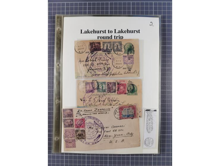 1929, Weltrundfahrt, kleine Sammlung der amerikanischen Post mit 17 Briefen und Ganzsachen, dabei verschiedene Etappen und interessante Frankaturen, alles auf Albenblättern