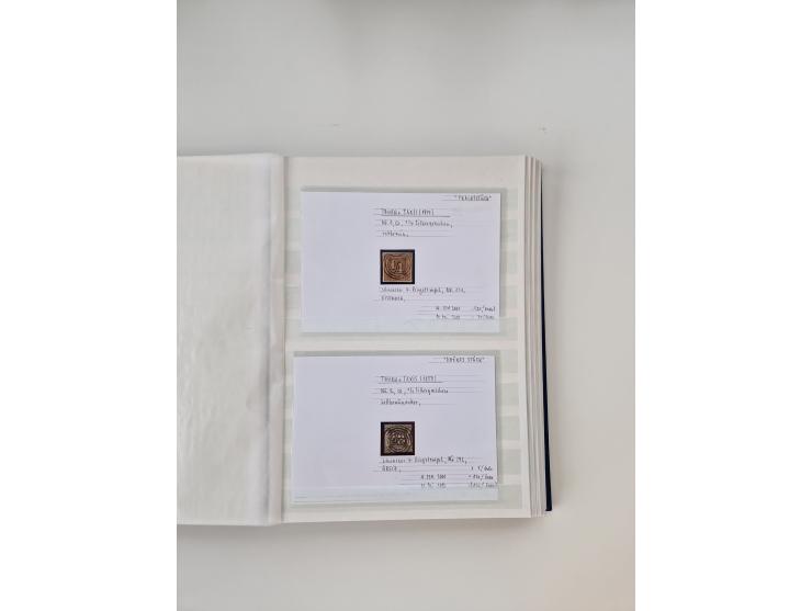 Baden bis Taxis, ungebrauchte und gestempelte Sammlungsbestand, jedes Stück mit ausführlicher Beschriftung auf Karten montiert, dabei recht schöner Bayern-Teil mit Mi. 1I, mehreren 4I, etc., dabei auch Einheiten, schöne Briefstücke und Besonderheiten. In Holzkisten und 4 Steckbüchern, in 3 großen Kartons.