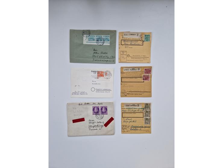 1949/70 (ca.), geschätzt über 500 Briefe und Karten, dabei R-Briefe, Einzel- und Mehrfachfrankaturen mit besseren, Paketkarten mit u.a. MEF Rotaufdruck 30 Pfg. und weiteren Besonderheiten mit u.a. Mi.-Nr. DZ “Sa” auf Brief