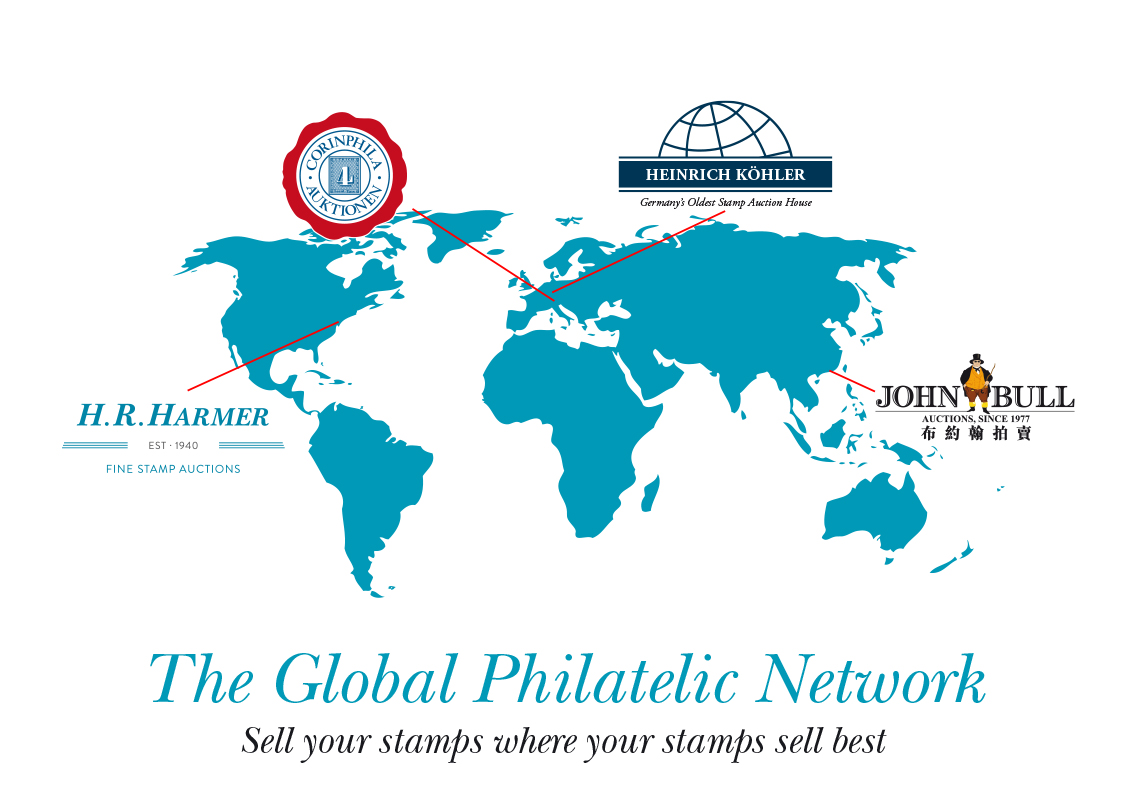 To maximize results for your stamps: If it makes sense and is your will to auction your stamps on different continents in their ‚home countries‘ The Global Philatelic Network will take care of all the necessary arrangements.